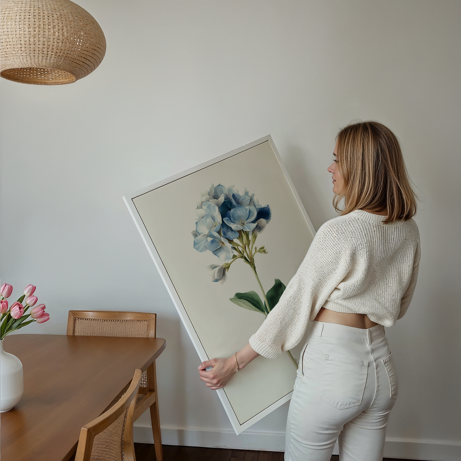 - The “High-Low” Method: Pair a premium canvas print as your room’s centerpiece with DIY elements like painted thrift store frames in spring-inspired shades (think lilac, sage, or soft coral).