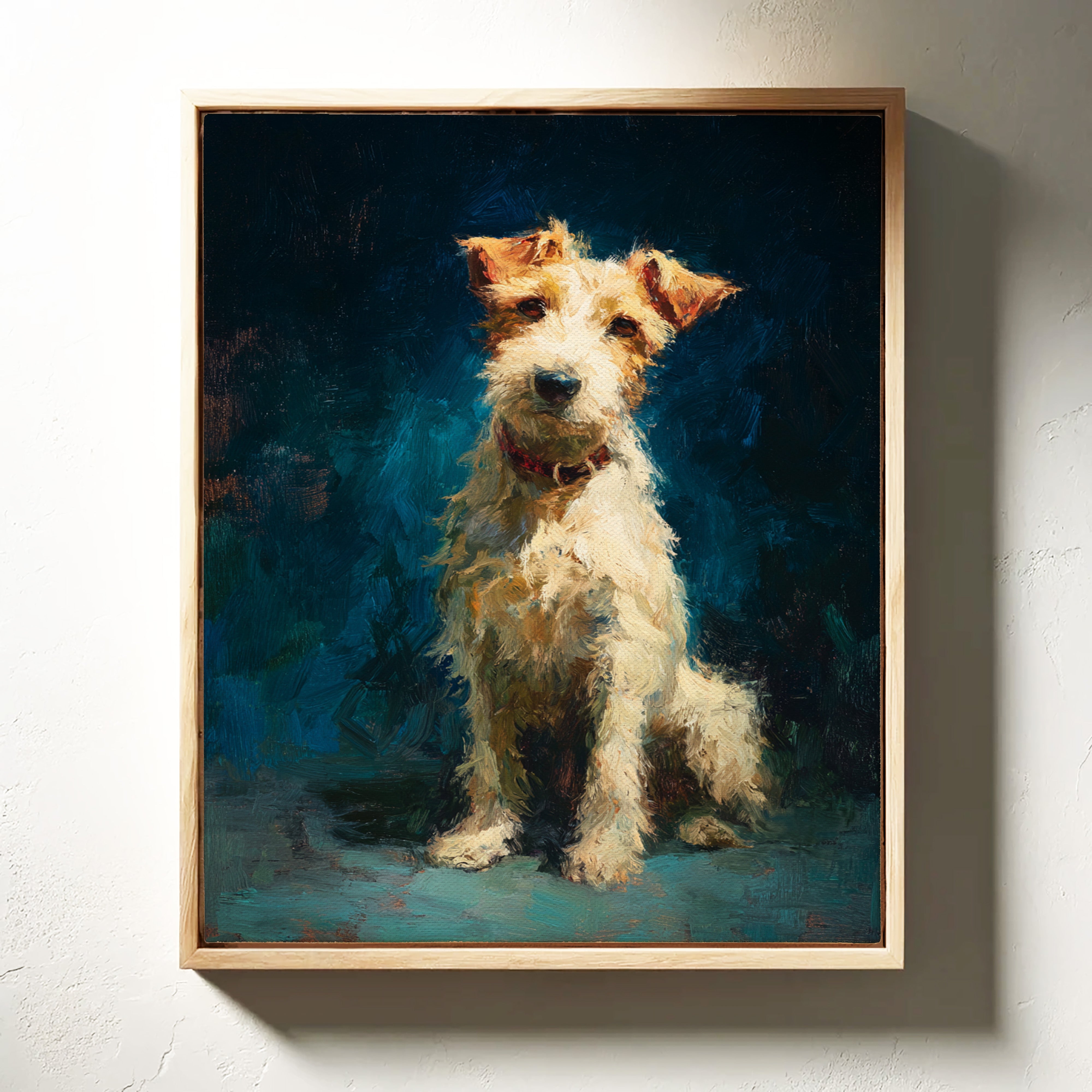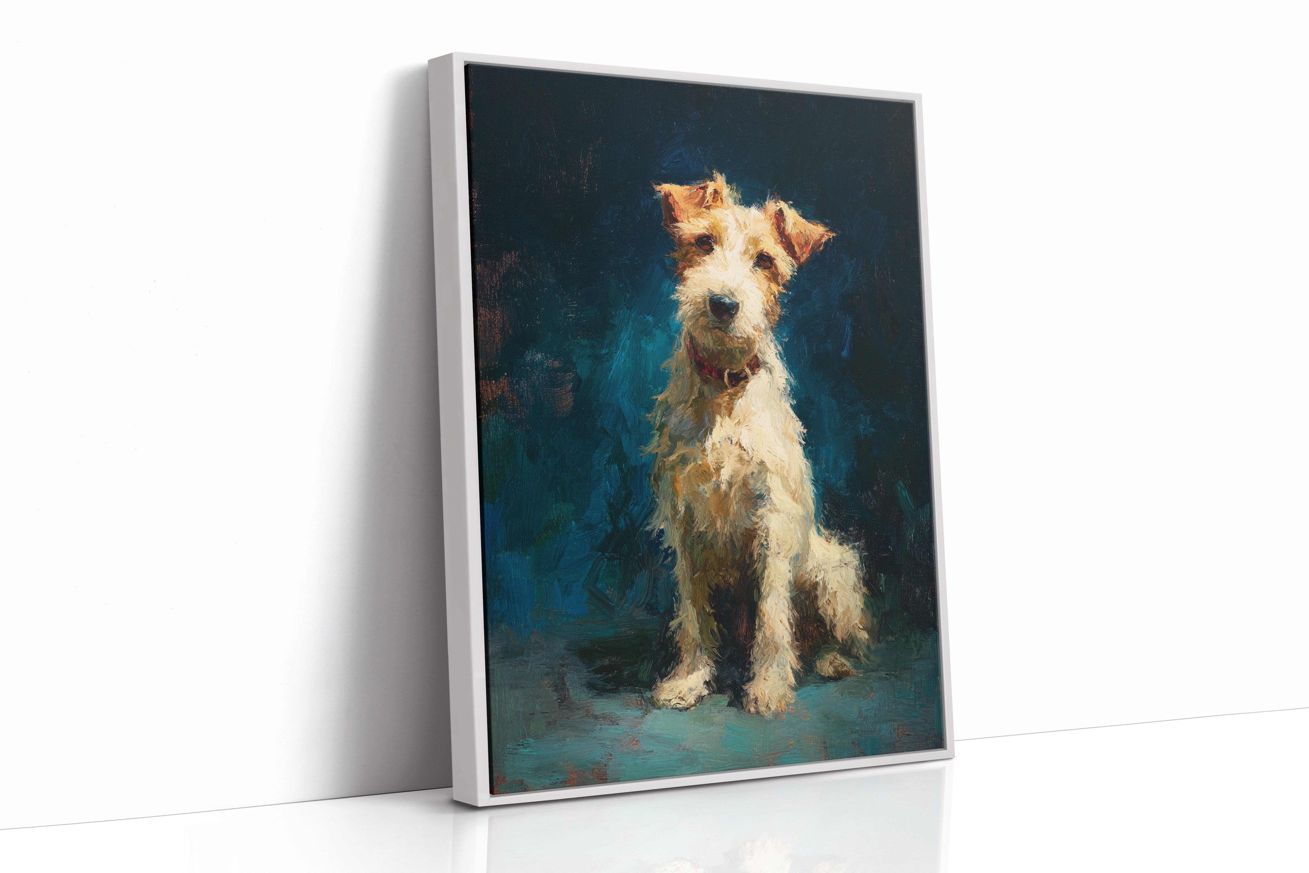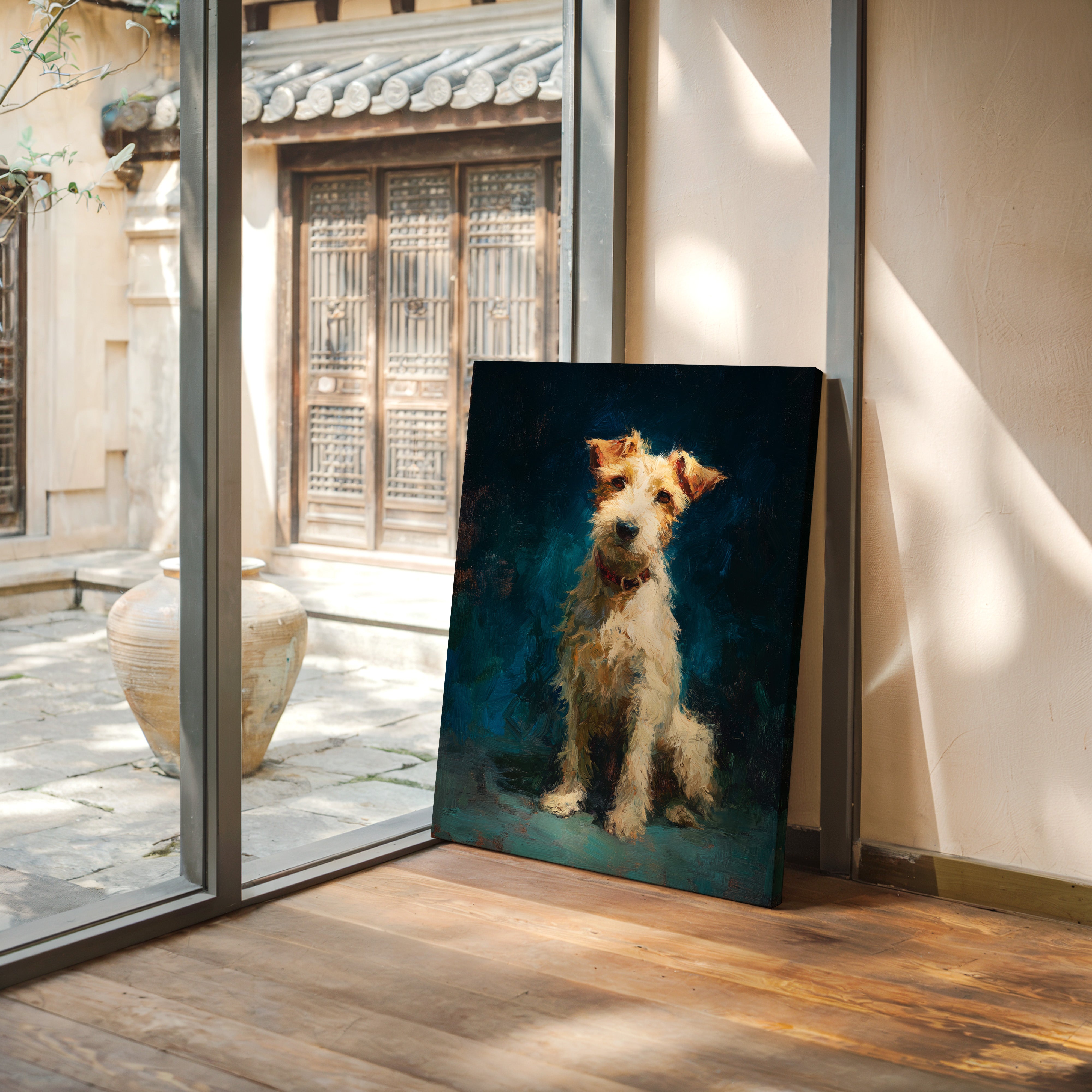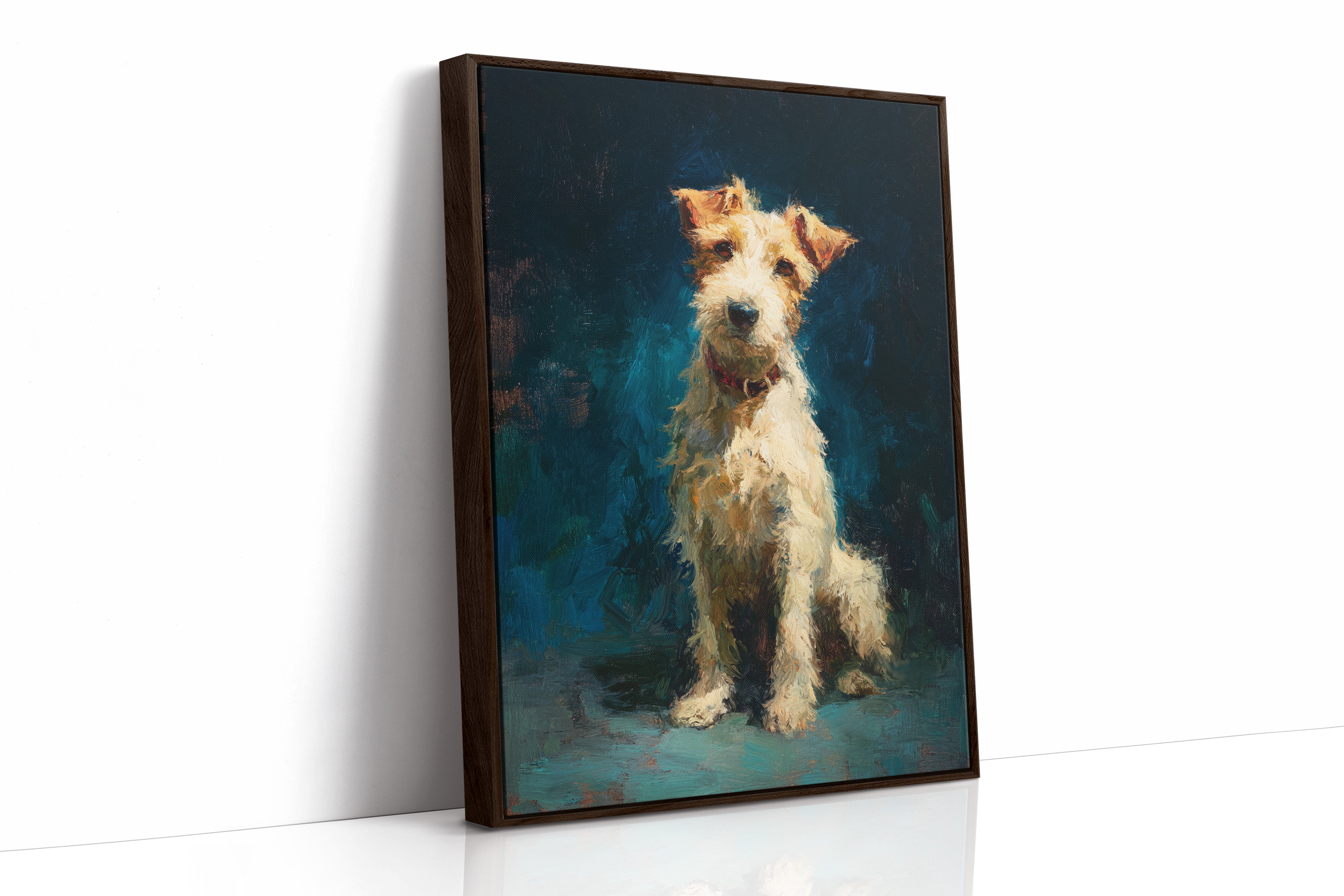 In the stillness of the moment, a faithful companion gazes with unwavering devotion, embodying warmth and playfulness. This piece belongs to the Artisanal collection, celebrating the unique bond between humans and their furry friends. Rich textures and vibrant colors breathe life into the scene, capturing the essence of loyalty and joy that only a pet can bring. Perfect for a cozy nook or the heart of your home, this artwork invites affection and connection.