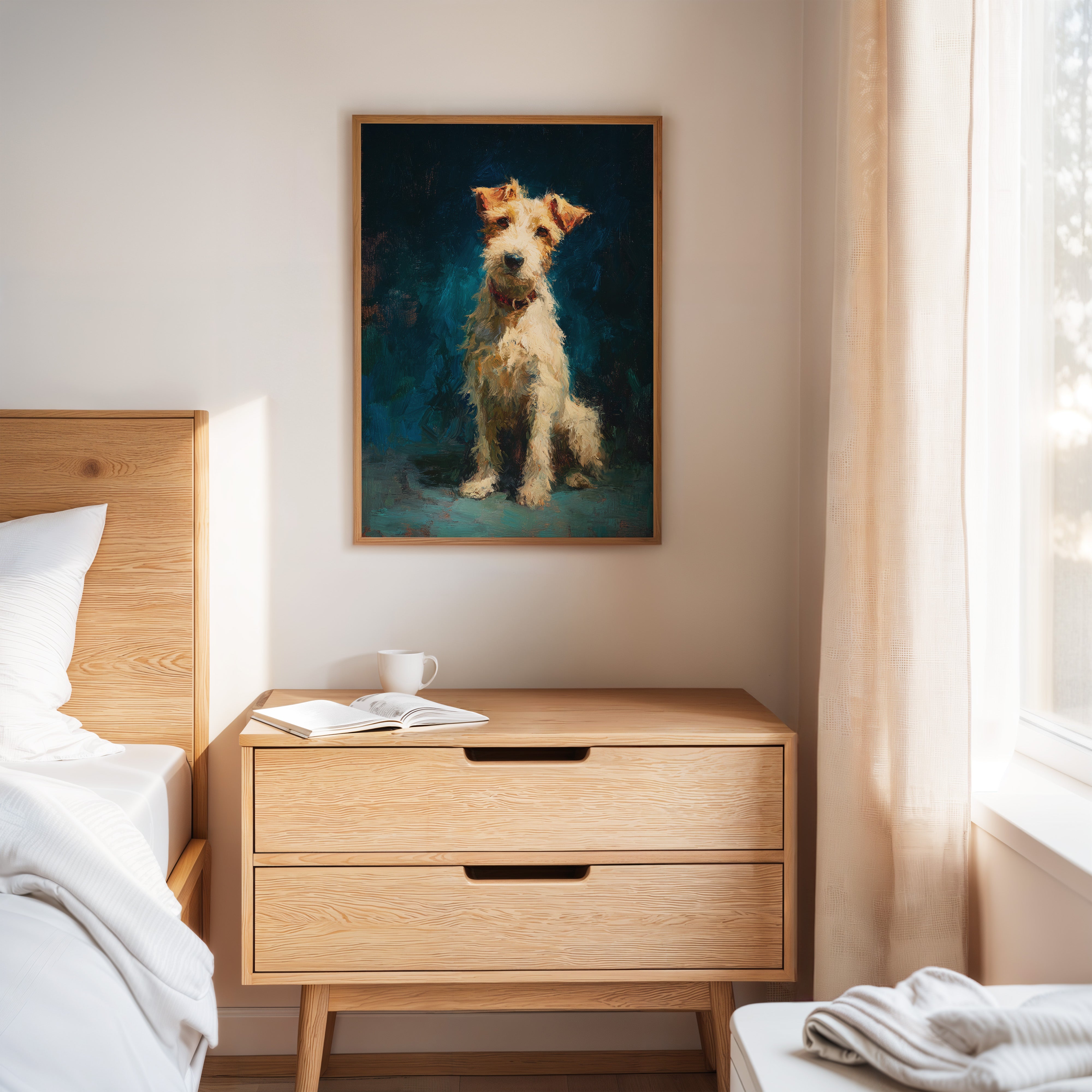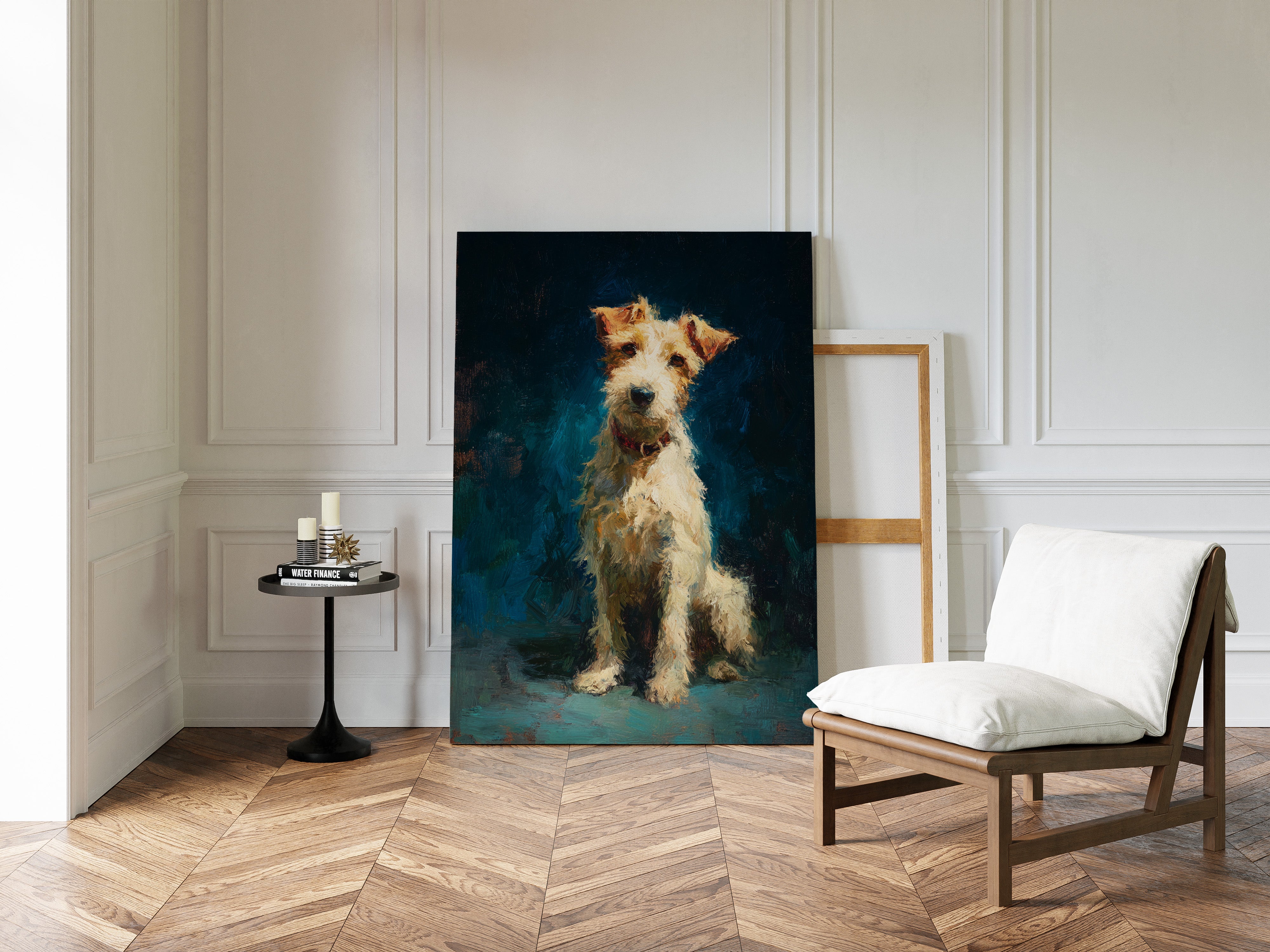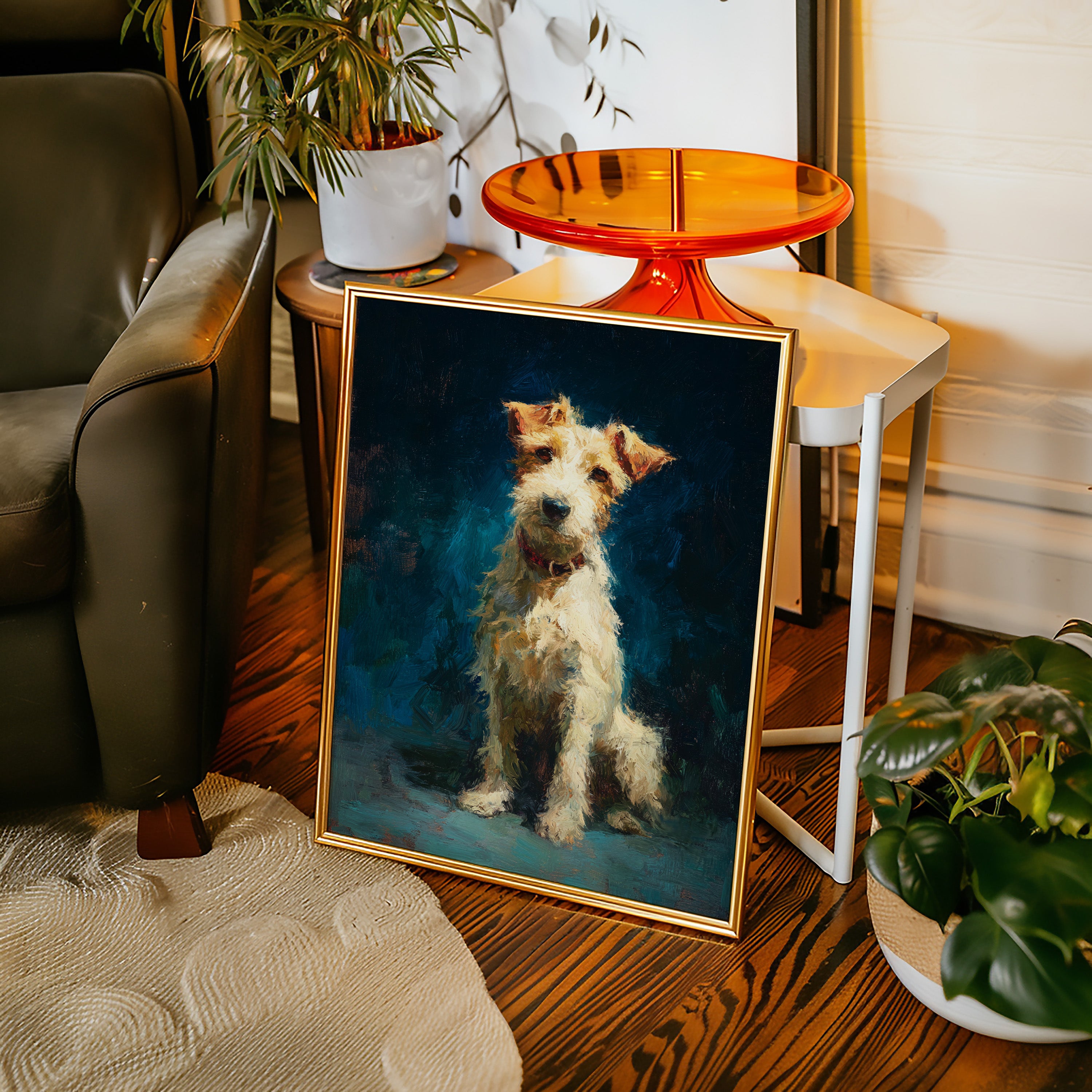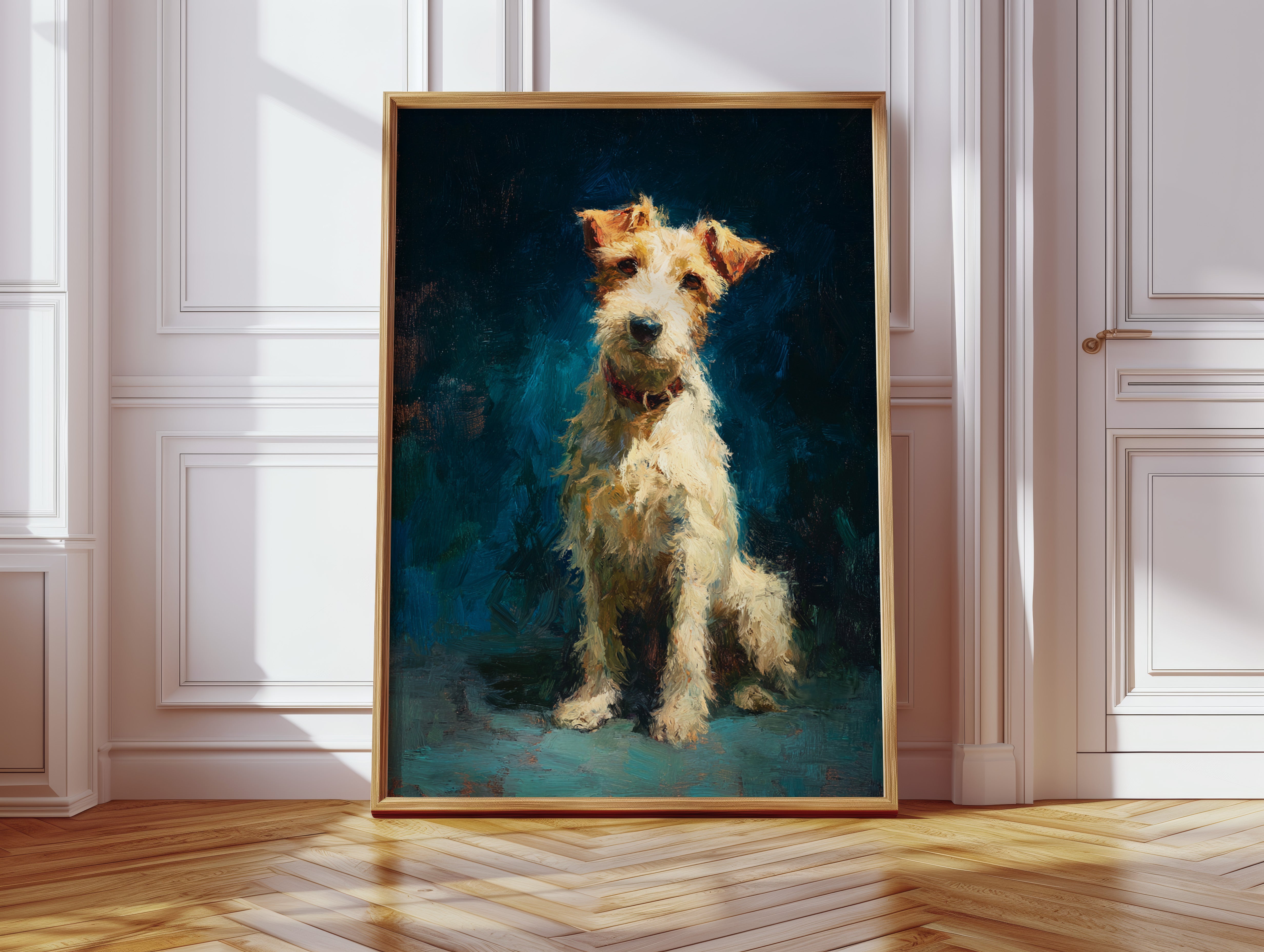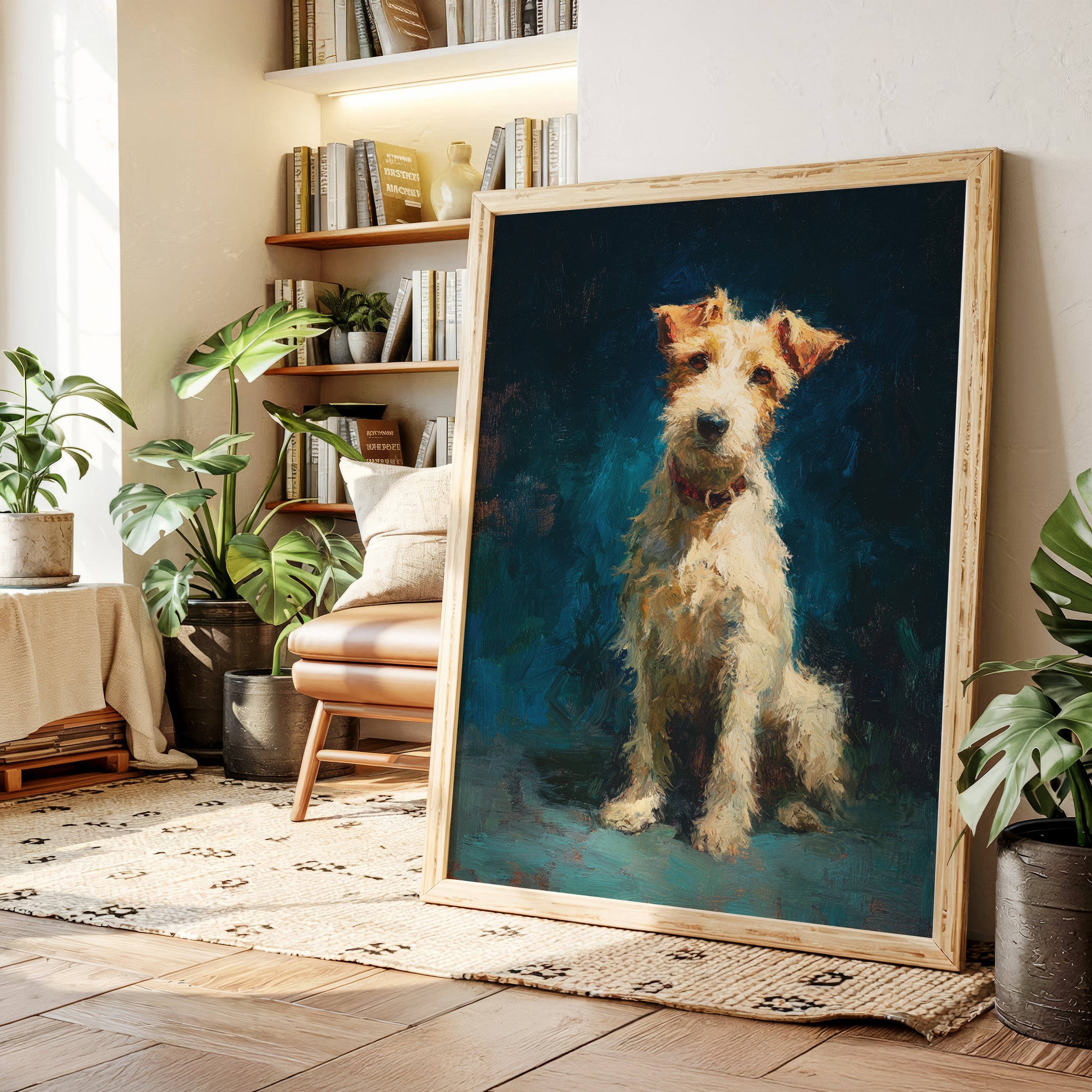 In the stillness of the moment, a faithful companion gazes with unwavering devotion, embodying warmth and playfulness. This piece belongs to the Artisanal collection, celebrating the unique bond between humans and their furry friends. Rich textures and vibrant colors breathe life into the scene, capturing the essence of loyalty and joy that only a pet can bring. Perfect for a cozy nook or the heart of your home, this artwork invites affection and connection.