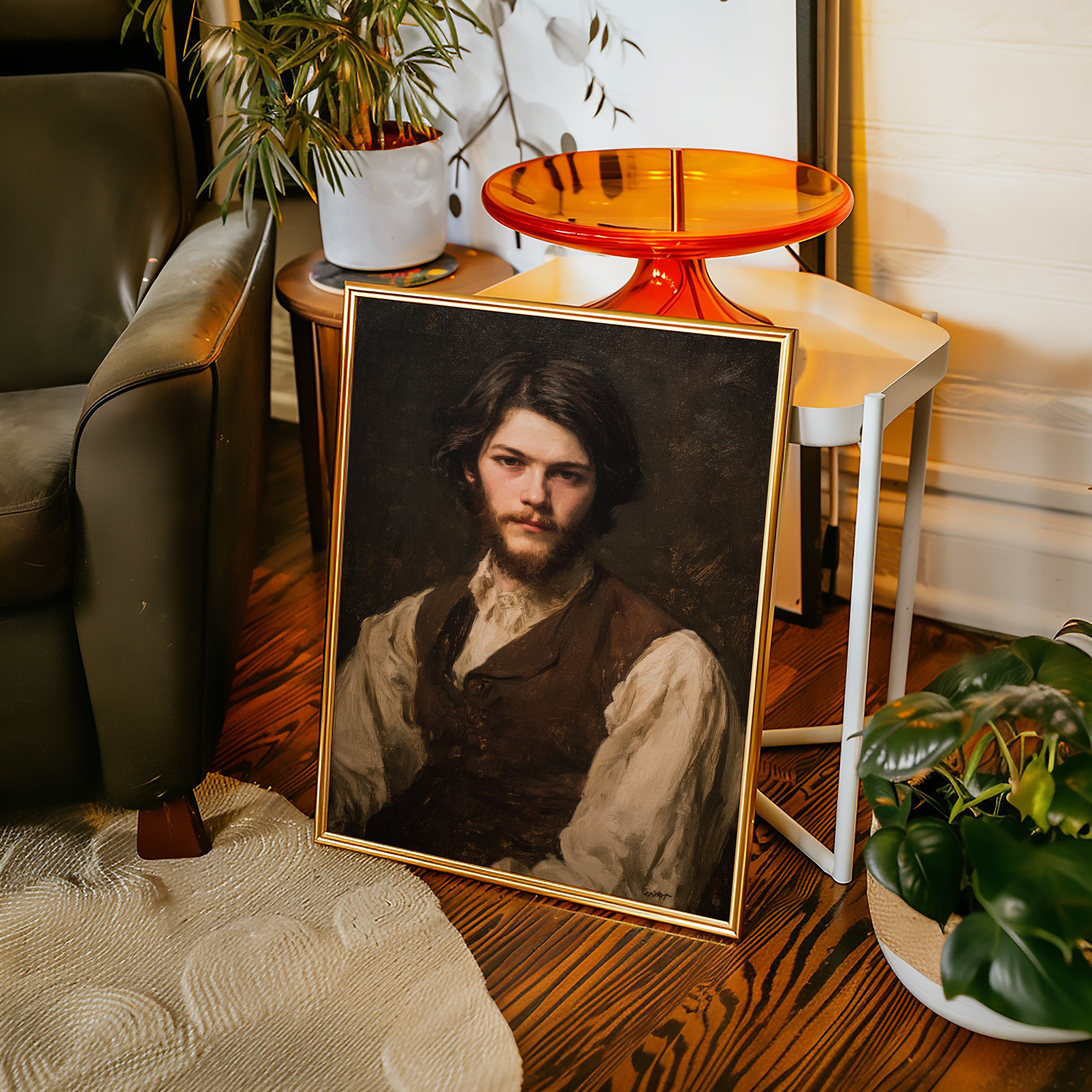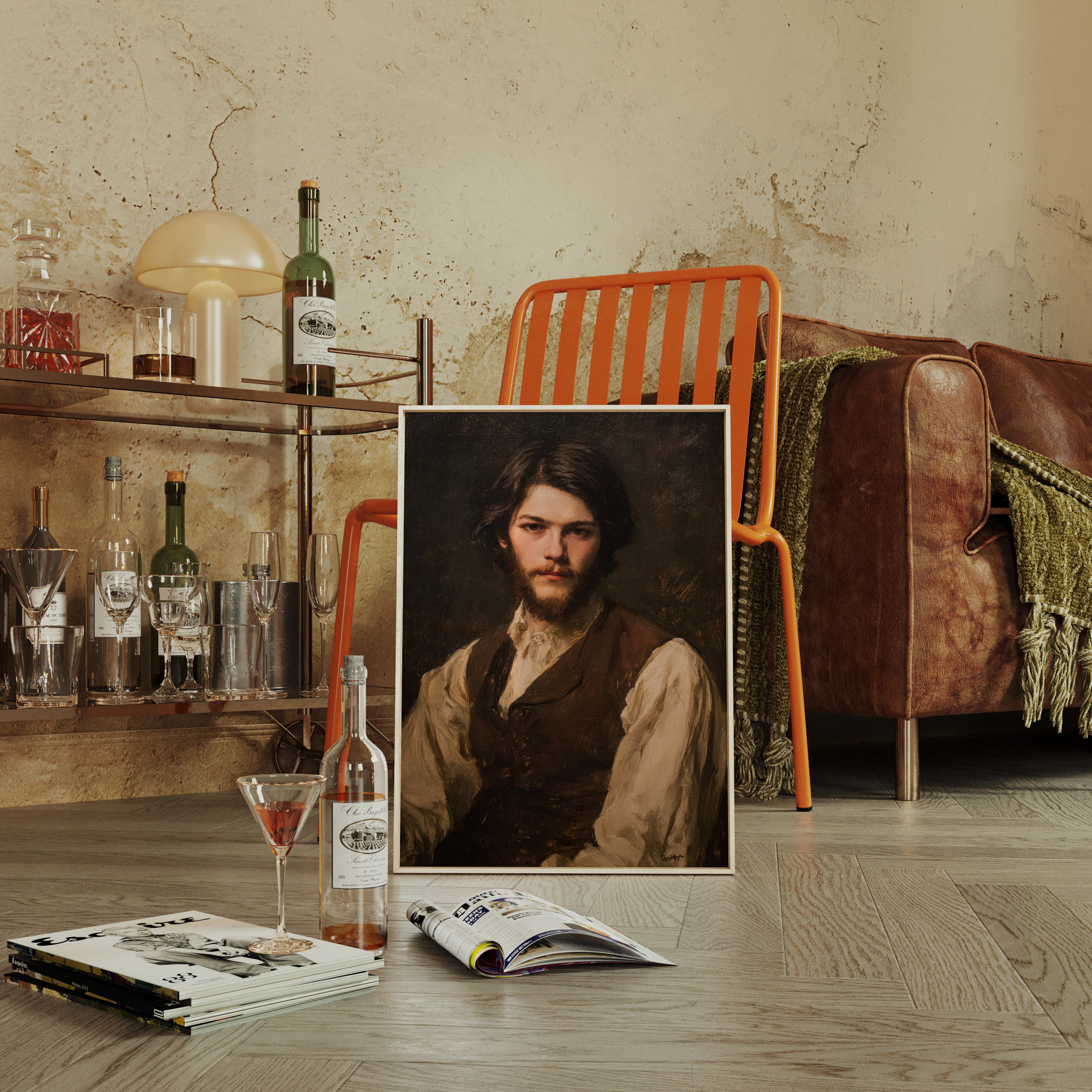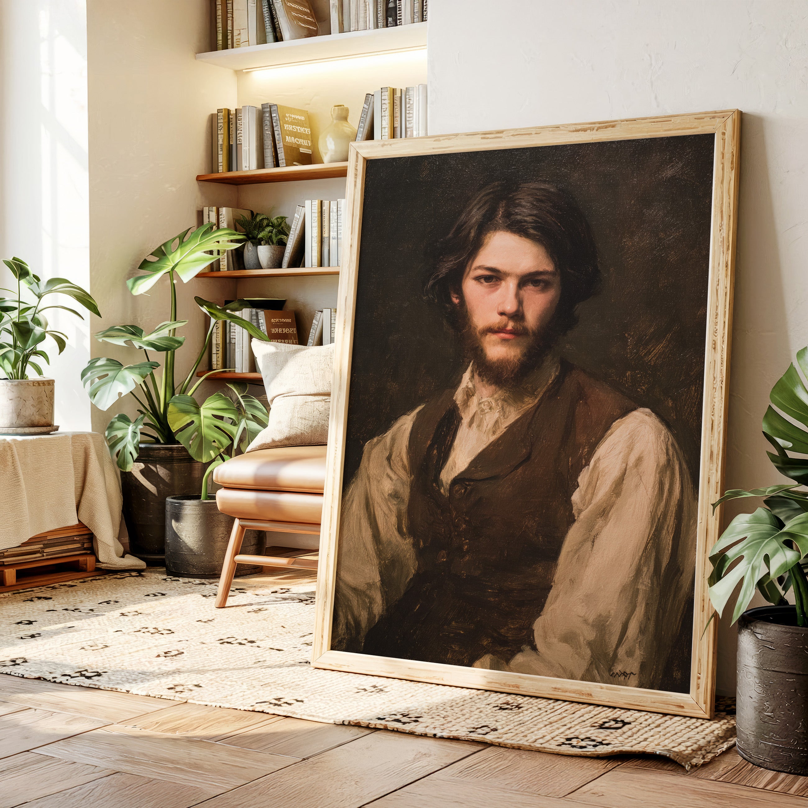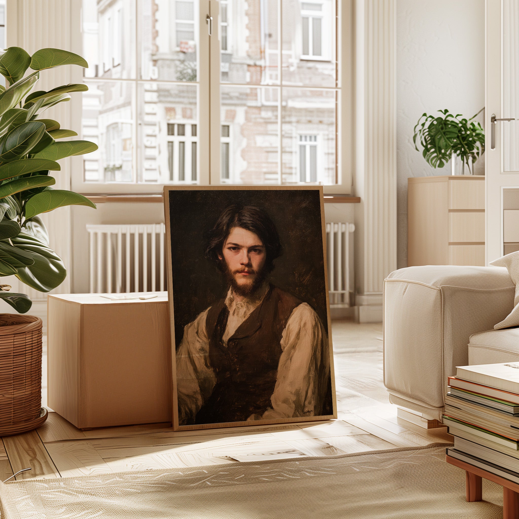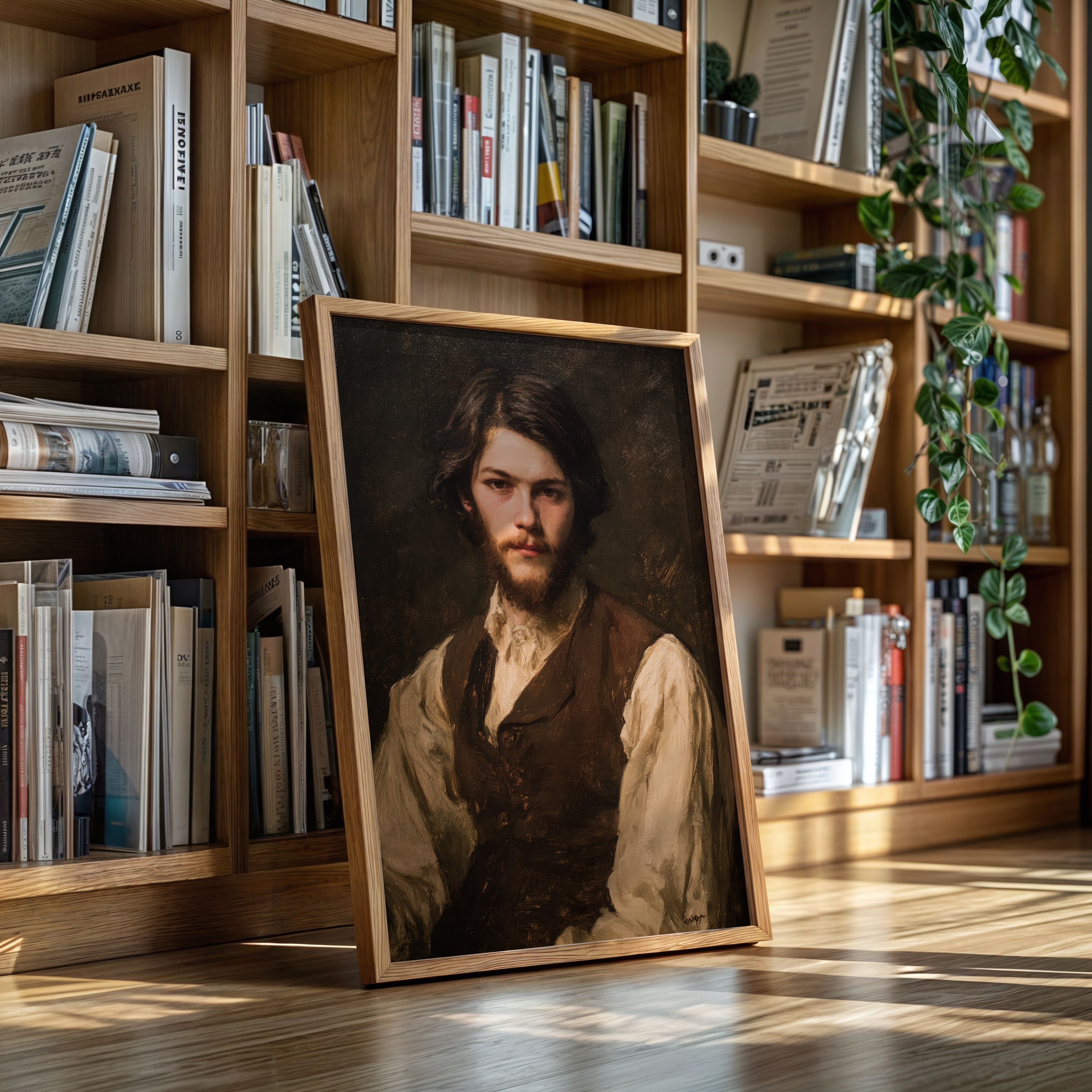 In the stillness of the moment, a young man gazes forward, embodying a spirit of quiet determination. This piece captures the essence of artisanal craftsmanship, where every brushstroke tells a story. The texture of his clothing, the richness of his hair, and the depth of his expression merge to form a narrative of resilience and purpose. Ideal for a study or creative space, this portrait invites contemplation and inspires ambition.