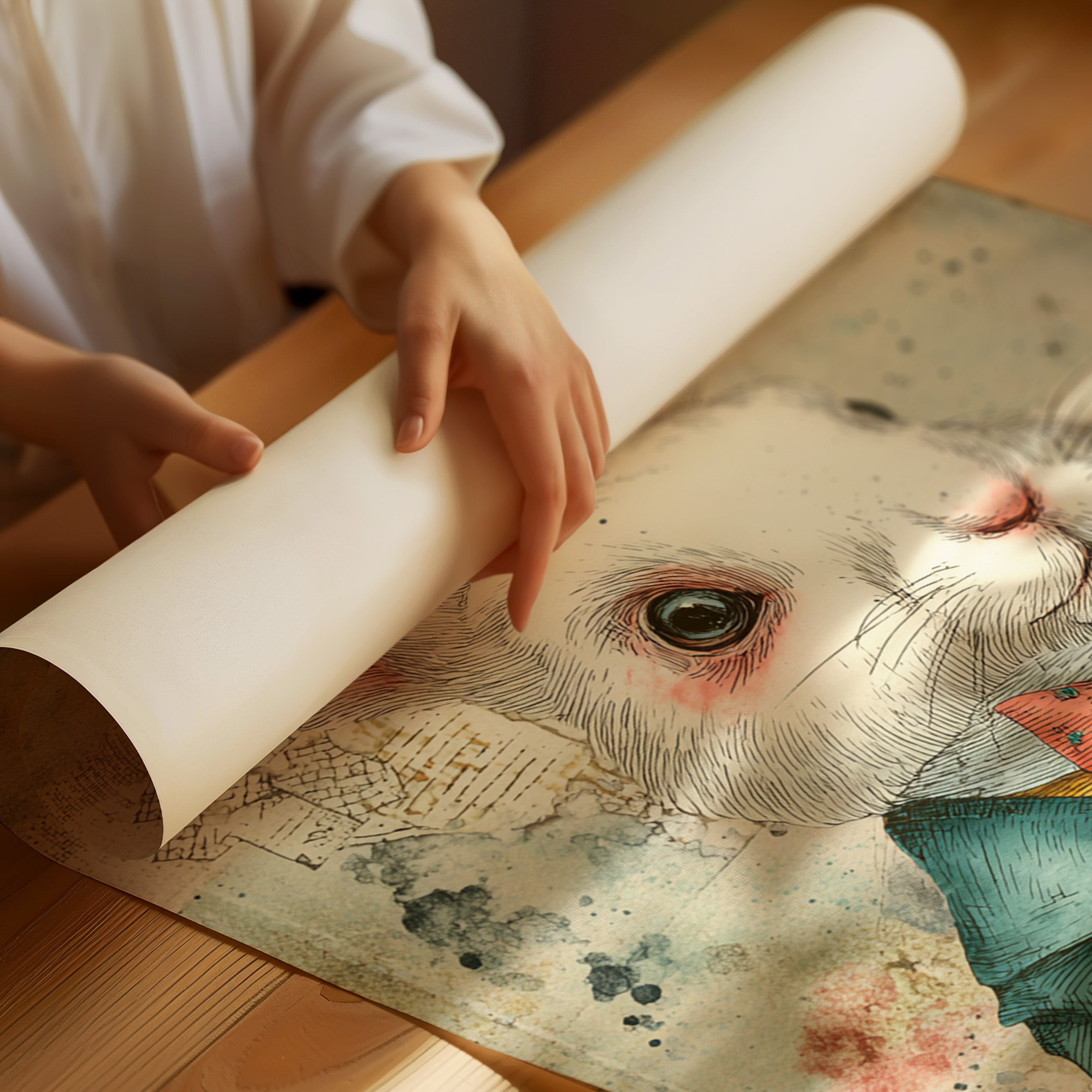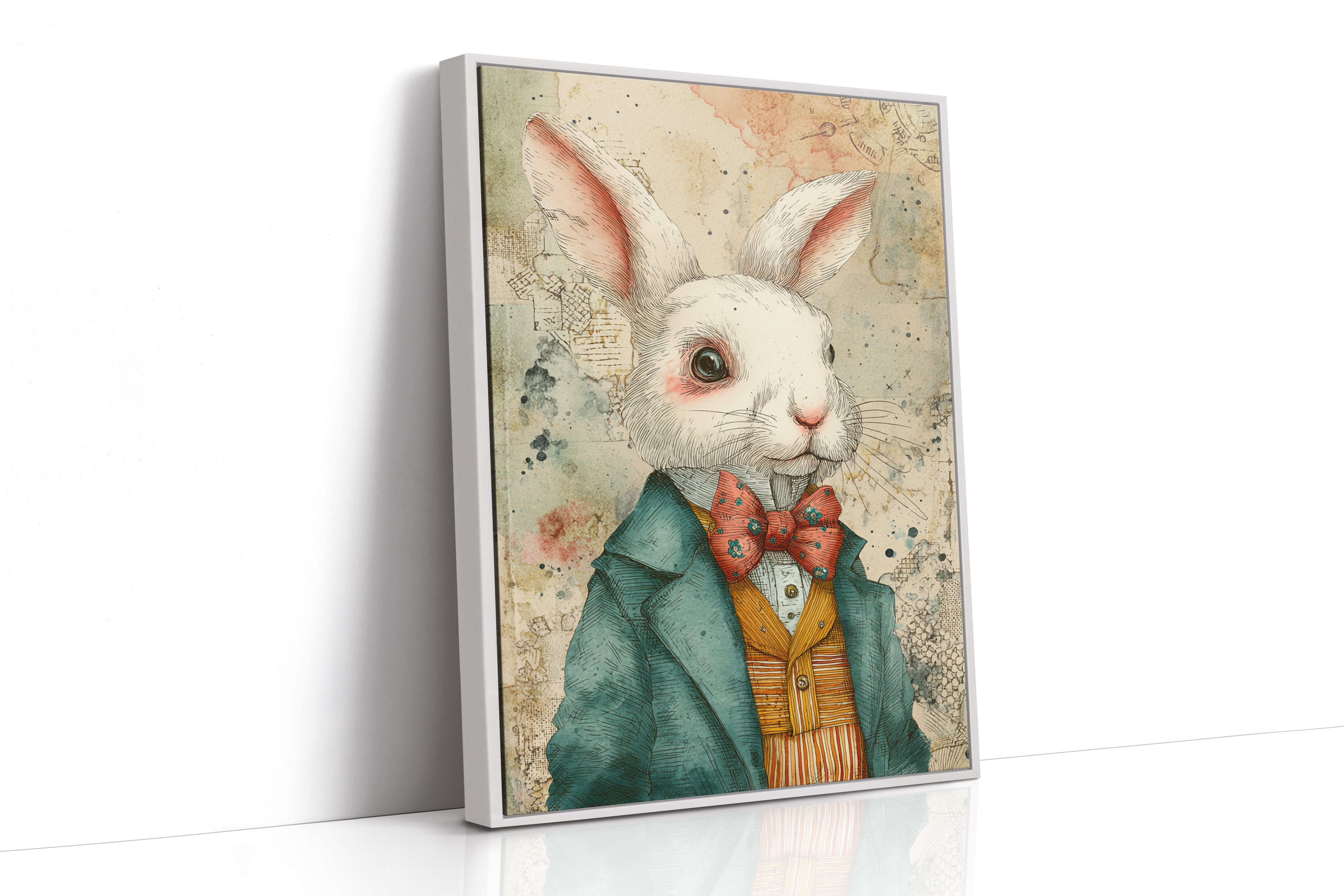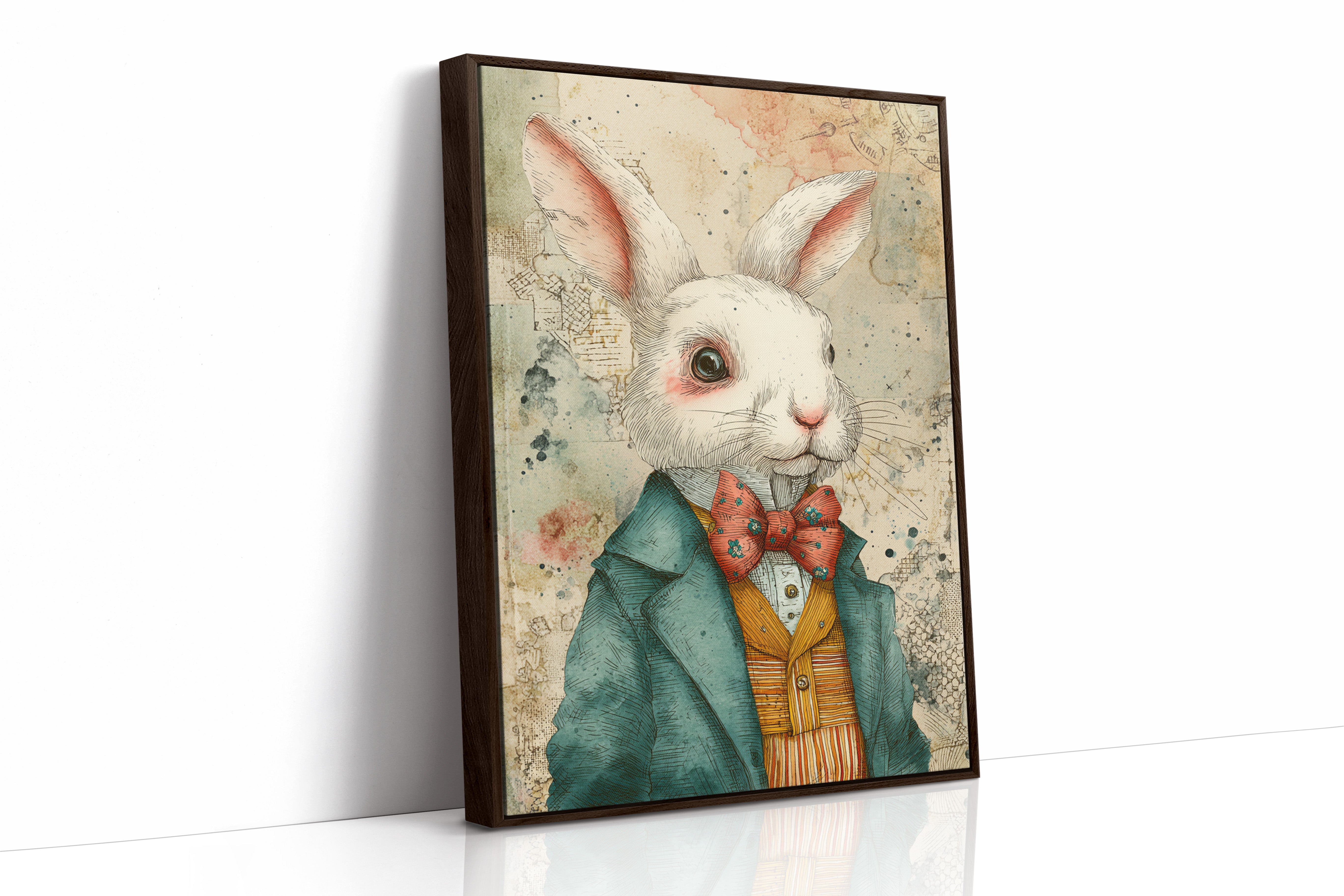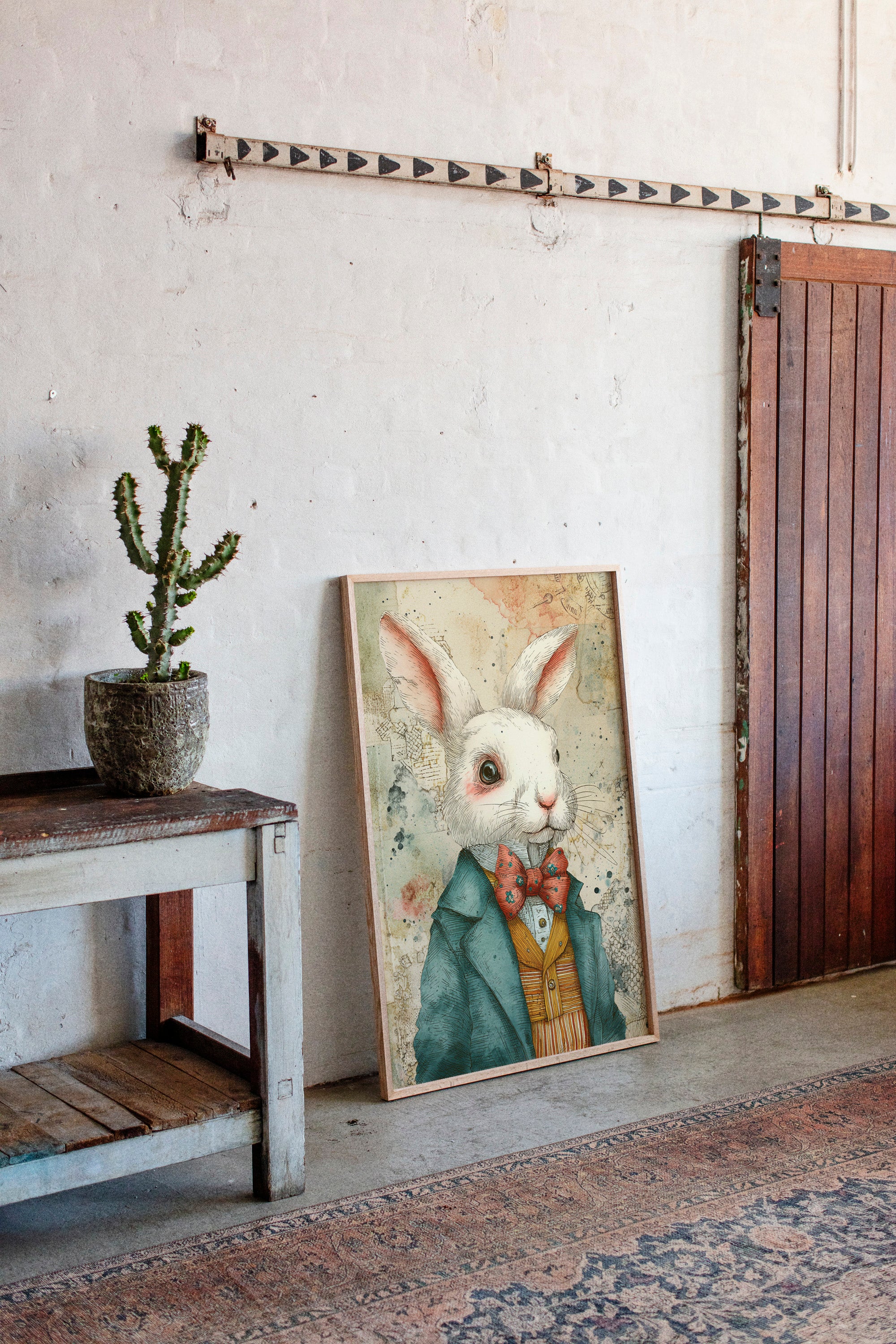 In a world where charm meets whimsy, a dapper rabbit dons a vibrant bowtie, poised for an enchanting evening. This piece captures the playful essence of the artisanal collection, inviting imagination and delight. The intricate details of the rabbit's attire, combined with a backdrop of faded maps and soft hues, evoke a sense of nostalgia and curiosity, as if the rabbit is about to share tales of adventures past. Perfectly suited for a cozy reading nook or a child's playroom, this artwork sparks joy and wonder in any space.