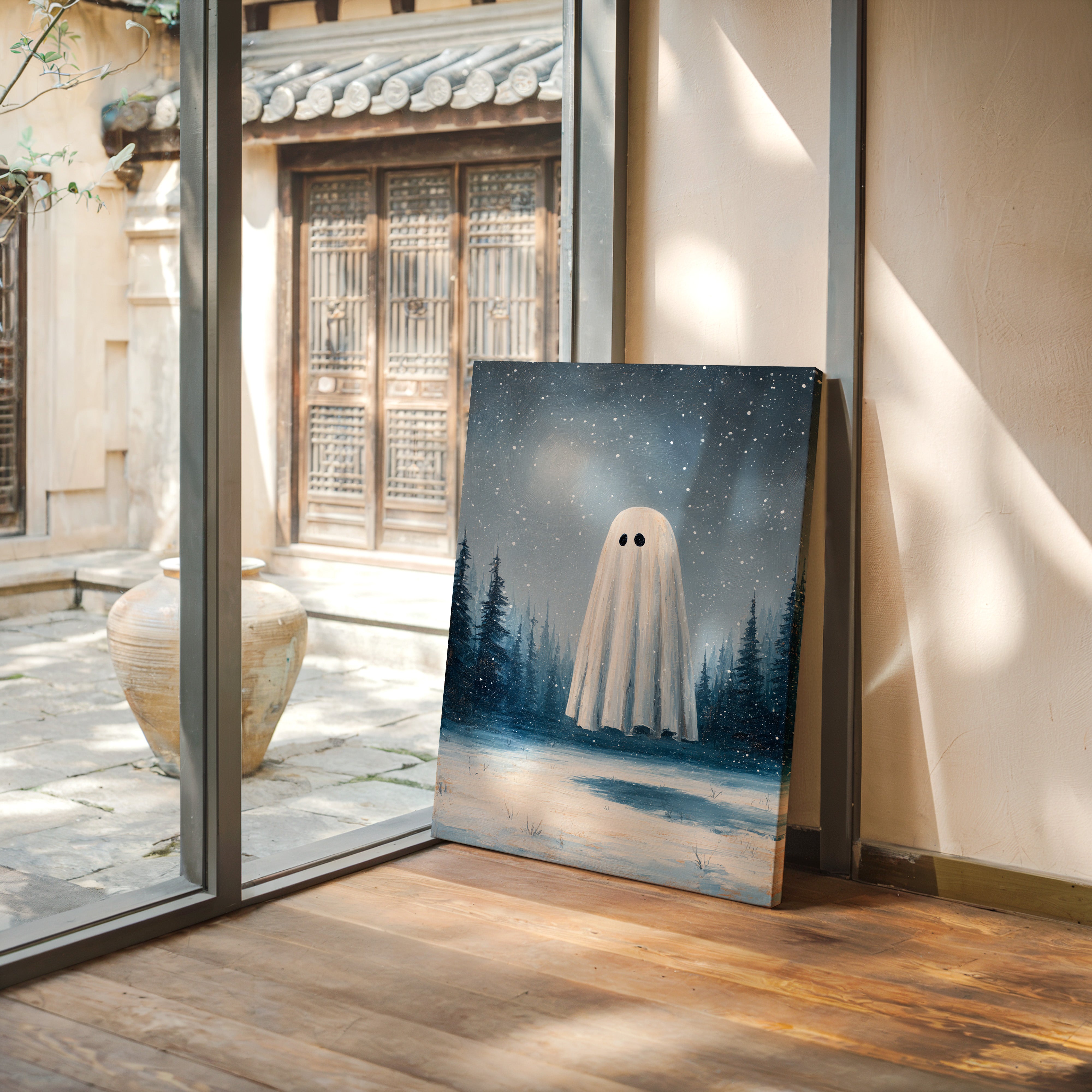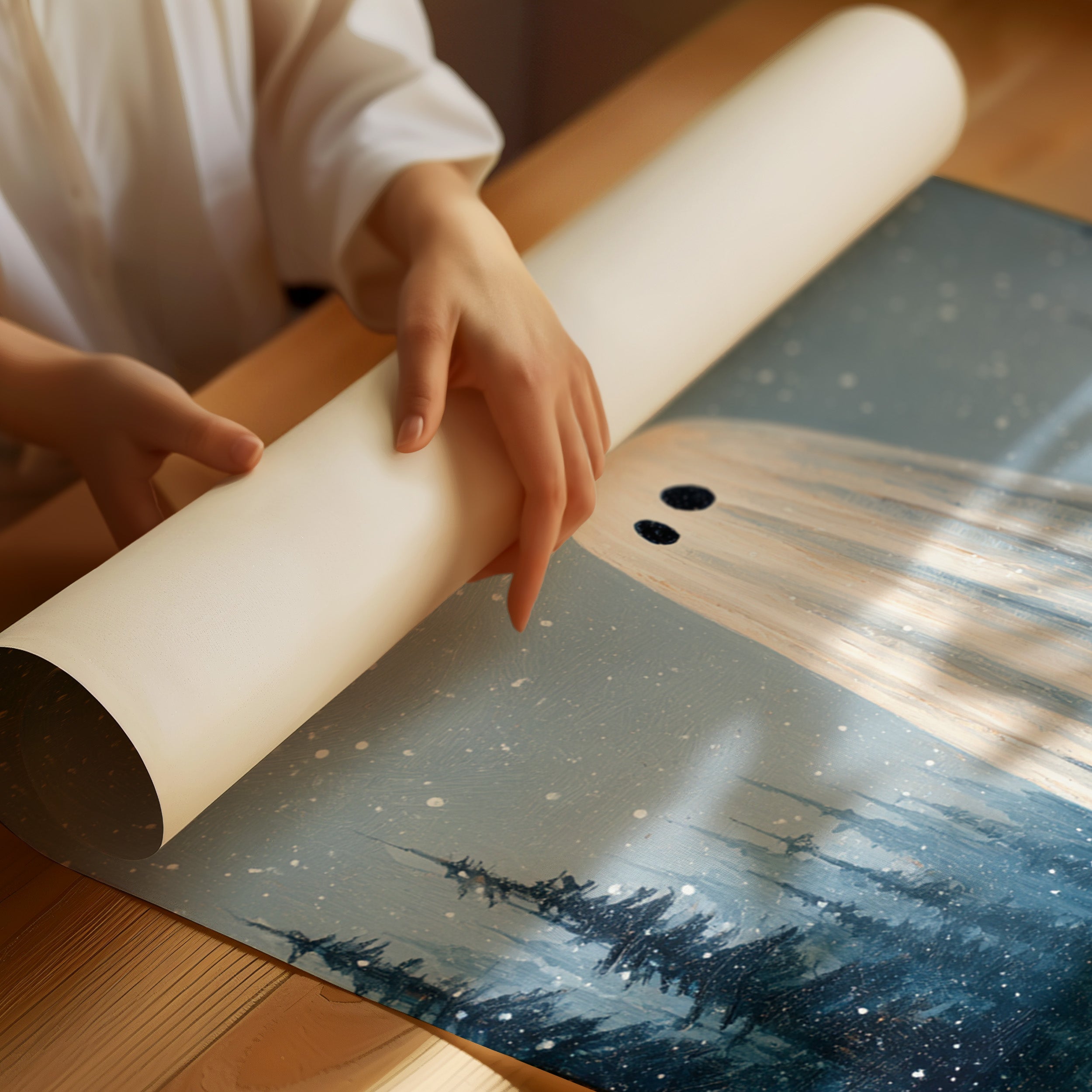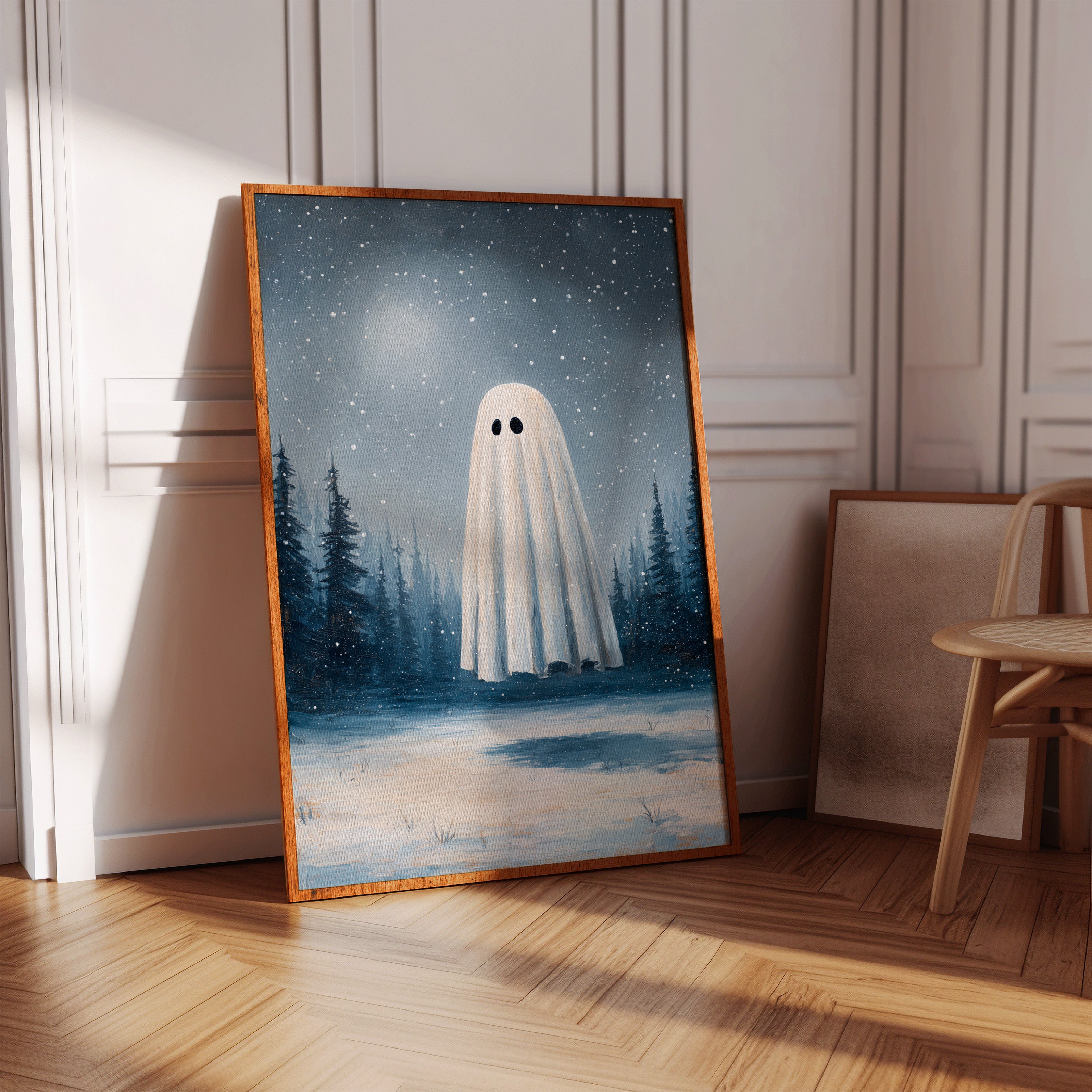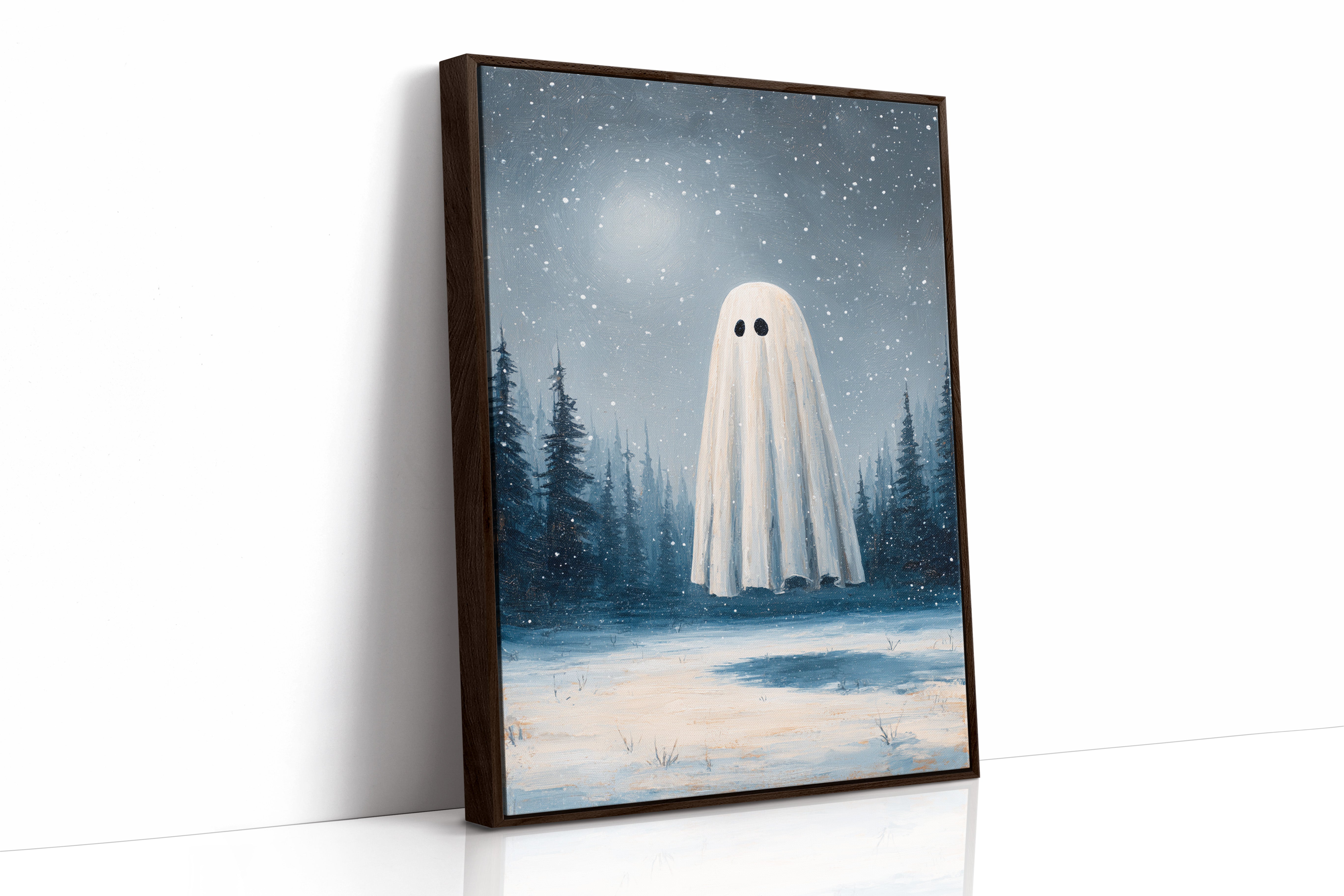 In the stillness of a winter night, a curious figure hovers, draped in white, inviting stories untold. This piece captures the playful spirit of the Artisanal collection, blending whimsy with a touch of nostalgia. As snowflakes dance around, the contrast of the ghostly figure against the dark pines evokes a sense of wonder and intrigue. Perfect for a cozy reading nook or a child's bedroom, this art piece invites imagination and warmth.