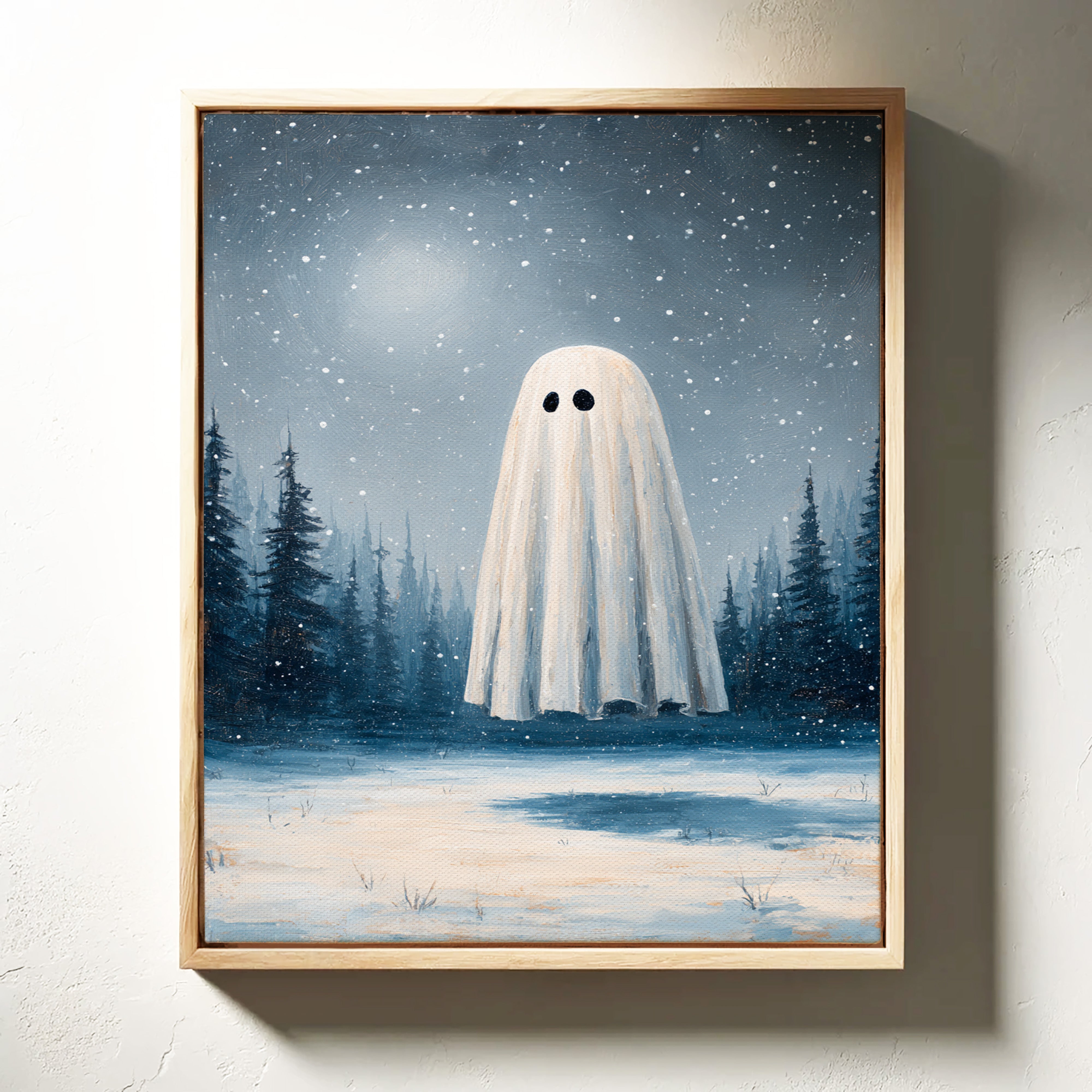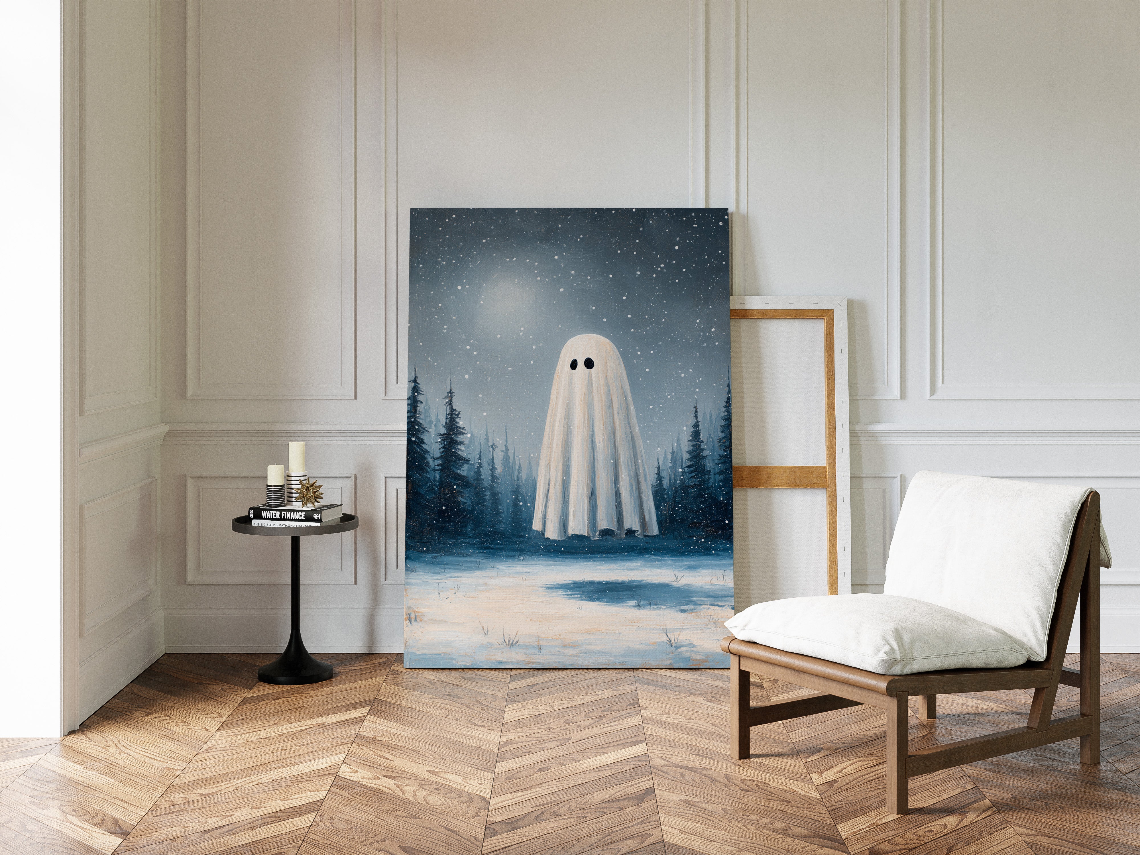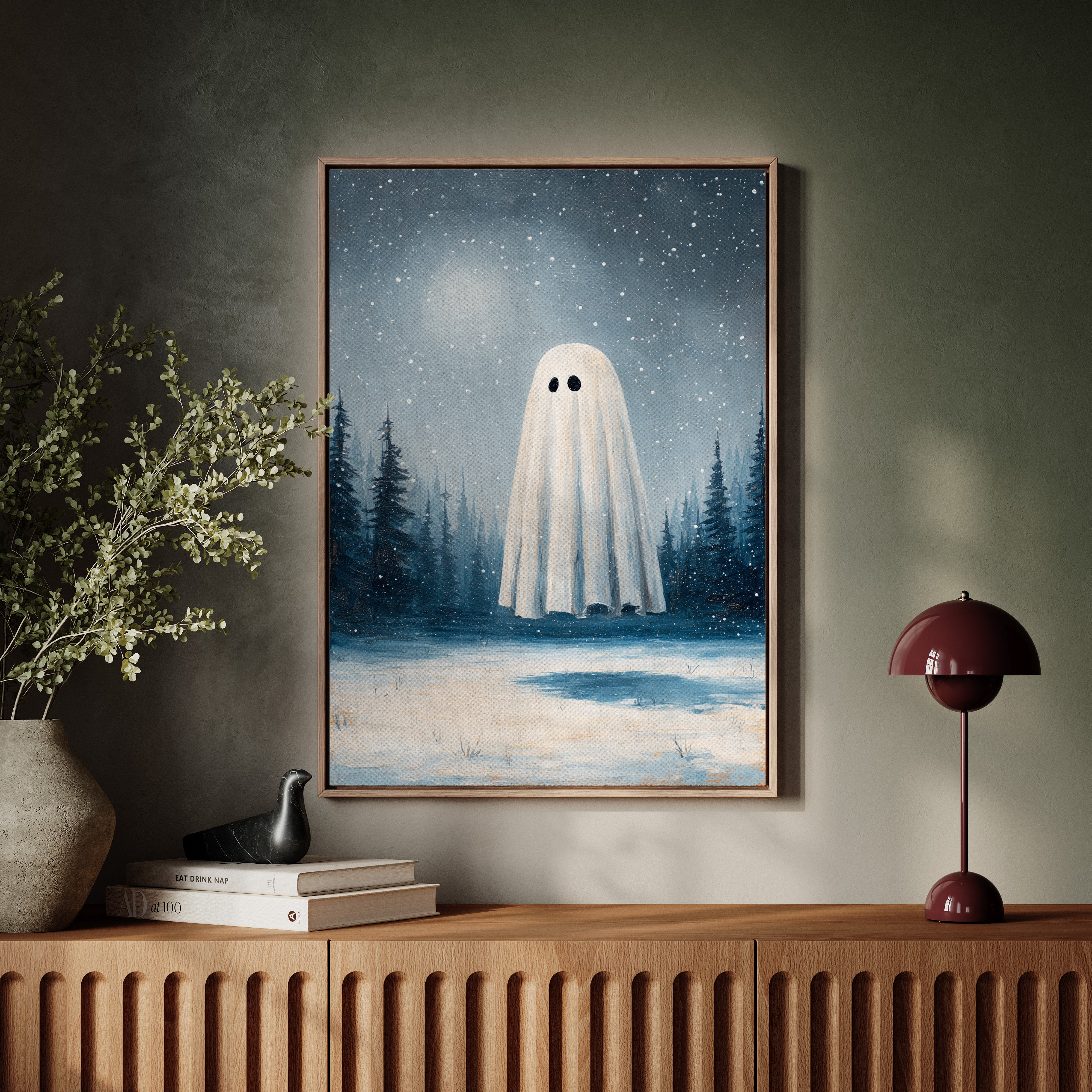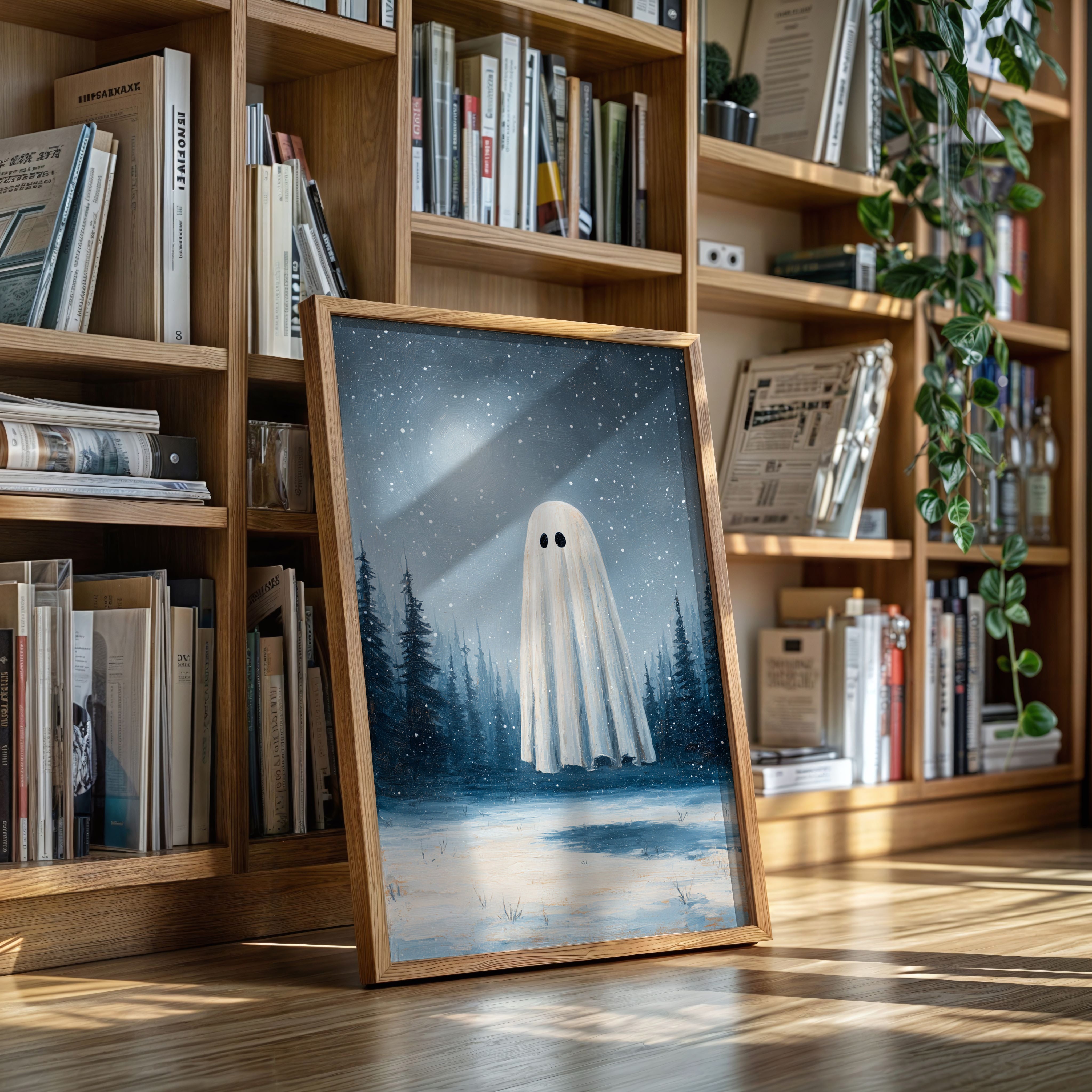 In the stillness of a winter night, a curious figure hovers, draped in white, inviting stories untold. This piece captures the playful spirit of the Artisanal collection, blending whimsy with a touch of nostalgia. As snowflakes dance around, the contrast of the ghostly figure against the dark pines evokes a sense of wonder and intrigue. Perfect for a cozy reading nook or a child's bedroom, this art piece invites imagination and warmth.
