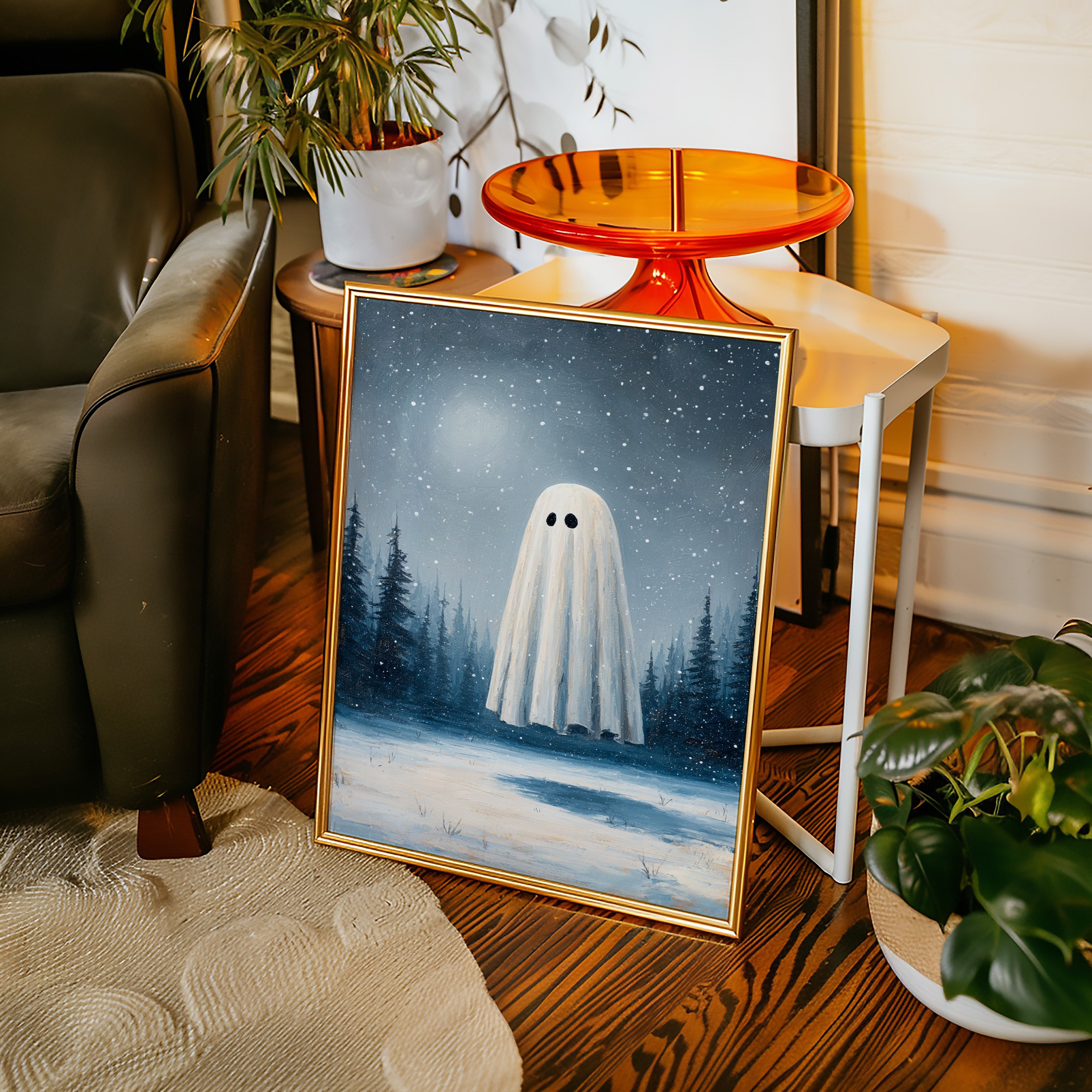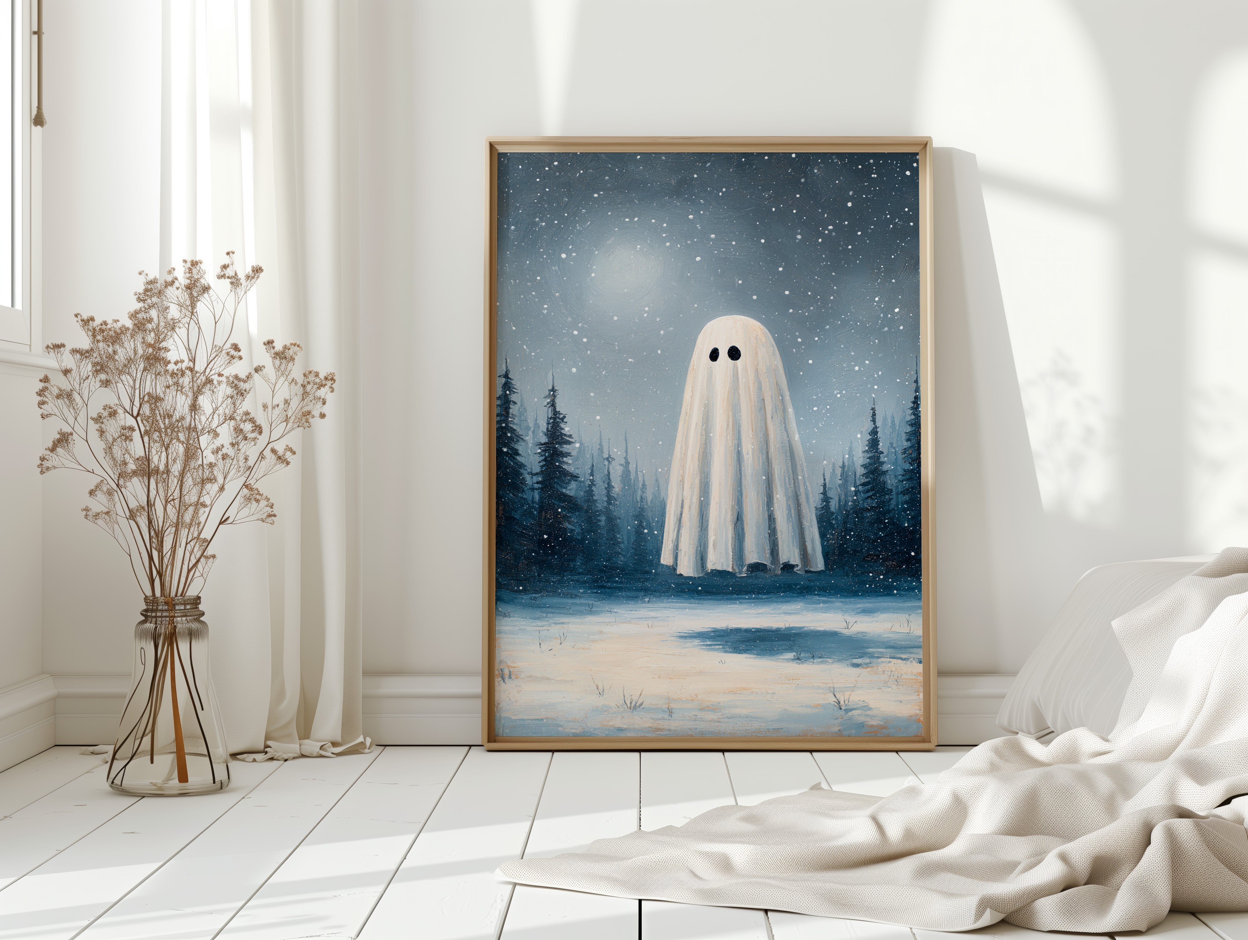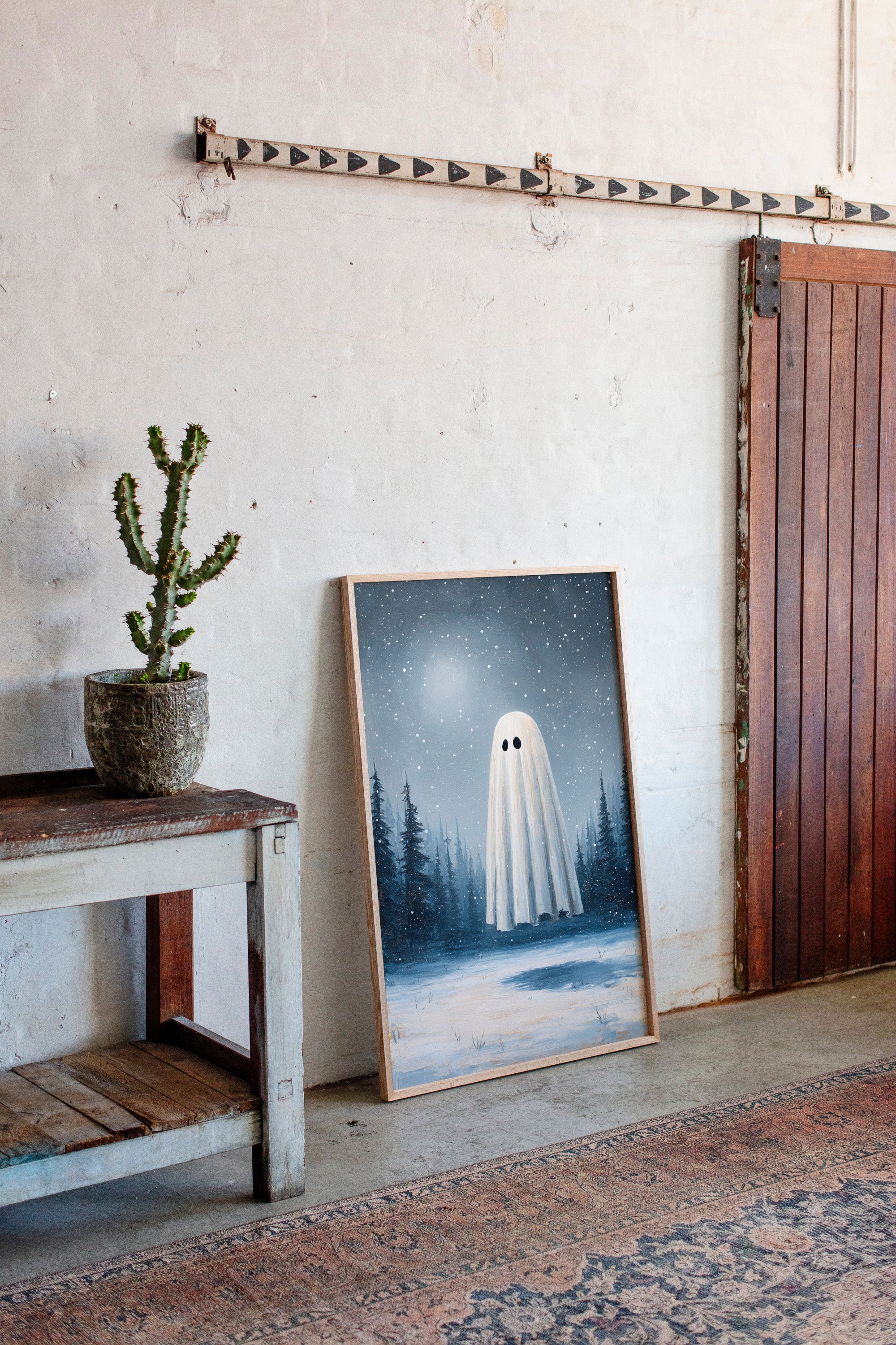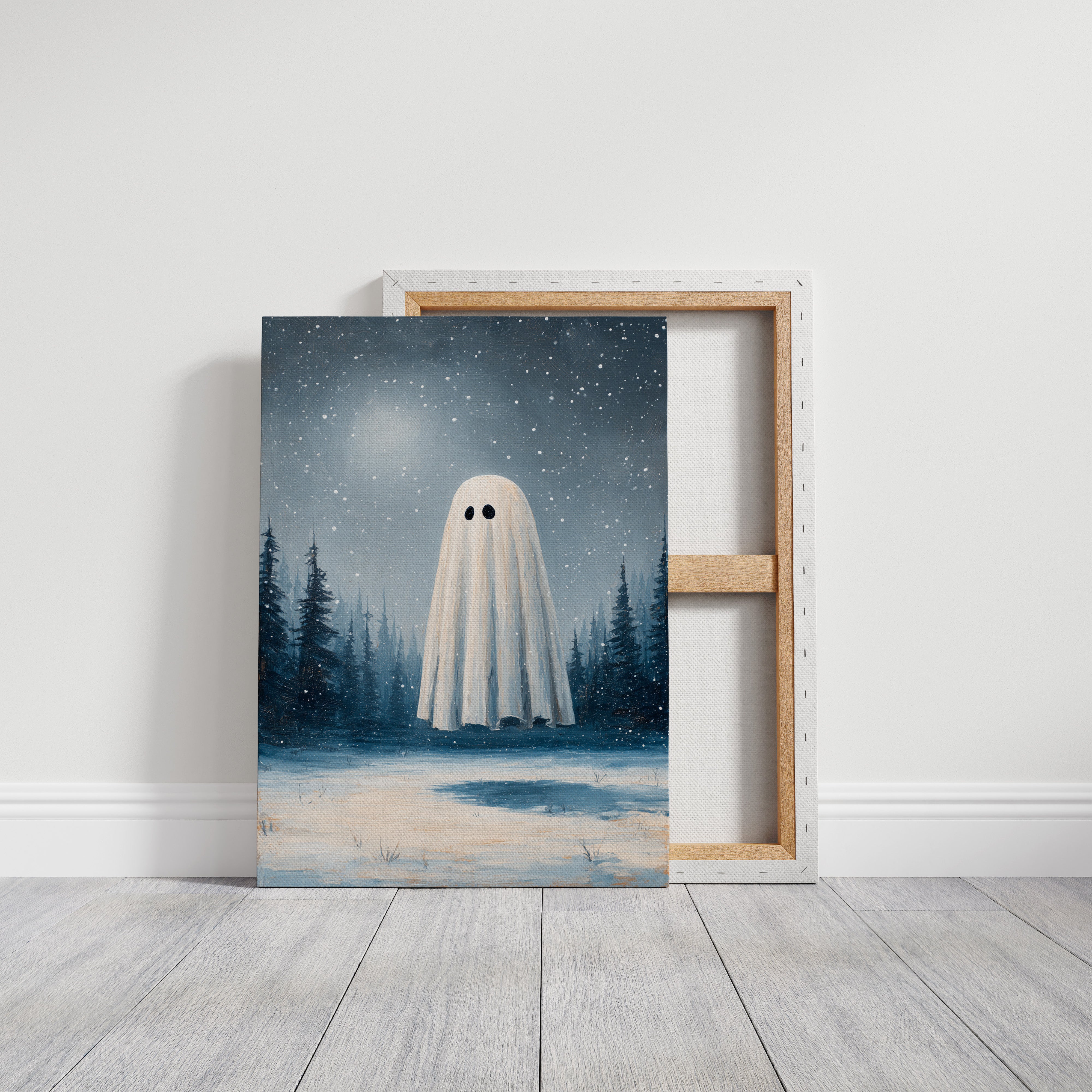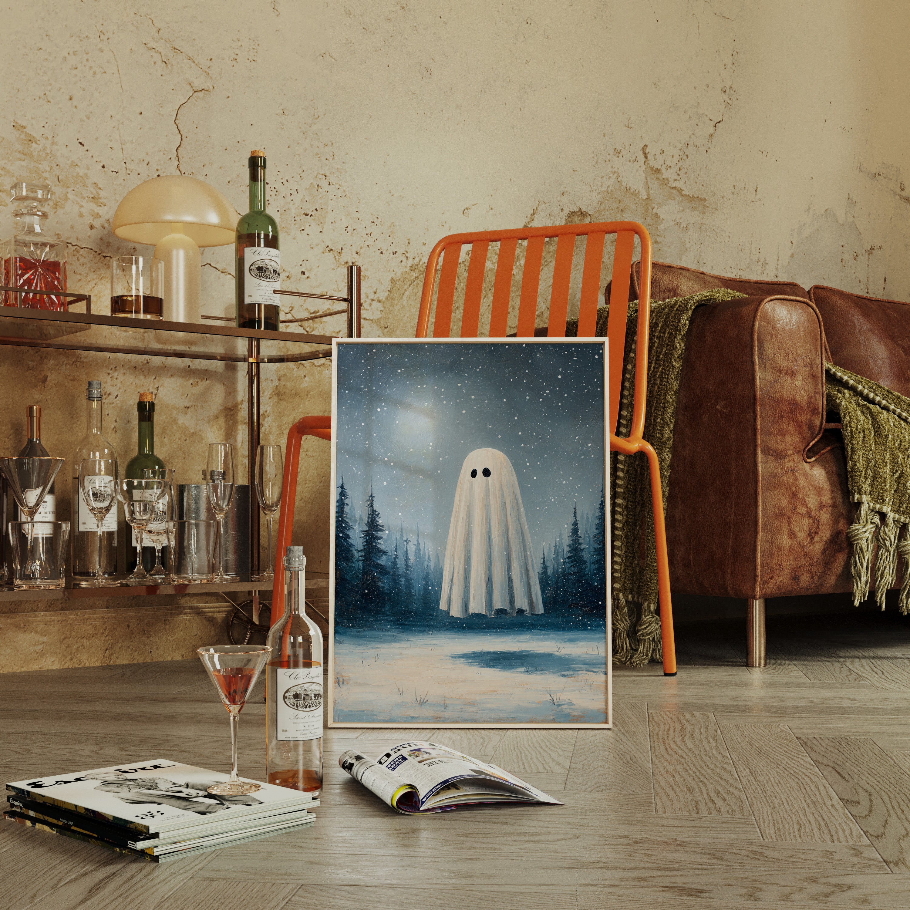 In the stillness of a winter night, a curious figure hovers, draped in white, inviting stories untold. This piece captures the playful spirit of the Artisanal collection, blending whimsy with a touch of nostalgia. As snowflakes dance around, the contrast of the ghostly figure against the dark pines evokes a sense of wonder and intrigue. Perfect for a cozy reading nook or a child's bedroom, this art piece invites imagination and warmth.