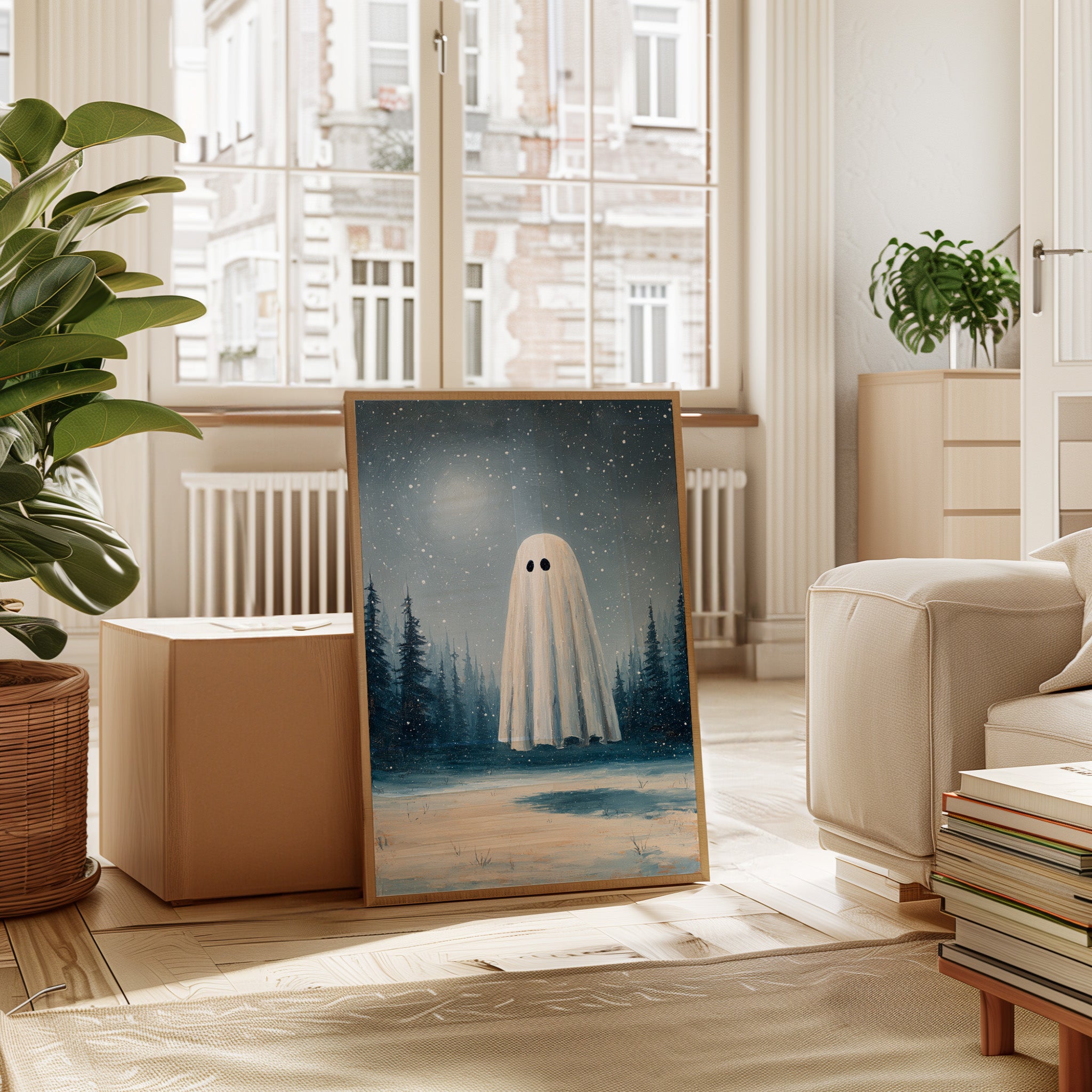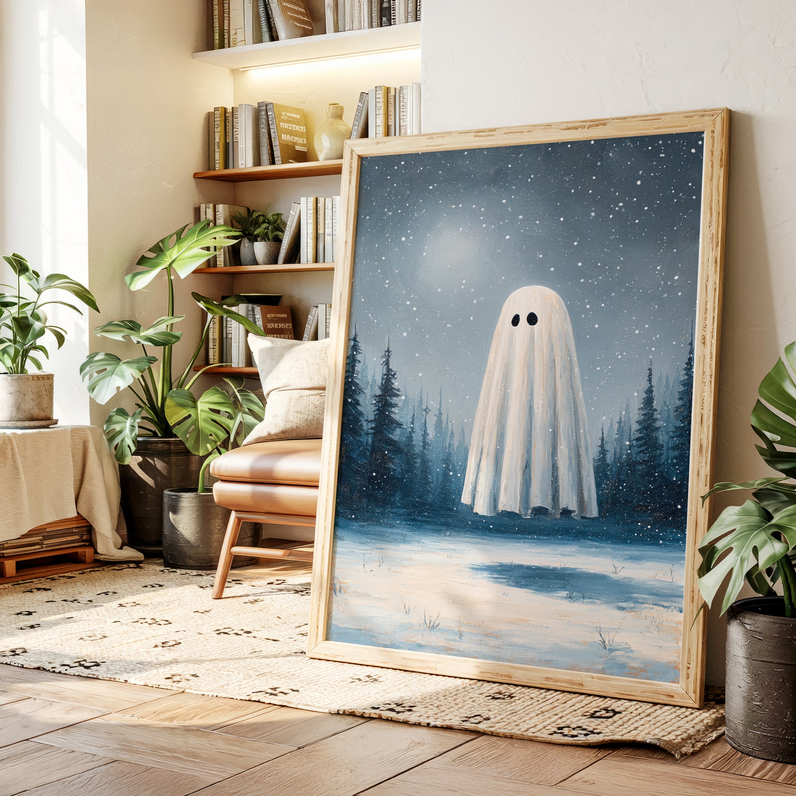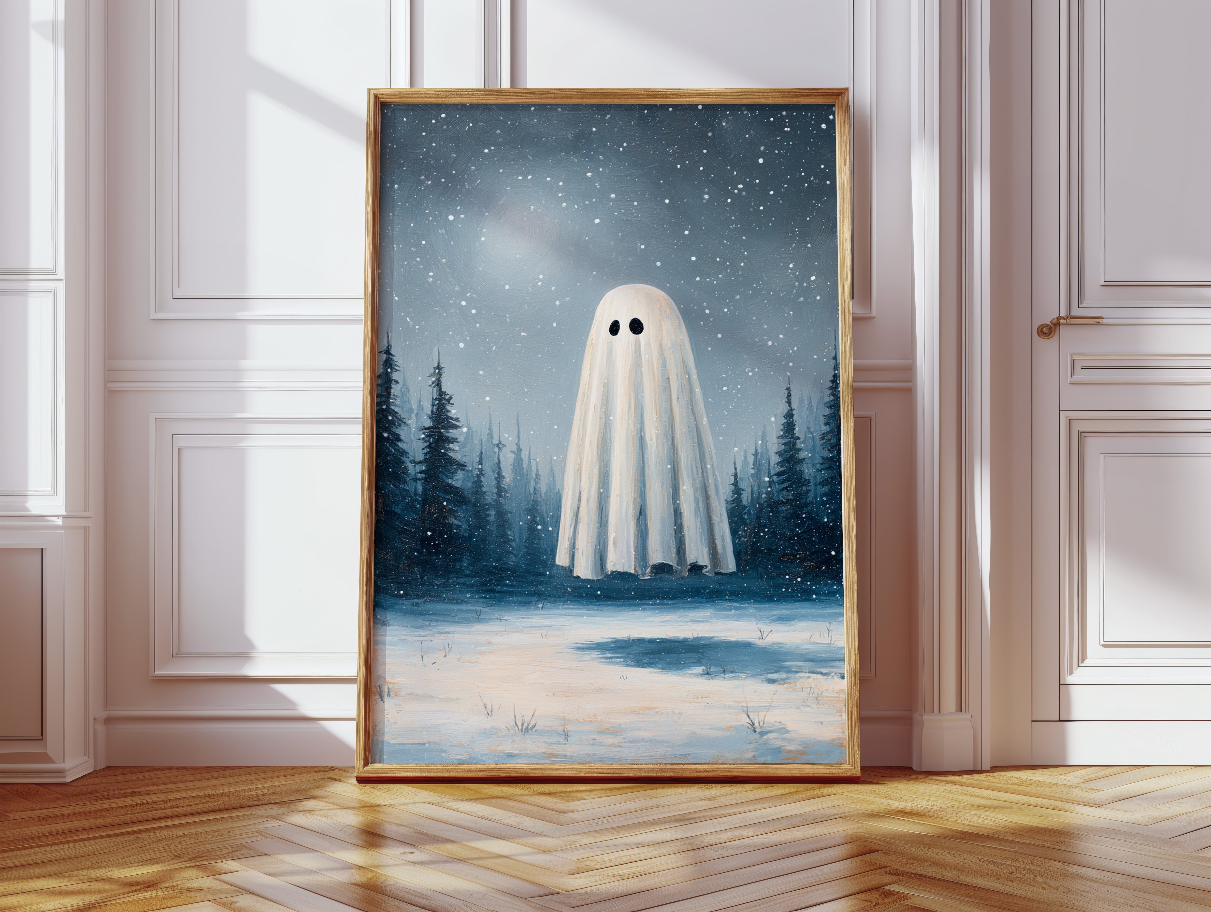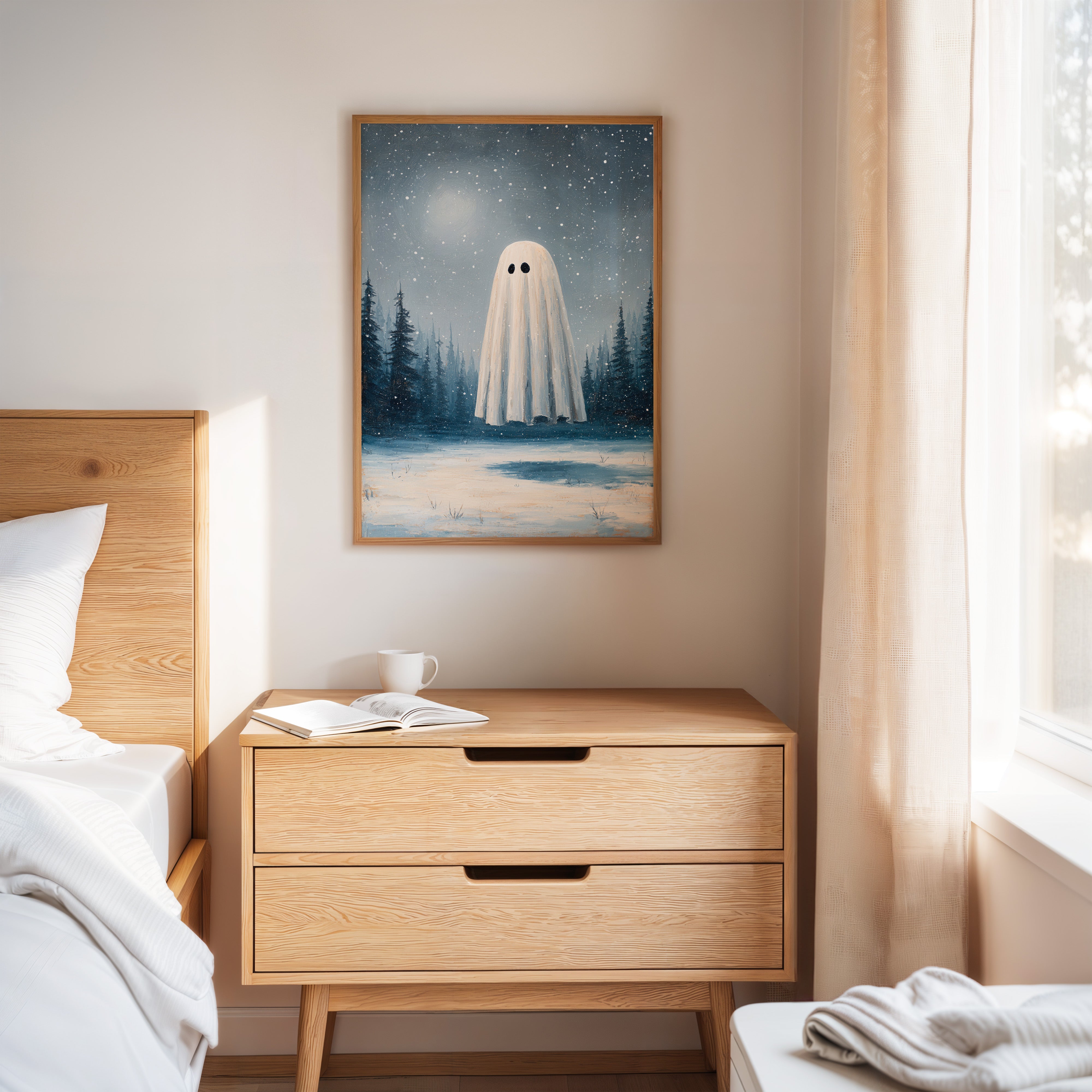 In the stillness of a winter night, a curious figure hovers, draped in white, inviting stories untold. This piece captures the playful spirit of the Artisanal collection, blending whimsy with a touch of nostalgia. As snowflakes dance around, the contrast of the ghostly figure against the dark pines evokes a sense of wonder and intrigue. Perfect for a cozy reading nook or a child's bedroom, this art piece invites imagination and warmth.