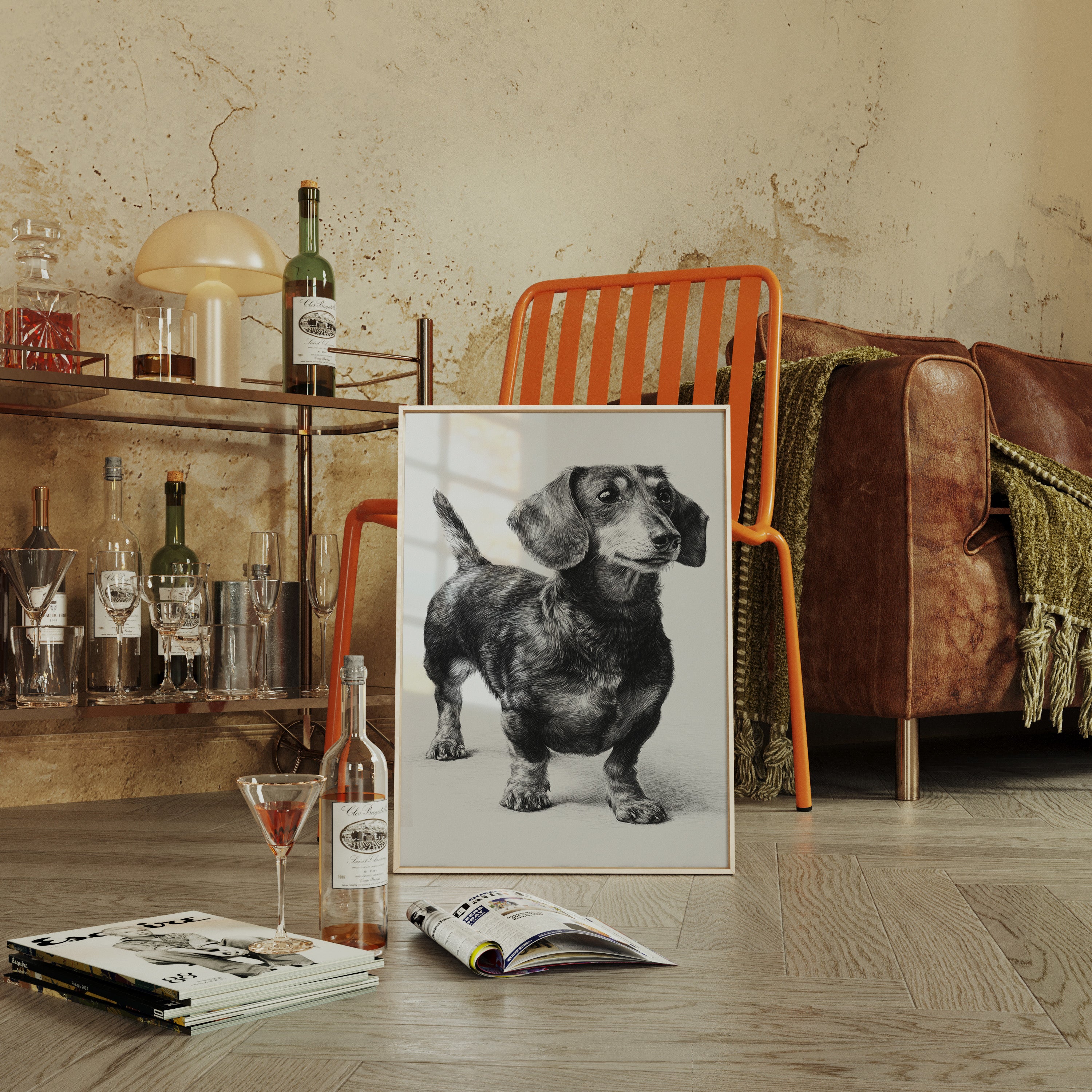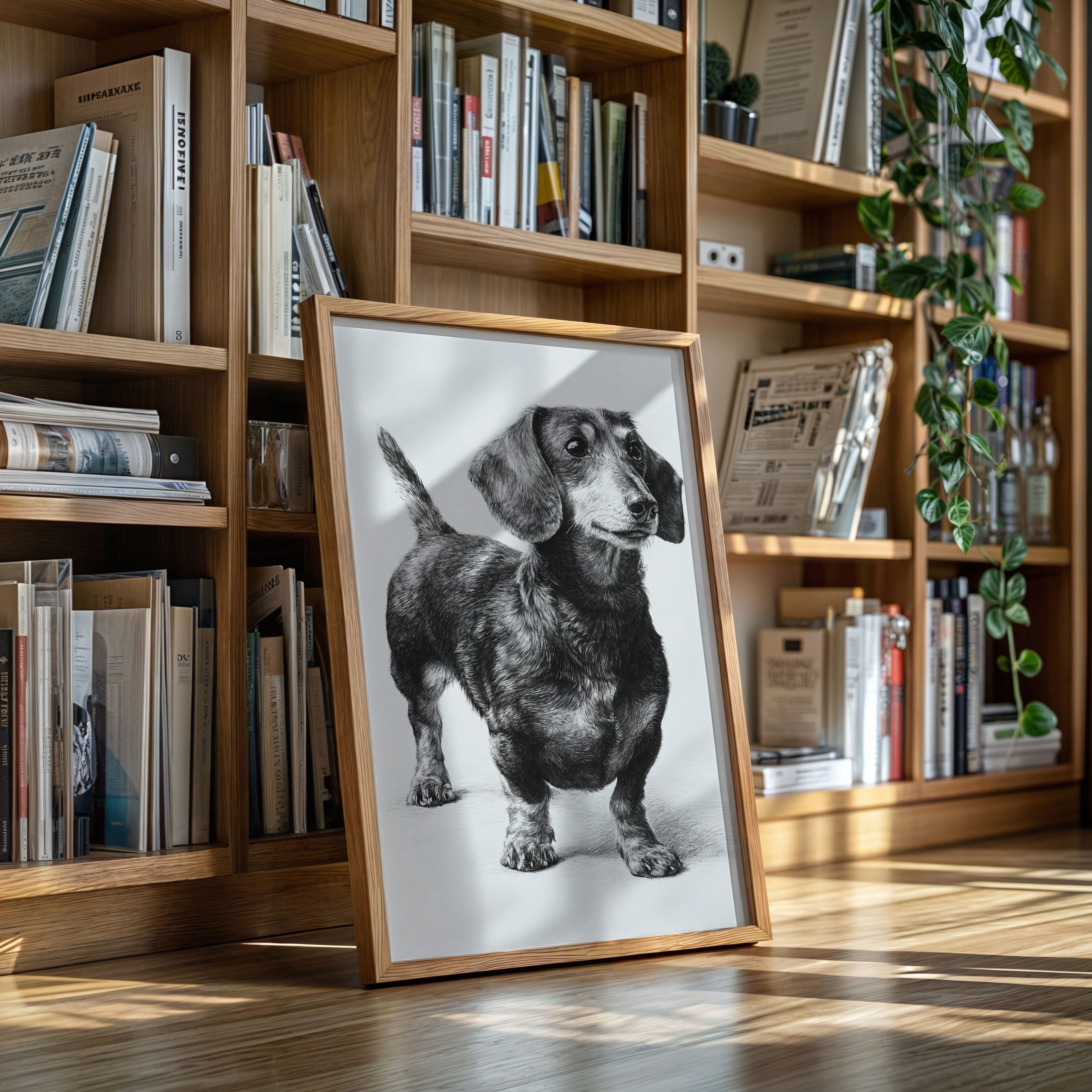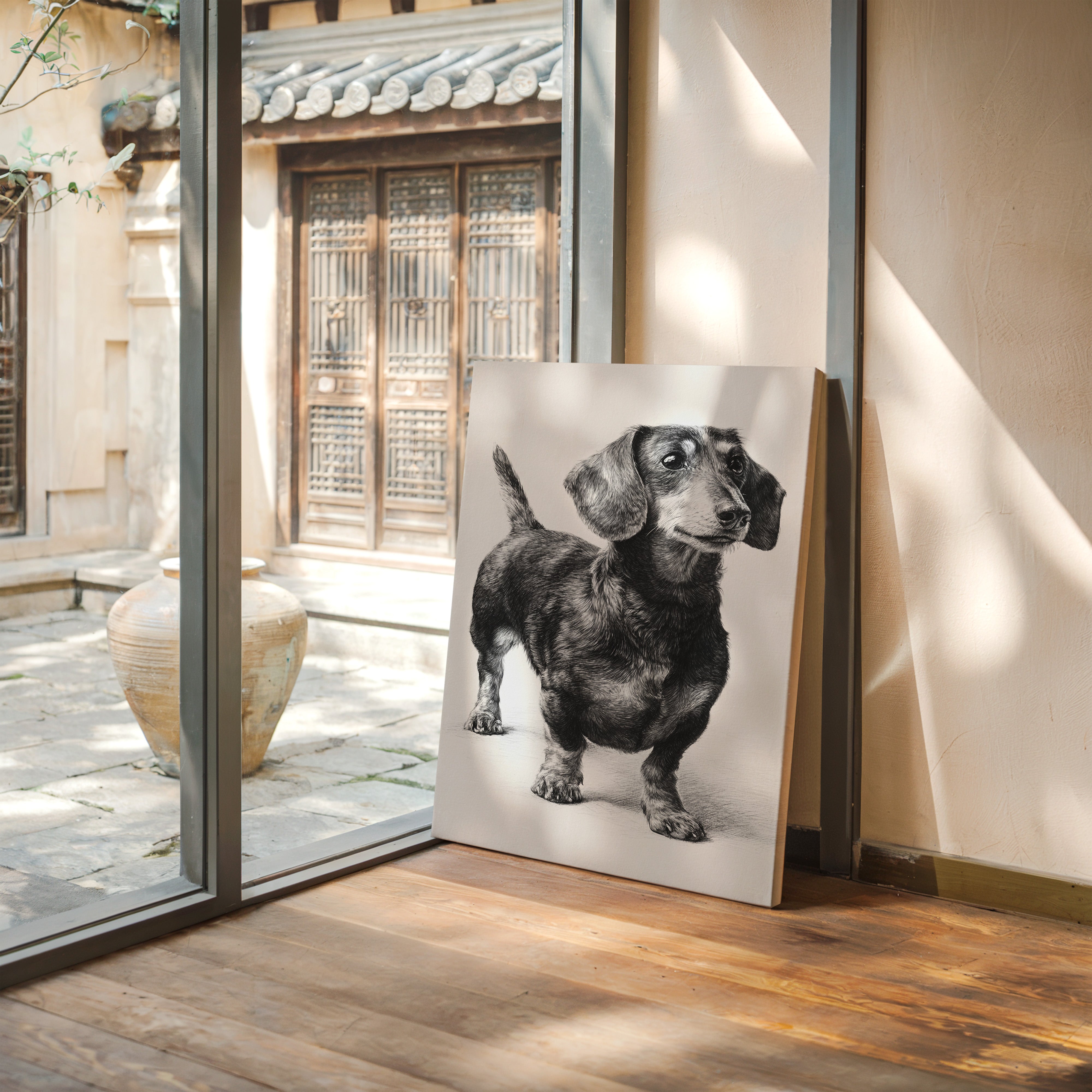 In a moment frozen in time, a dachshund stands proudly, embodying the spirit of loyalty and warmth. This piece captures the essence of the artisanal craft, celebrating the beauty of everyday life. With intricate details highlighting the soft sheen of fur and the gentle curve of its form, the artwork invites viewers to appreciate the charm and character of this beloved companion. Ideal for a cozy living room or a welcoming entryway, this piece adds a touch of heartwarming charm to any space.