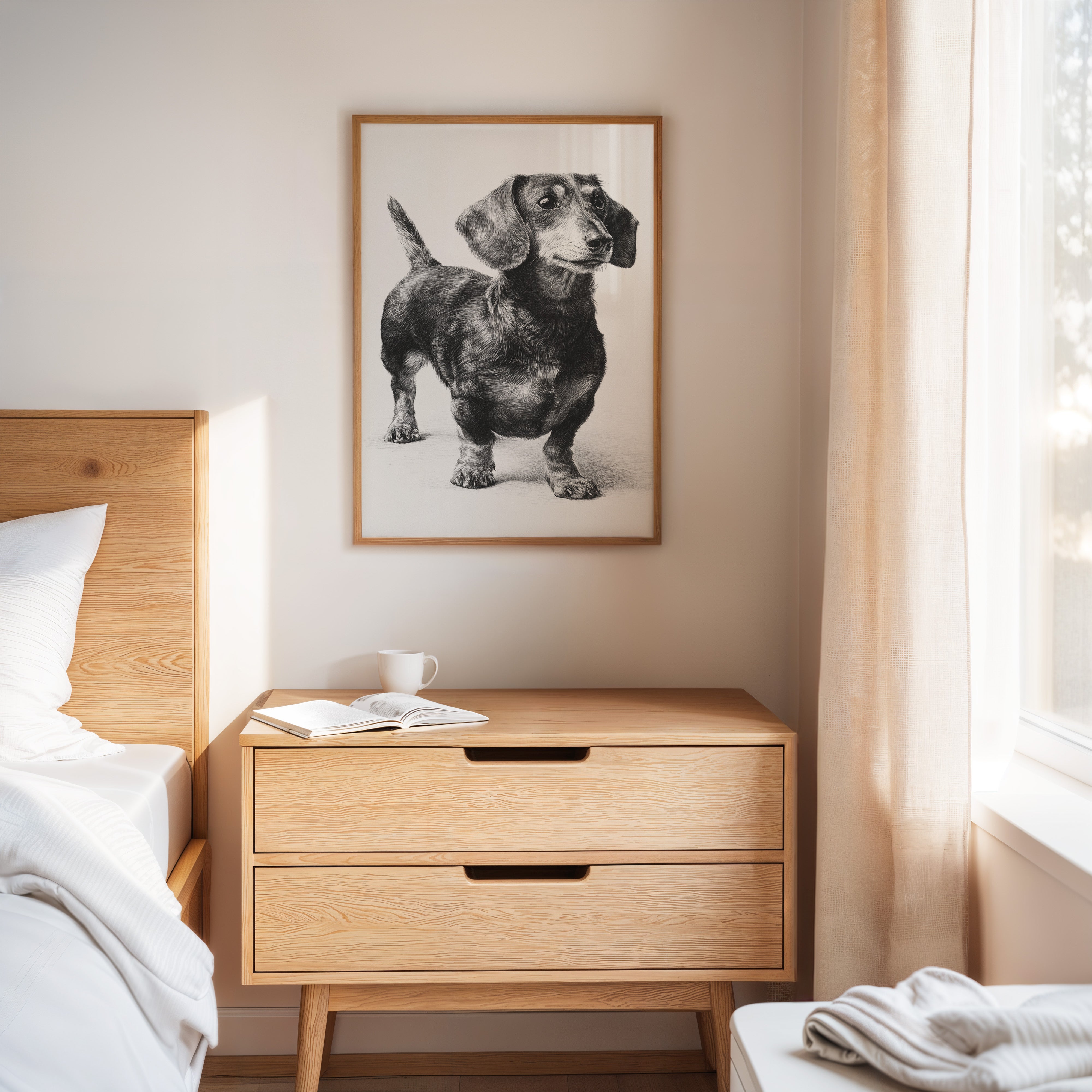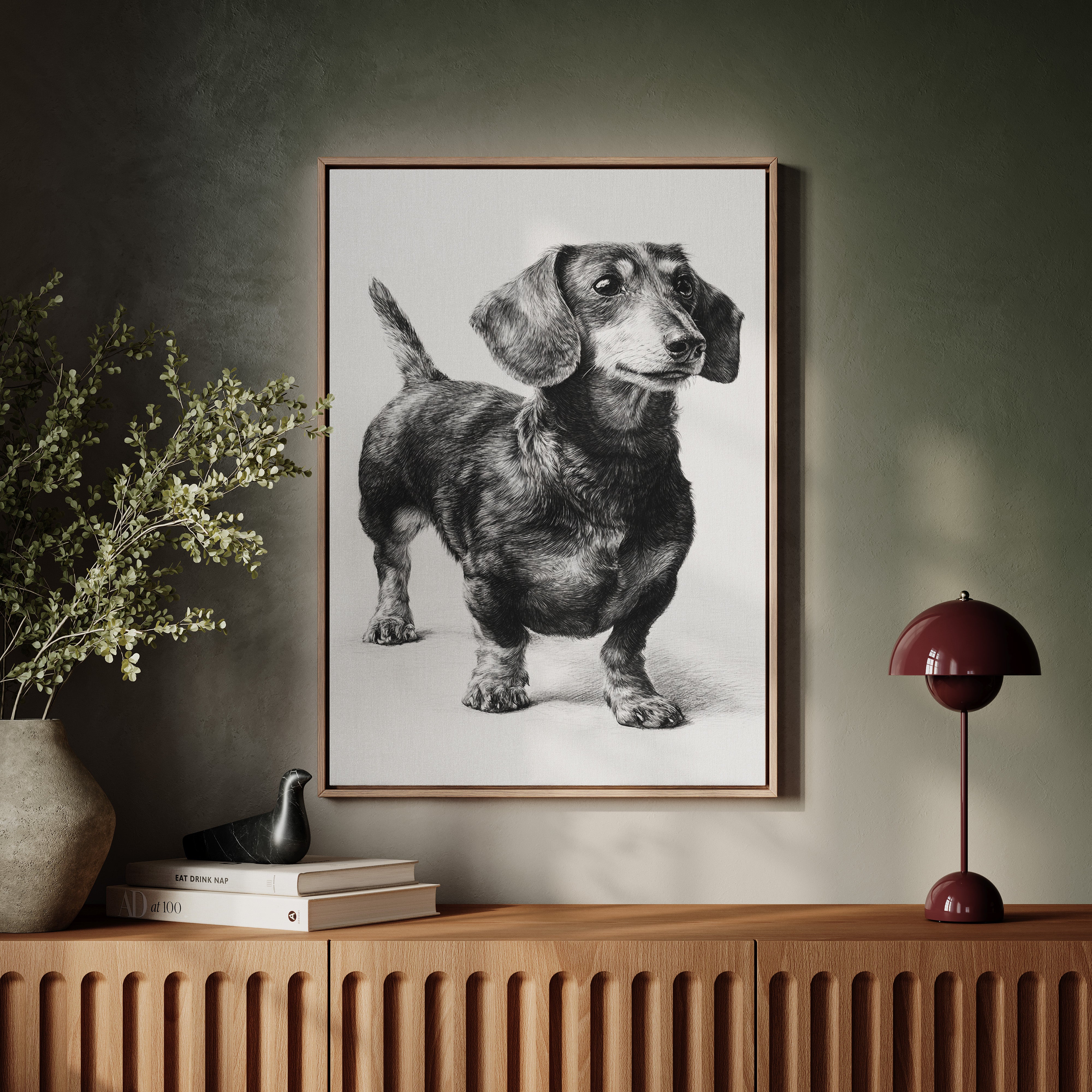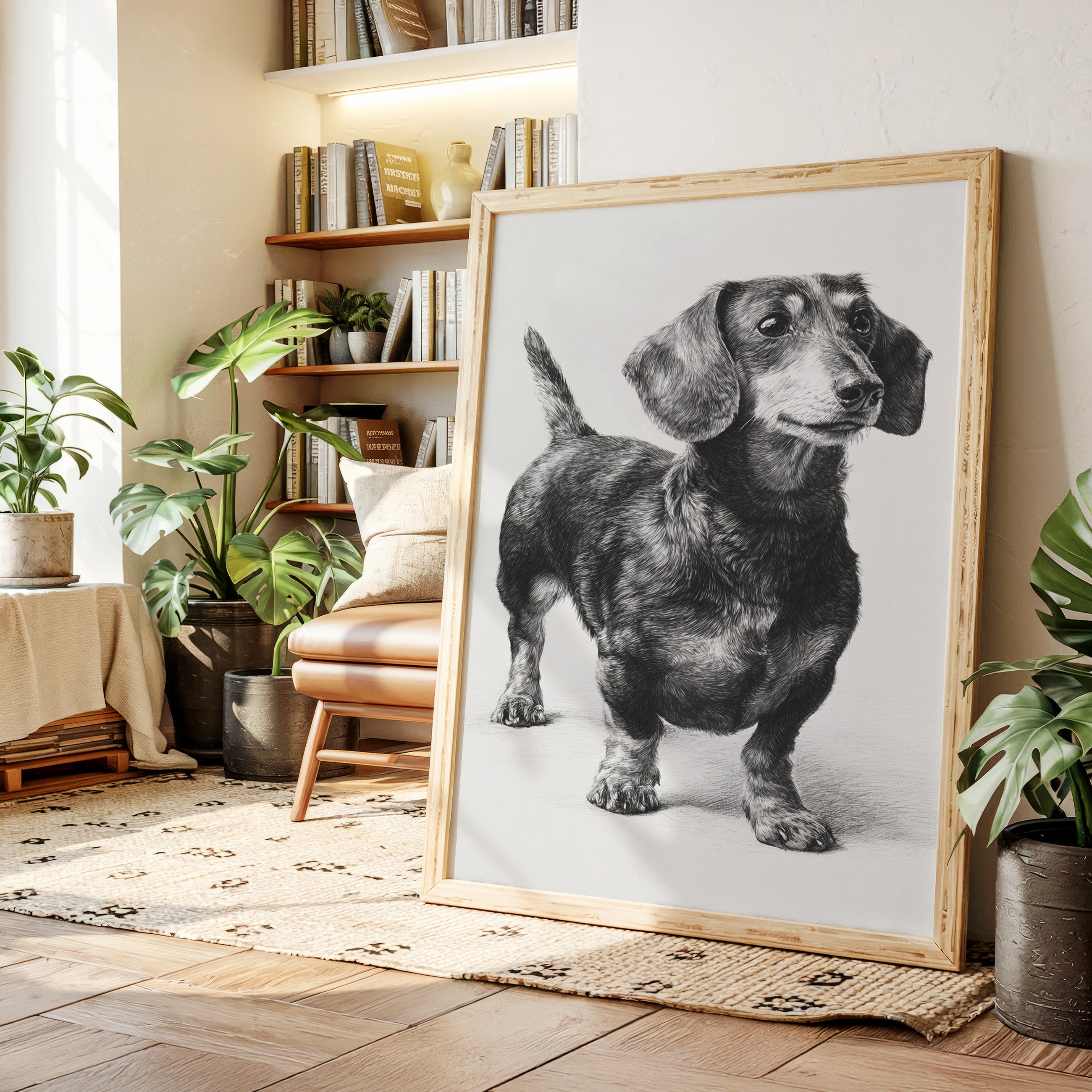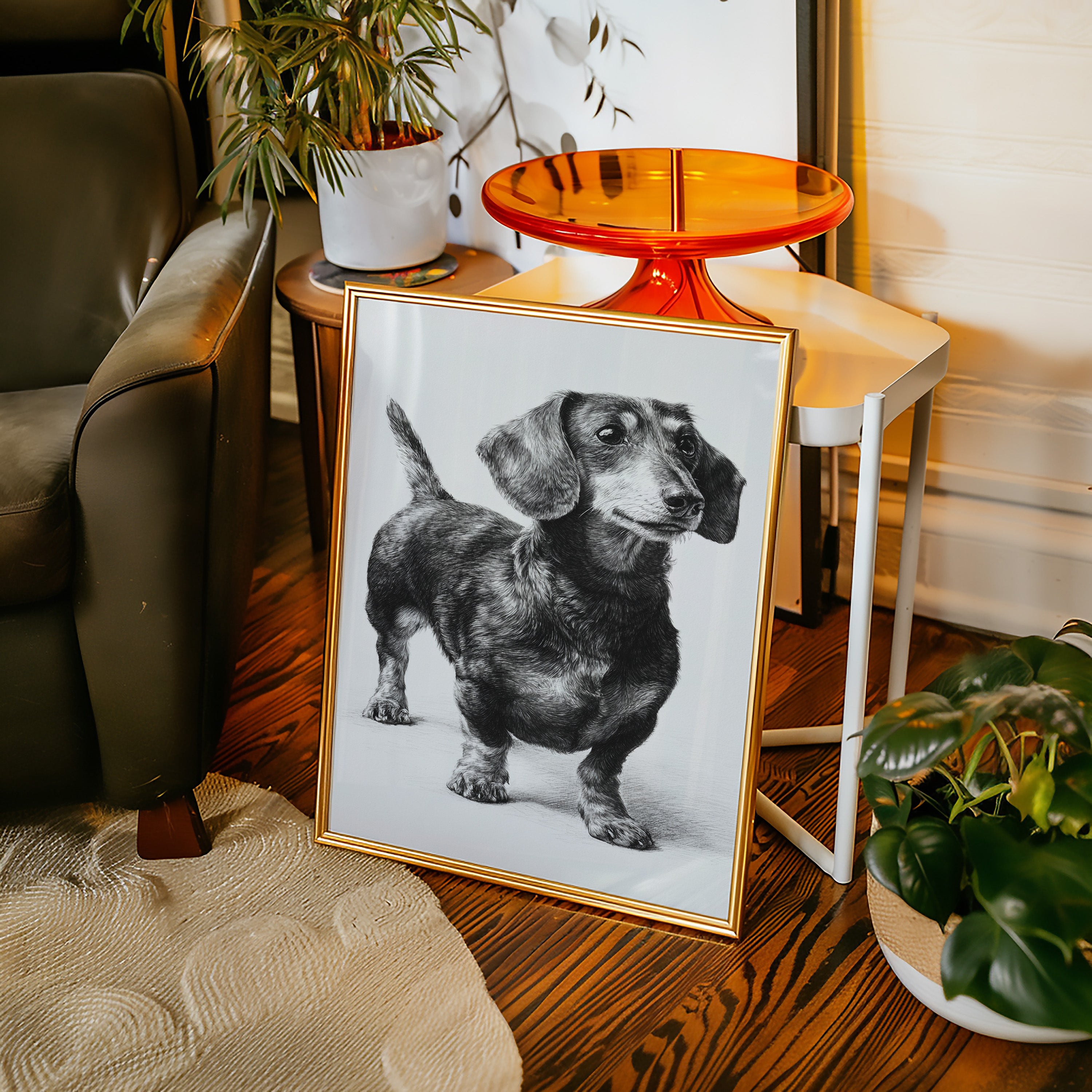 In a moment frozen in time, a dachshund stands proudly, embodying the spirit of loyalty and warmth. This piece captures the essence of the artisanal craft, celebrating the beauty of everyday life. With intricate details highlighting the soft sheen of fur and the gentle curve of its form, the artwork invites viewers to appreciate the charm and character of this beloved companion. Ideal for a cozy living room or a welcoming entryway, this piece adds a touch of heartwarming charm to any space.