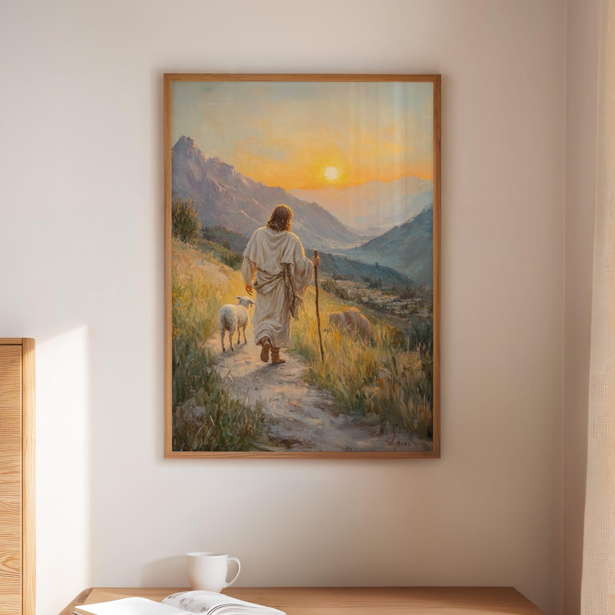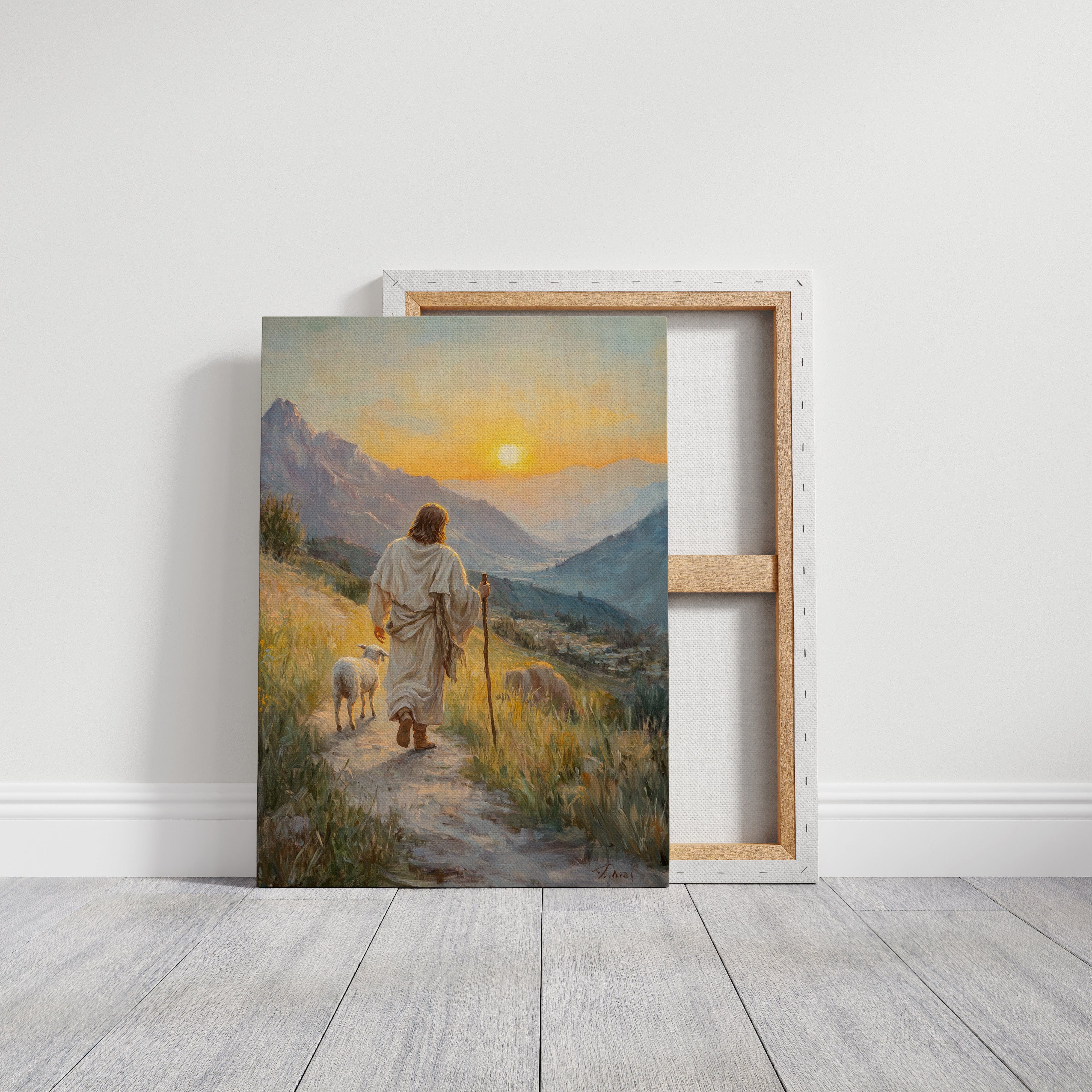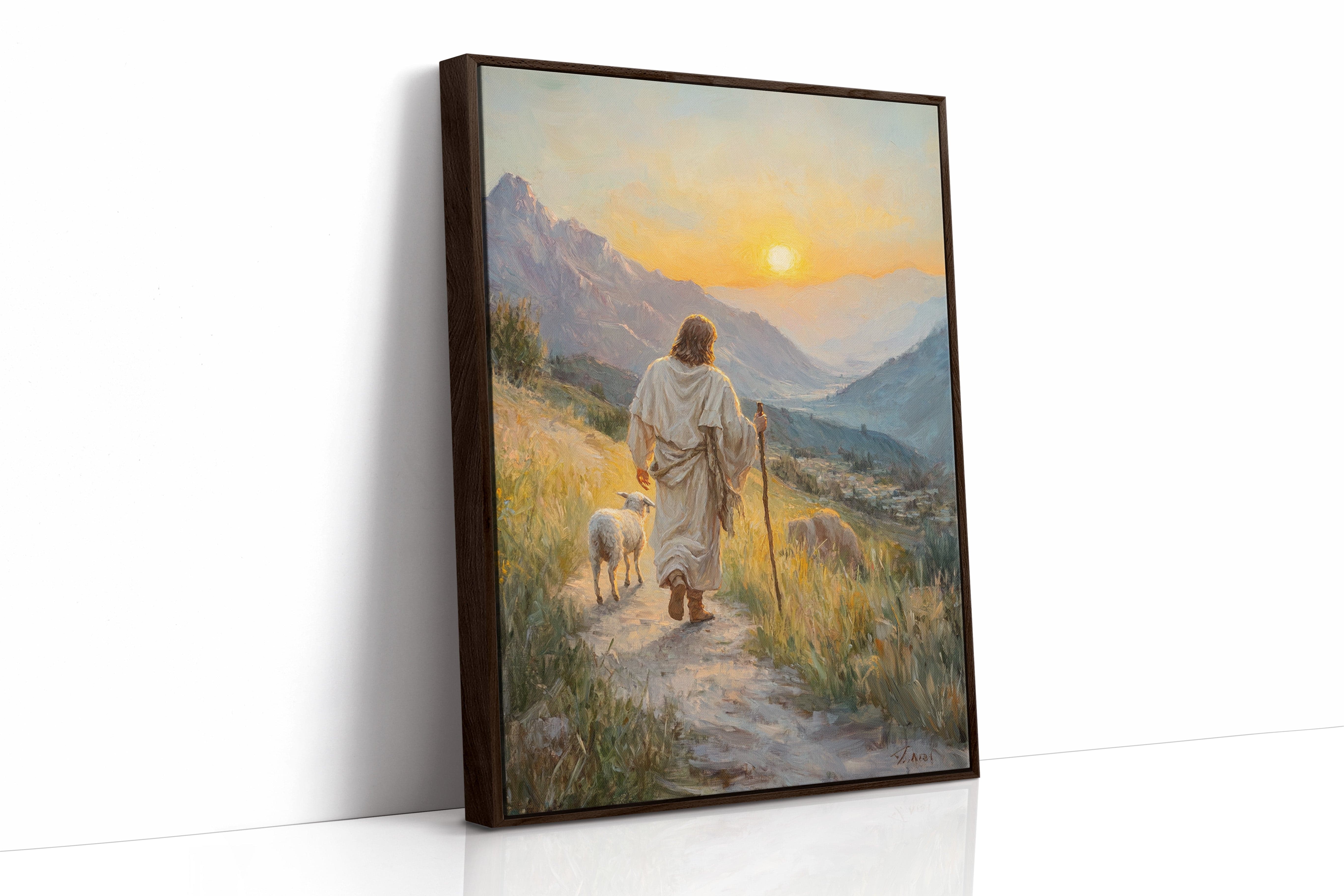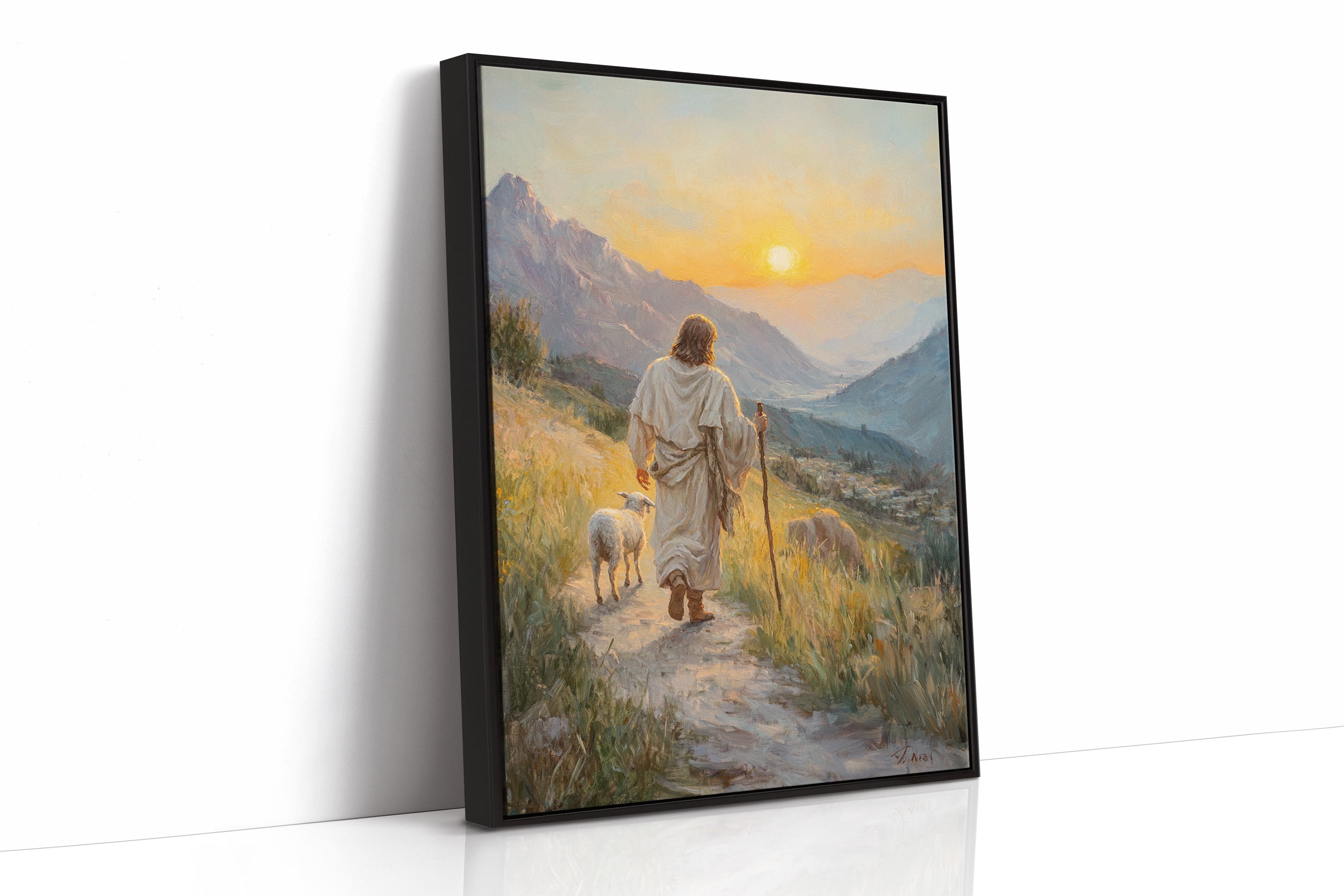 Embrace peace, faith, and divine guidance with this beautifully painted depiction of Jesus as the Good Shepherd. Set against a breathtaking mountain sunset, this artwork symbolizes love, protection, and spiritual grace, making it a perfect addition to any prayer room, church, or home decor.