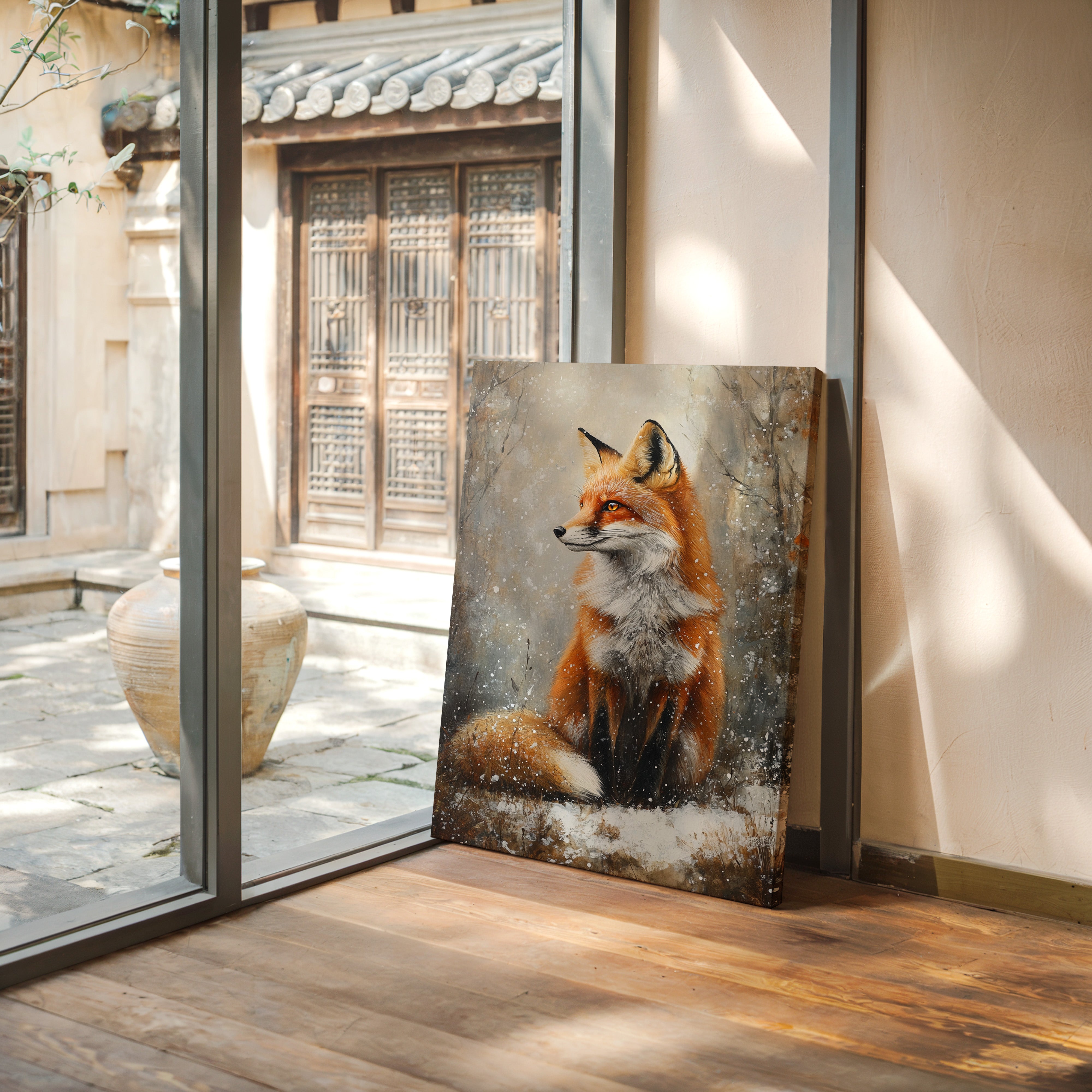 Embrace the gentle beauty of nature with this exquisite portrait of a fox captured in a serene winter landscape. The warm amber hues of its fur contrast beautifully with the soft, snowy backdrop, creating a piece that is both tranquil and captivating. Perfect for adding a touch of wilderness charm to your living space, this artwork embodies the elegance and mystery of the natural world. Ideal for cozy interiors seeking a touch of warmth and sophistication.