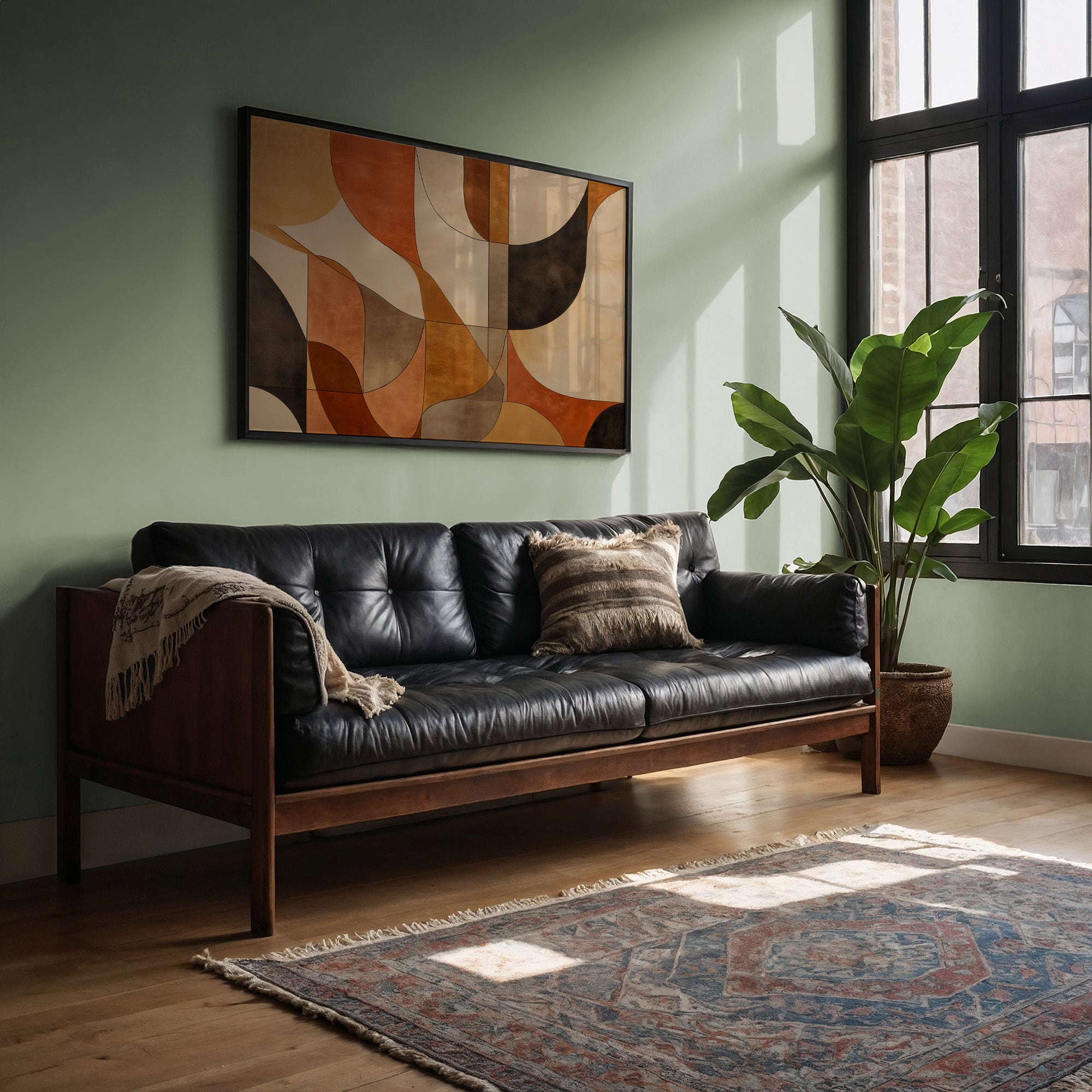 Your artwork should take up 60-75% of wall space above furniture. For standard sofas, choose 24"x36" or larger. When in doubt, go slightly bigger.