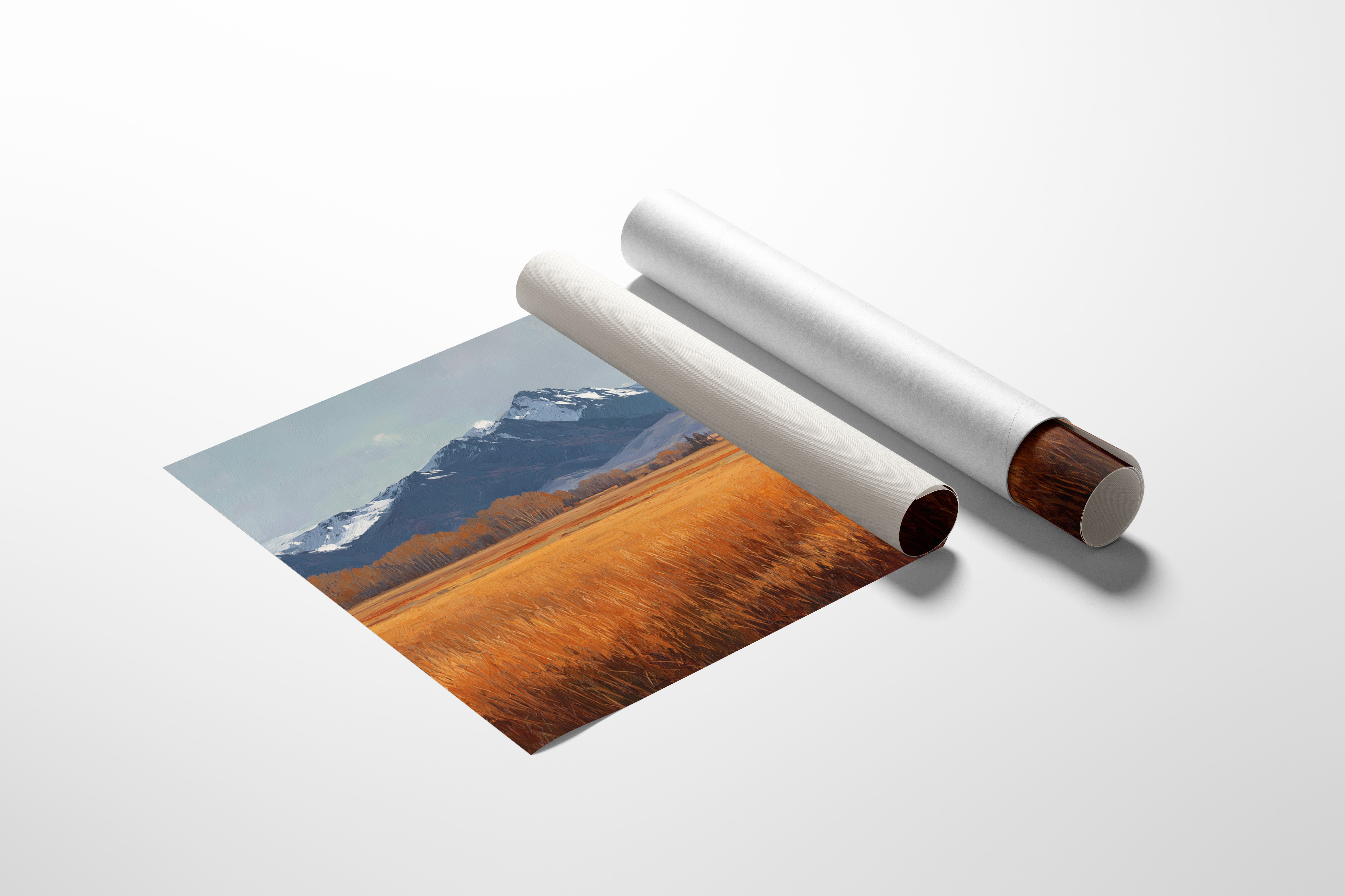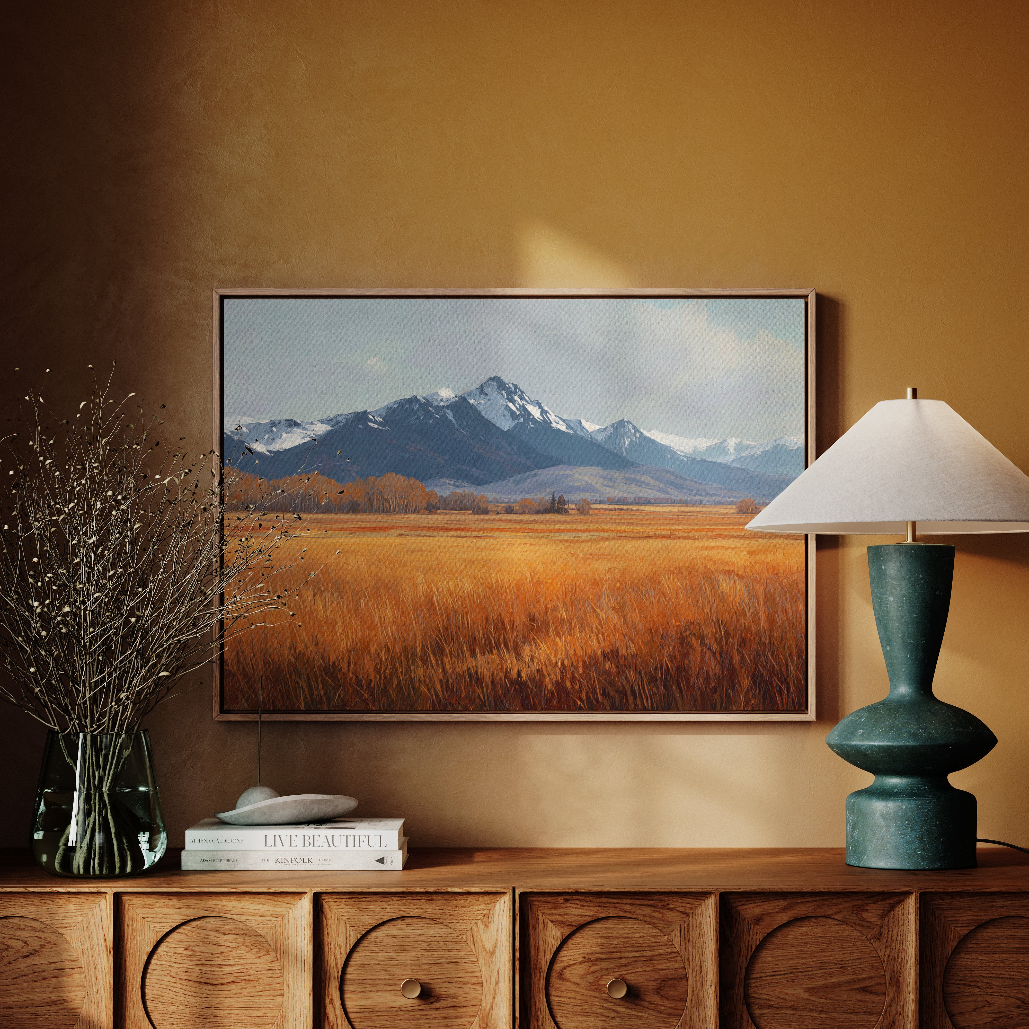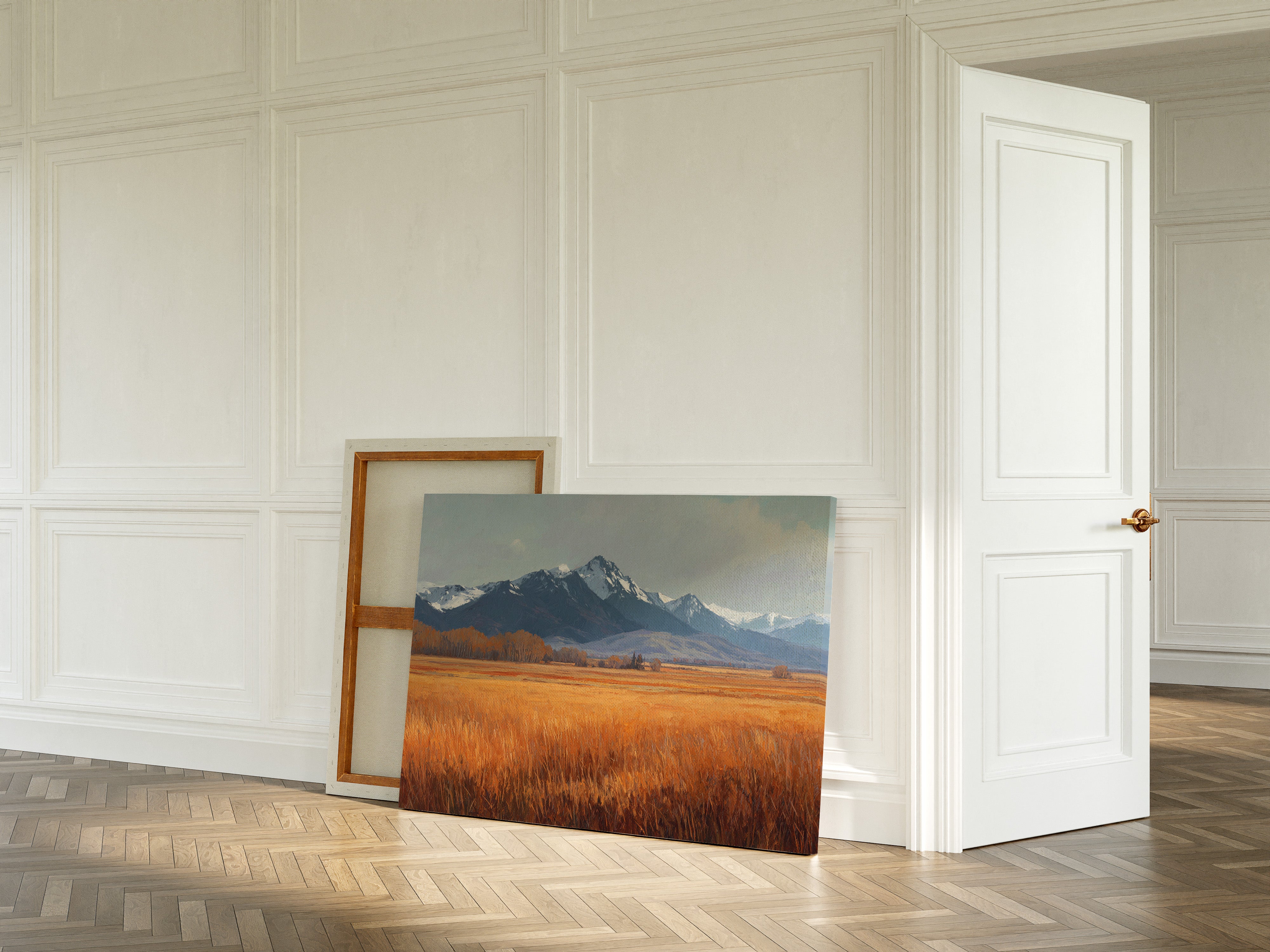 Autumn Wheat Bows To Snowy Peaks | Gallery Canvas / 11" x 9" | $65.00