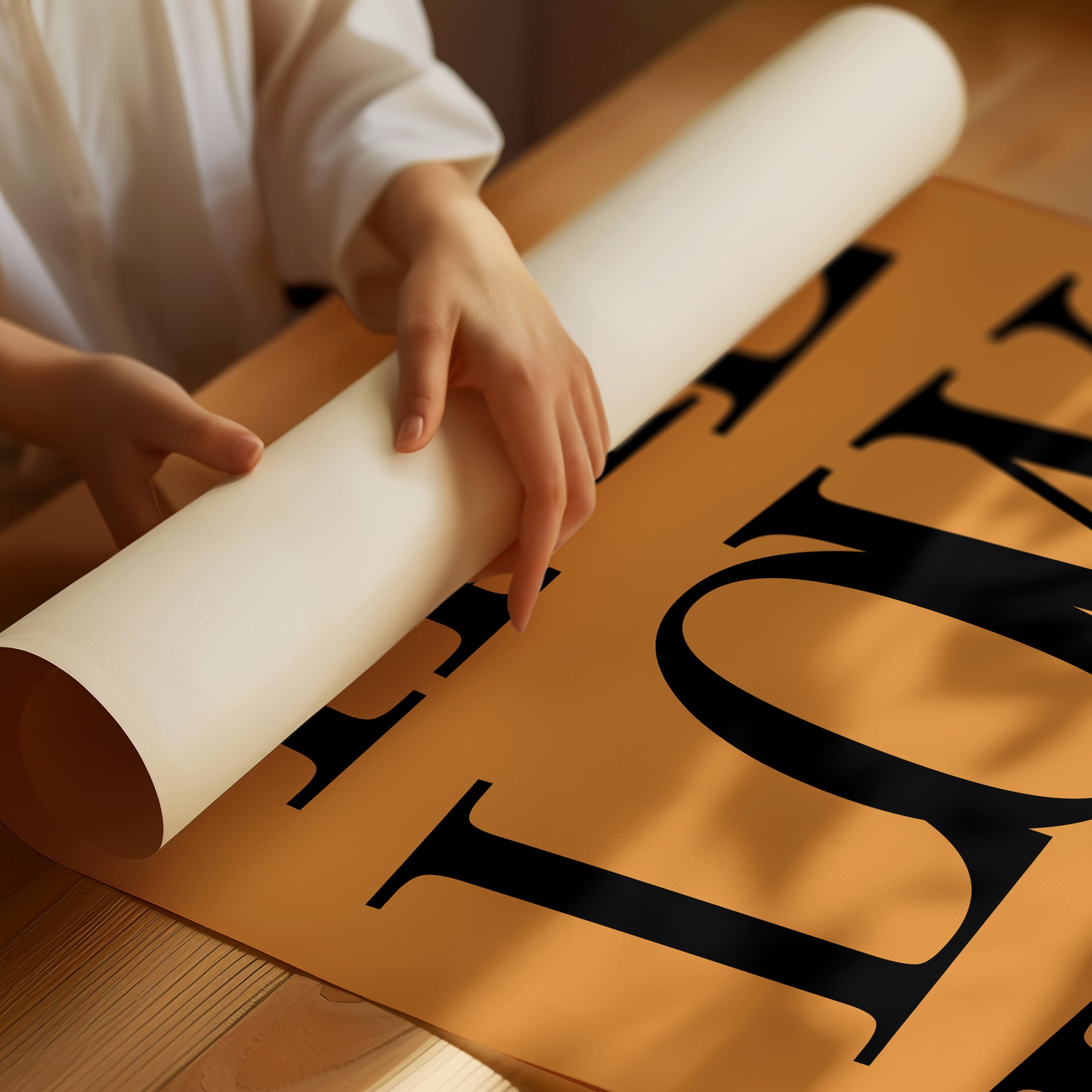 Bold letters carve their declaration against a warm amber backdrop, commanding attention with their stark simplicity. The deep black typography creates a powerful contrast against the golden-orange canvas, evoking the essence of fall's transformative energy. This statement piece balances modern typographic design with a seasonal warmth that invites contemplation. This striking text art would make a statement in entryways, home offices, or minimalist living spaces where its bold presence can anchor a room while maintaining sophisticated simplicity.
