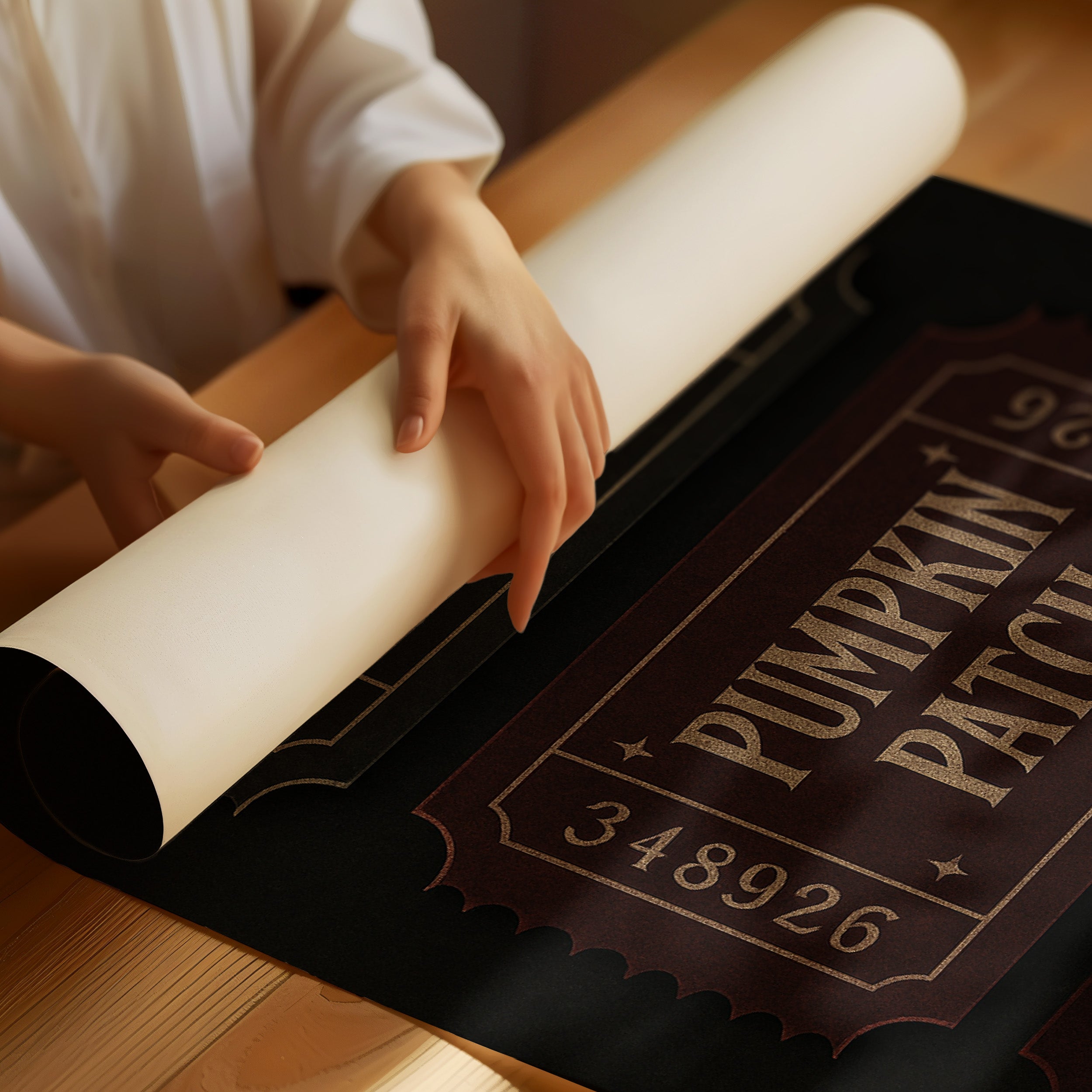 Gold-embossed lettering gleams against rich dark backgrounds, inviting you to three quintessential fall destinations. The vintage ticket design evokes nostalgia for carnival nights and hayrides under harvest moons, each admission promising its own seasonal adventure. Deep burgundy and black create a sophisticated backdrop for the metallic text, capturing the essence of autumn's mysterious allure and timeless traditions. This elegant typographic piece adds character to entryways, home offices, or as part of a seasonal gallery wall during the fall months.