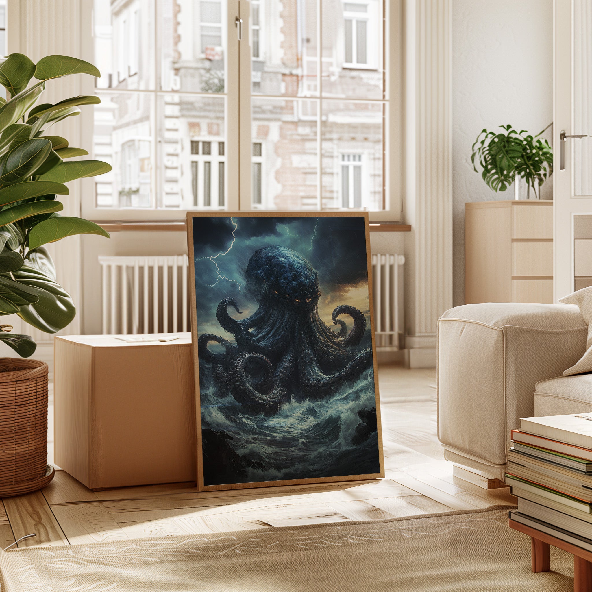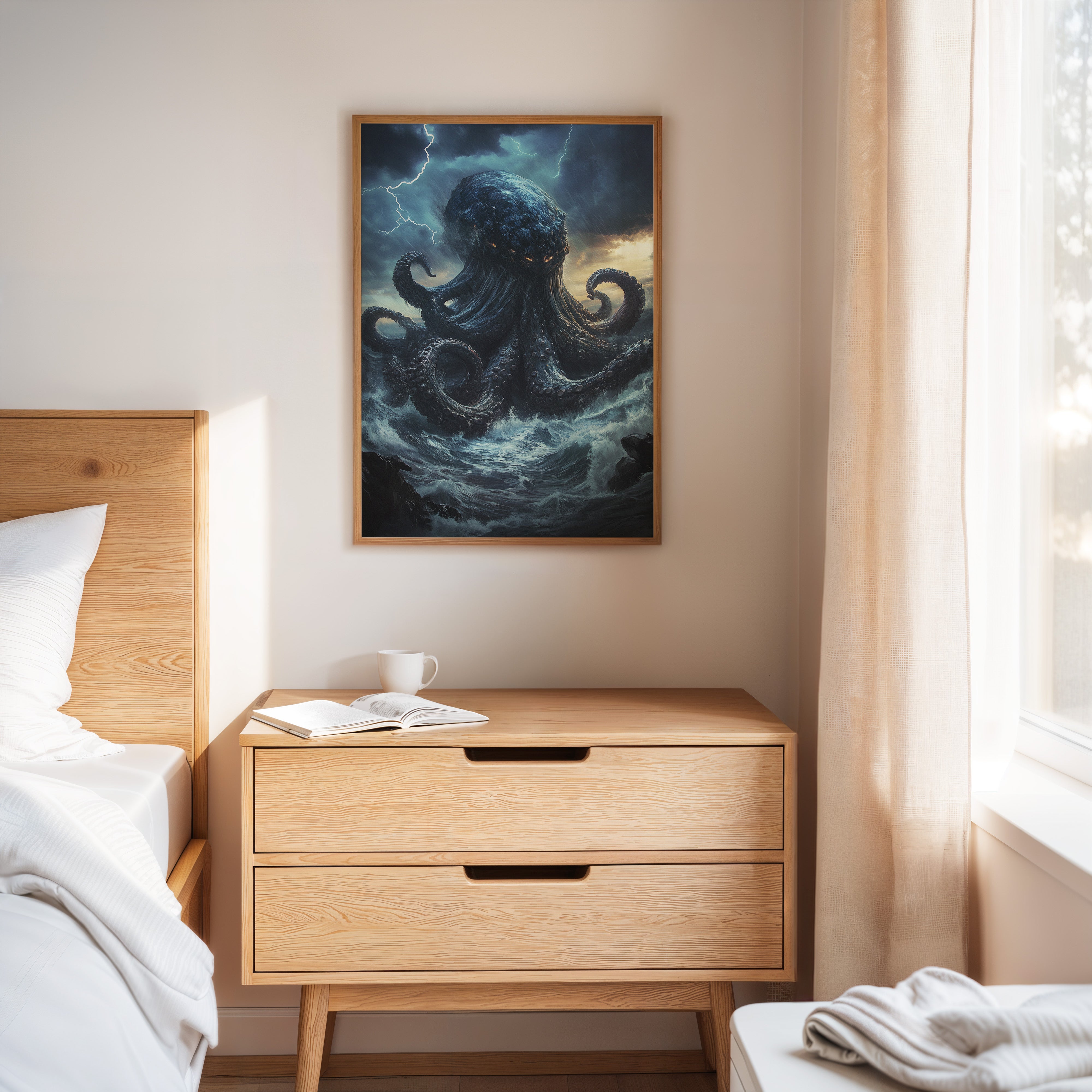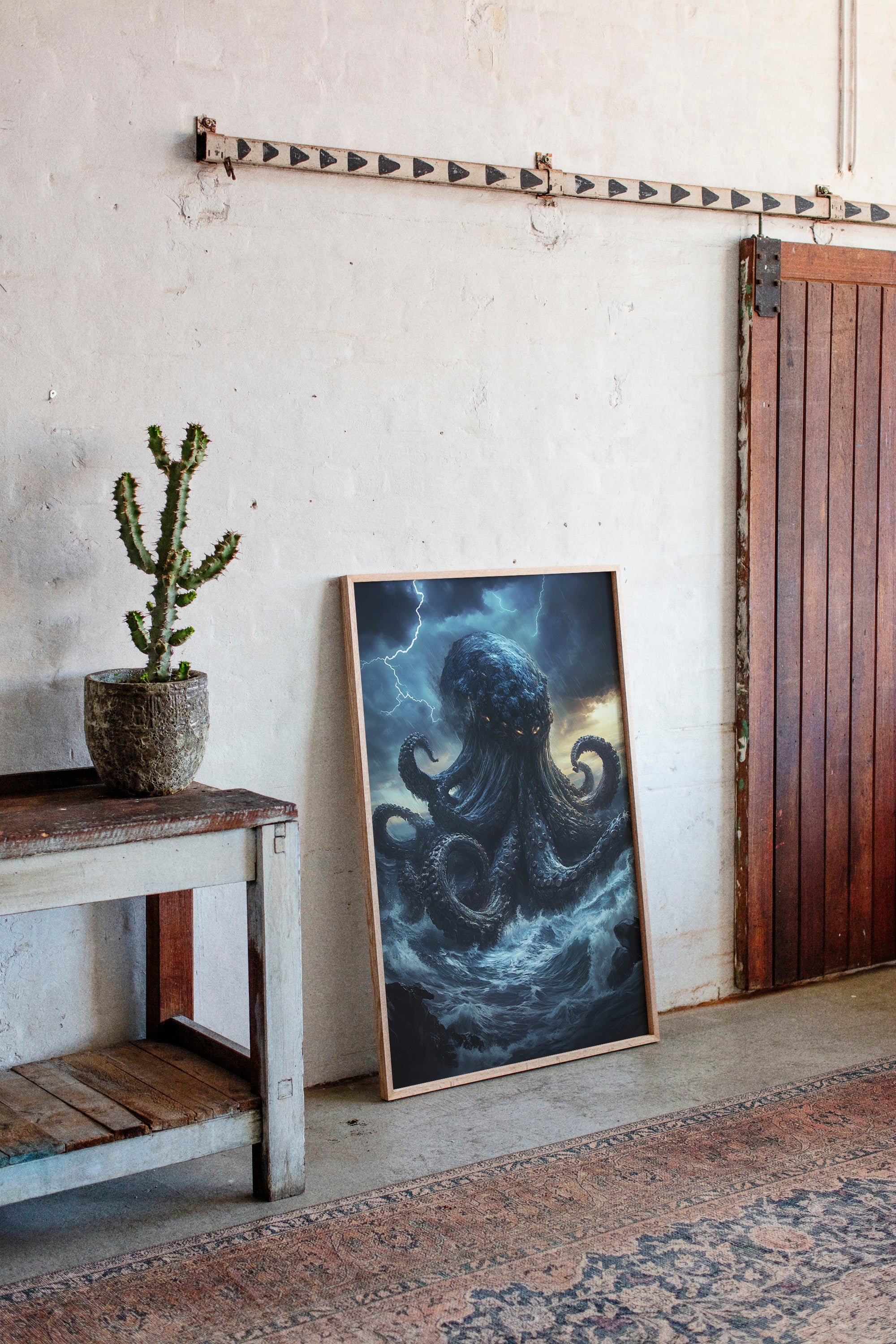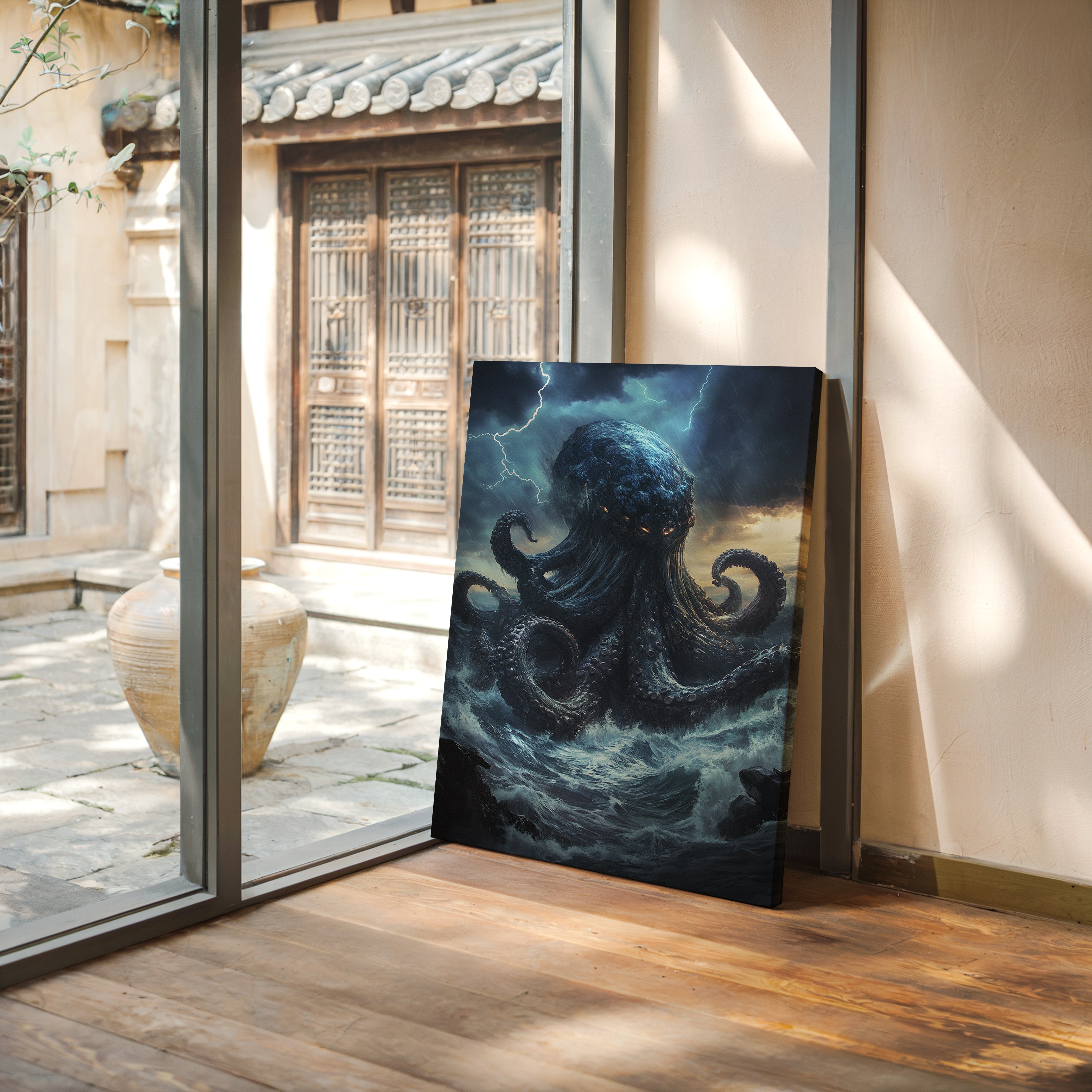 In the heart of a tempest, a colossal figure rises, its tentacles entwined with the fury of the ocean. This piece captures the essence of the Artisanal collection, celebrating the intricate dance between nature and the mythical. As the storm rages, vibrant blues clash with dark shadows, revealing the creature's haunting gaze, evoking a sense of ancient power and untold stories waiting to unfold. Ideal for a dramatic focal point in a living room or study, it invites contemplation and awe.