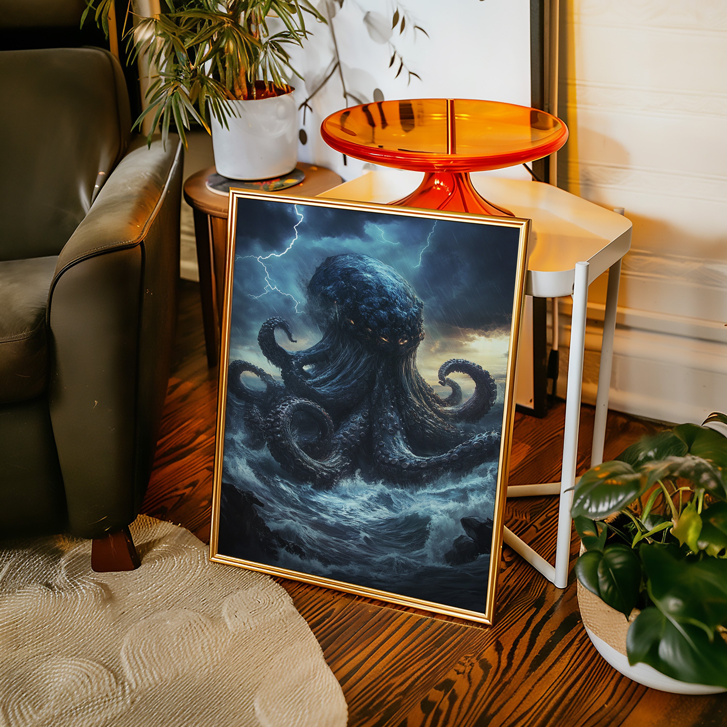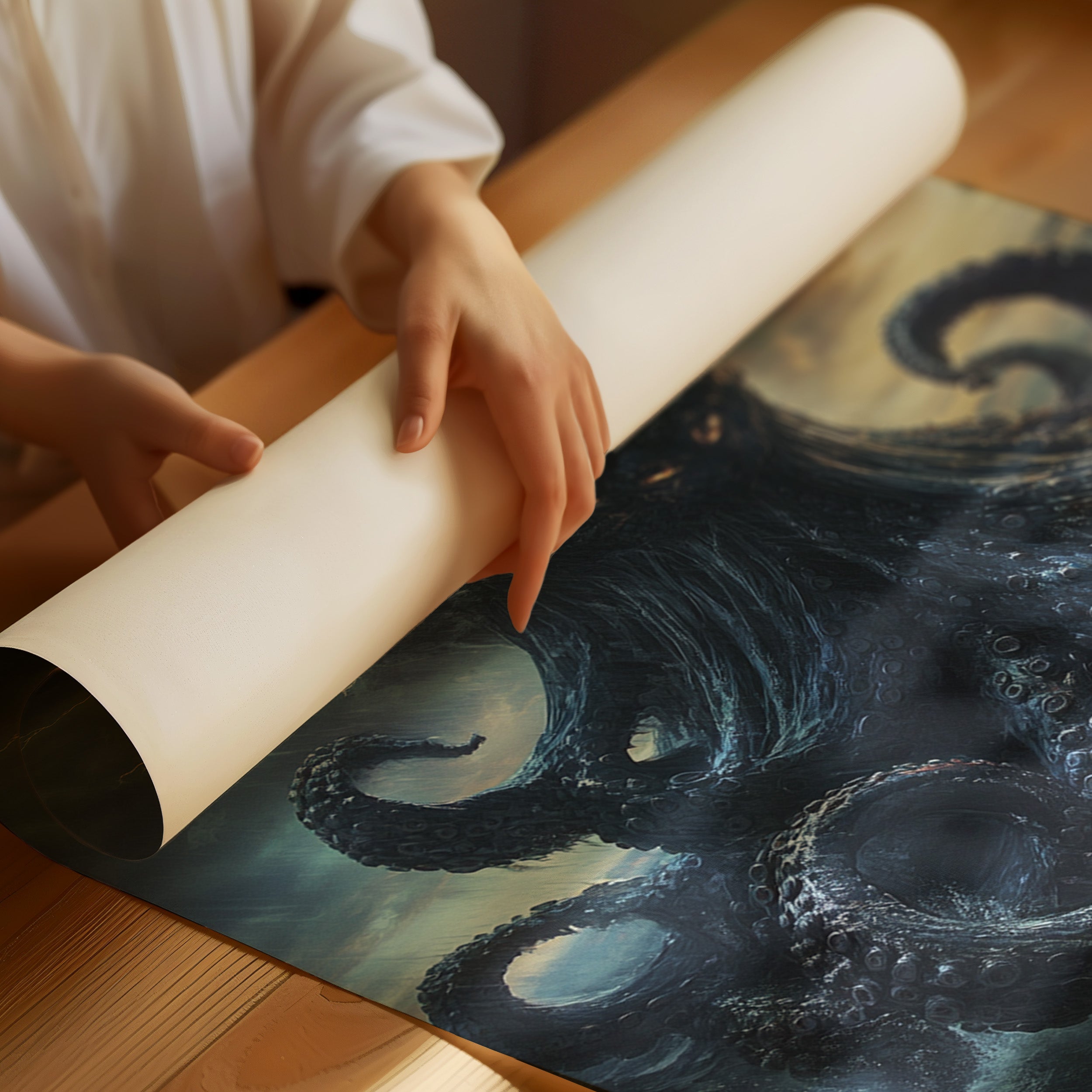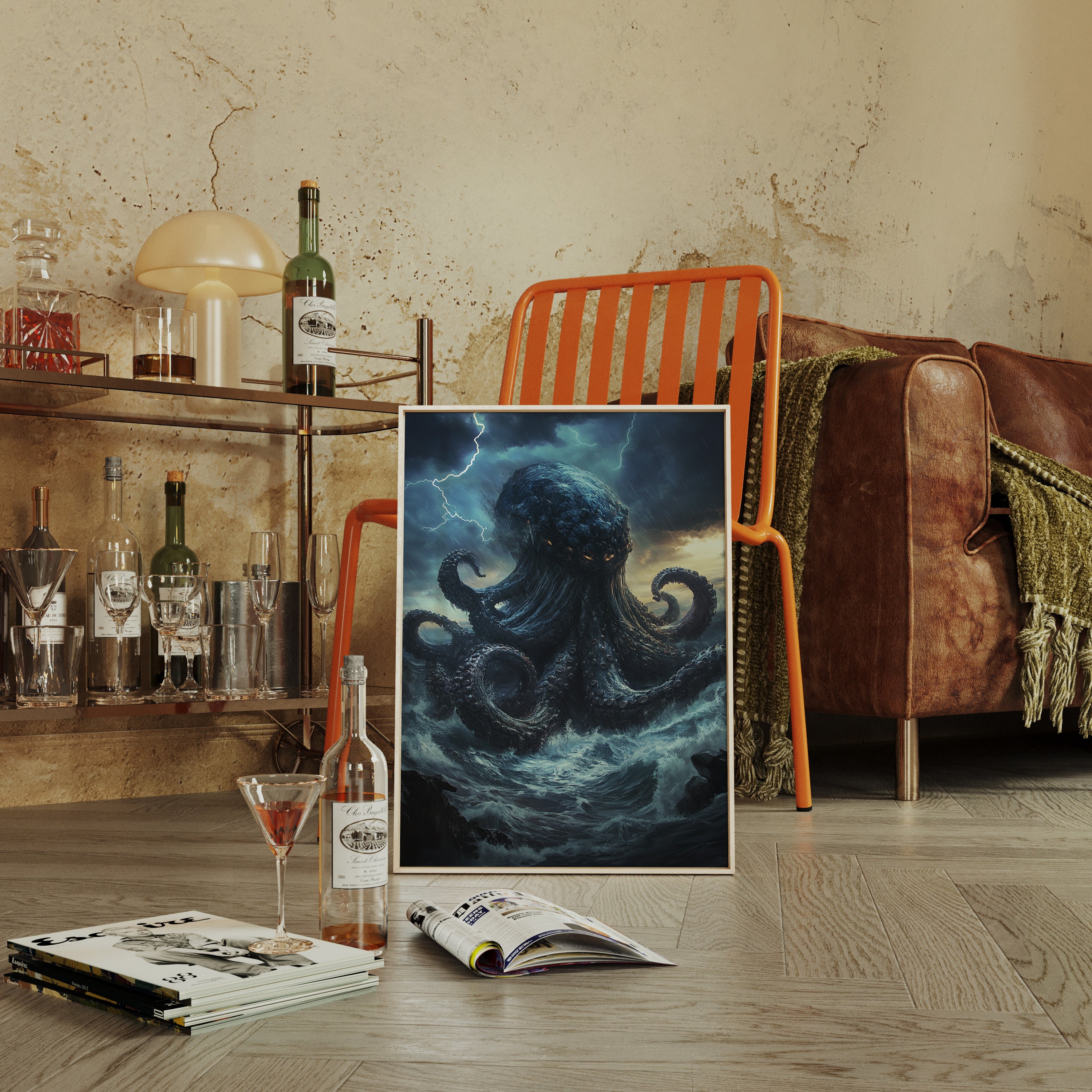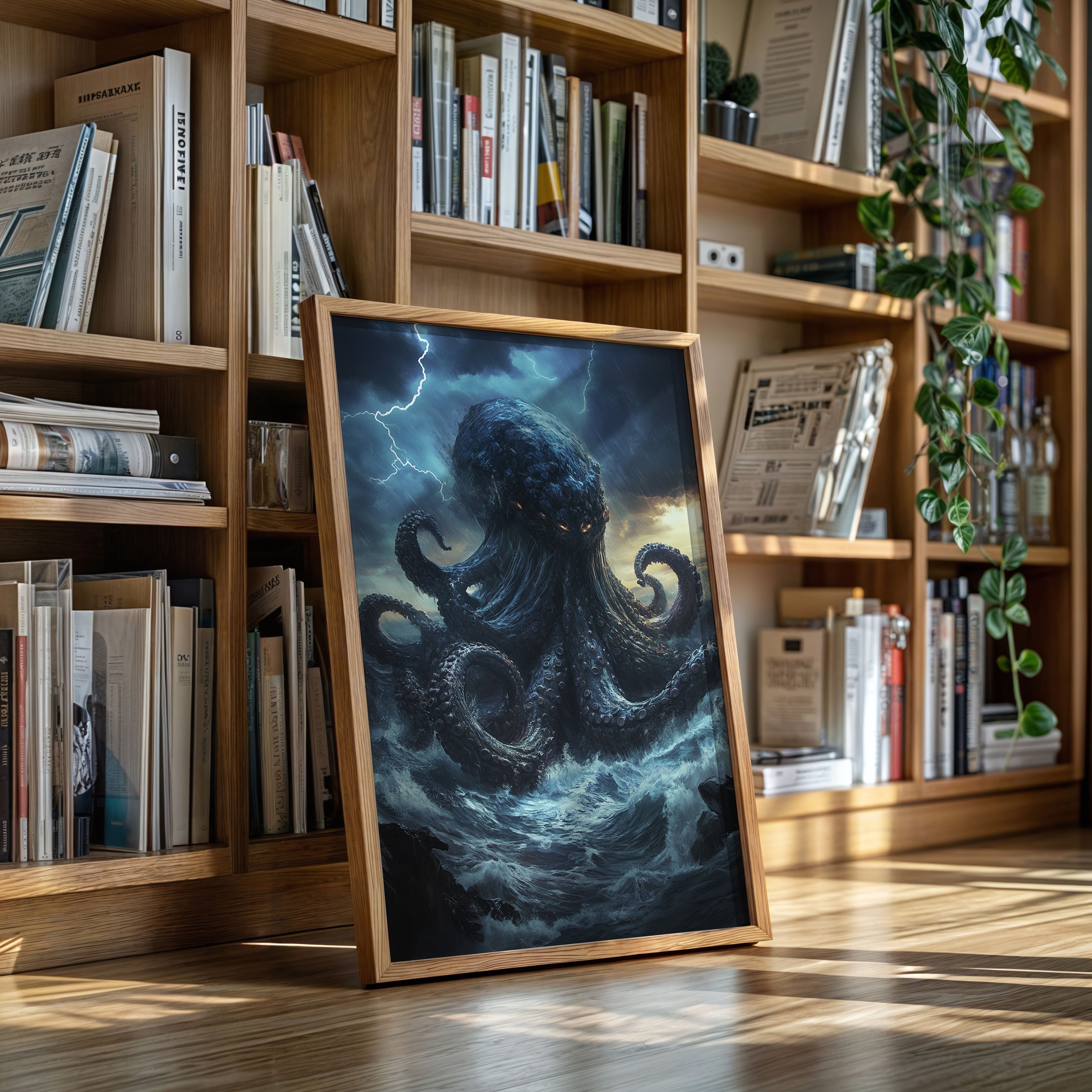 In the heart of a tempest, a colossal figure rises, its tentacles entwined with the fury of the ocean. This piece captures the essence of the Artisanal collection, celebrating the intricate dance between nature and the mythical. As the storm rages, vibrant blues clash with dark shadows, revealing the creature's haunting gaze, evoking a sense of ancient power and untold stories waiting to unfold. Ideal for a dramatic focal point in a living room or study, it invites contemplation and awe.