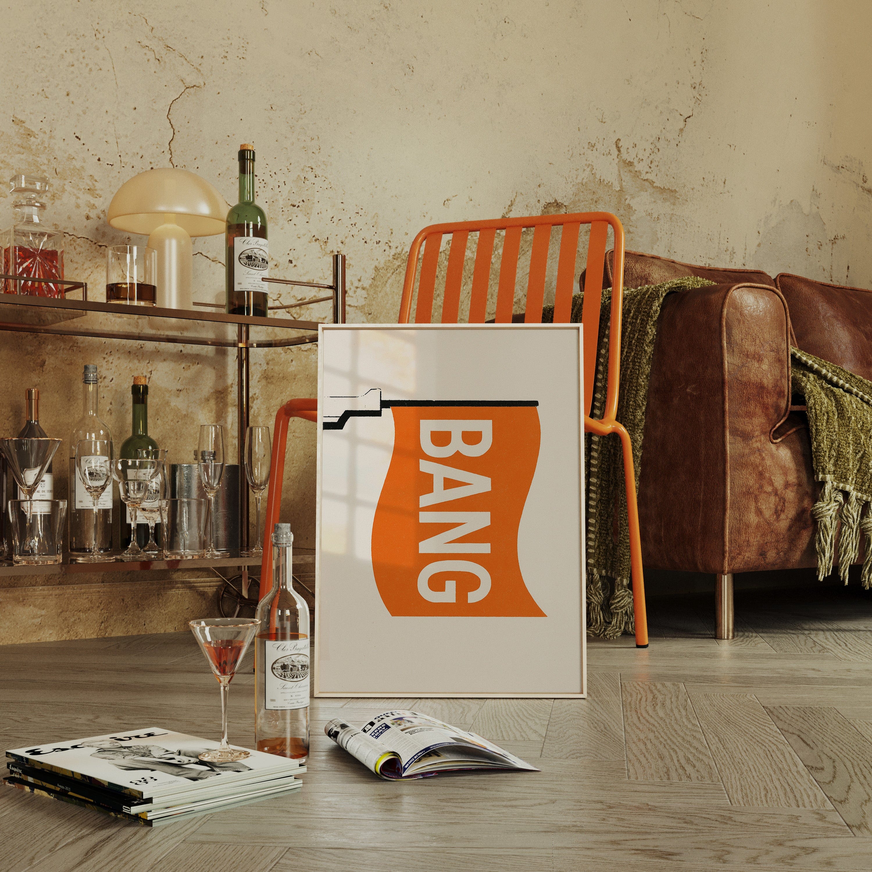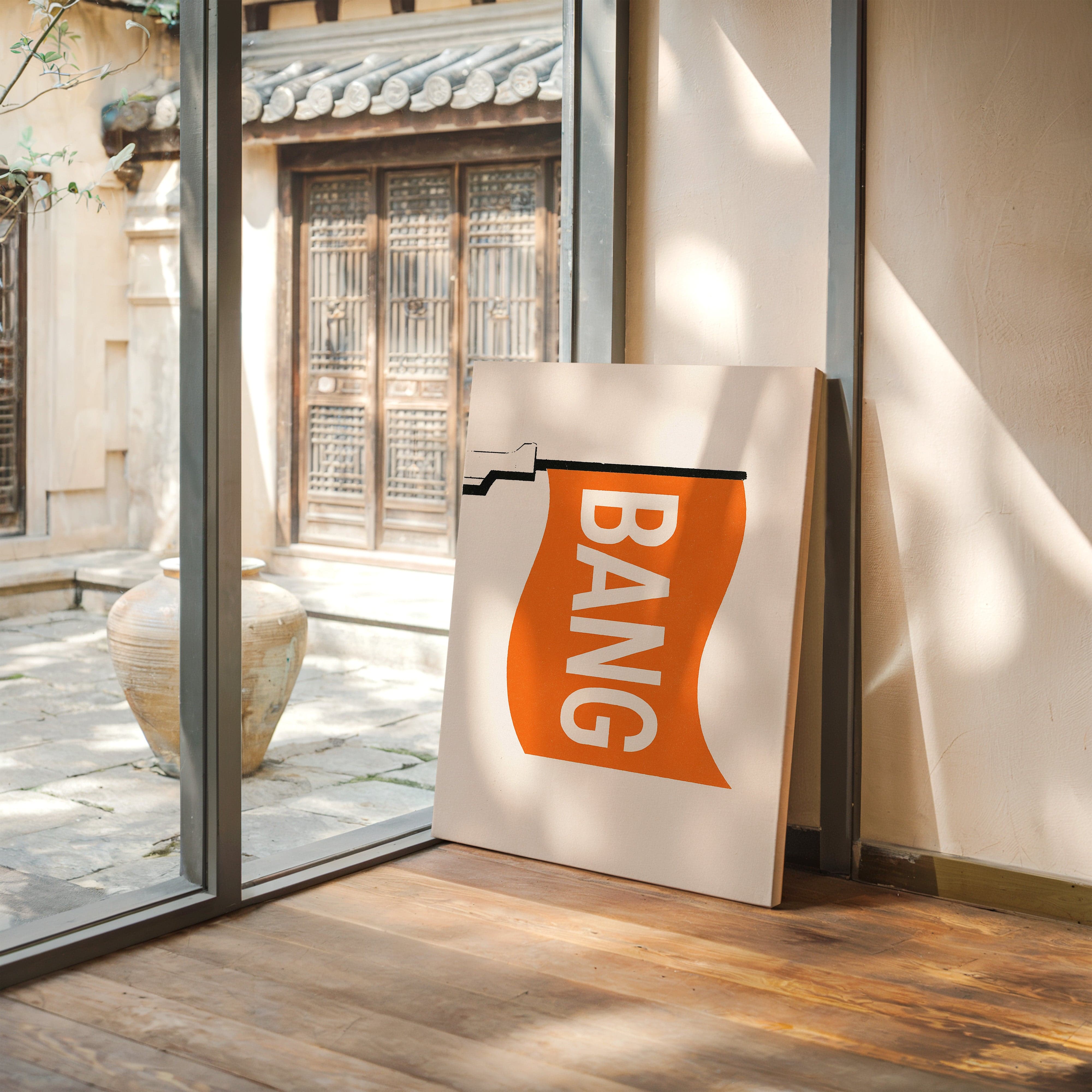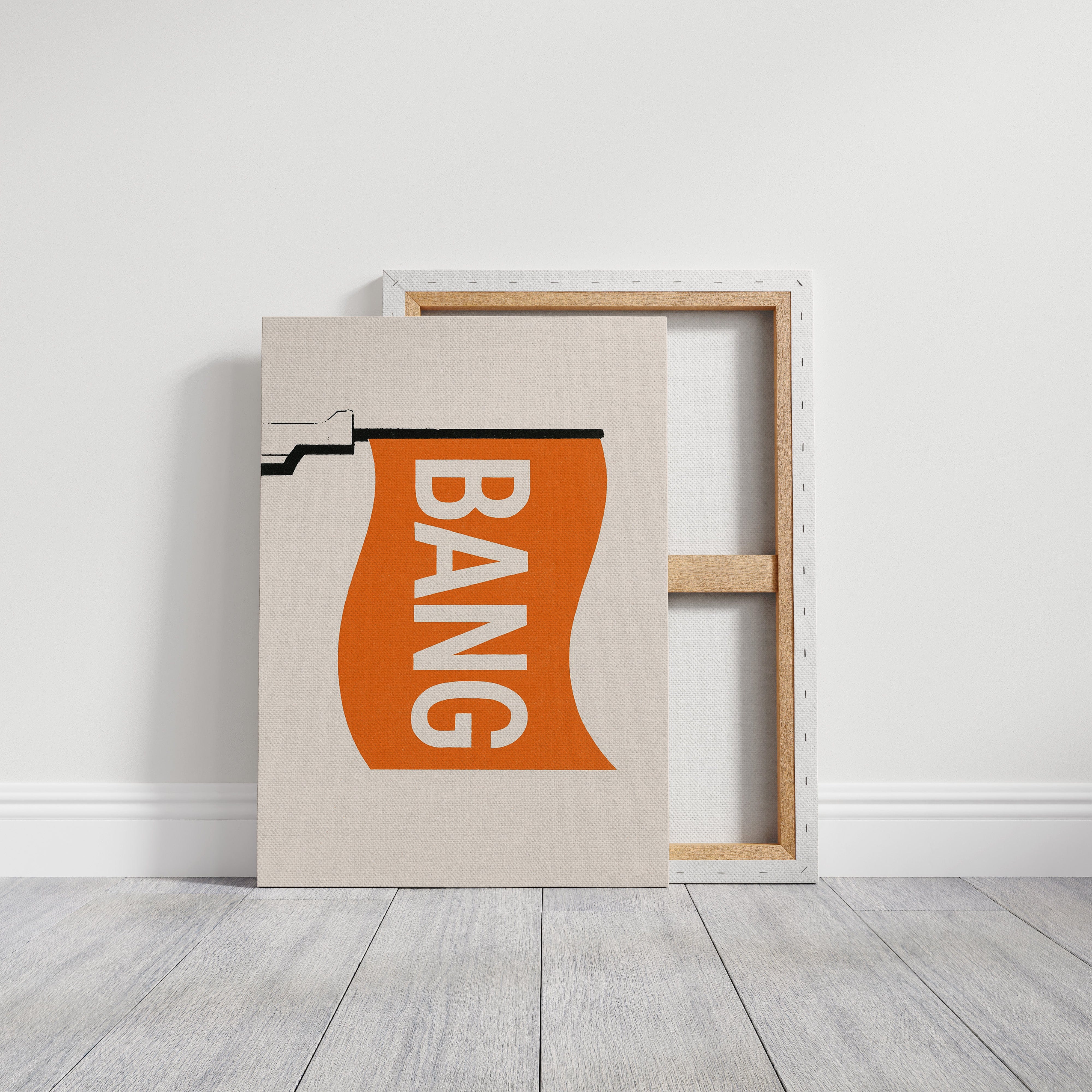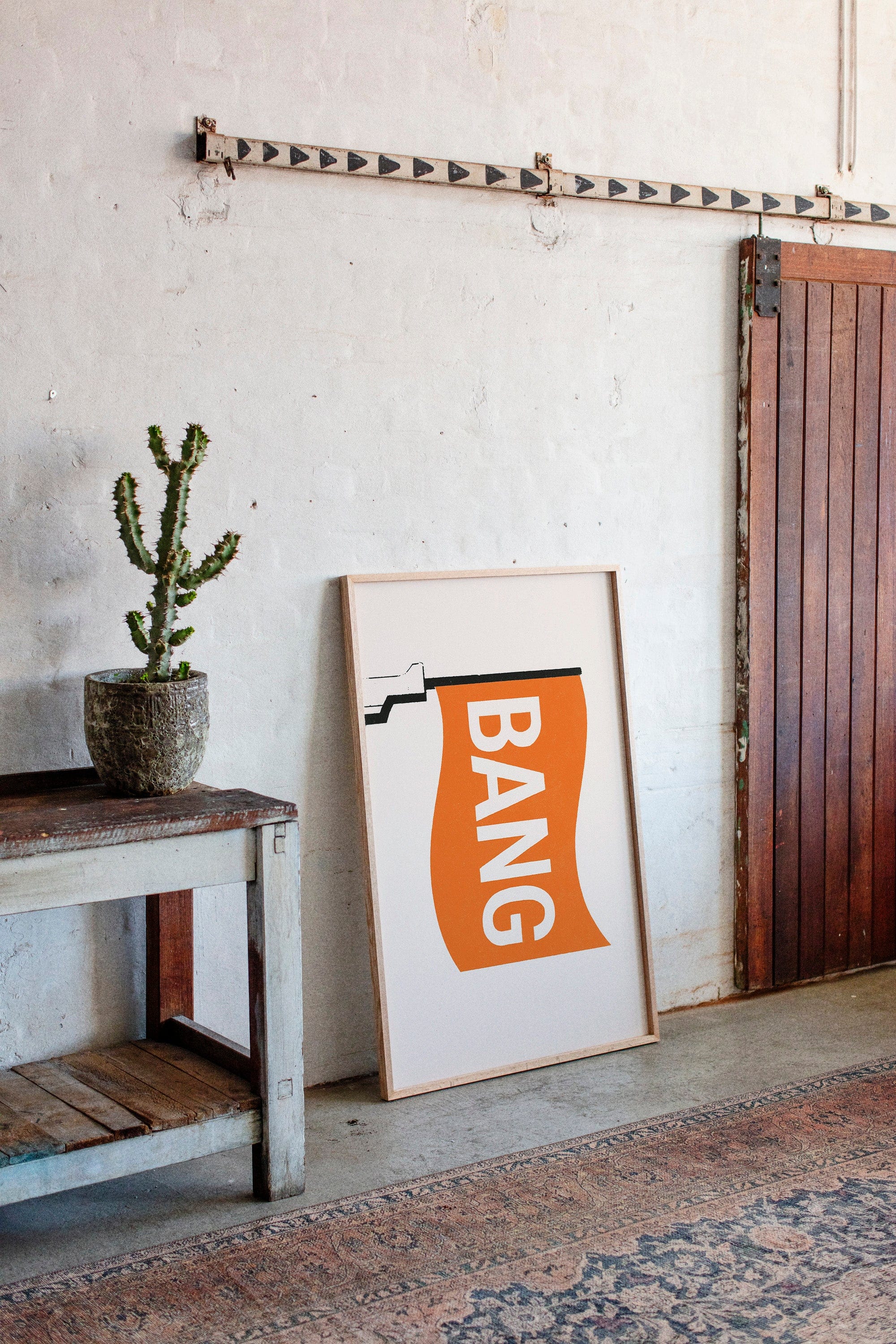 Playful, bold, and unmistakably pop — Bang! is a tongue-in-cheek tribute to vintage cartoon mayhem and pulp-inspired style. Featuring a graphic of a toy gun firing a bright orange flag with the word "BANG" in bold type, this print makes a striking visual statement full of humor and nostalgic flair. Perfect for fans of pop art, graphic design, or playful Western motifs.