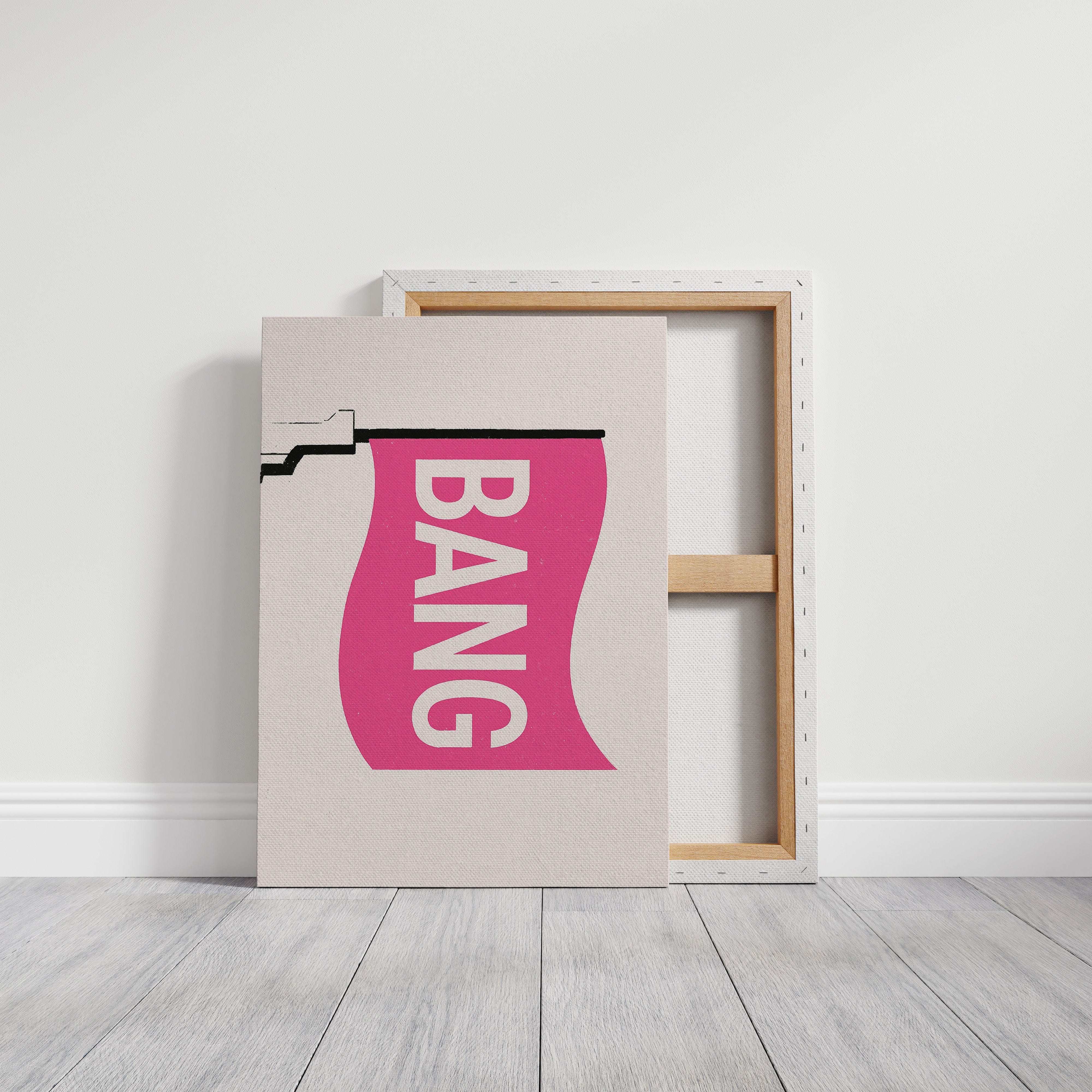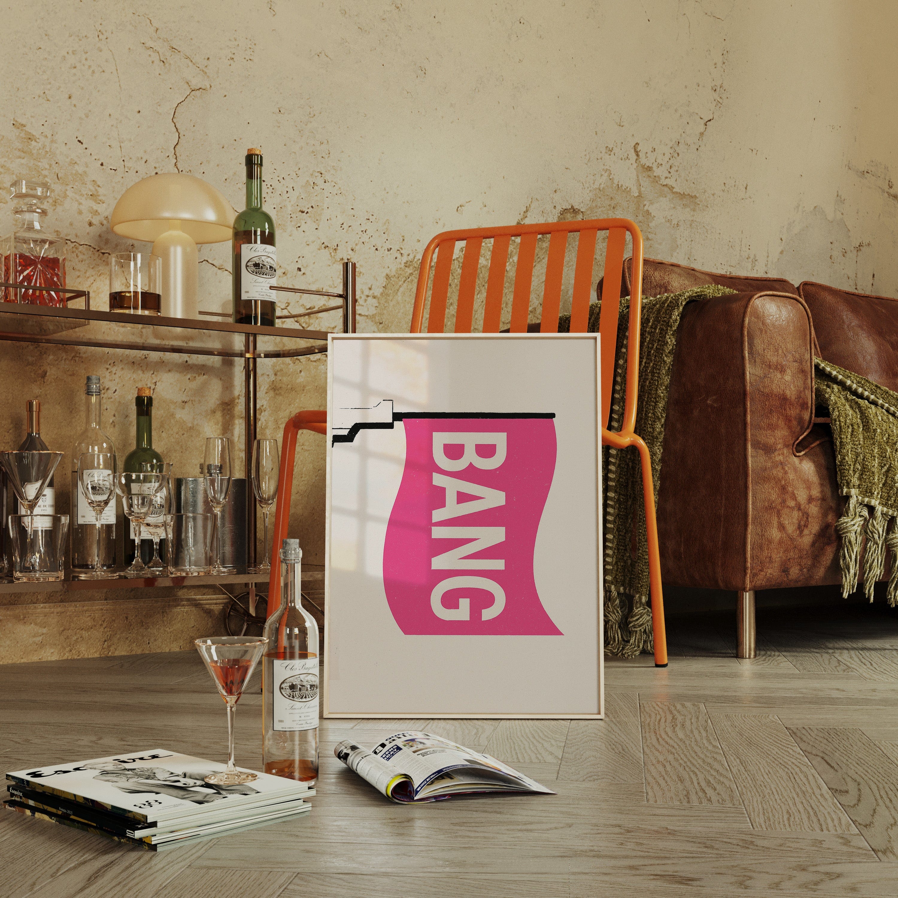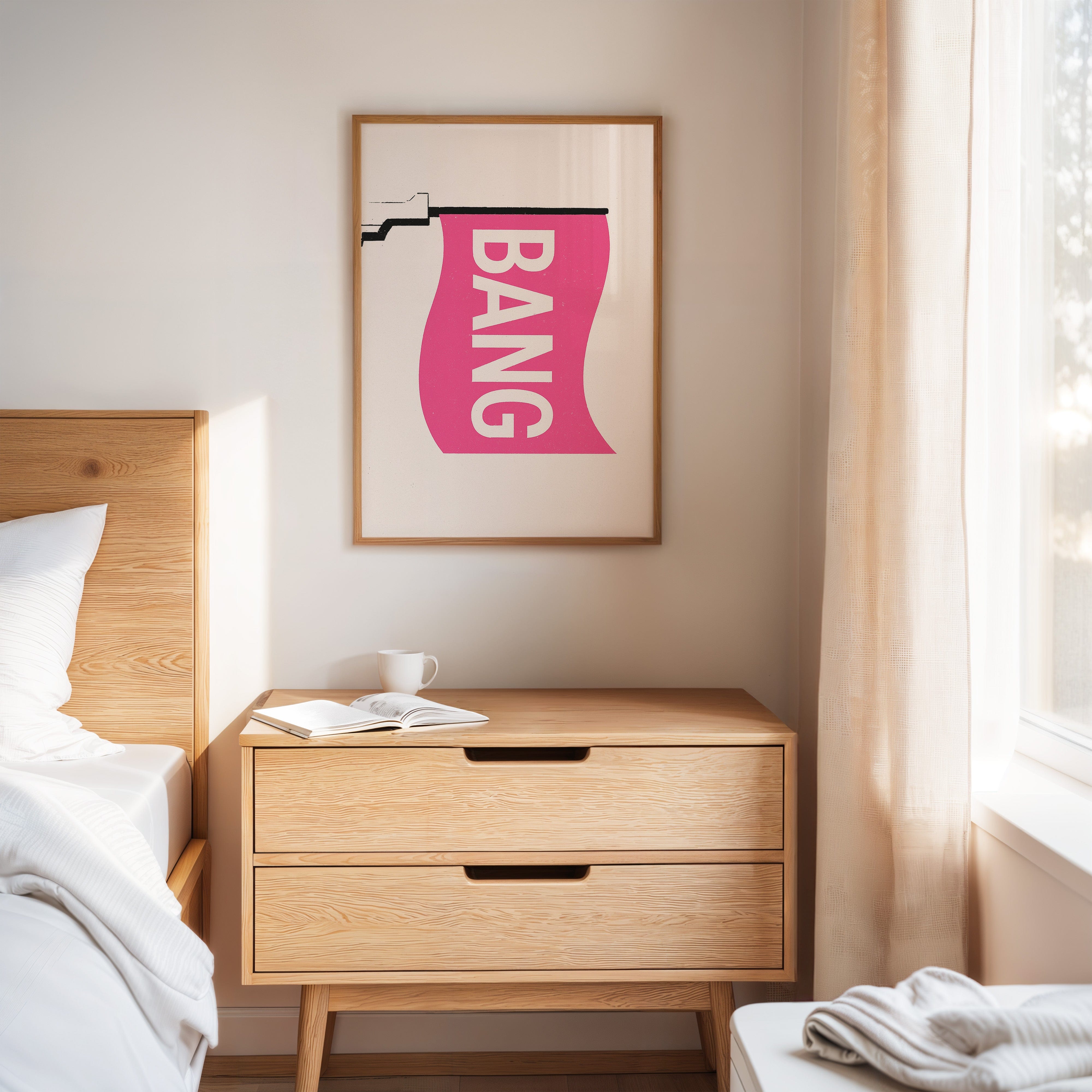 Playful, punchy, and packed with attitude. BANG! delivers a wink to vintage cartoons and bold graphic design with its comic-style revolver and bright pink flag. This minimalist yet high-impact print is perfect for lovers of retro art, edgy humor, or statement wall decor. Whether in a modern space or kitschy corner, it hits the mark every time.