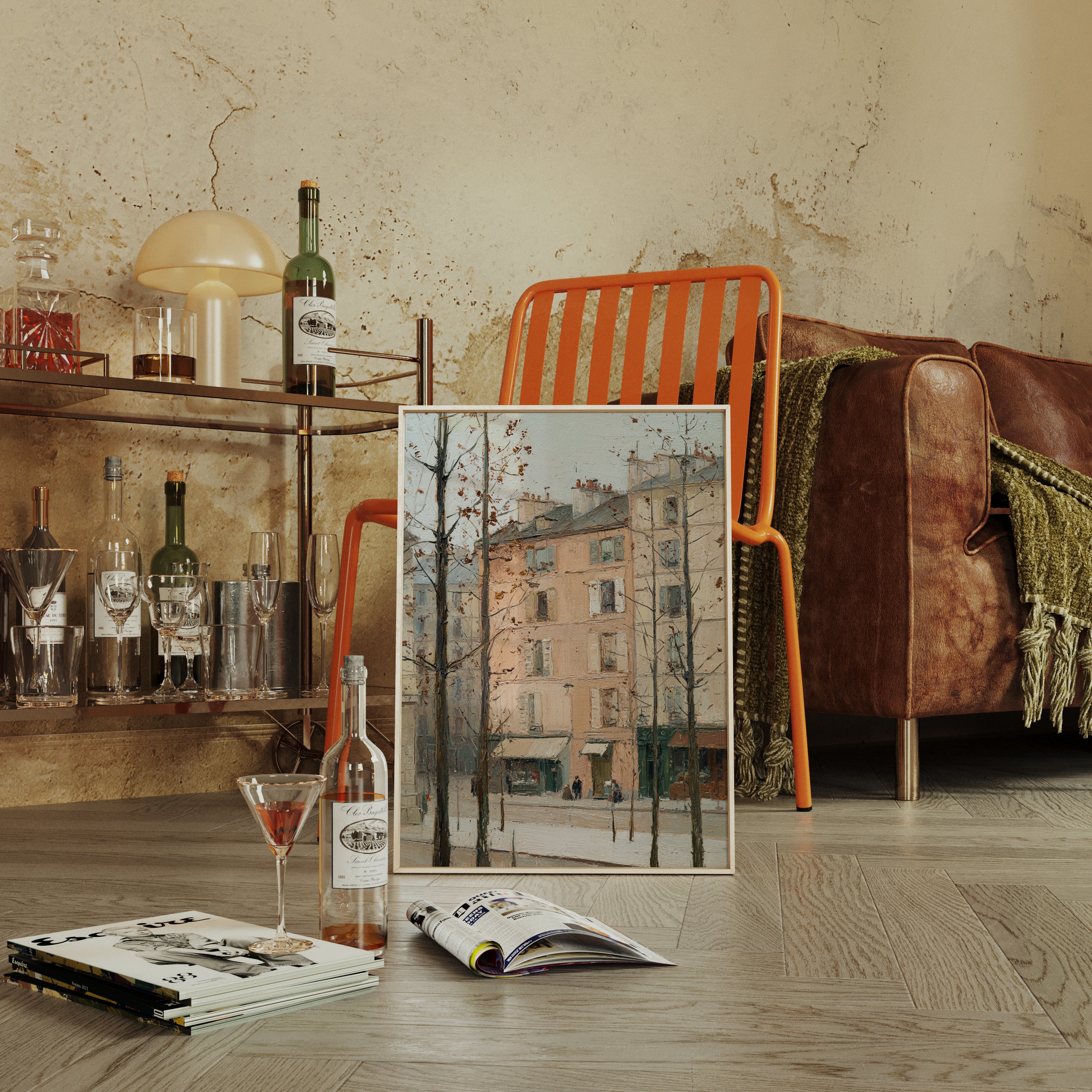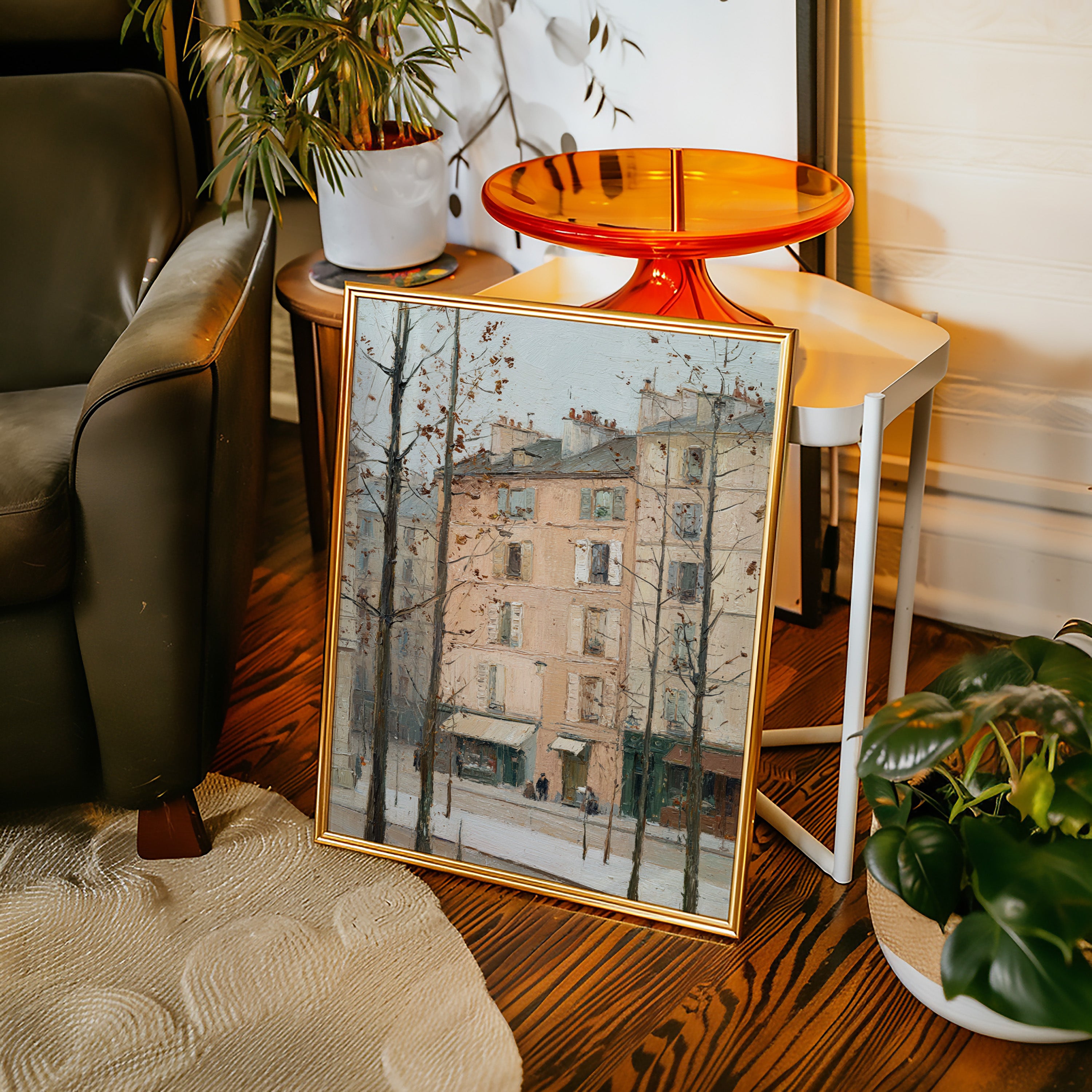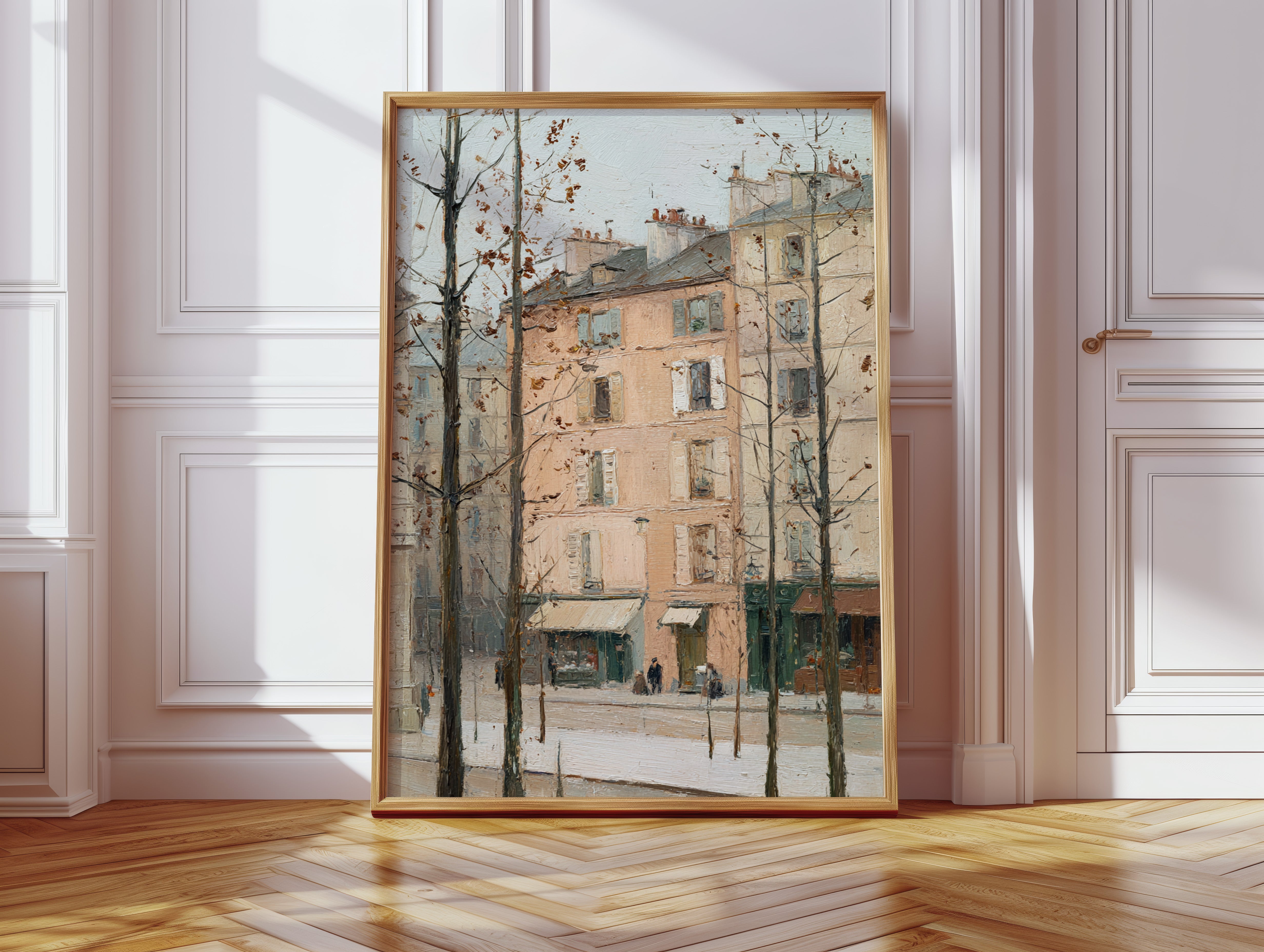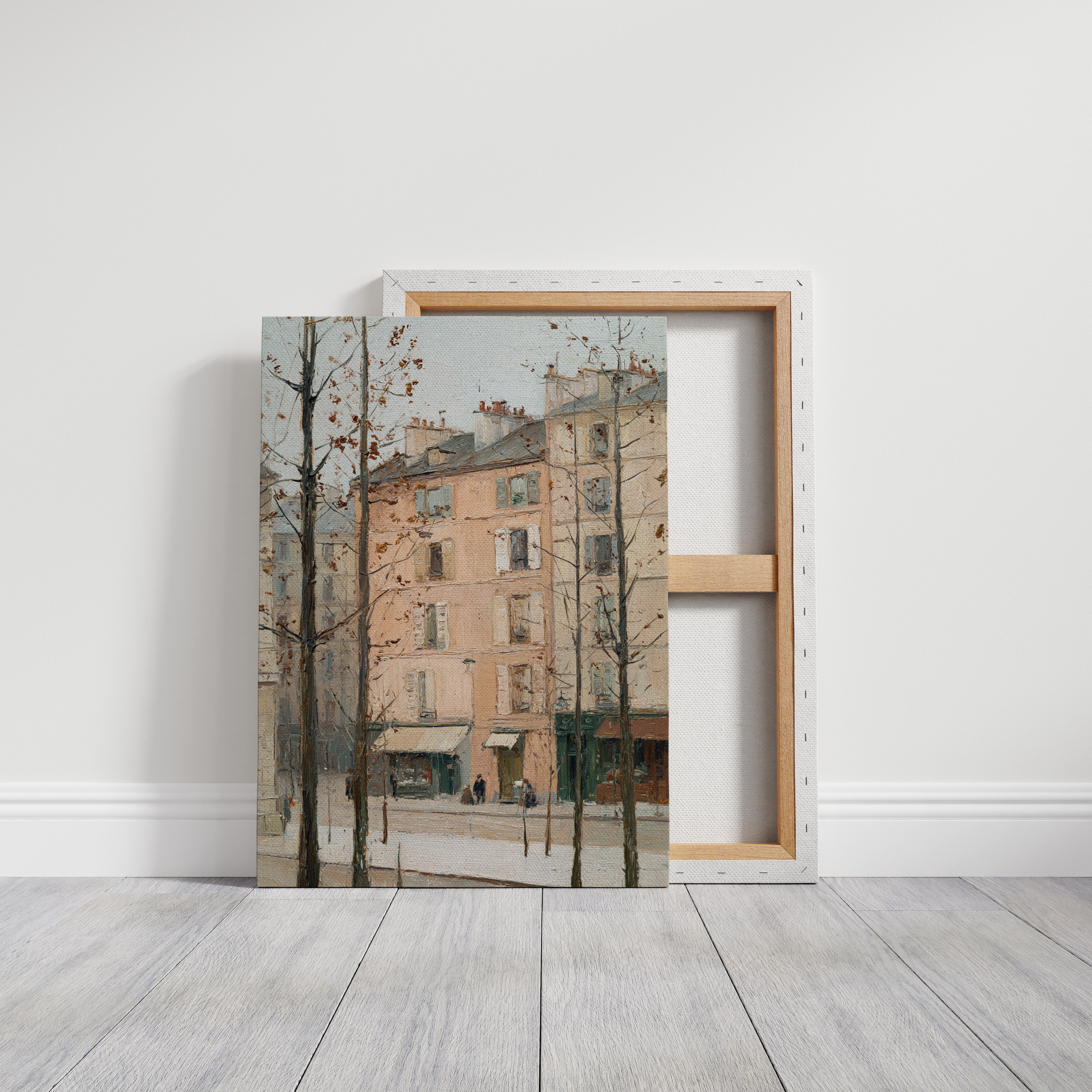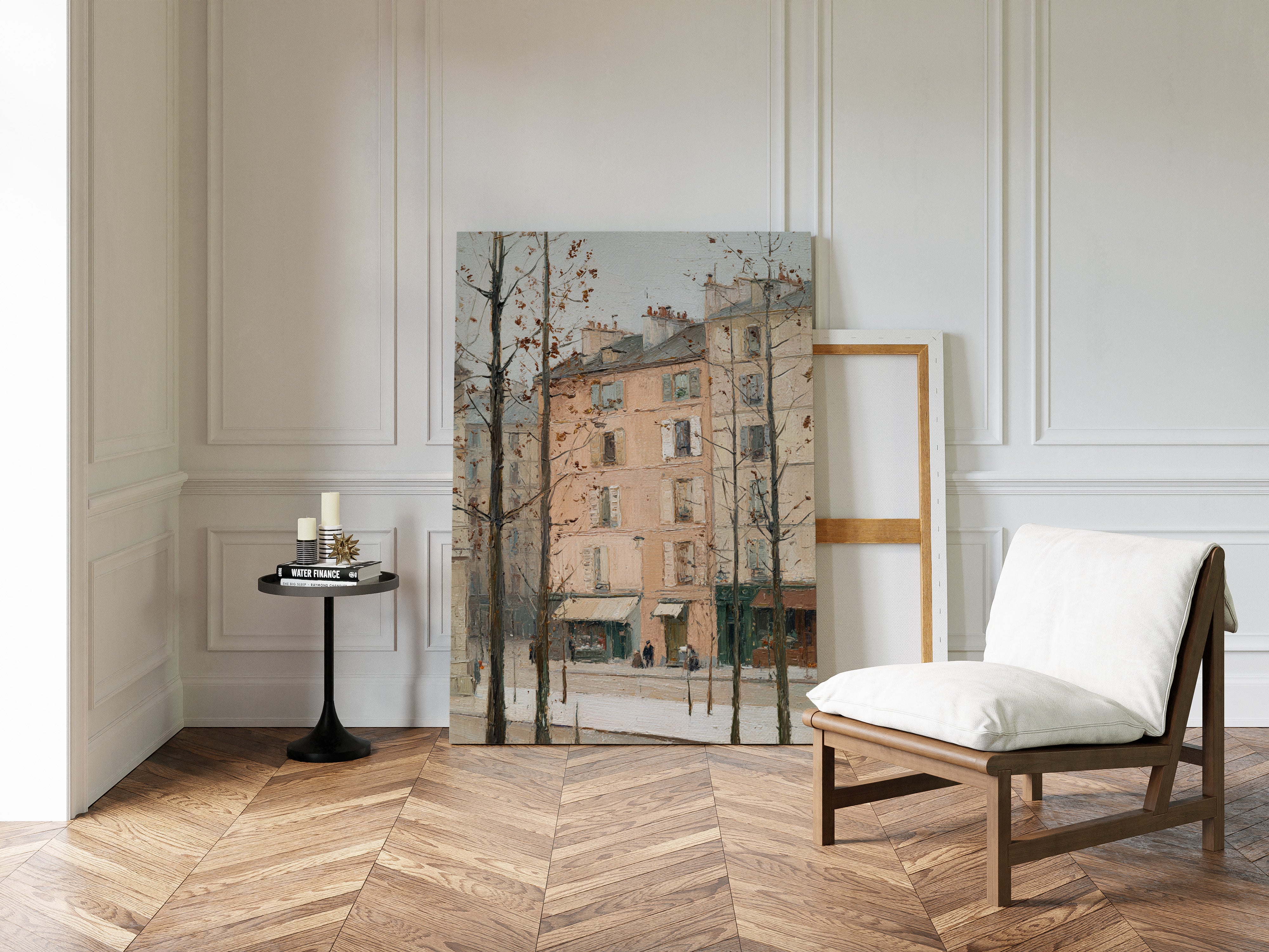 In the gentle embrace of an autumn morning, muted hues play across the façades of quaint buildings, whispering stories of lives lived within. This piece embodies the artisanal spirit, celebrating the beauty of everyday encounters. Textured brushstrokes evoke a sense of warmth, while the soft light bathes the scene in a nostalgic glow, as passersby wander beneath the skeletal trees, their laughter mingling with the rustle of leaves. Perfect for a cozy reading nook or a welcoming foyer, this art invites you to pause and reflect on the simple joys of life.