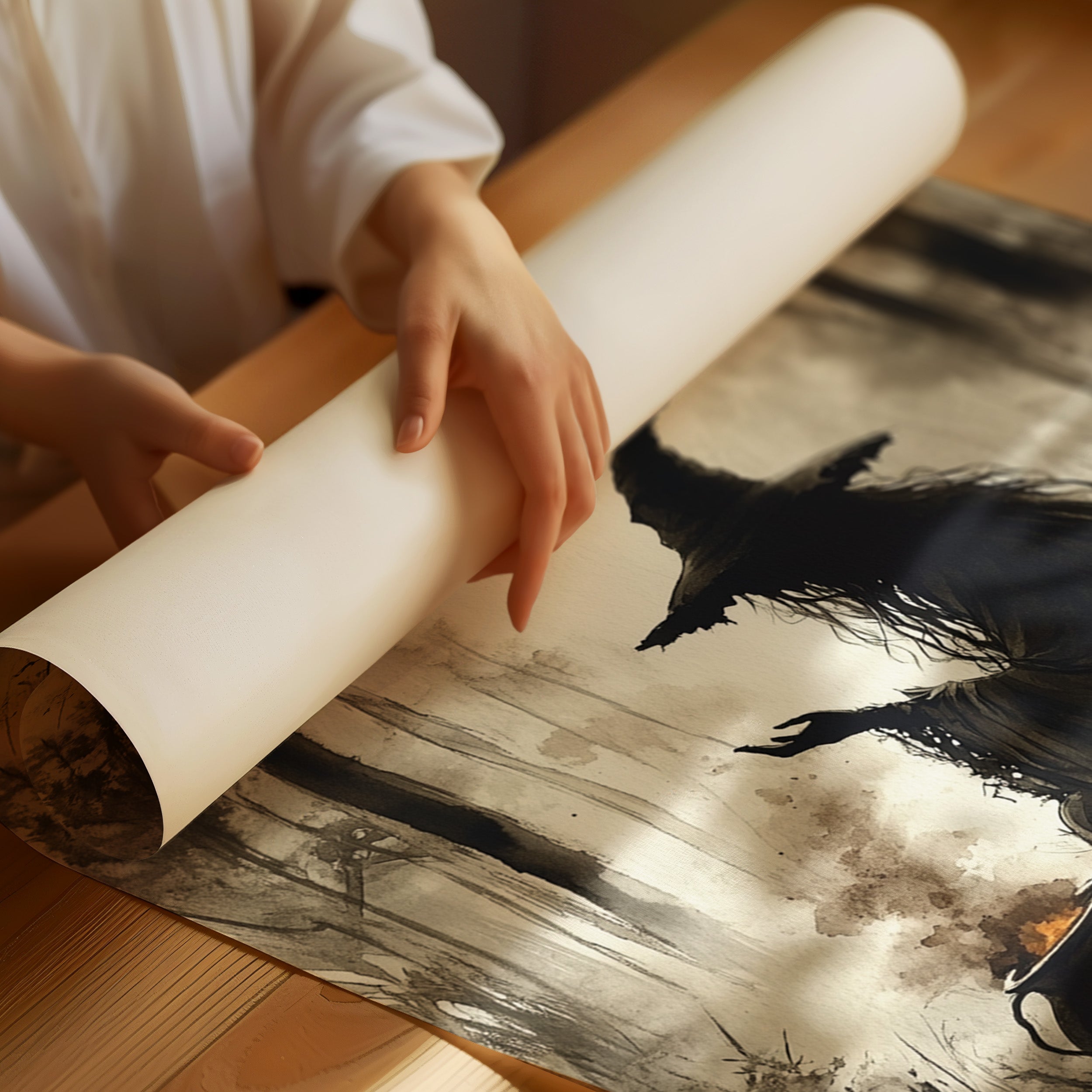 Paper Prints: Premium matte paper (300gsm) with optional handcrafted wooden frames