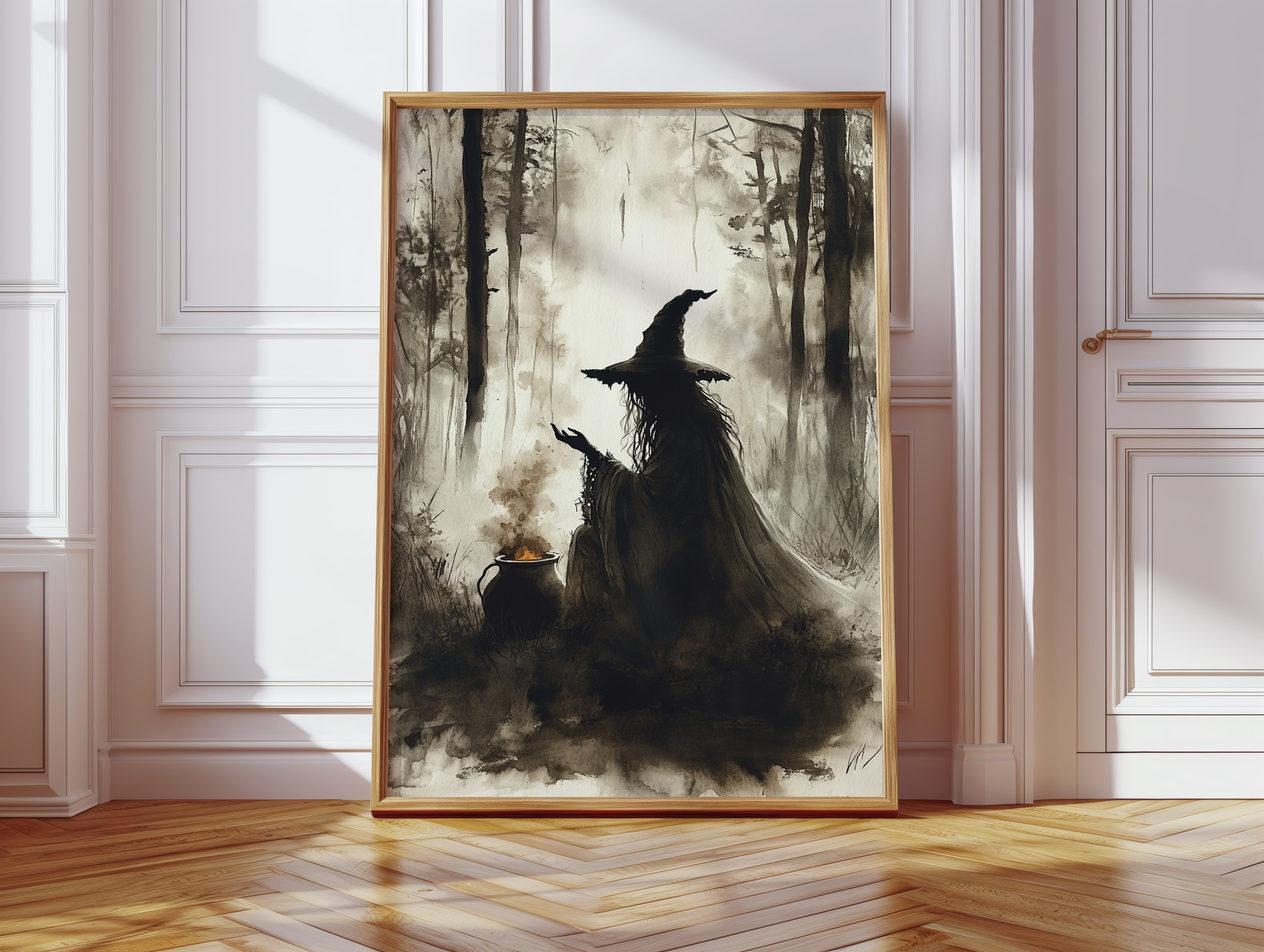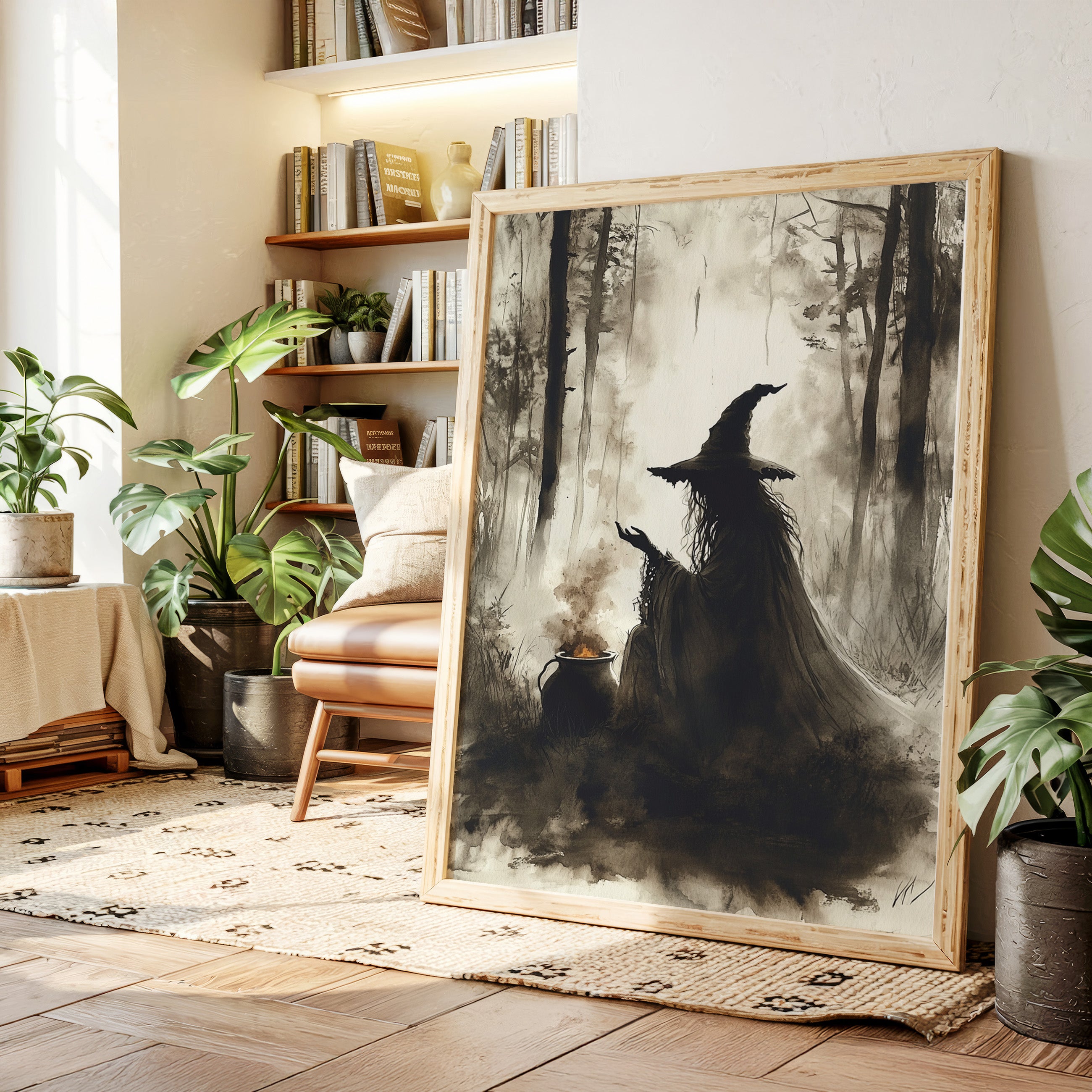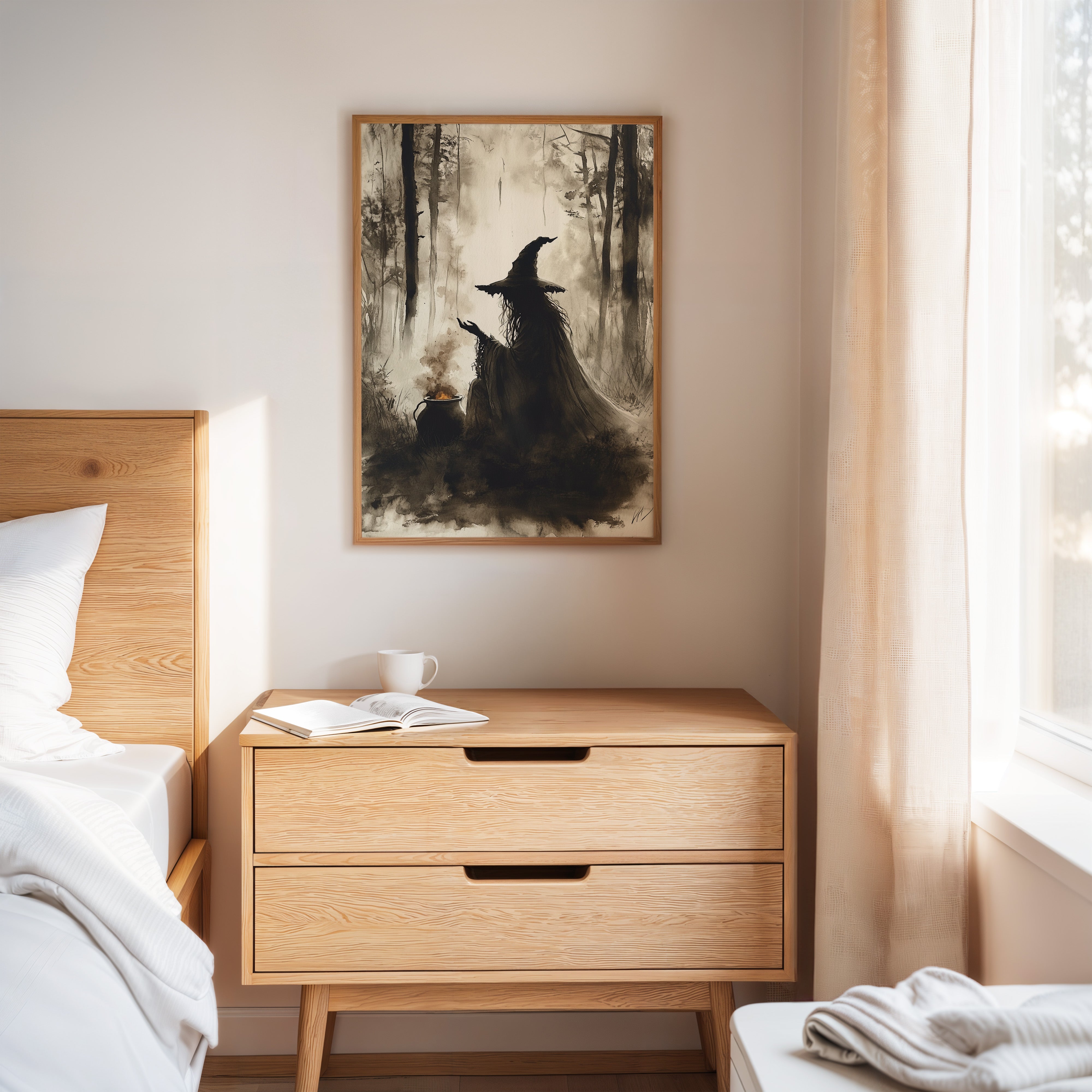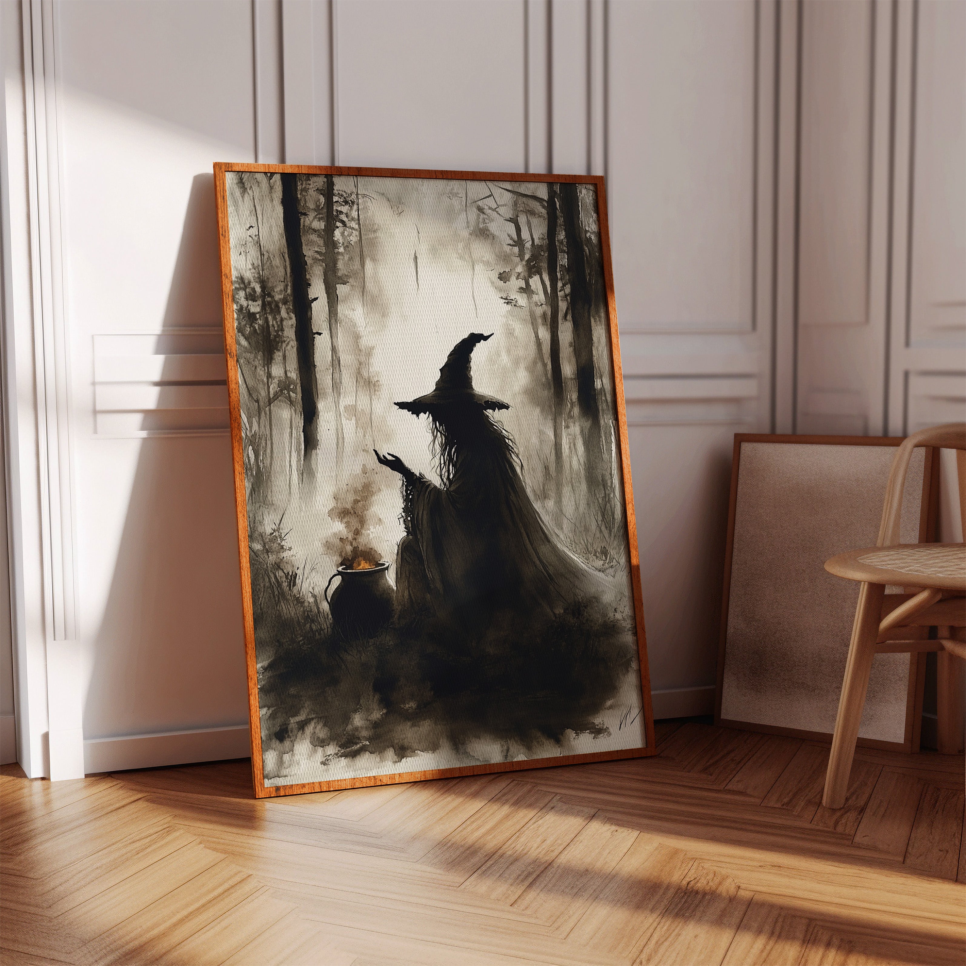 In the heart of the forest, a figure cloaked in mystery stirs the air with ancient incantations. This piece belongs to the Artisanal collection, where every brushstroke tells a tale. The enchanting silhouette of the sorceress, framed by towering trees, evokes a sense of wonder and curiosity, inviting the viewer into a world where magic feels tangible. The fluidity of ink dances across the page, merging with the earthy tones that conjure both tranquility and intrigue. Ideal for a cozy reading nook or a study, this visual narrative will inspire conversations and daydreams.