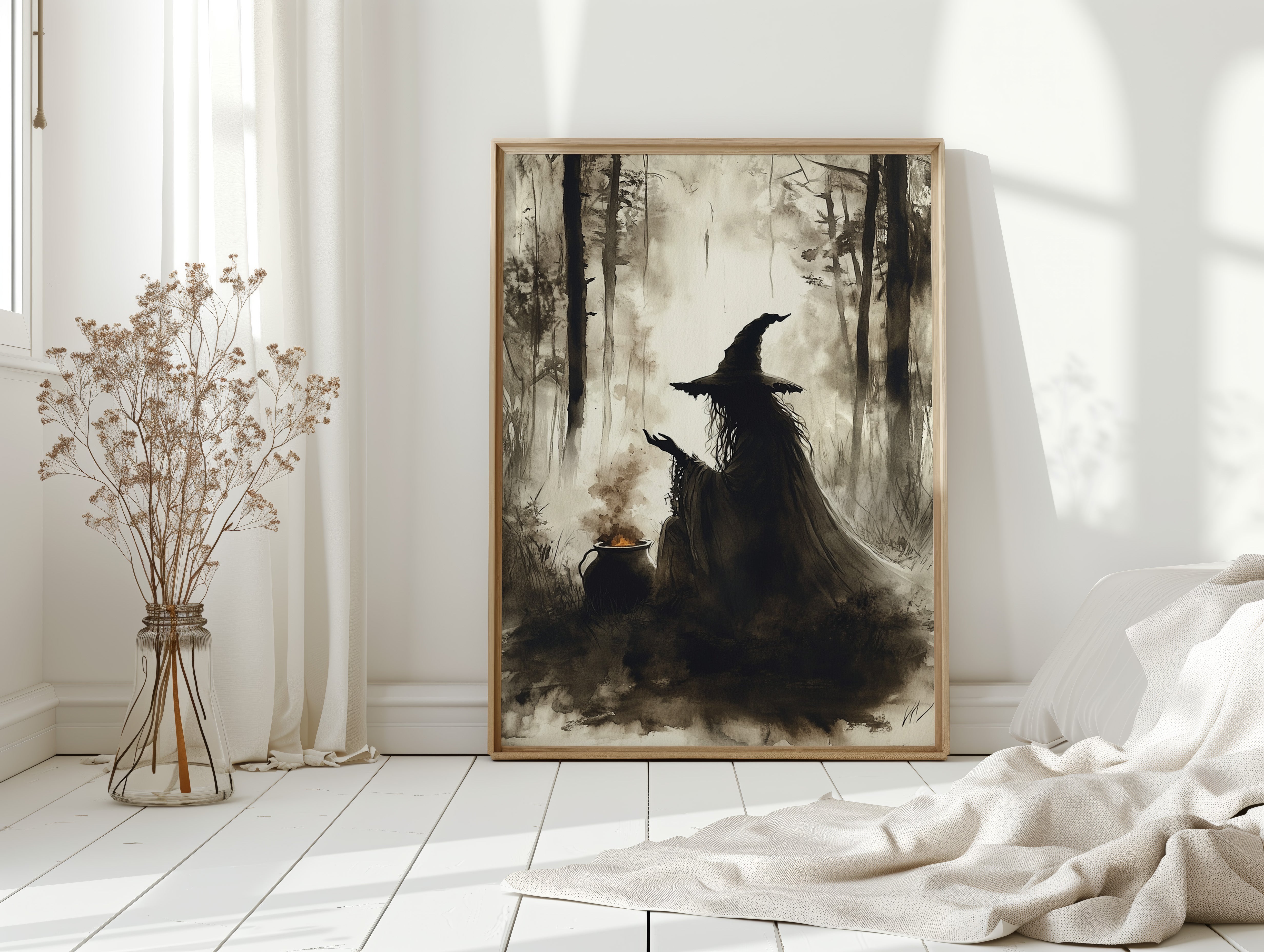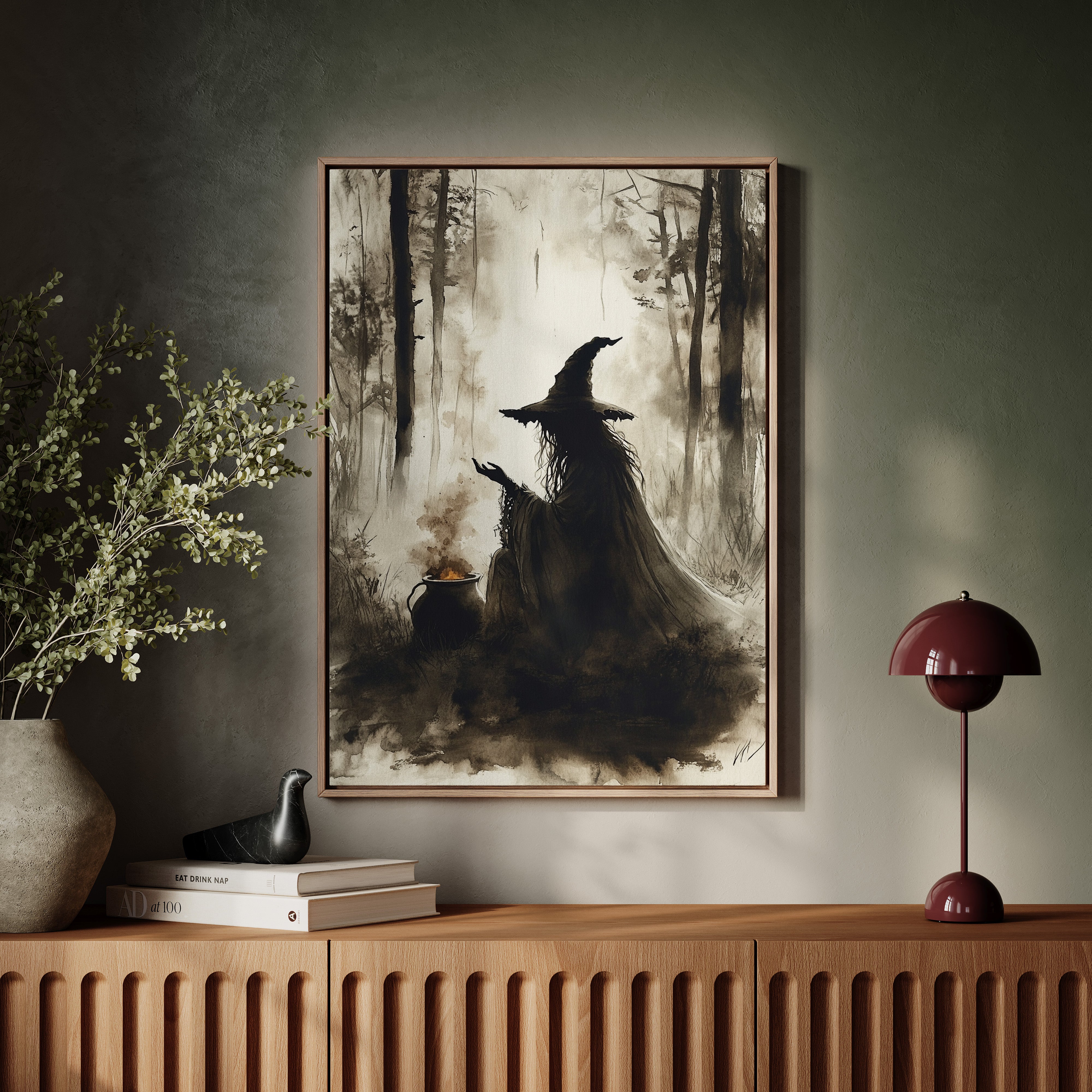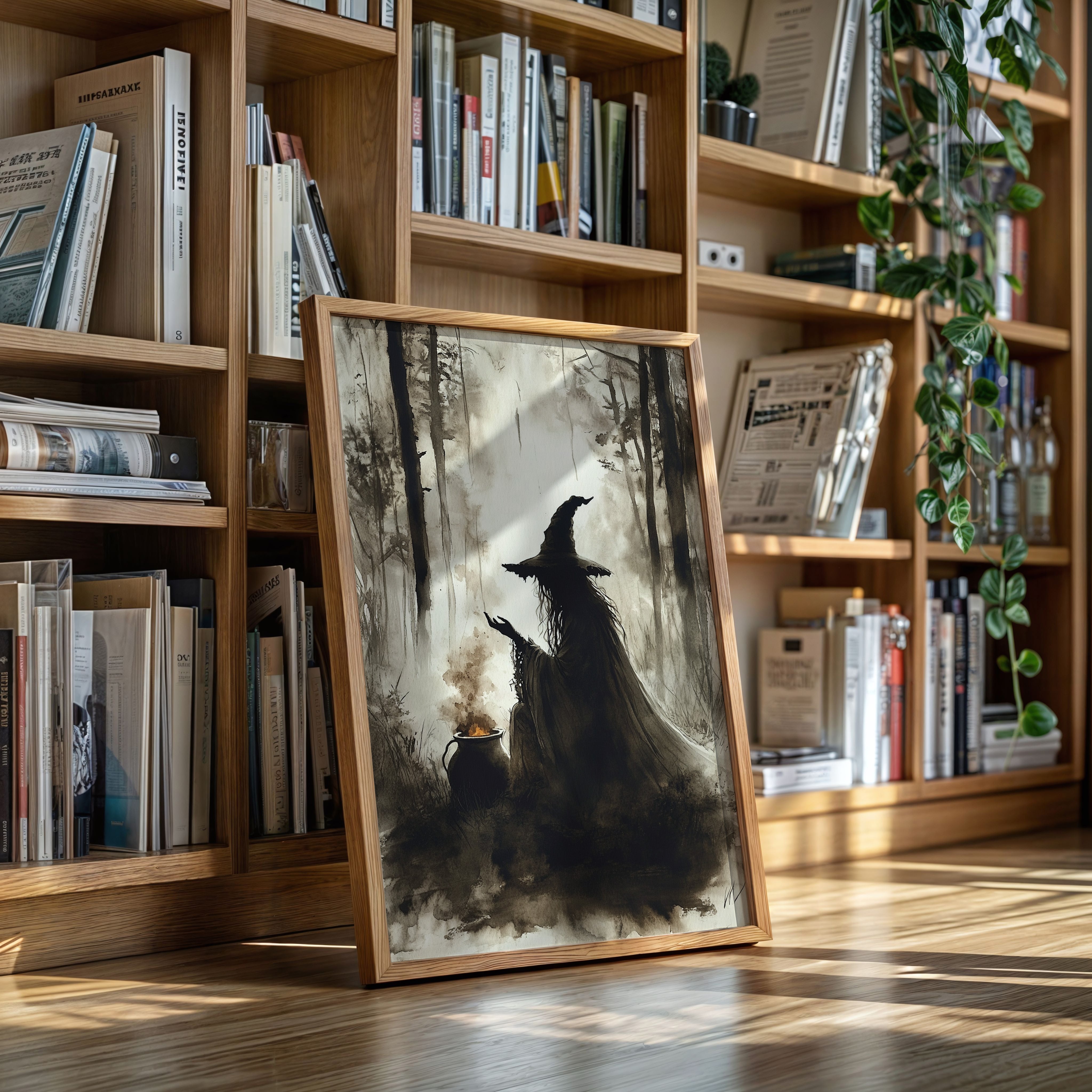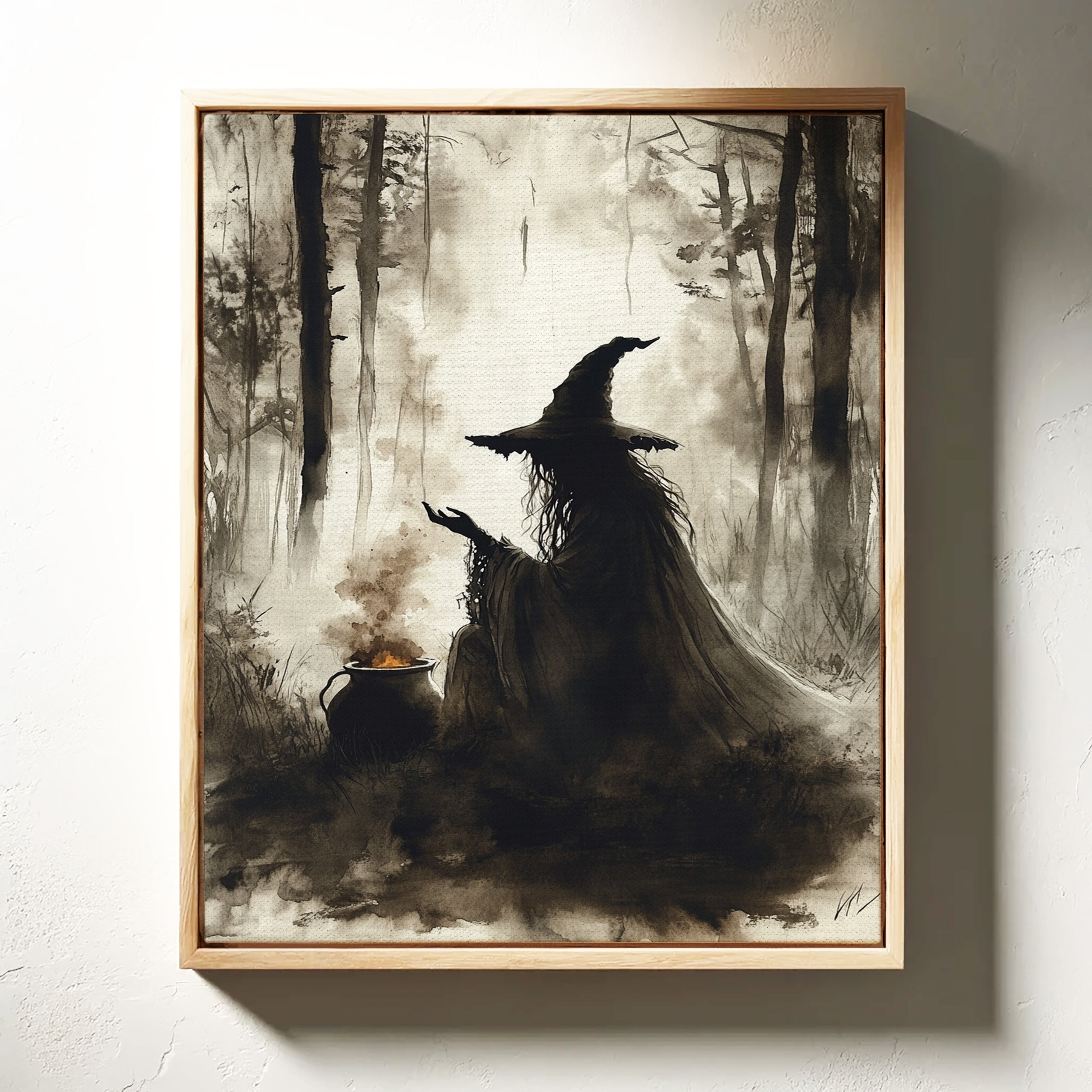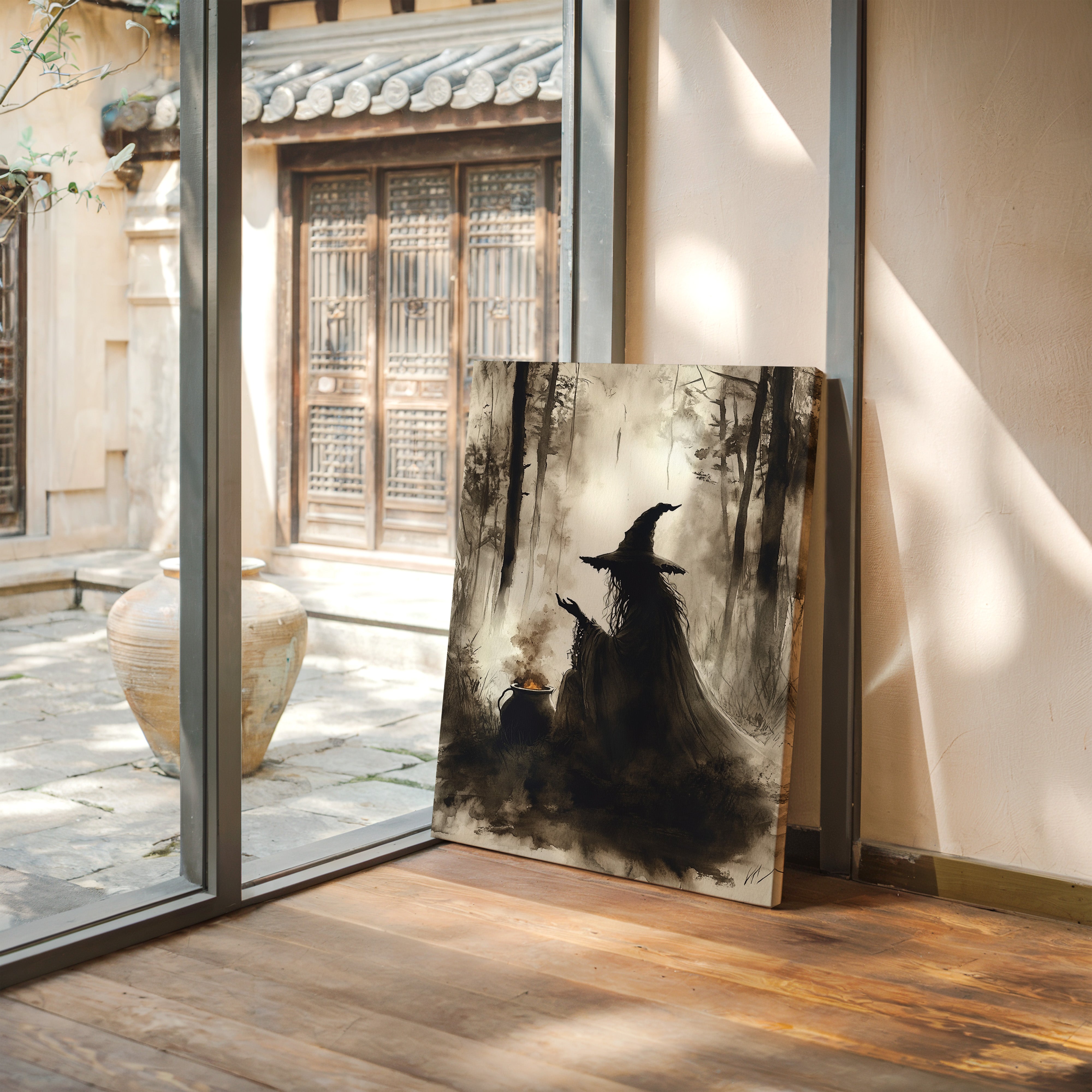 In the heart of the forest, a figure cloaked in mystery stirs the air with ancient incantations. This piece belongs to the Artisanal collection, where every brushstroke tells a tale. The enchanting silhouette of the sorceress, framed by towering trees, evokes a sense of wonder and curiosity, inviting the viewer into a world where magic feels tangible. The fluidity of ink dances across the page, merging with the earthy tones that conjure both tranquility and intrigue. Ideal for a cozy reading nook or a study, this visual narrative will inspire conversations and daydreams.