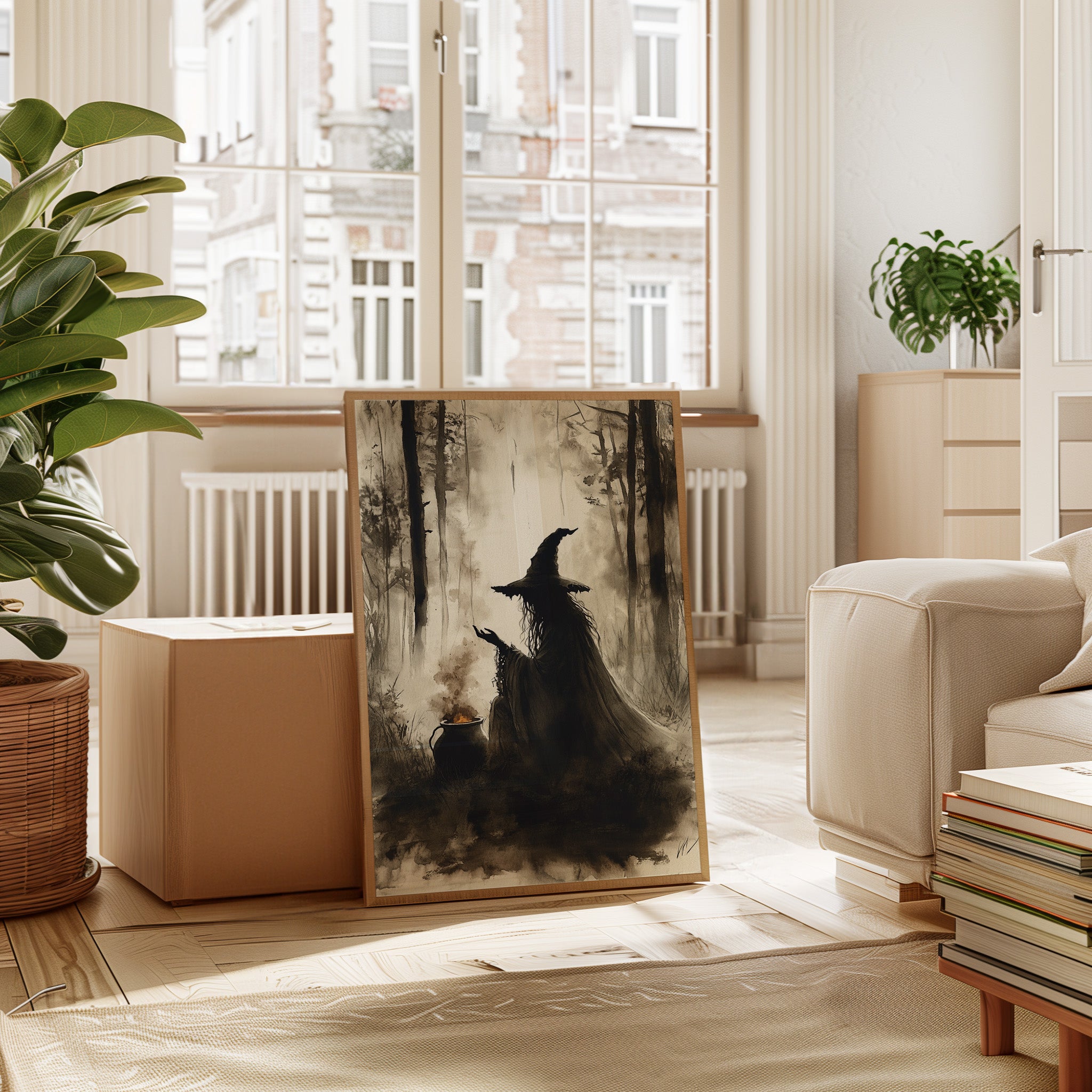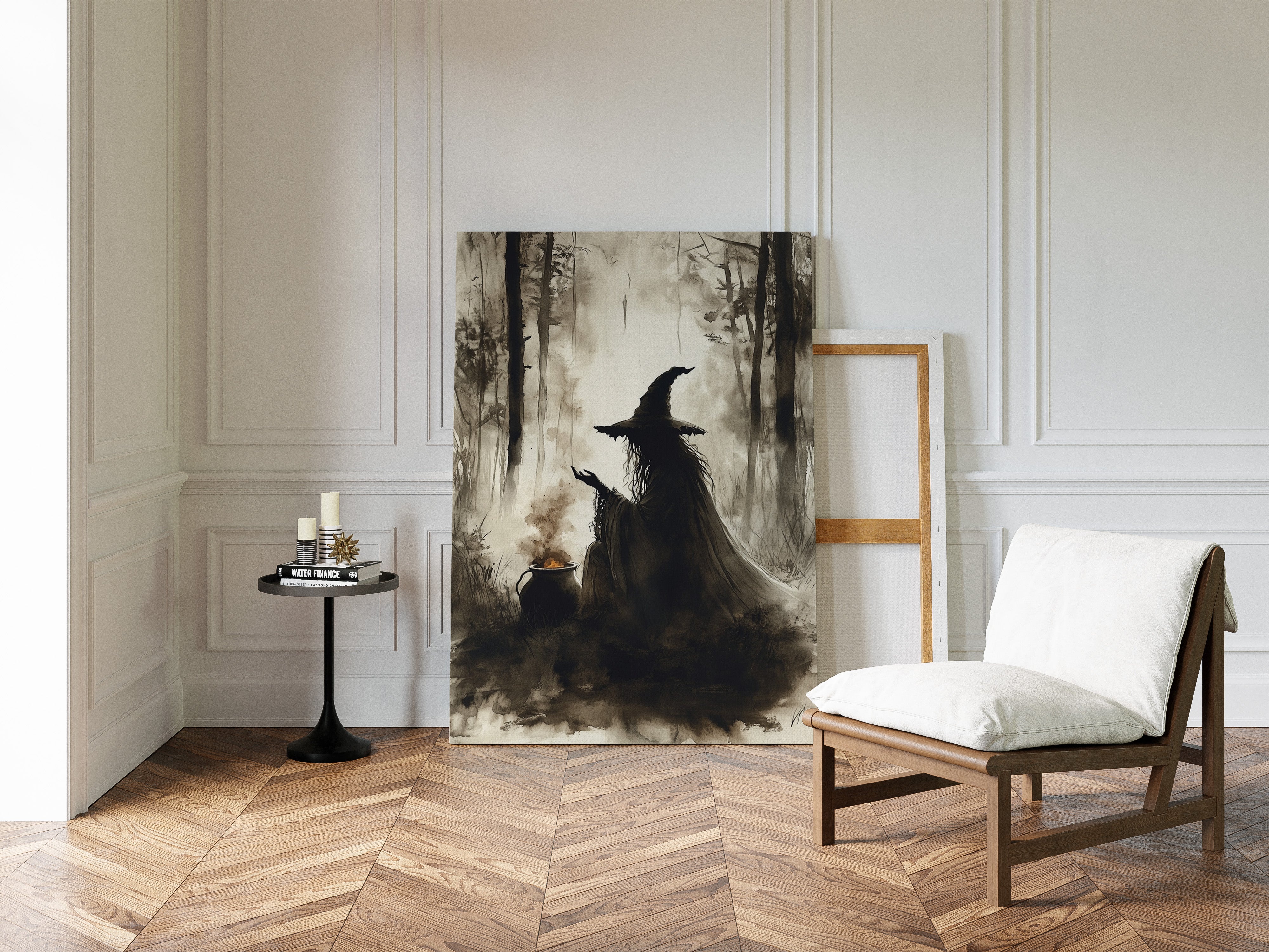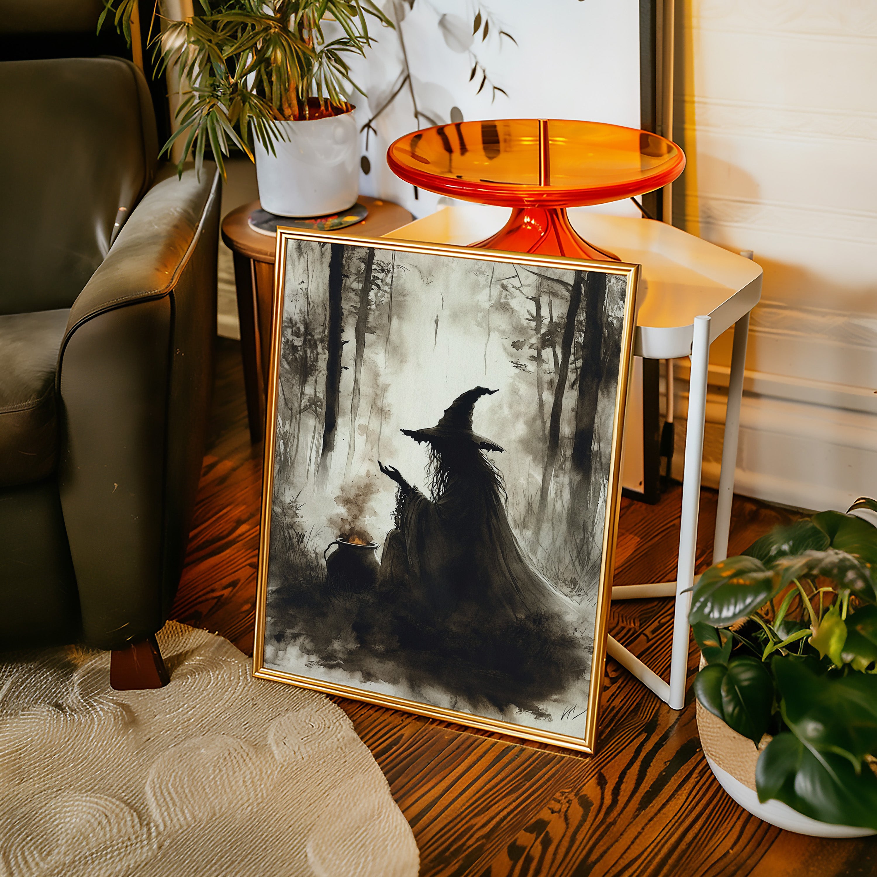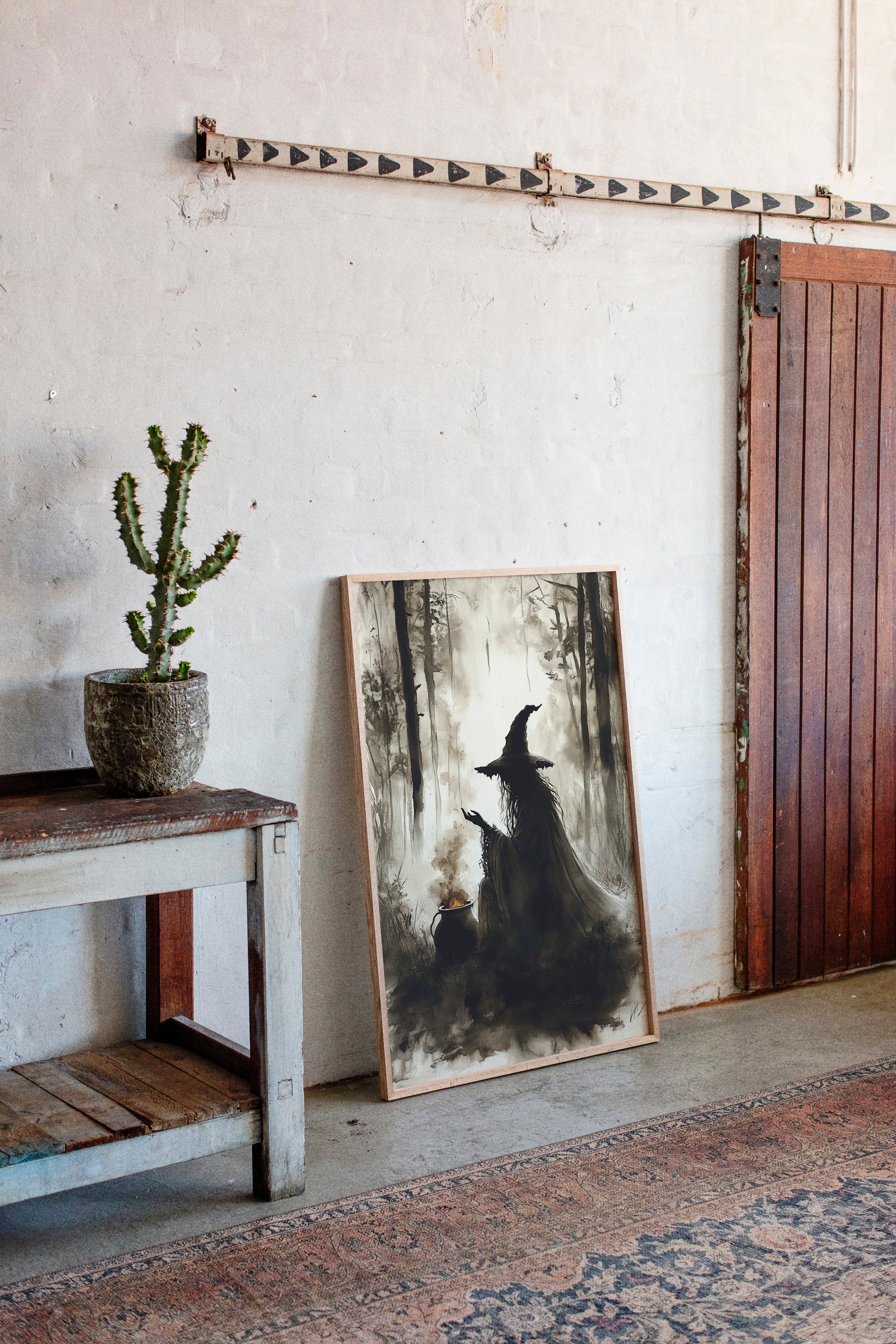 In the heart of the forest, a figure cloaked in mystery stirs the air with ancient incantations. This piece belongs to the Artisanal collection, where every brushstroke tells a tale. The enchanting silhouette of the sorceress, framed by towering trees, evokes a sense of wonder and curiosity, inviting the viewer into a world where magic feels tangible. The fluidity of ink dances across the page, merging with the earthy tones that conjure both tranquility and intrigue. Ideal for a cozy reading nook or a study, this visual narrative will inspire conversations and daydreams.