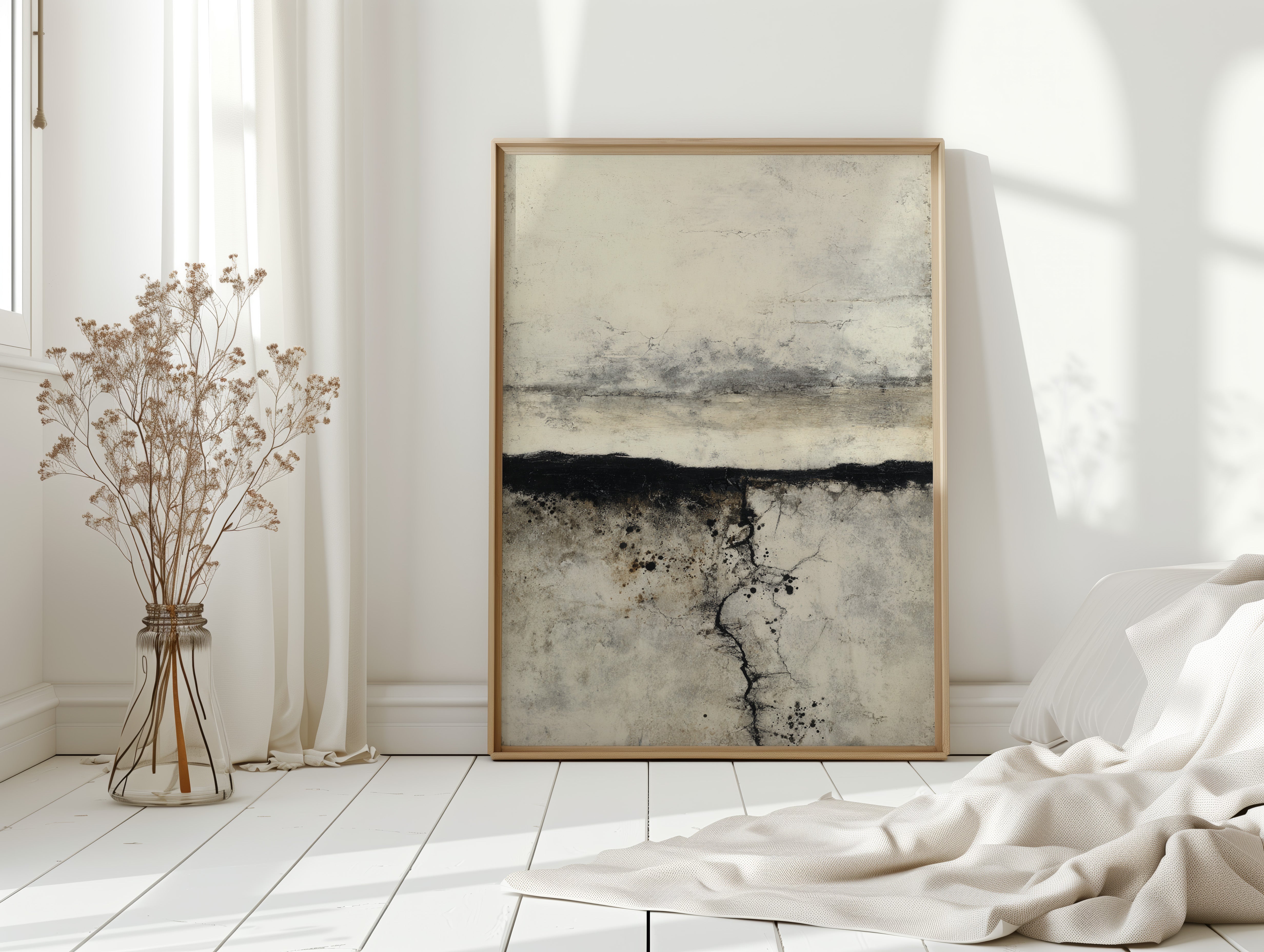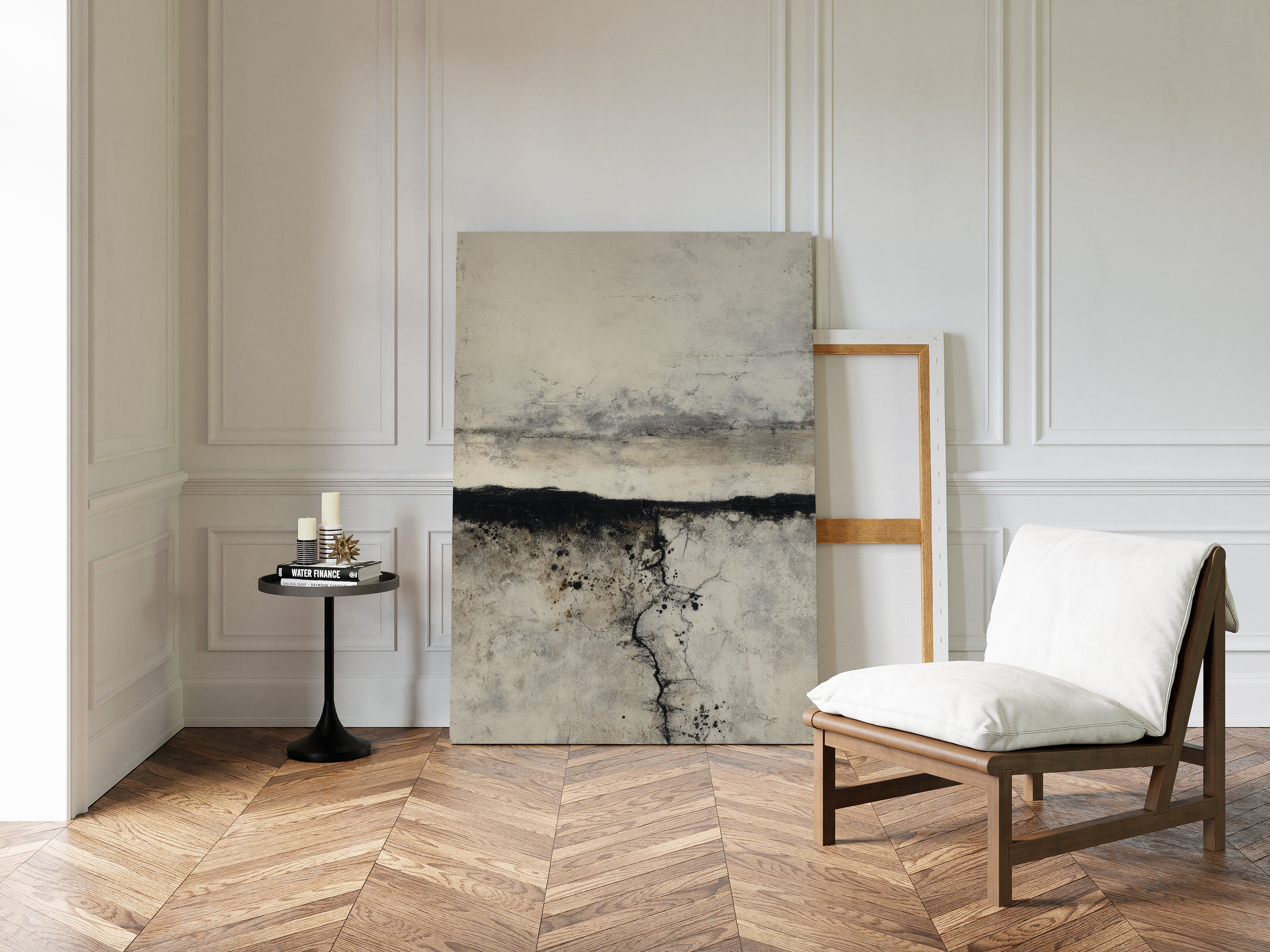 In a landscape of muted tones, a story unfolds beneath the surface, revealing the layers of time and emotion. This piece resonates with the artisanal spirit, capturing the essence of tactile beauty. Subtle hues of gray and black dance together, creating a textured horizon that suggests both fragility and resilience. Ideal for a serene study or a contemplative corner, this artwork invites quiet reflection and introspection.