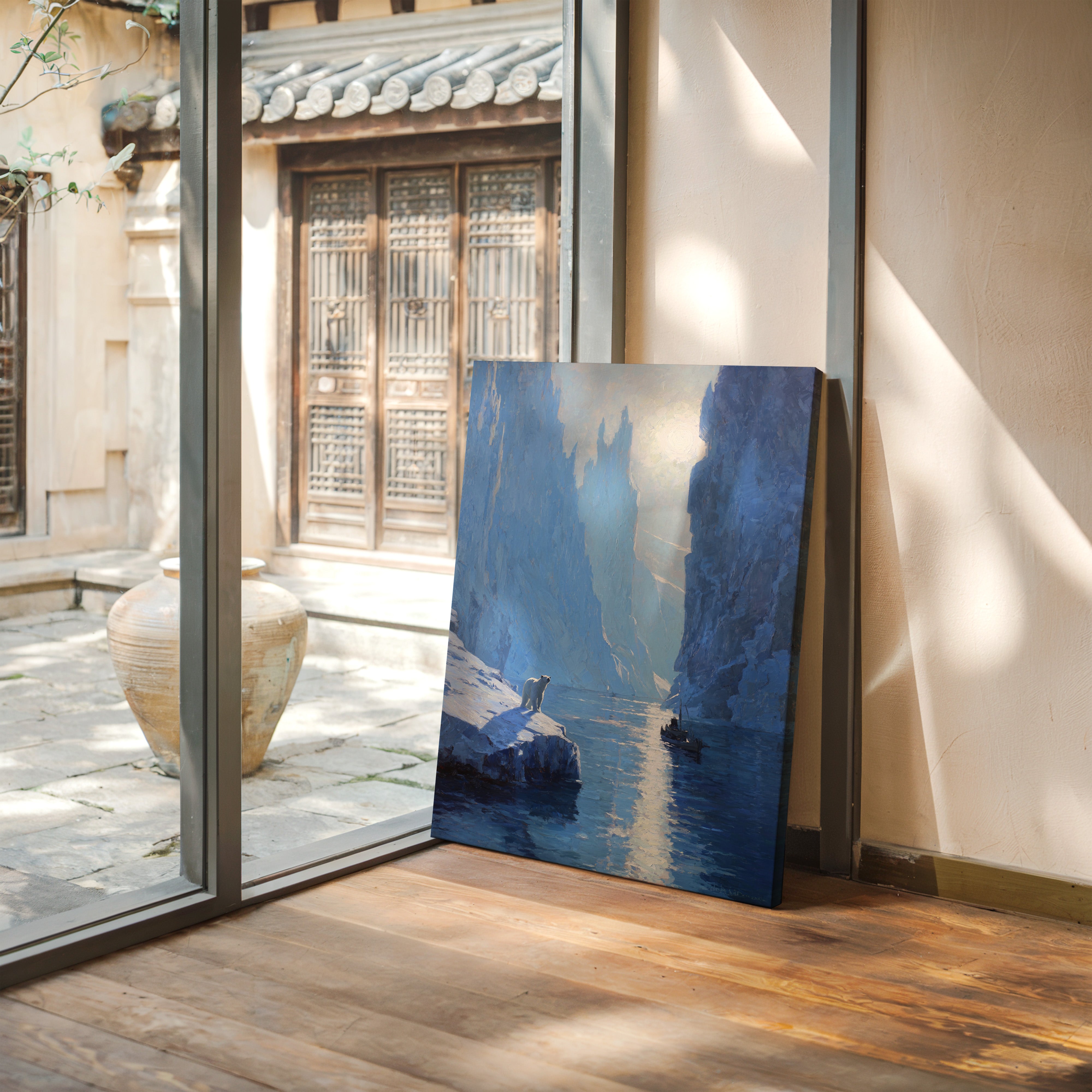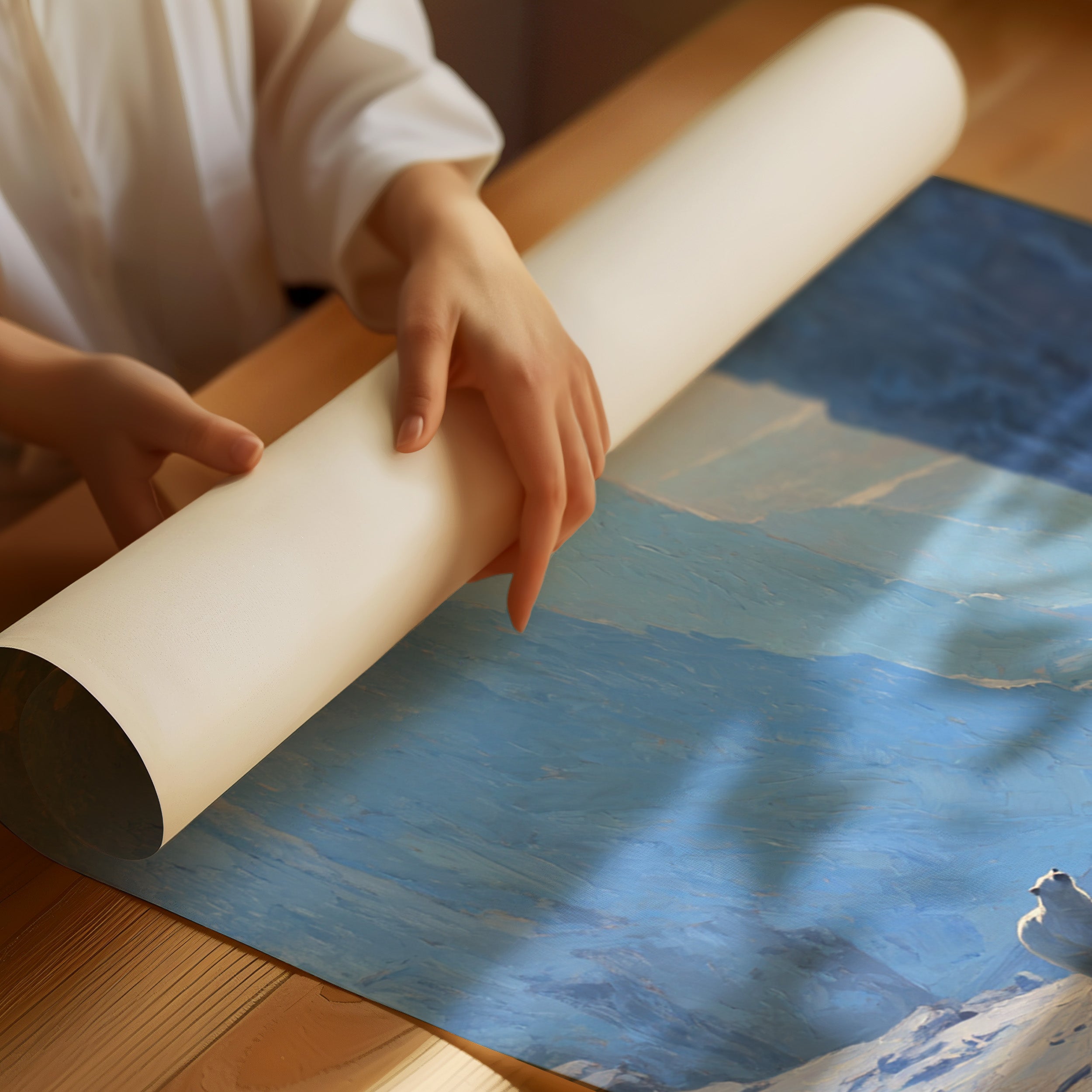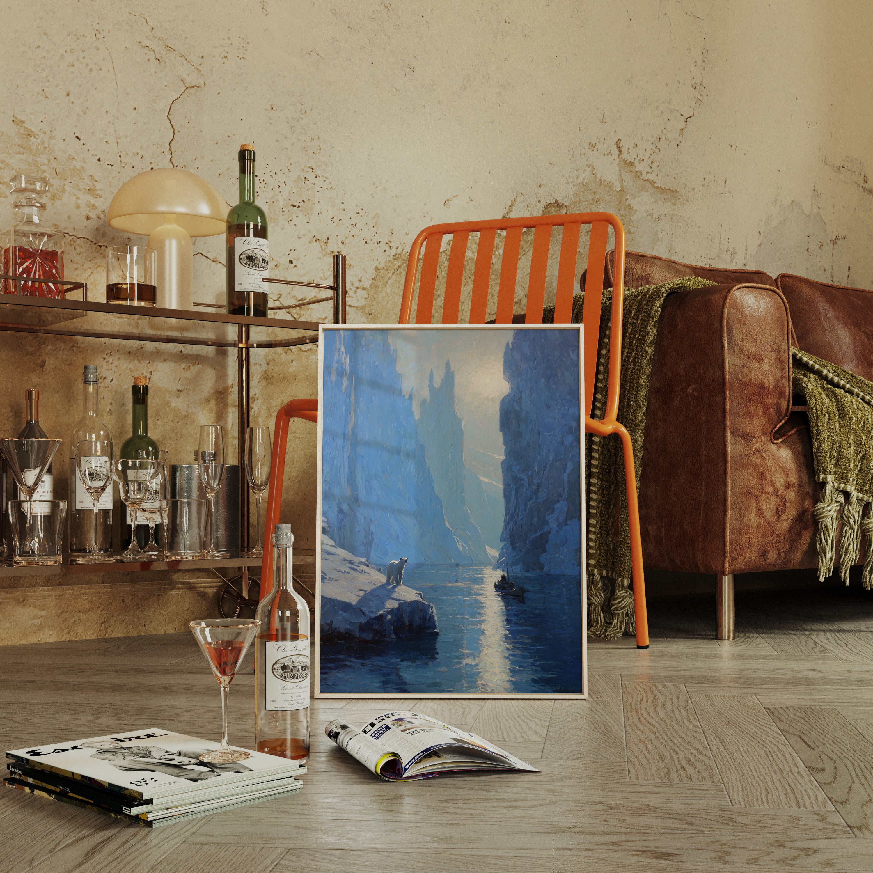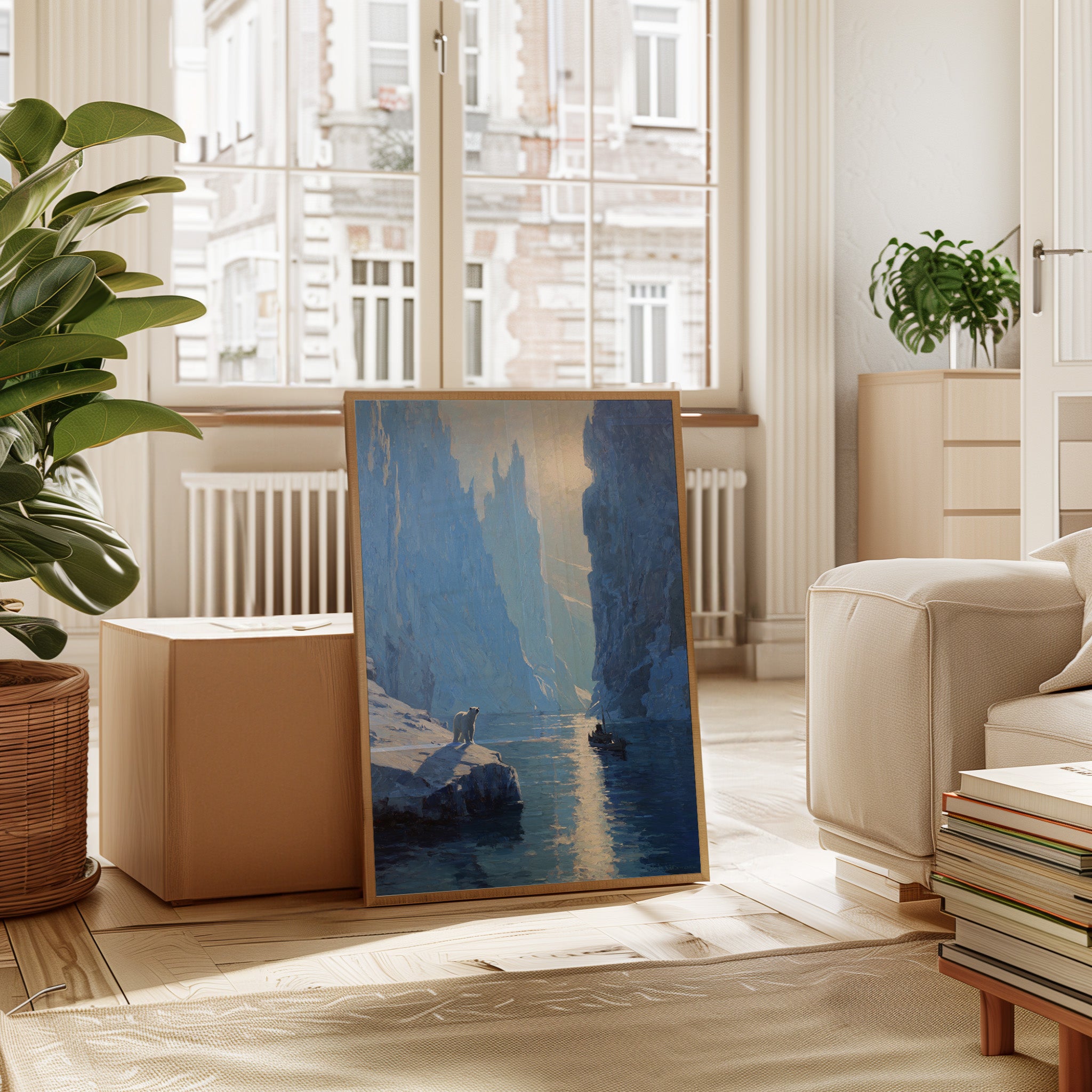 A solitary polar bear stands sentinel on a rocky outcrop, gazing into the vastness of an icy fjord, where crystalline cliffs rise majestically against a shimmering sky. This piece embodies the serene elegance of the Artisanal collection, inviting contemplation and wonder. As cool blues and whites dance across the canvas, the textures of the ice and water evoke a sense of peace, while the lone bear hints at the resilience of nature in a fragile world. Perfect for a tranquil living room or a serene study, this artwork brings the beauty of the Arctic indoors.