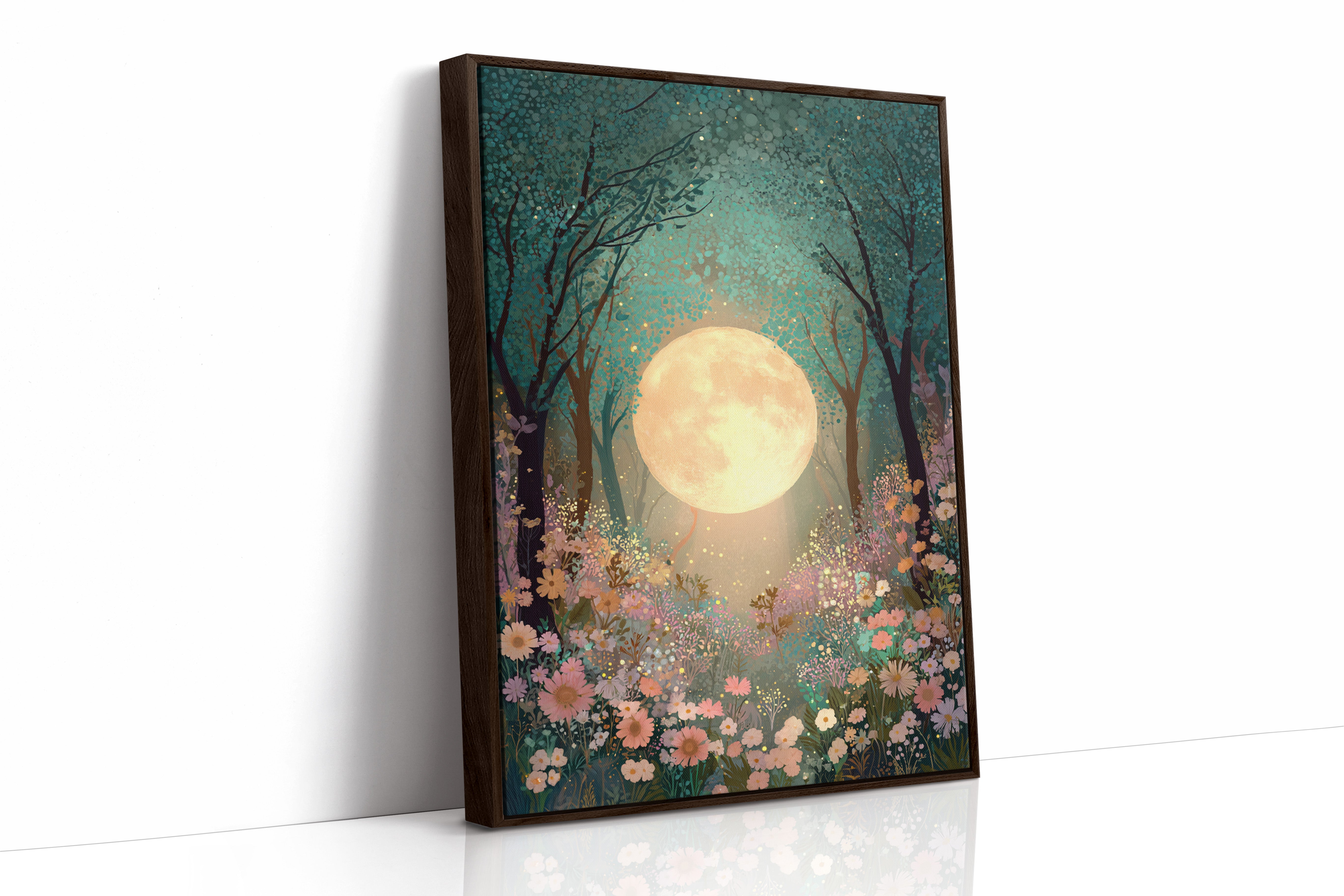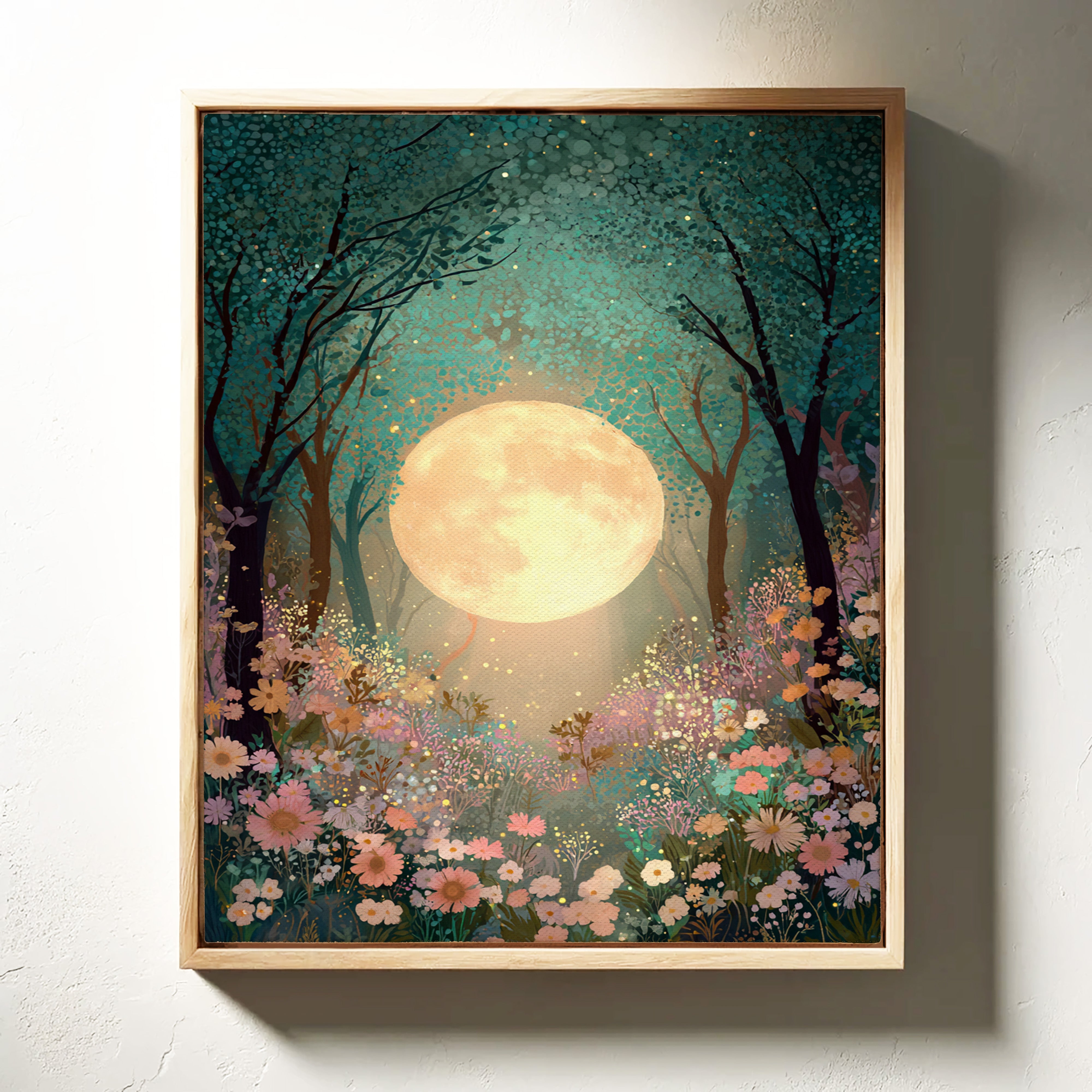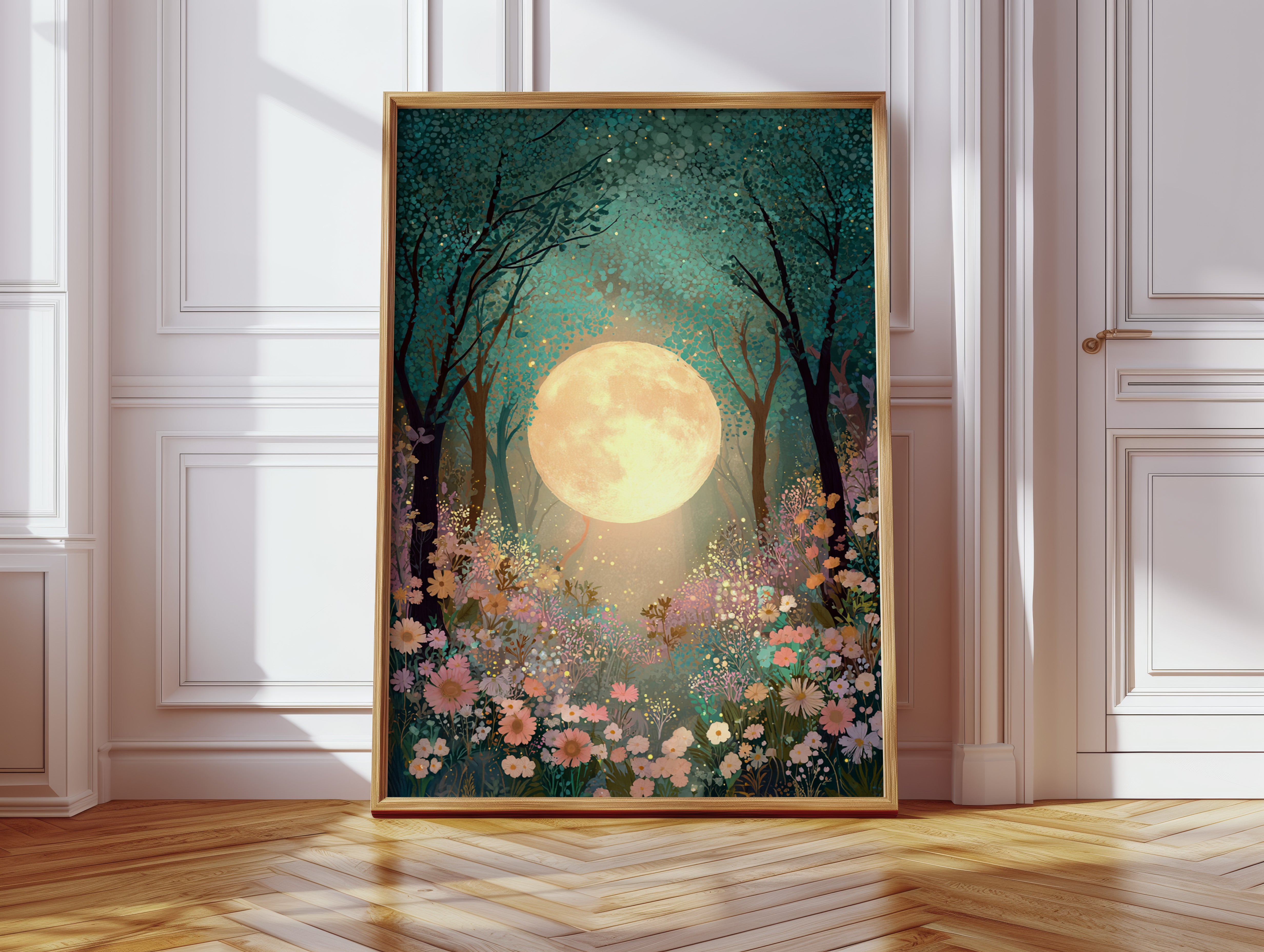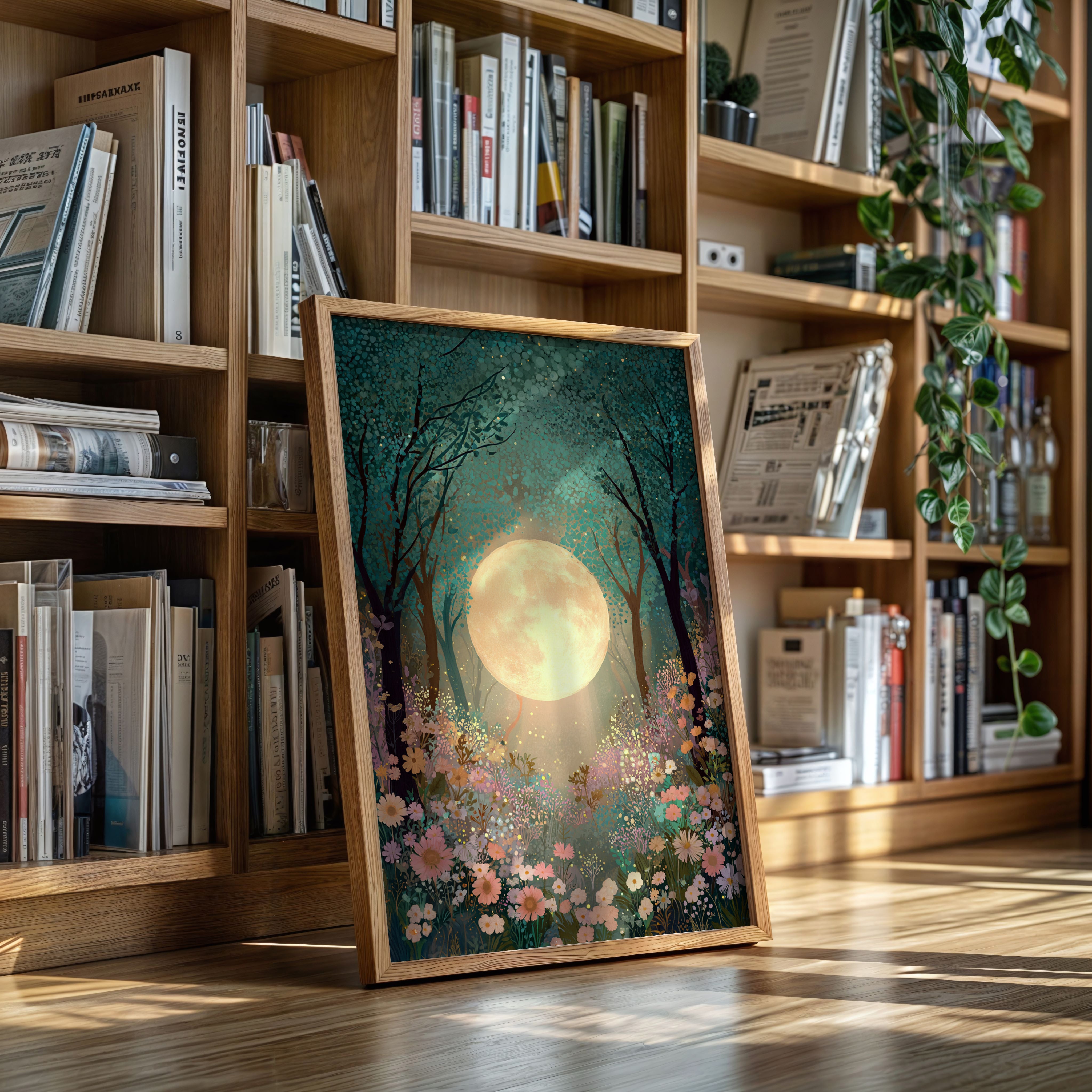 In a secret glade, the moon spills its golden light, casting a gentle glow upon a sea of wildflowers. This piece belongs to the Artisanal collection, where nature's beauty is captured with exquisite detail. A tapestry of soft pastels and rich greens invites the viewer to wander through a dreamscape, as delicate petals sway in the night breeze, illuminated by the celestial orb overhead. Ideal for a tranquil bedroom or a serene reading nook, this artwork transforms any space into a haven of peace.