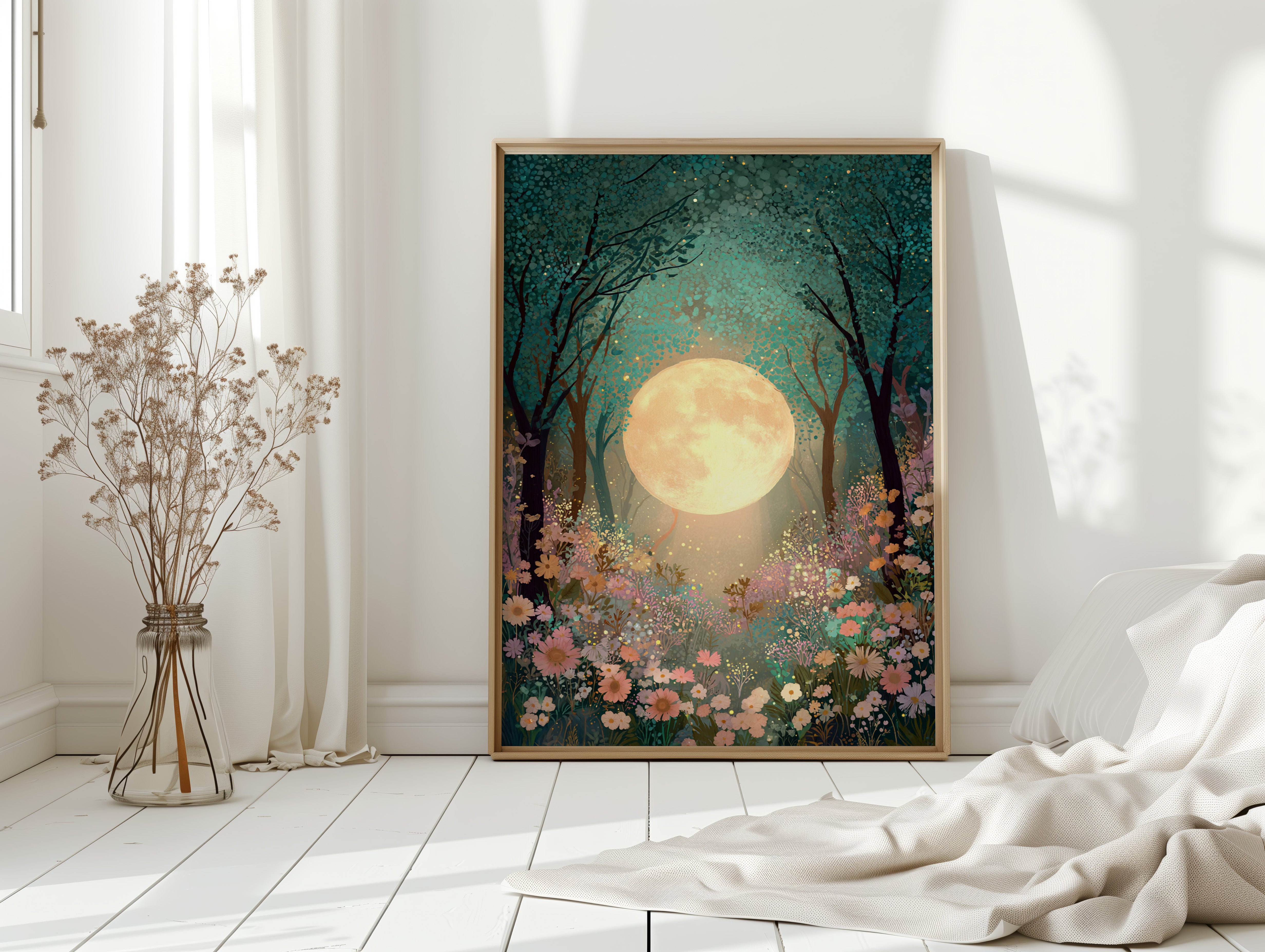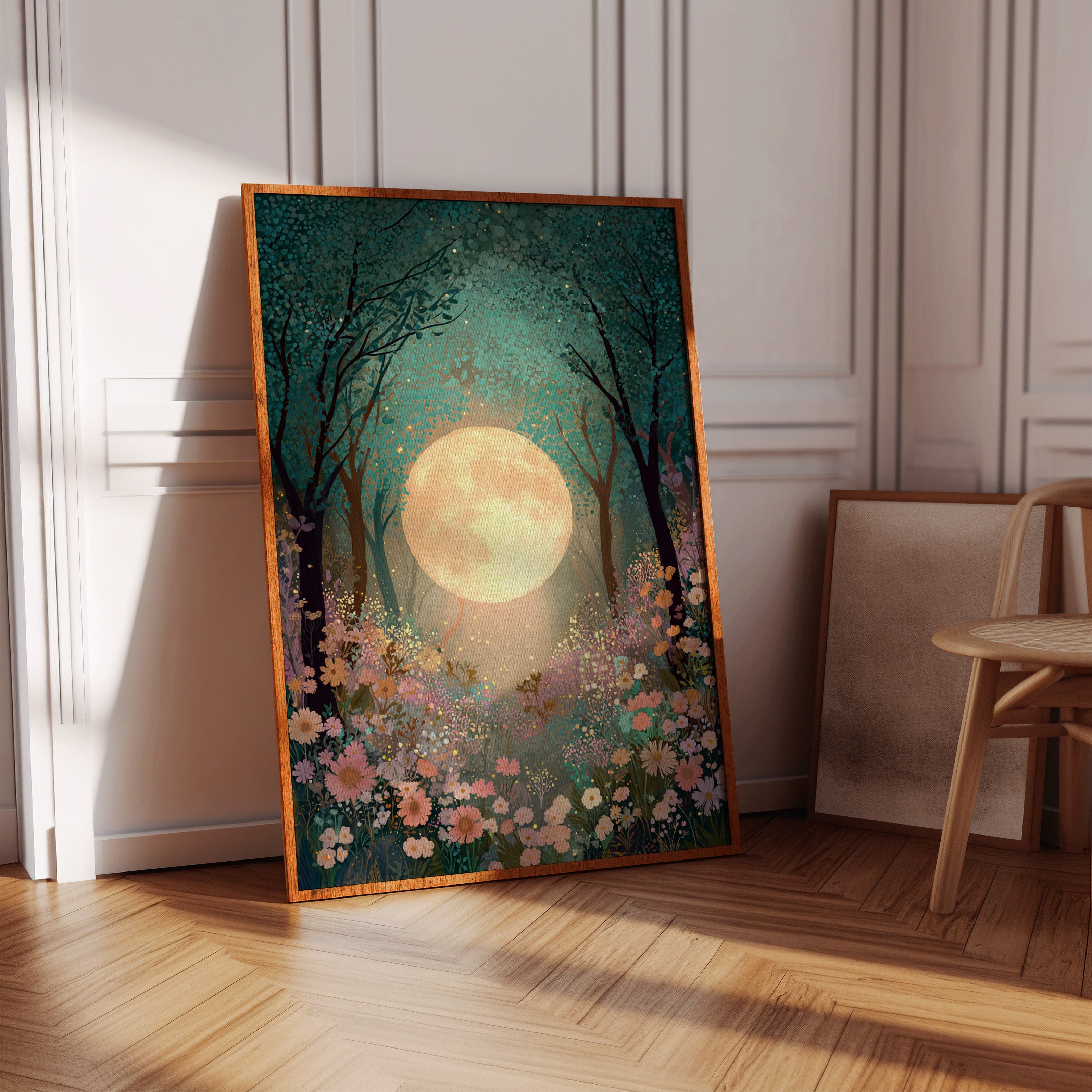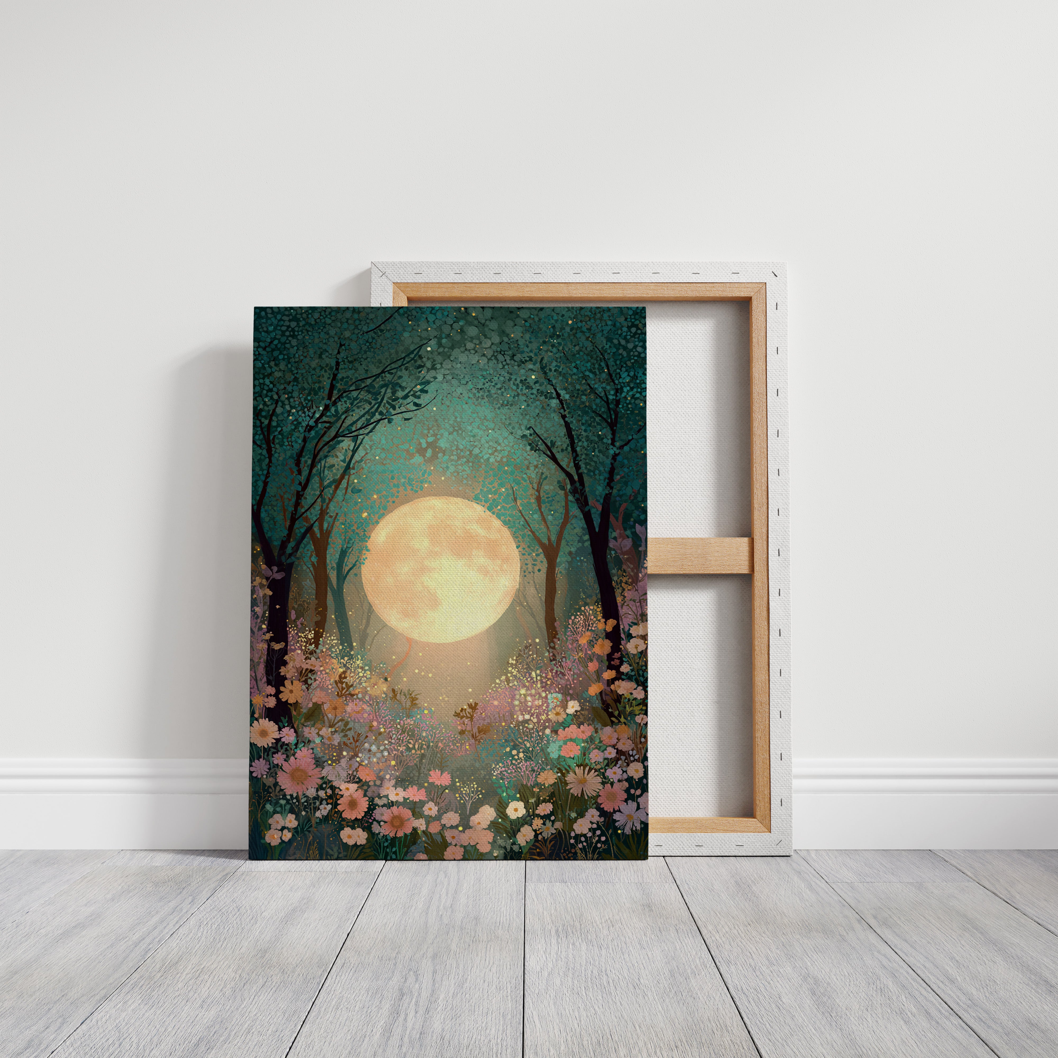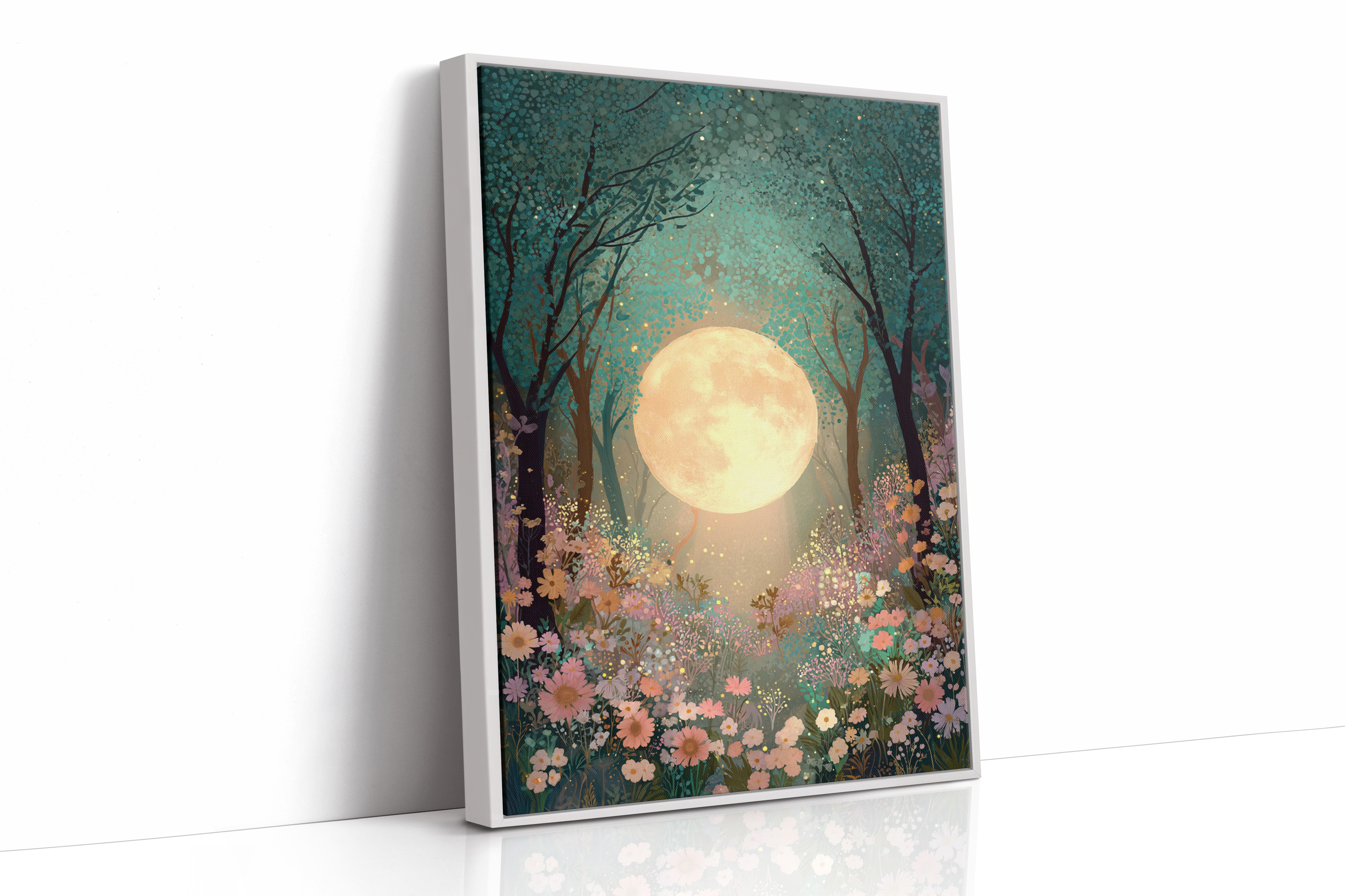 In a secret glade, the moon spills its golden light, casting a gentle glow upon a sea of wildflowers. This piece belongs to the Artisanal collection, where nature's beauty is captured with exquisite detail. A tapestry of soft pastels and rich greens invites the viewer to wander through a dreamscape, as delicate petals sway in the night breeze, illuminated by the celestial orb overhead. Ideal for a tranquil bedroom or a serene reading nook, this artwork transforms any space into a haven of peace.