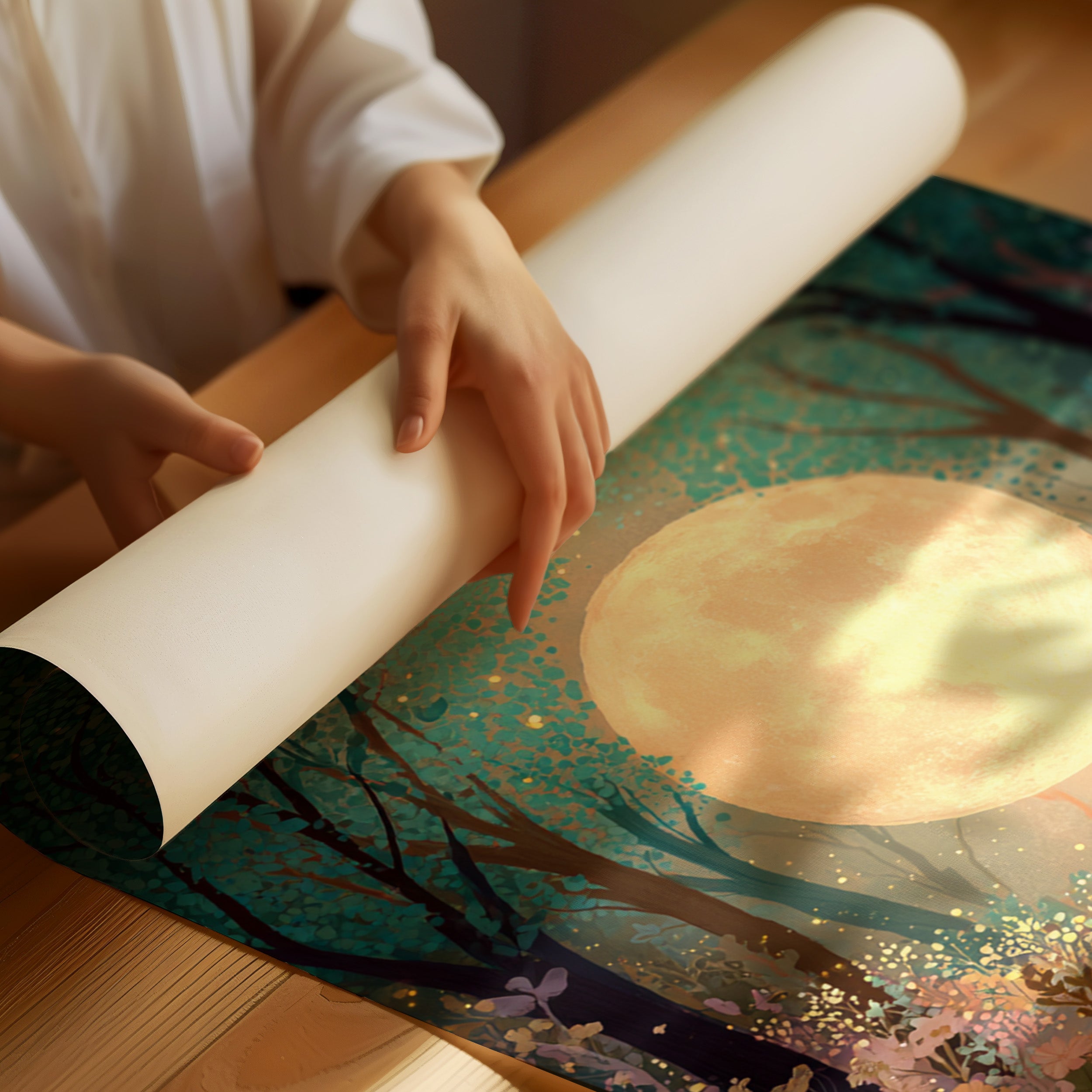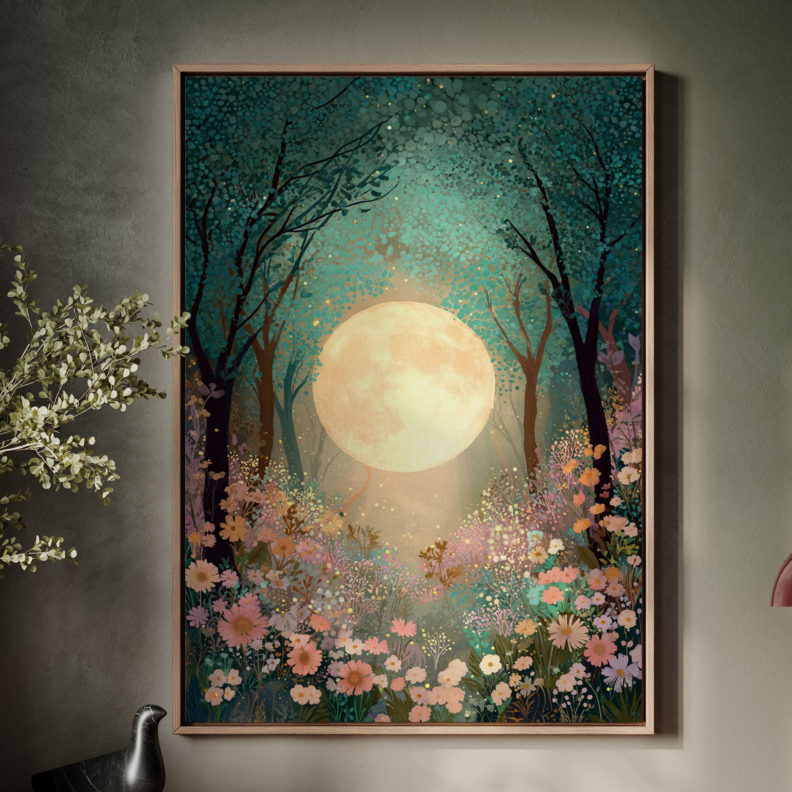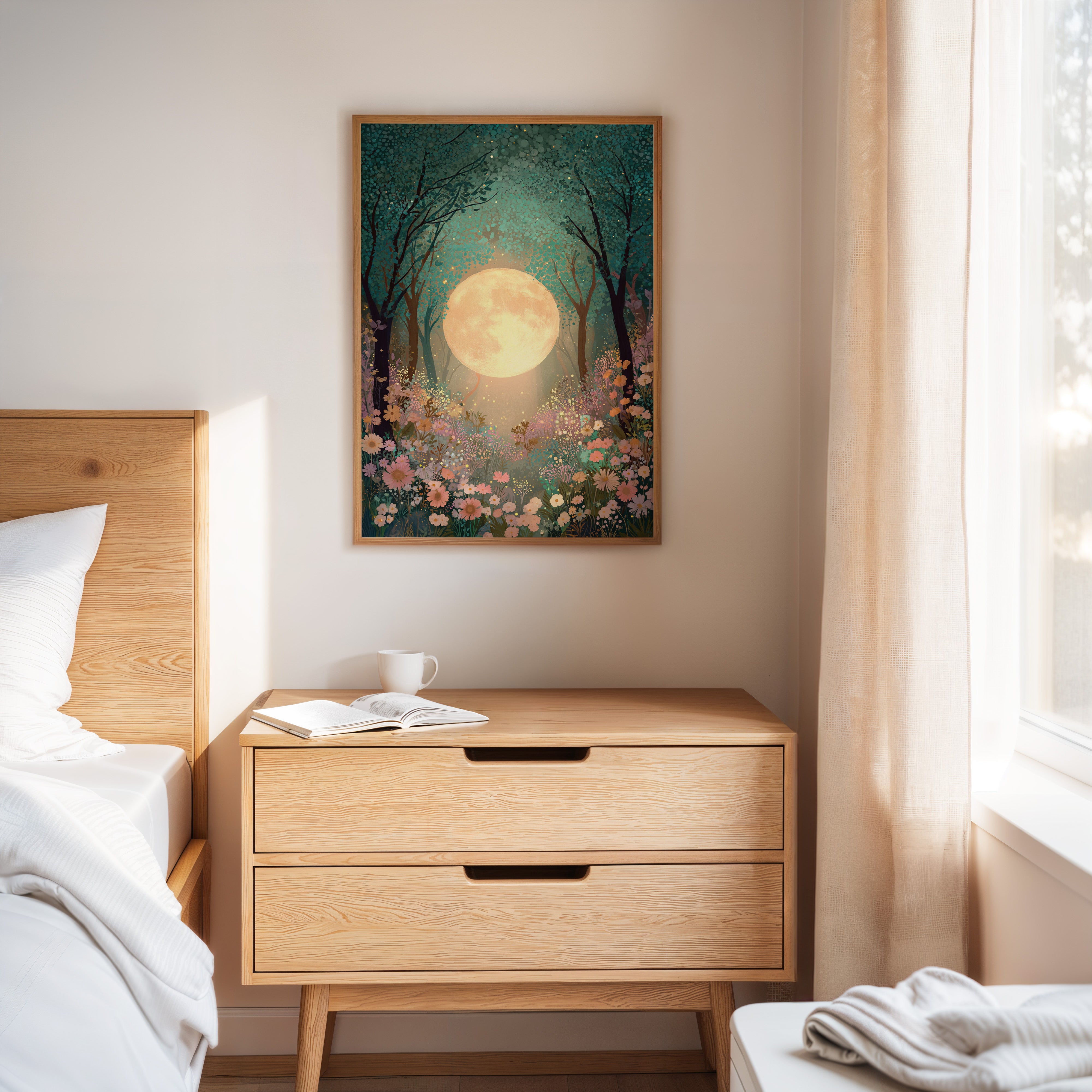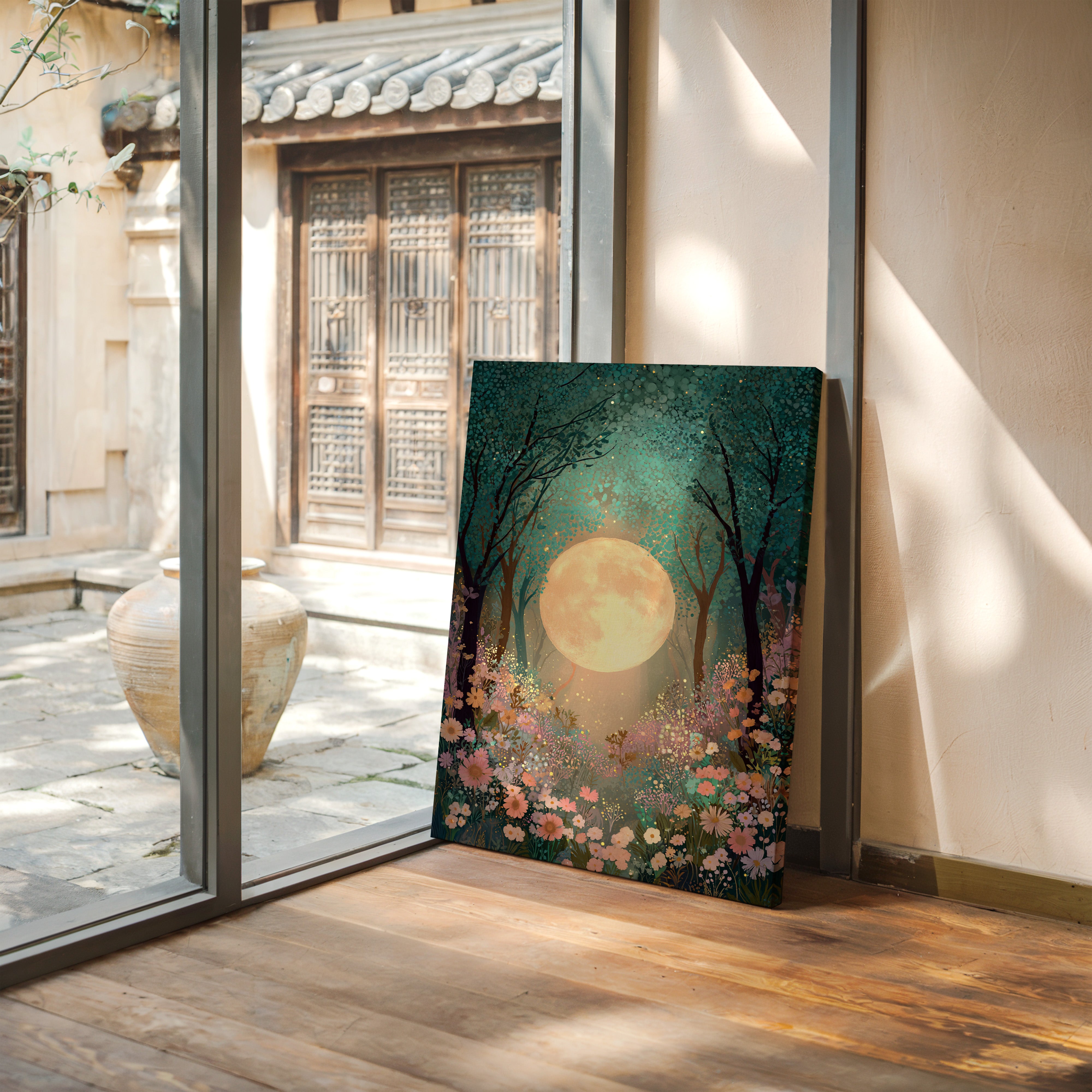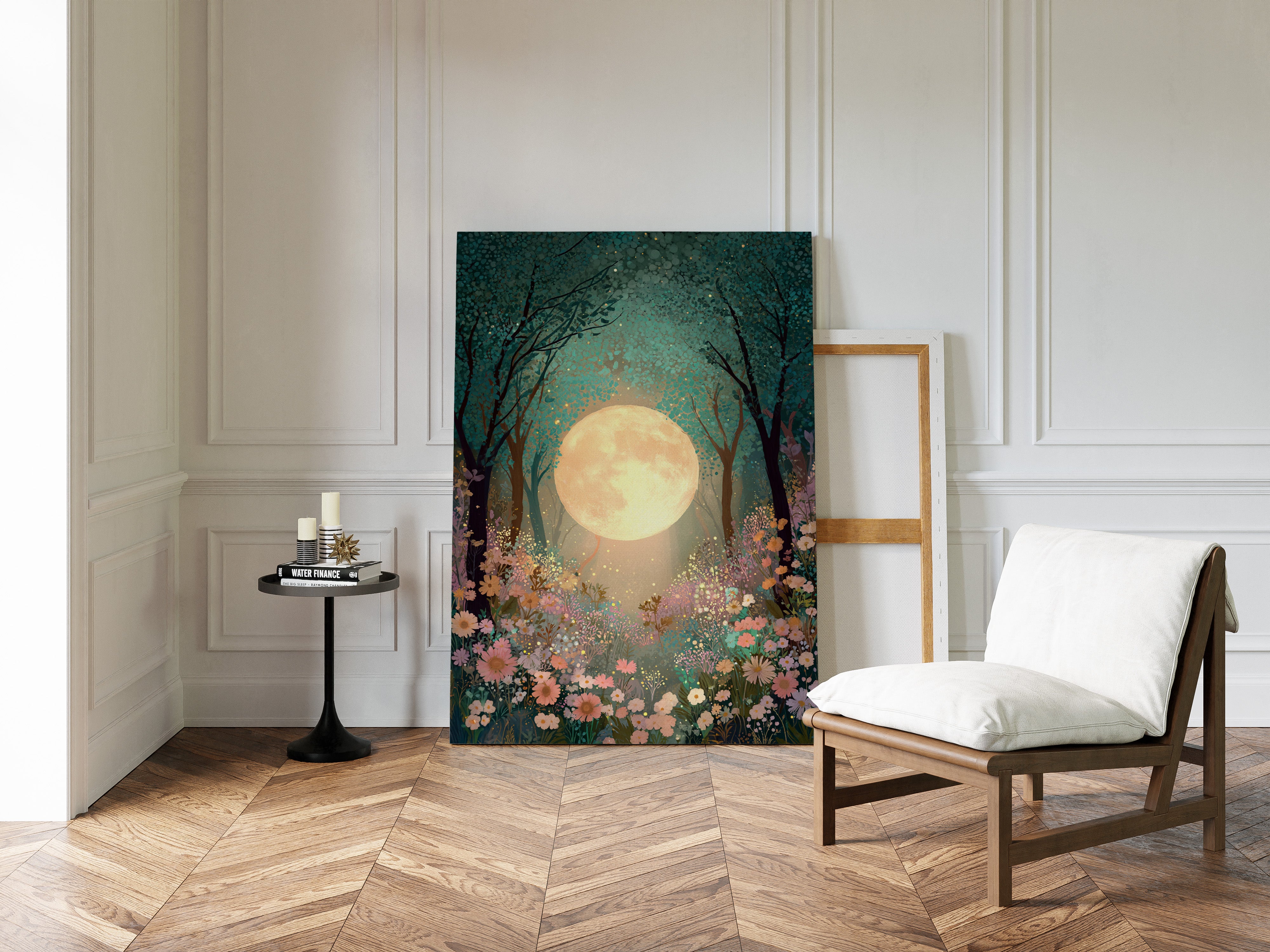 In a secret glade, the moon spills its golden light, casting a gentle glow upon a sea of wildflowers. This piece belongs to the Artisanal collection, where nature's beauty is captured with exquisite detail. A tapestry of soft pastels and rich greens invites the viewer to wander through a dreamscape, as delicate petals sway in the night breeze, illuminated by the celestial orb overhead. Ideal for a tranquil bedroom or a serene reading nook, this artwork transforms any space into a haven of peace.