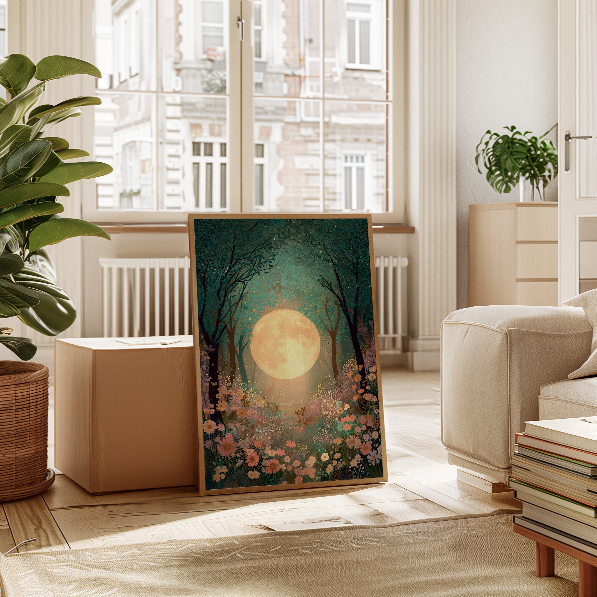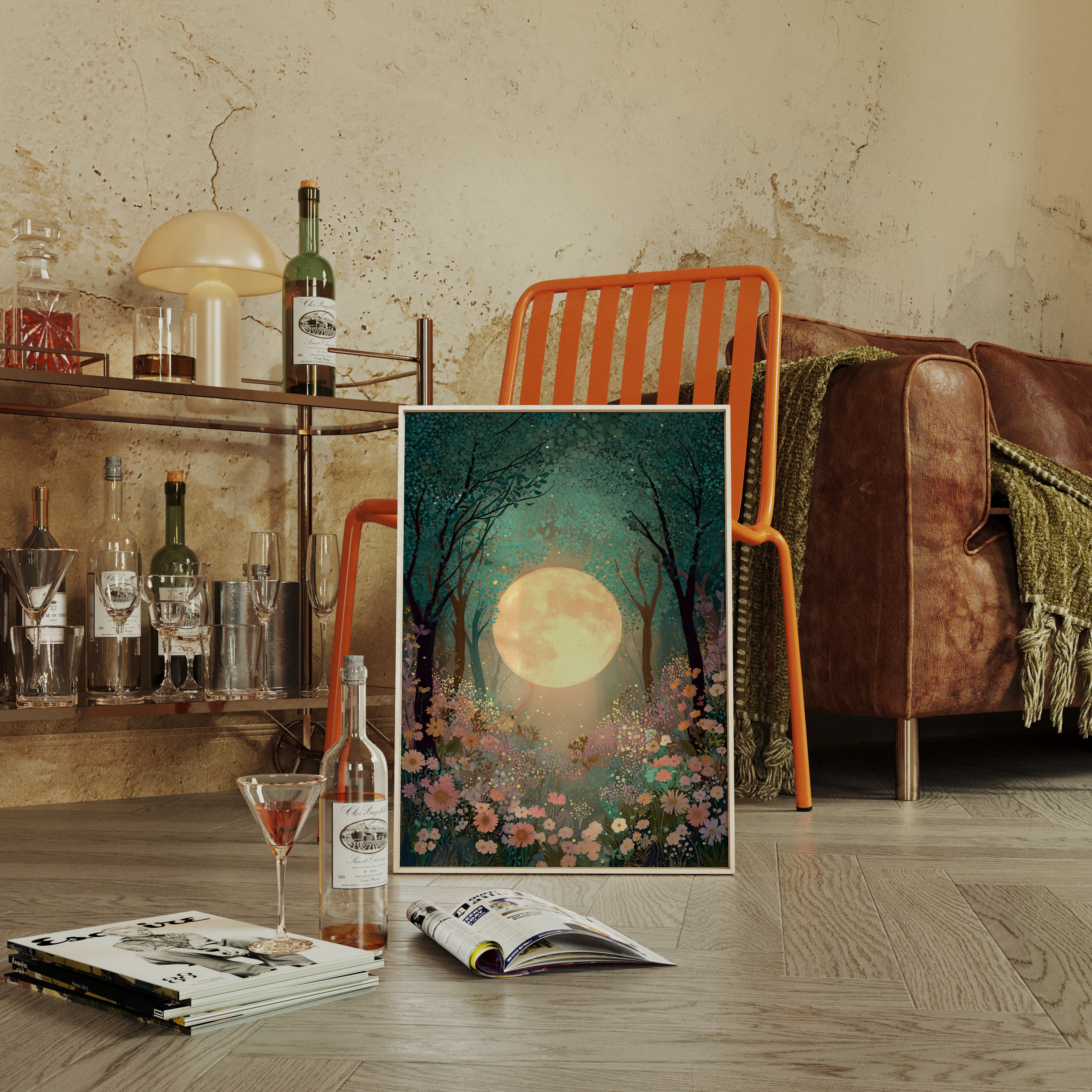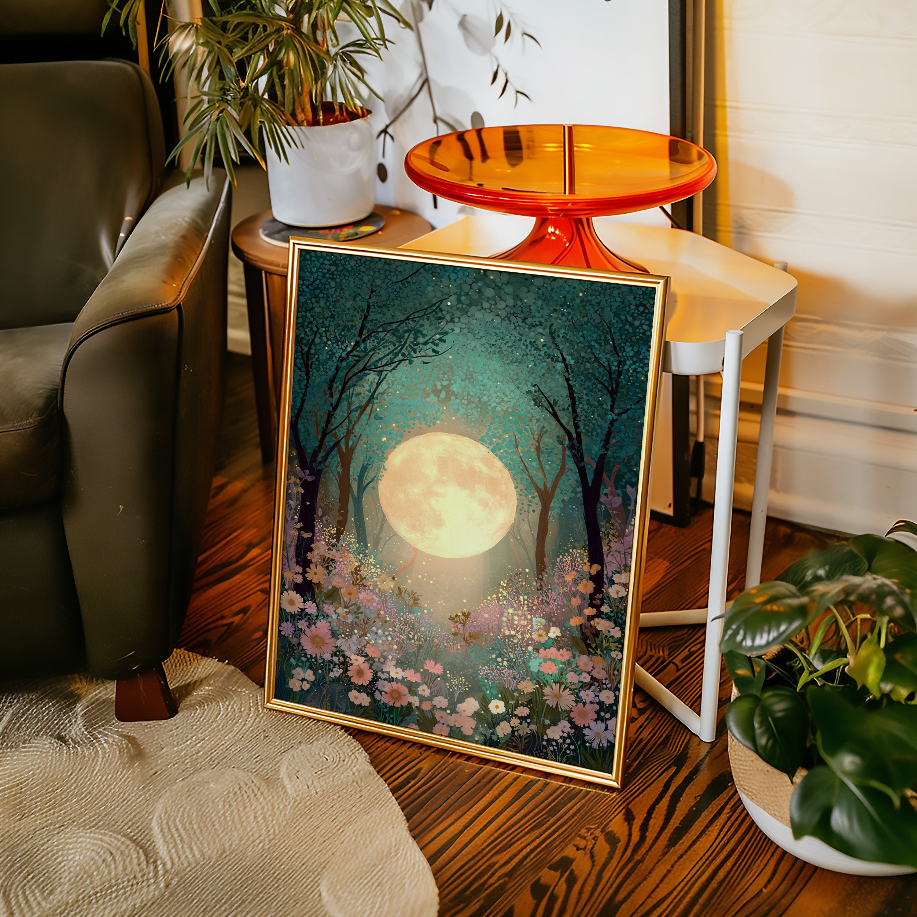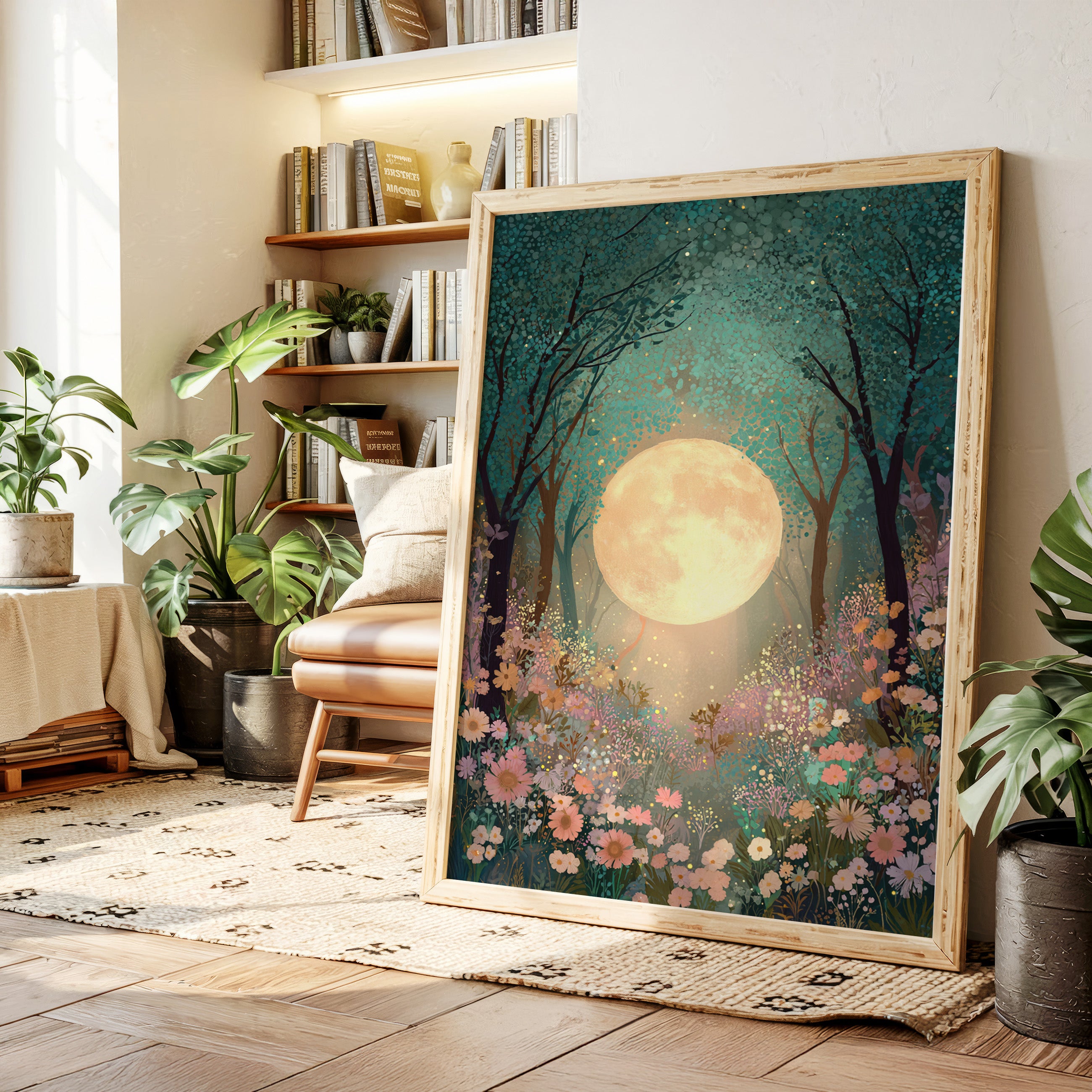 In a secret glade, the moon spills its golden light, casting a gentle glow upon a sea of wildflowers. This piece belongs to the Artisanal collection, where nature's beauty is captured with exquisite detail. A tapestry of soft pastels and rich greens invites the viewer to wander through a dreamscape, as delicate petals sway in the night breeze, illuminated by the celestial orb overhead. Ideal for a tranquil bedroom or a serene reading nook, this artwork transforms any space into a haven of peace.