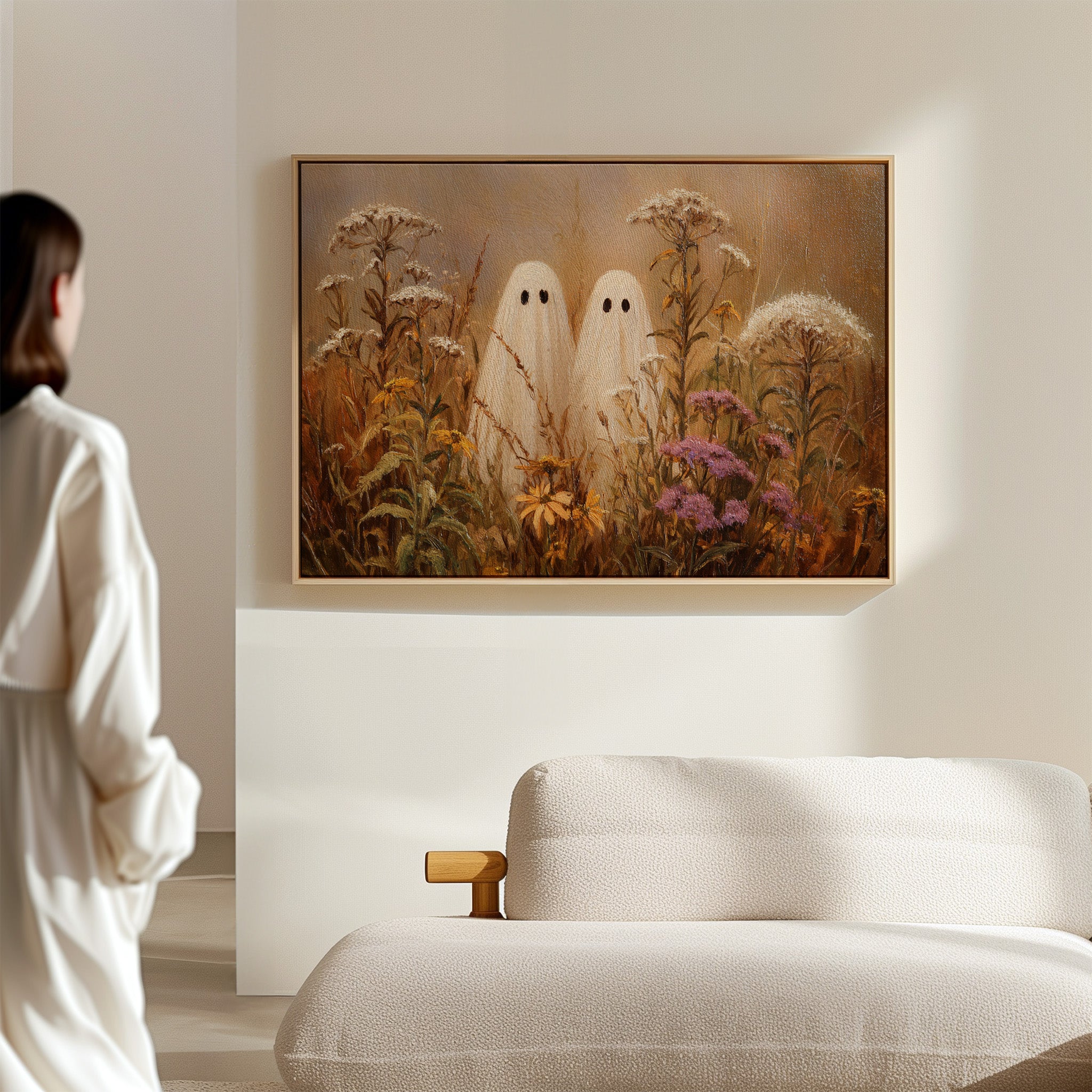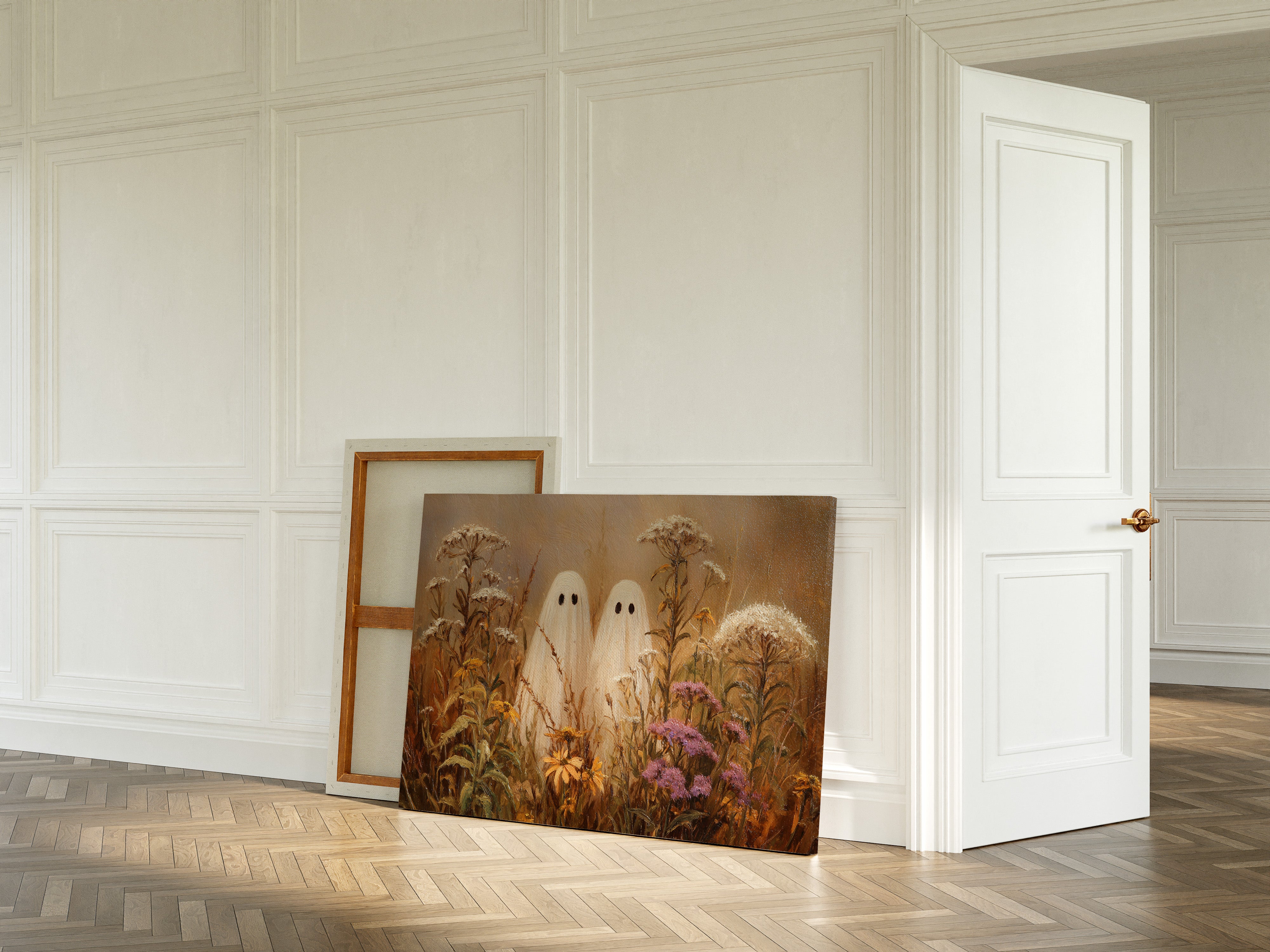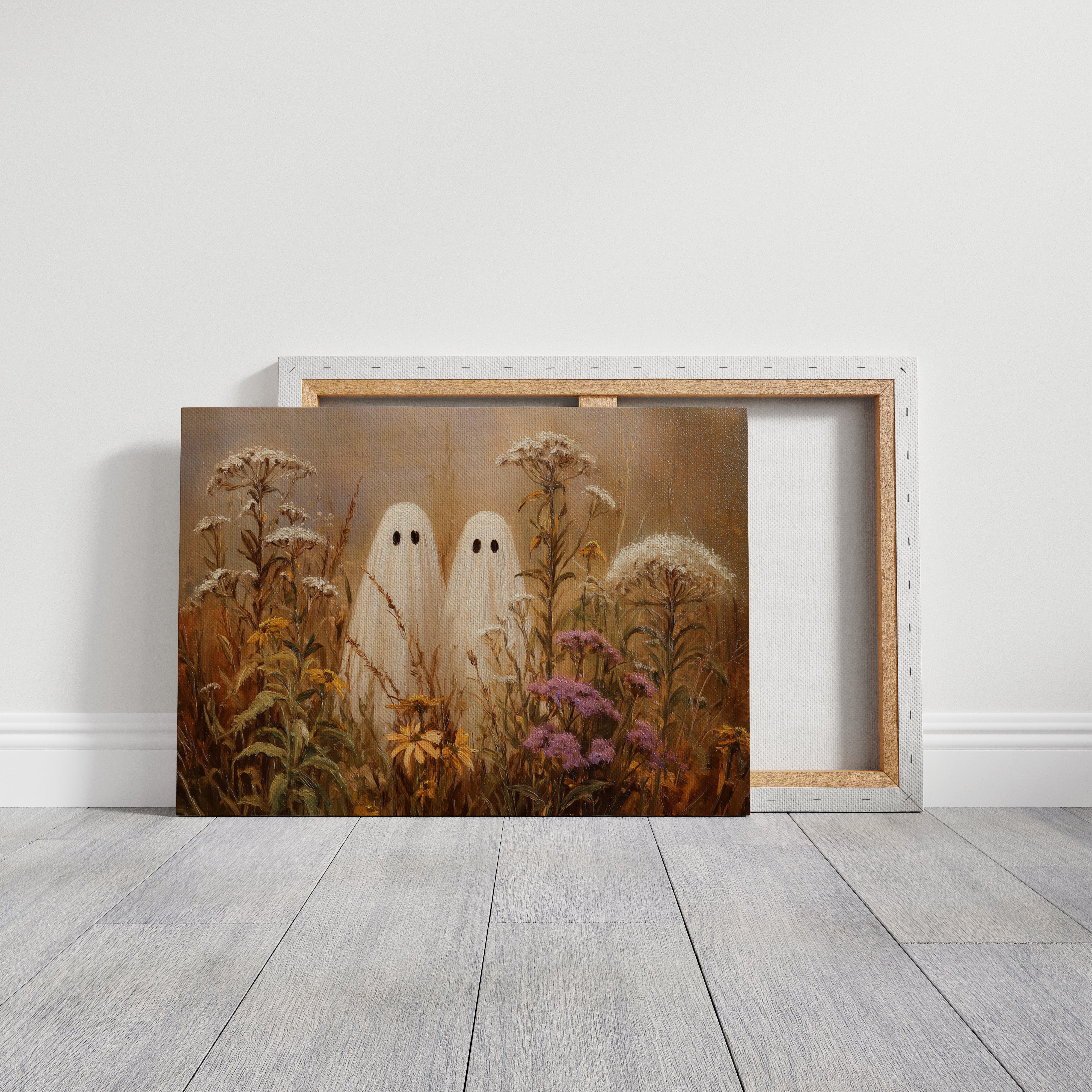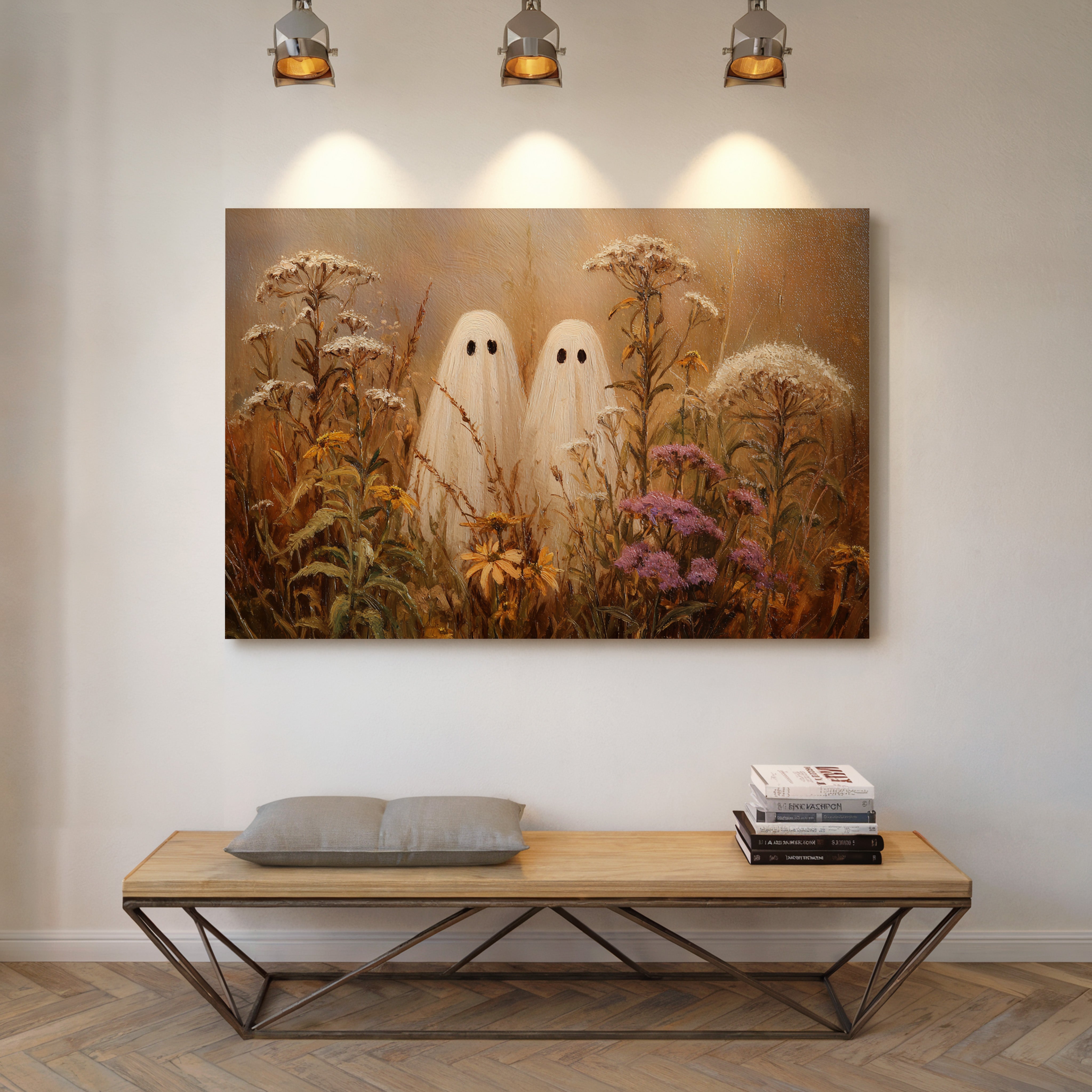 In a field where wildflowers sway, two figures emerge, shrouded in soft, ghostly hues. This piece captures the essence of the contemporary collection, blending whimsy with the natural world. The delicate textures of the foliage contrast beautifully with the ethereal forms, creating a narrative that invites curiosity and wonder. Perfect for brightening a cozy nook or sparking conversation in a living room, this artwork adds a touch of enchantment to any space.