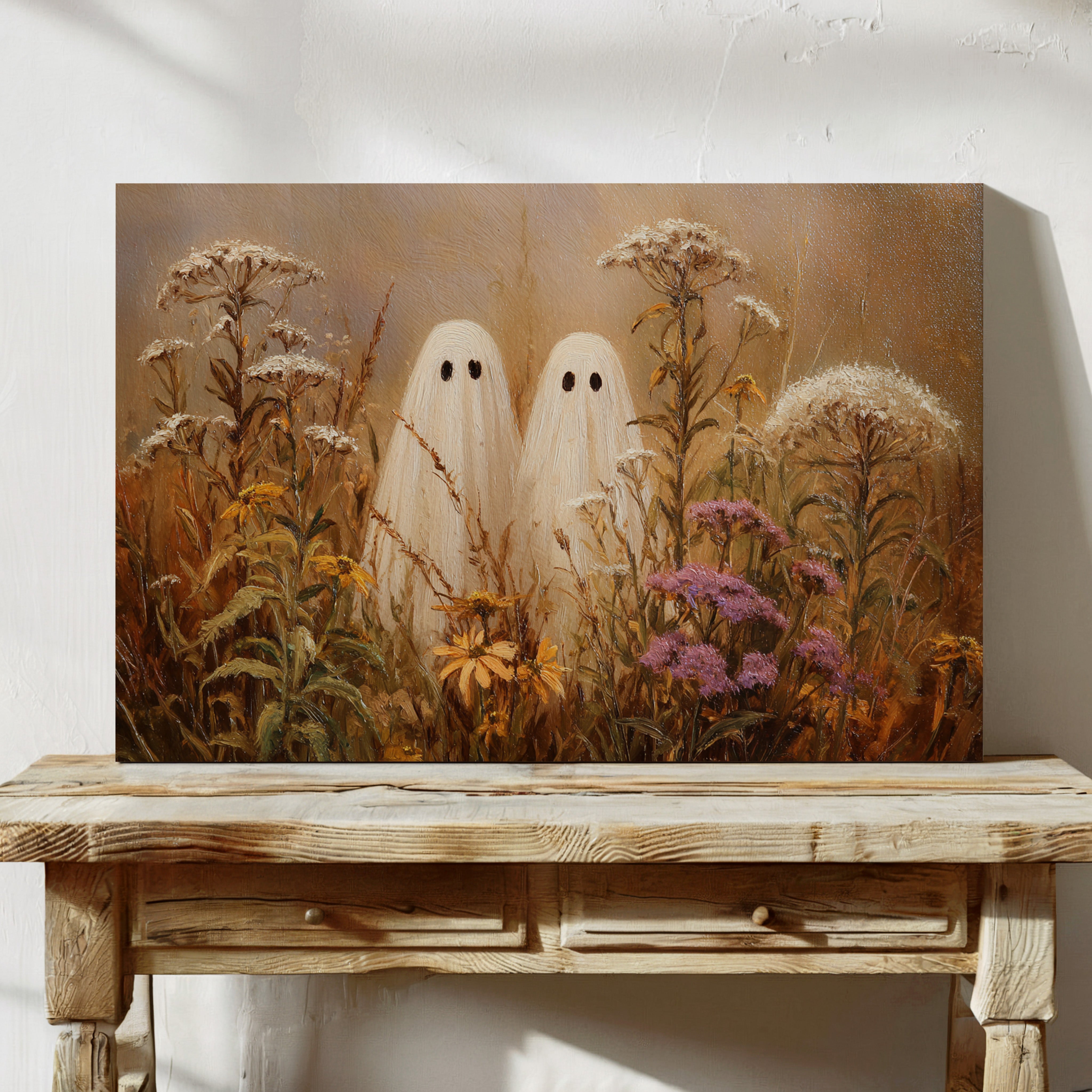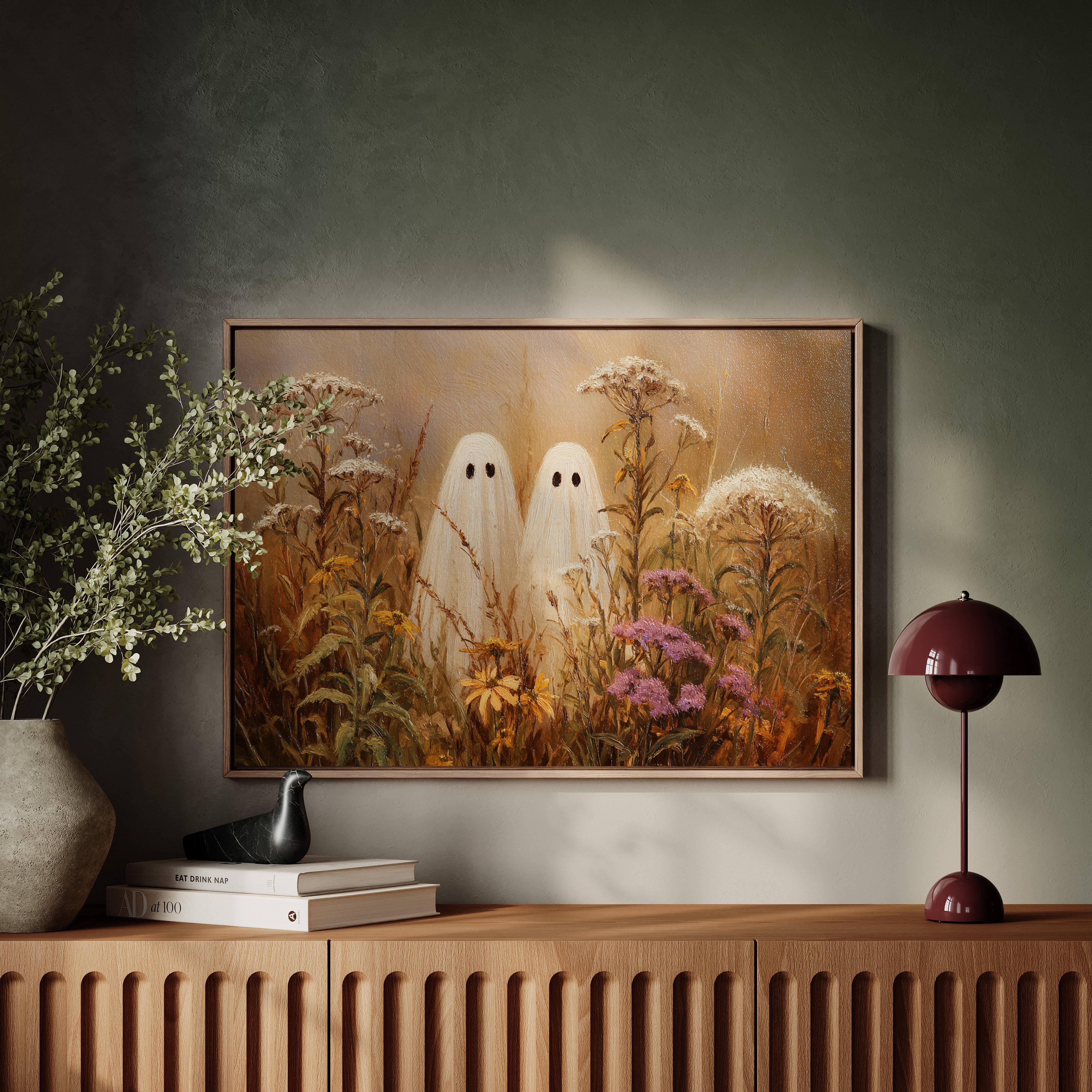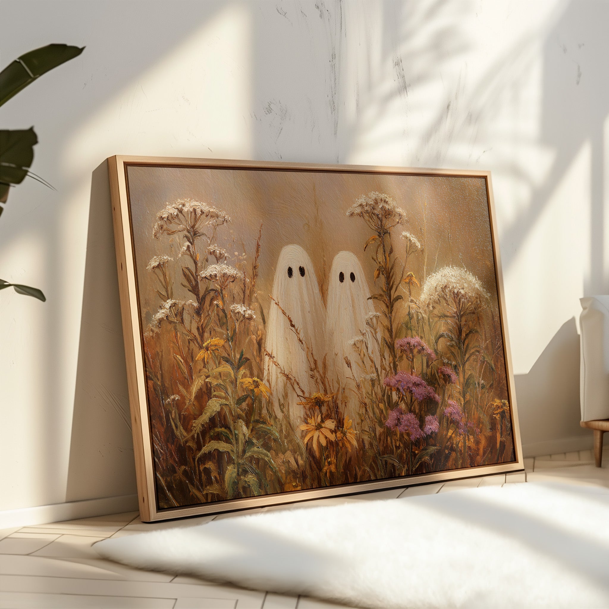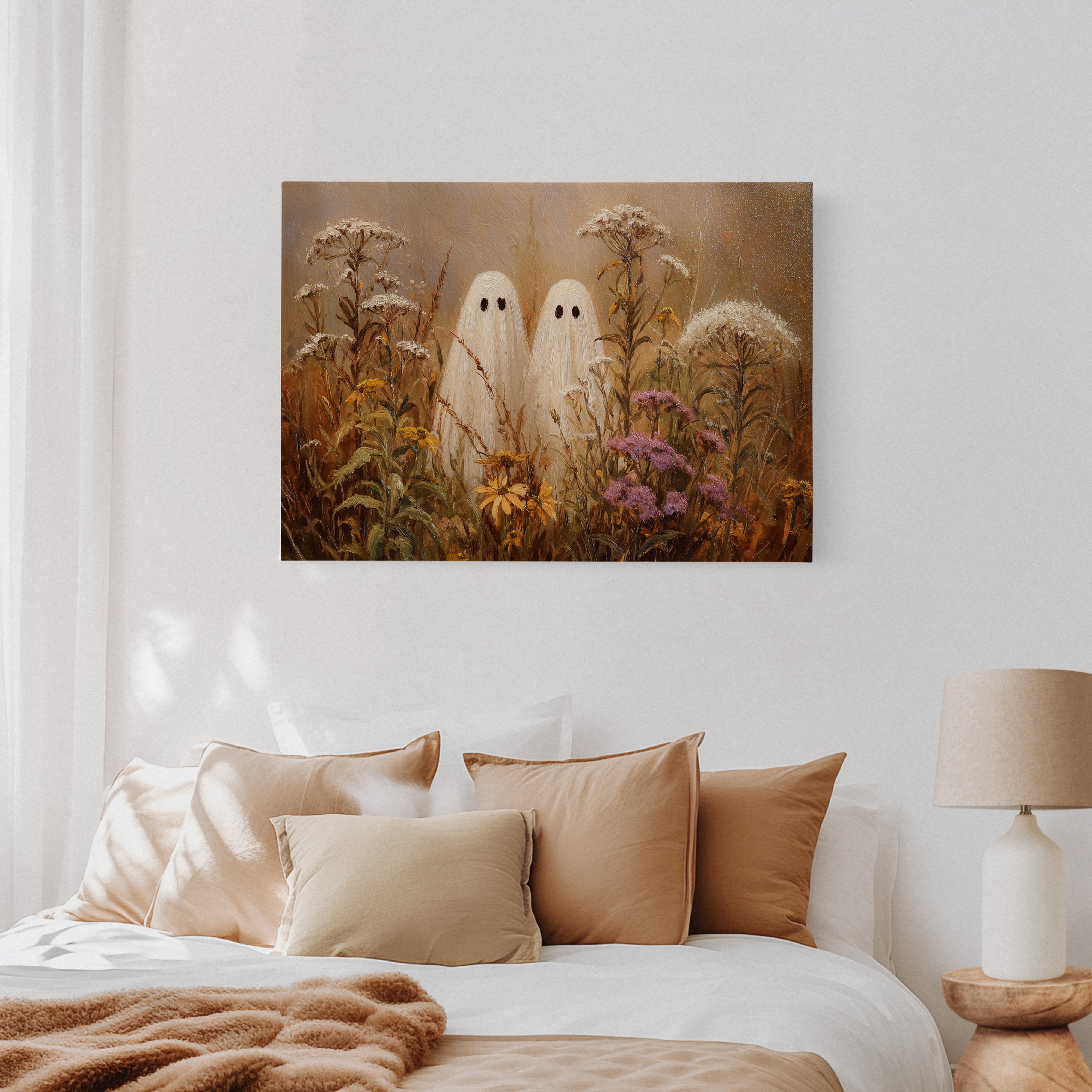 In a field where wildflowers sway, two figures emerge, shrouded in soft, ghostly hues. This piece captures the essence of the contemporary collection, blending whimsy with the natural world. The delicate textures of the foliage contrast beautifully with the ethereal forms, creating a narrative that invites curiosity and wonder. Perfect for brightening a cozy nook or sparking conversation in a living room, this artwork adds a touch of enchantment to any space.