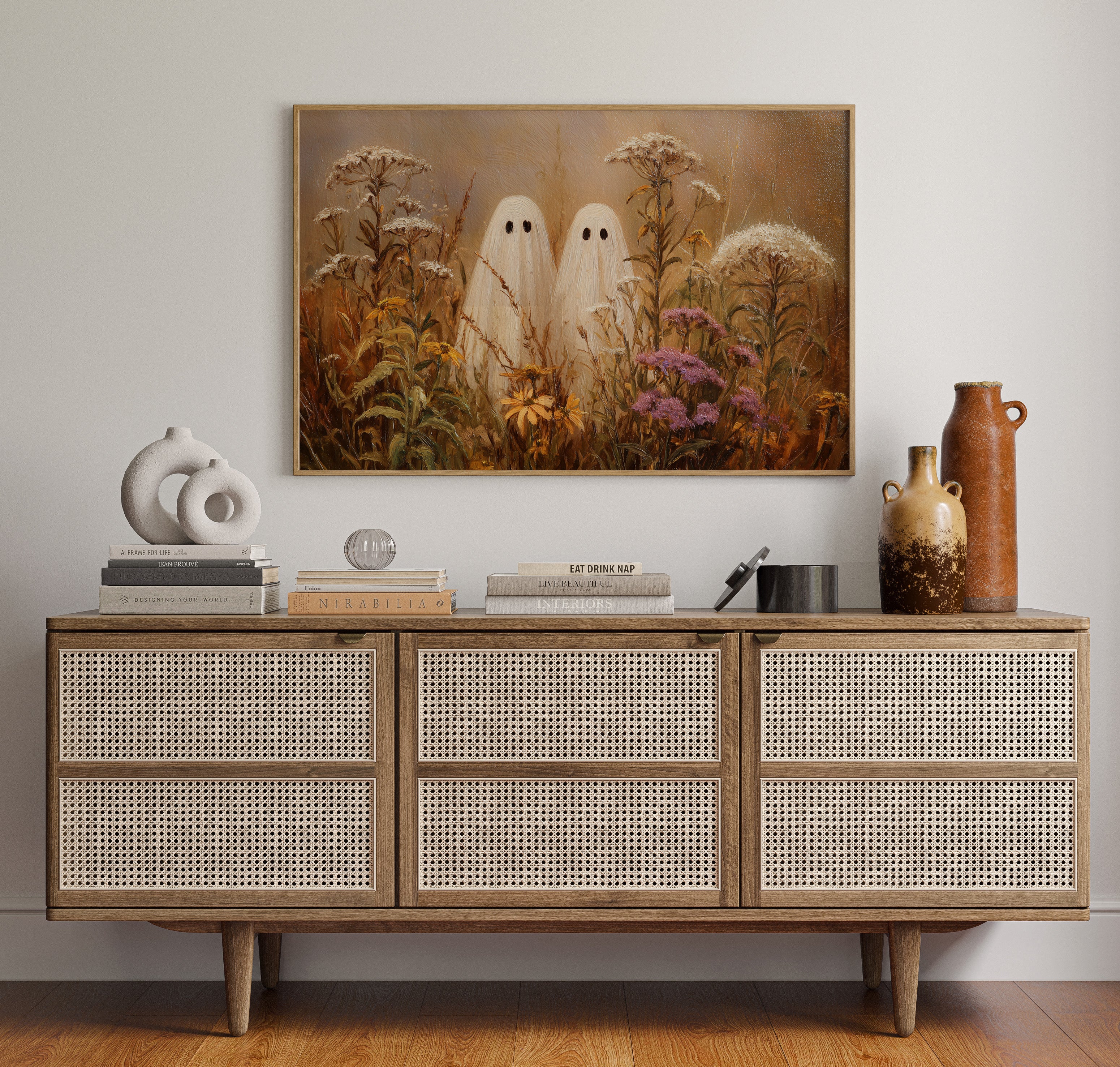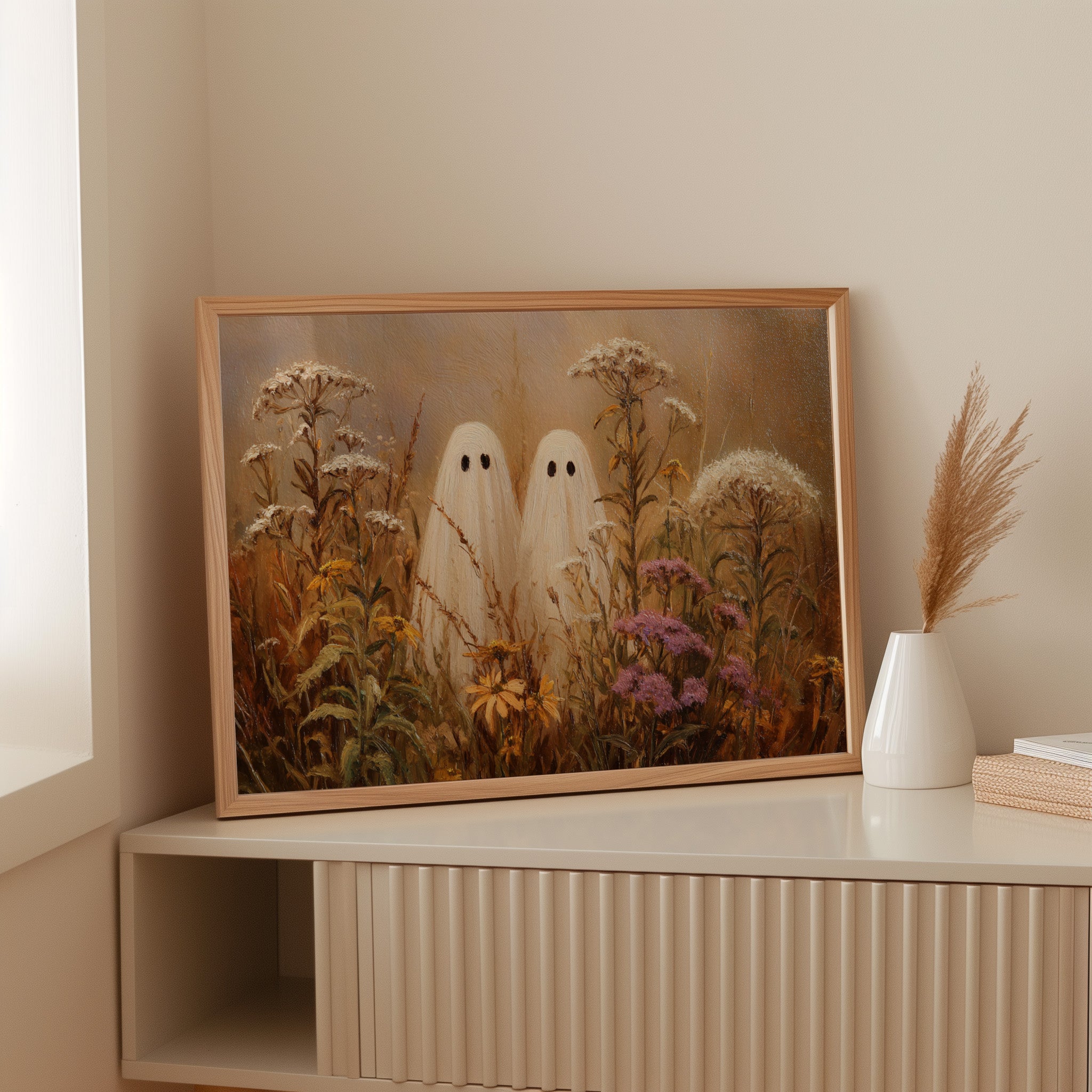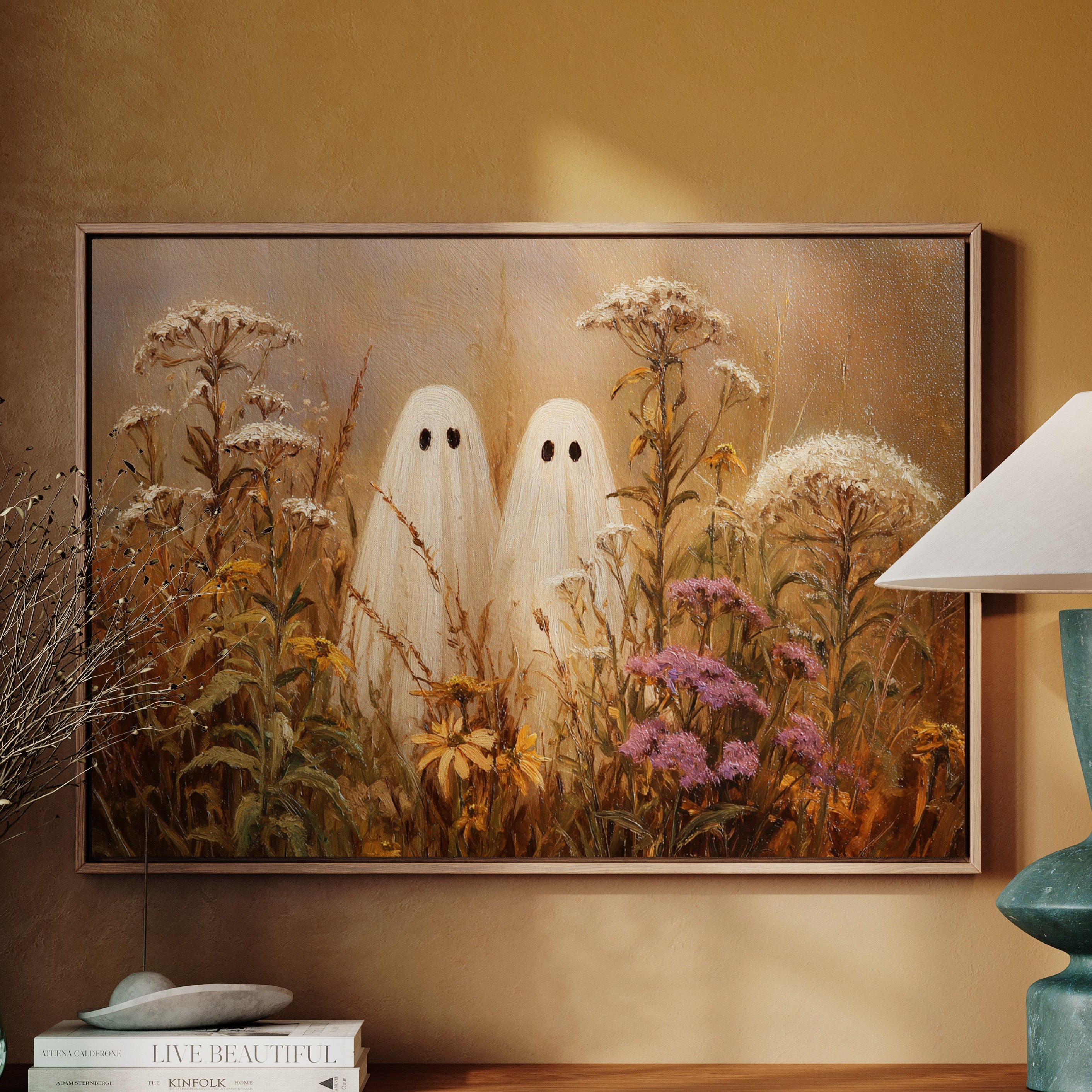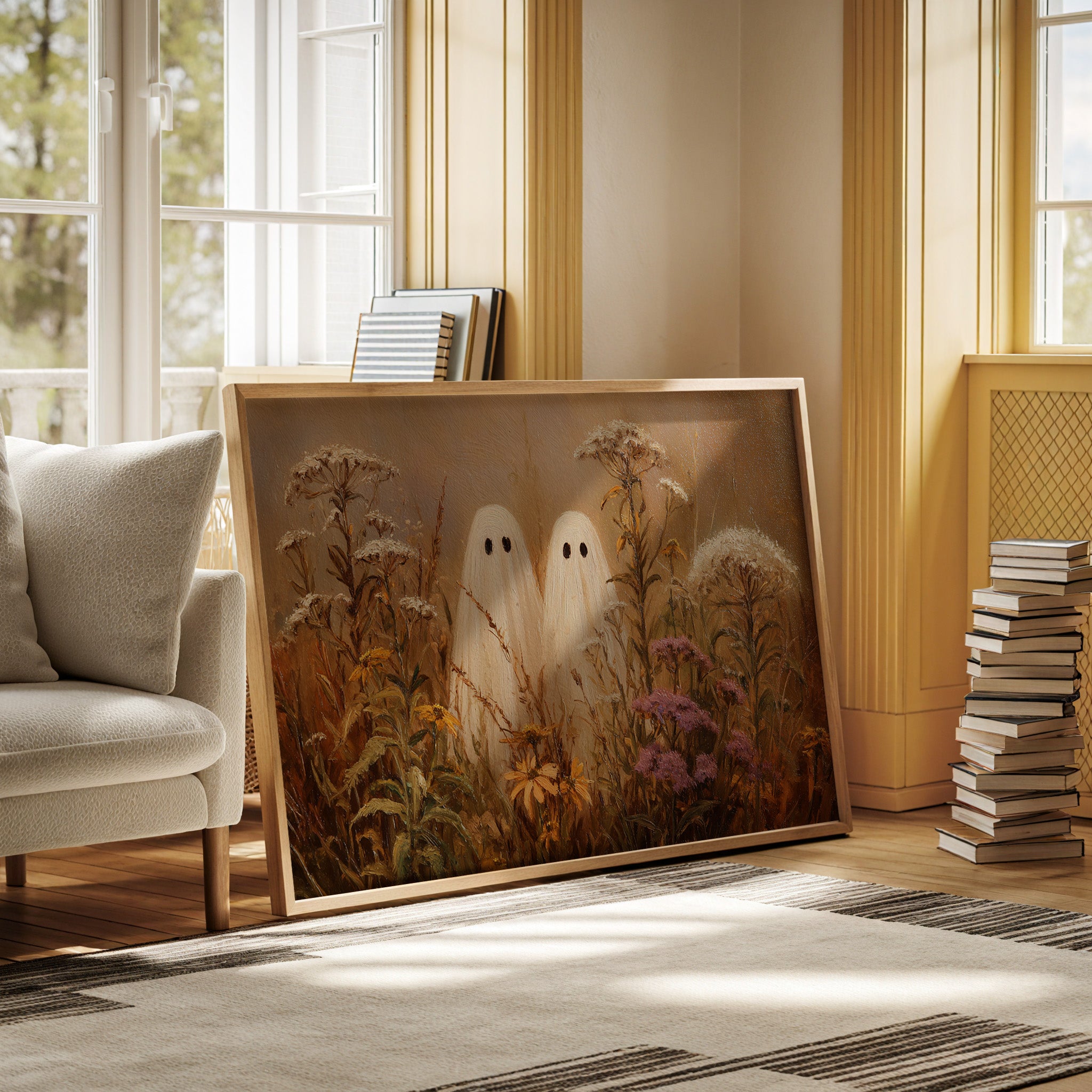 In a field where wildflowers sway, two figures emerge, shrouded in soft, ghostly hues. This piece captures the essence of the contemporary collection, blending whimsy with the natural world. The delicate textures of the foliage contrast beautifully with the ethereal forms, creating a narrative that invites curiosity and wonder. Perfect for brightening a cozy nook or sparking conversation in a living room, this artwork adds a touch of enchantment to any space.