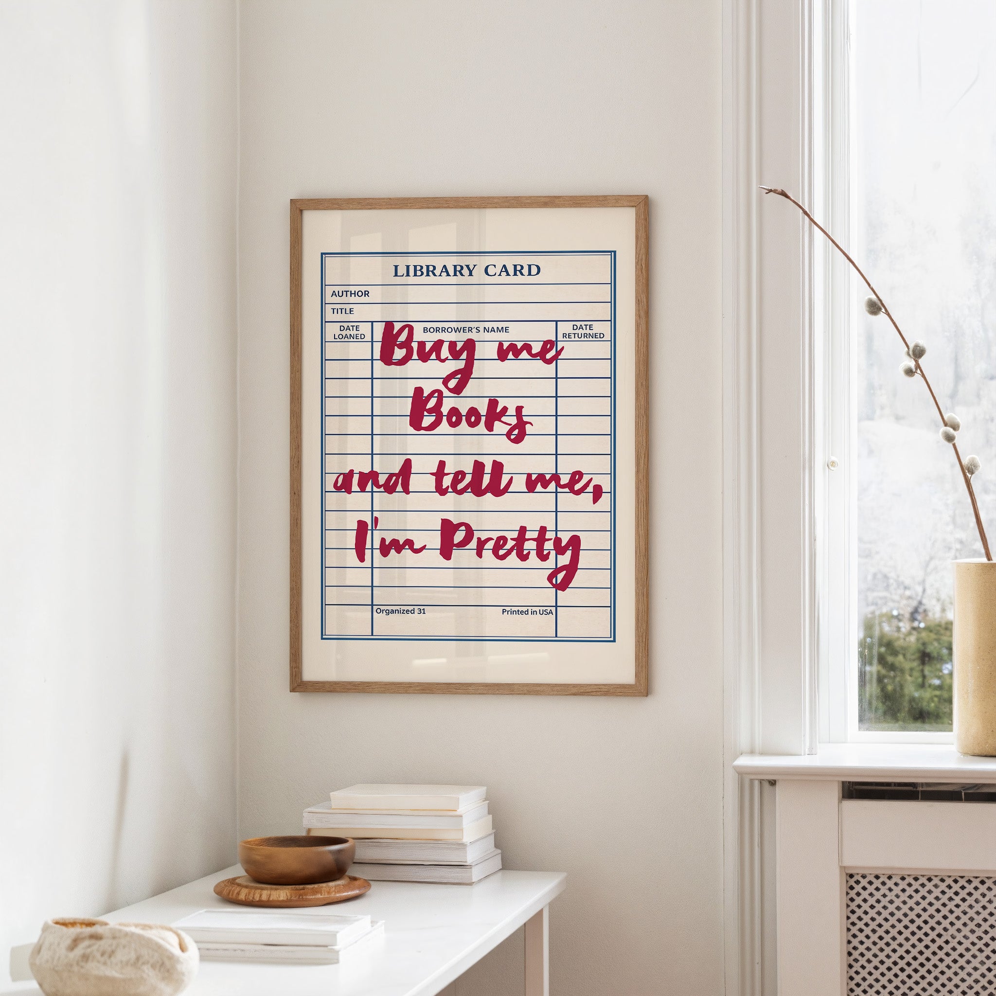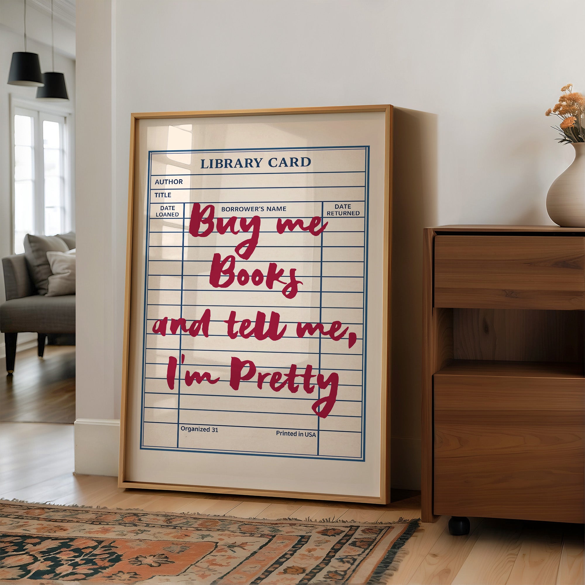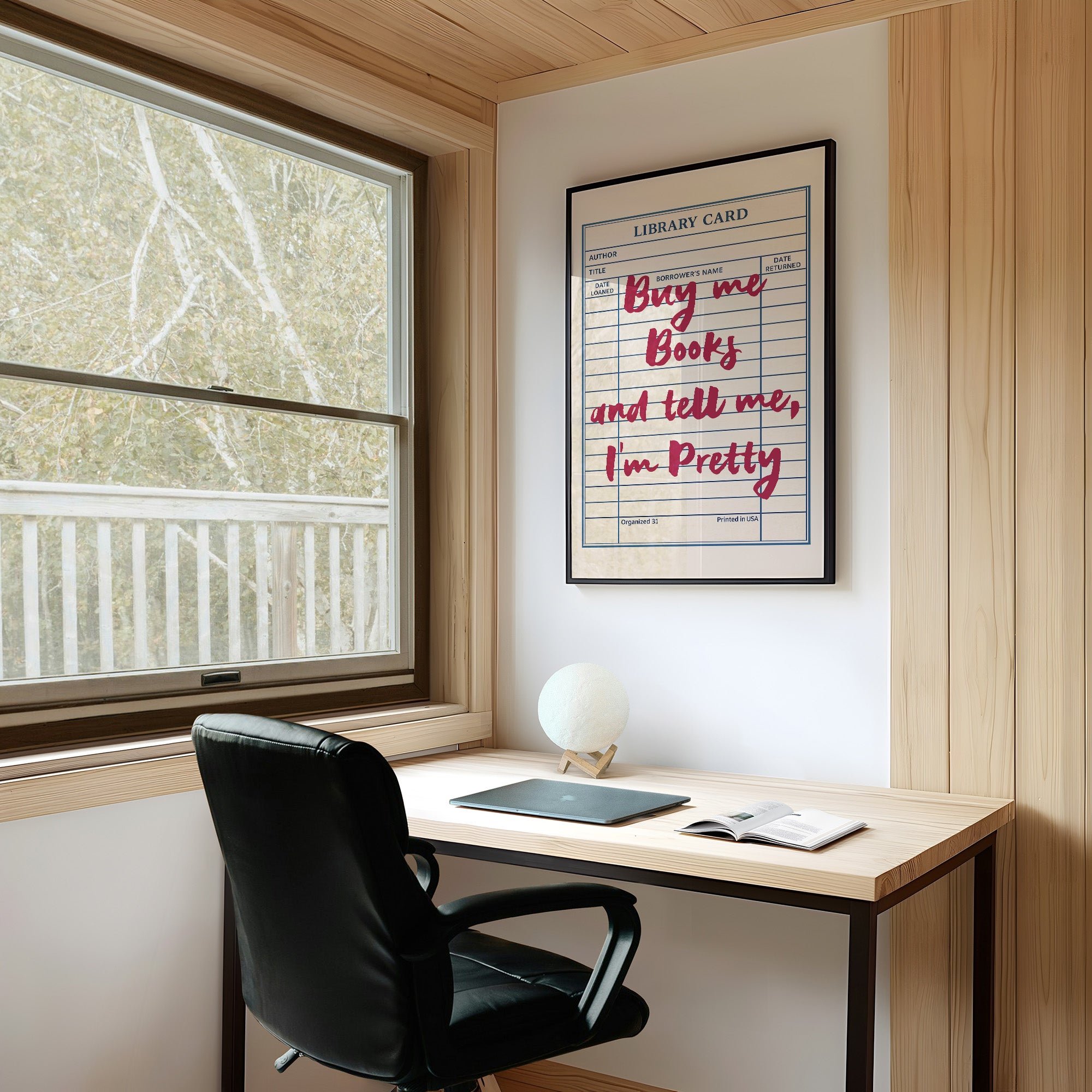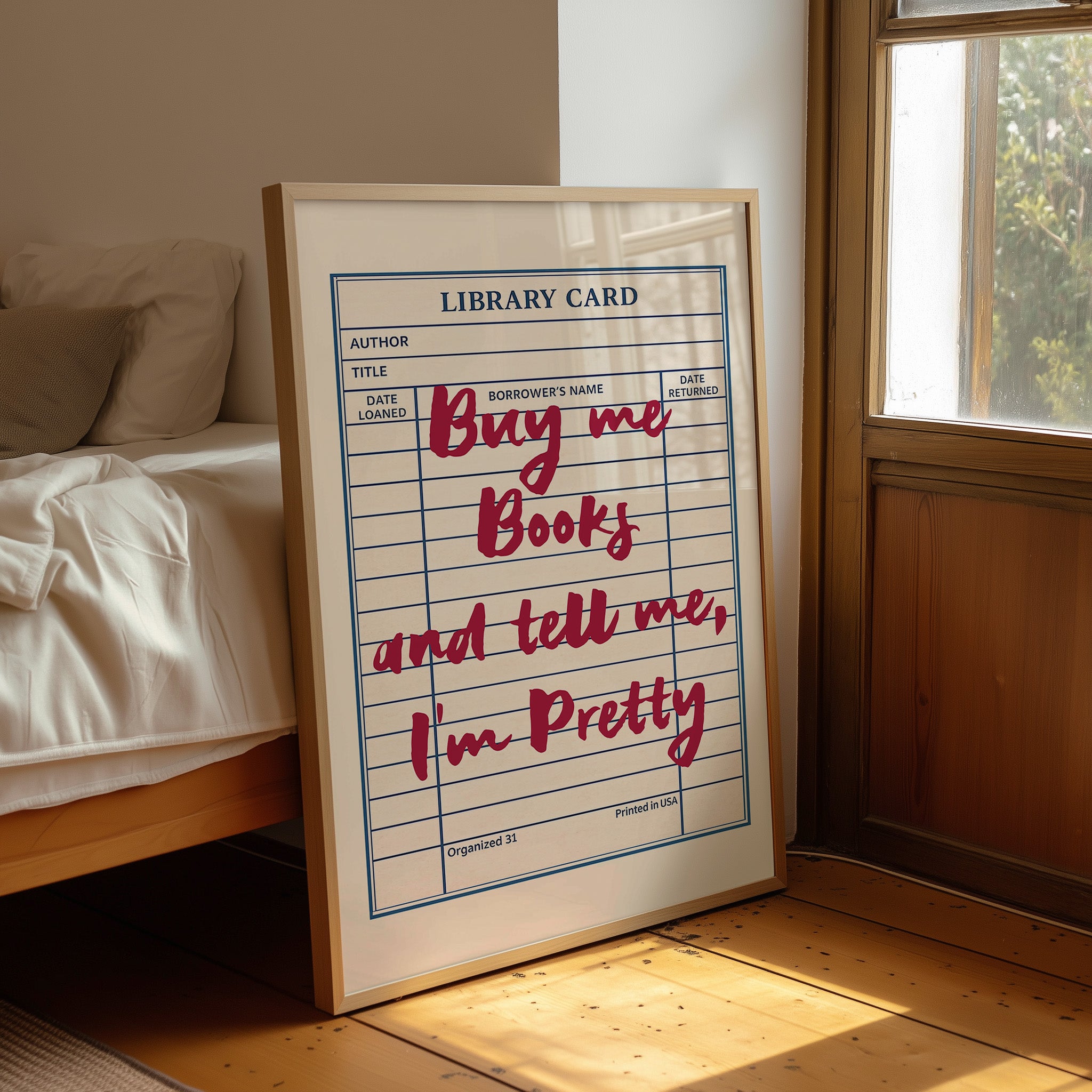 A playful, book-lover’s statement styled like a classic library card, blending vintage academia with modern humor. The handwritten message adds warmth and personality, turning a familiar checkout card into a flirty, witty declaration of love for reading. Perfect for cozy reading corners, home libraries, offices, or anywhere that celebrates curiosity, intelligence, and a little charm with confidence.