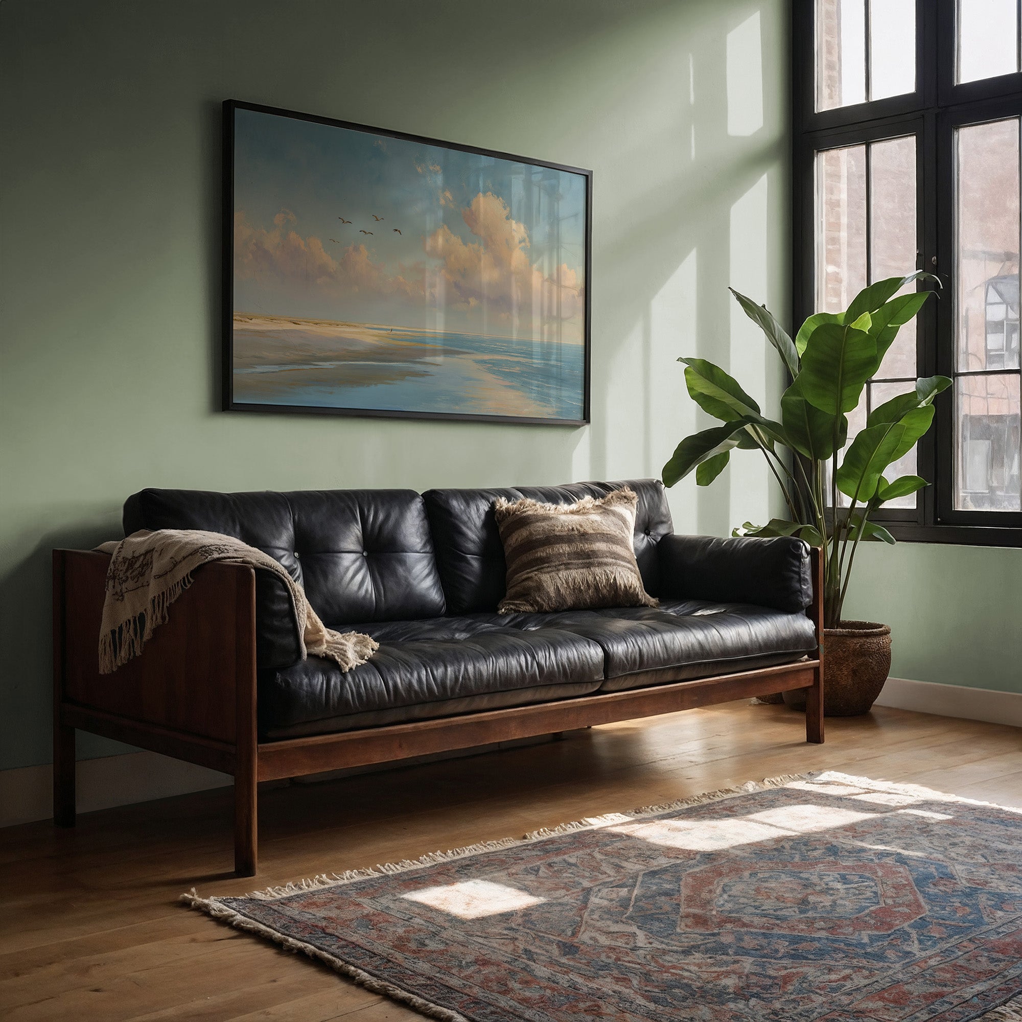 Your artwork should take up 60-75% of wall space above furniture. For standard sofas, choose 24"x36" or larger. When in doubt, go slightly bigger.