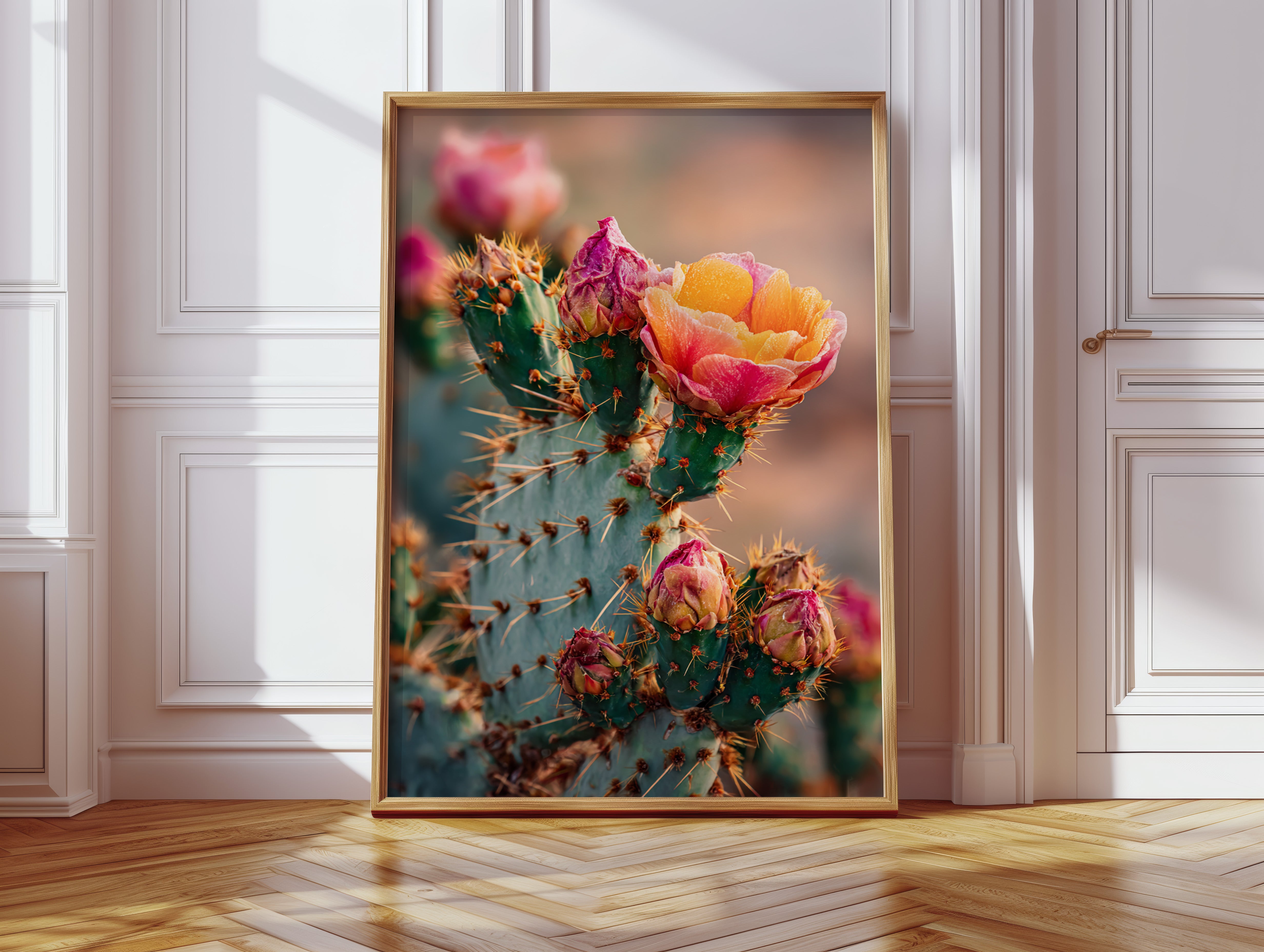 This captivating piece draws inspiration from the arid landscapes where flora bursts forth in unexpected splendor, each bloom a testament to nature's artistry. The intricate textures and vivid colors capture the essence of a sunlit desert oasis, bringing warmth and life to any setting.