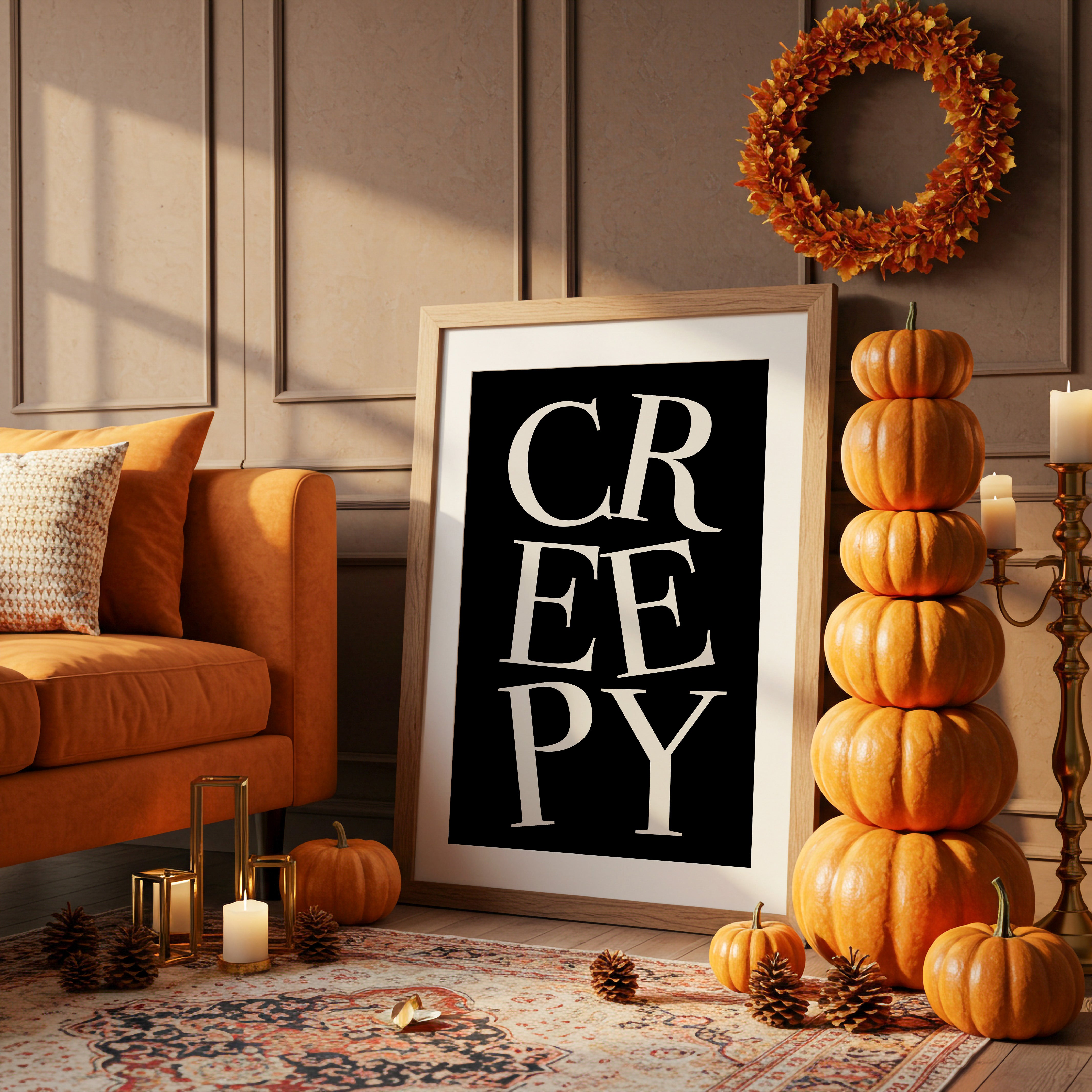 Your artwork should take up 60-75% of wall space above furniture. For standard sofas, choose 24"x36" or larger. When in doubt, go slightly bigger.
