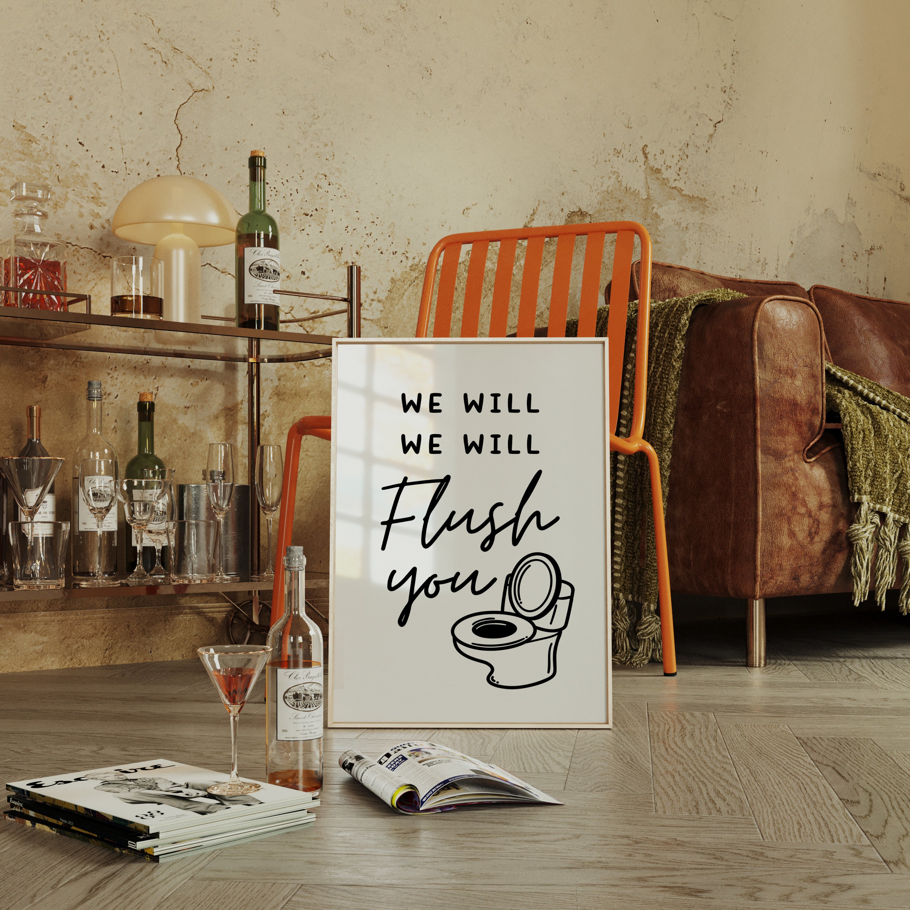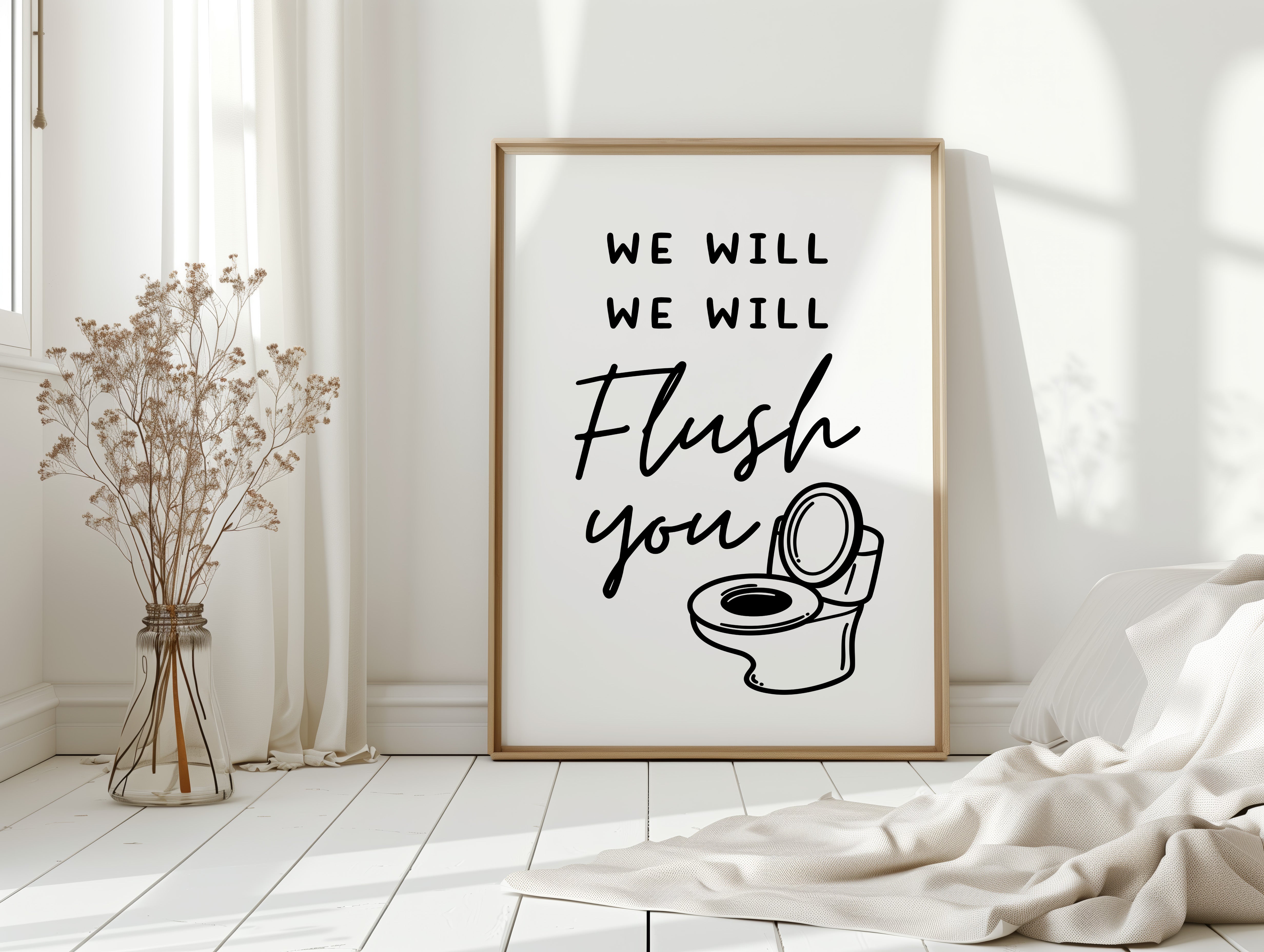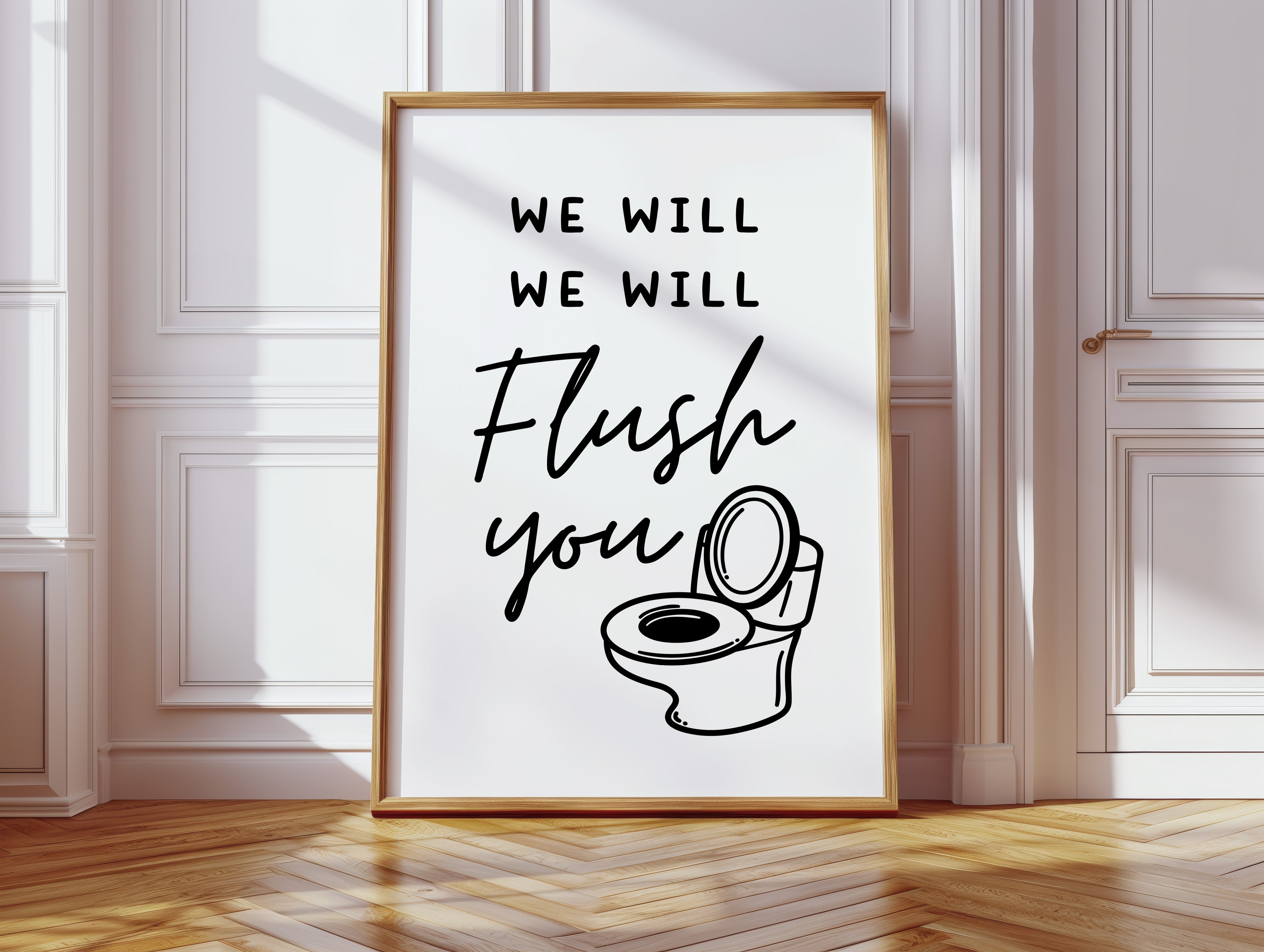 Bold black strokes against pristine white capture a moment of playful defiance. This piece belongs to our Contemporary collection, where minimalist design meets irreverent humor. The simple yet striking composition combines hand-drawn typography with a whimsical illustration, creating a perfect balance between sophistication and sass. The clever wordplay and clean aesthetic transform an everyday subject into a conversation starter. This statement piece adds personality to a powder room or brings unexpected charm to a modern bathroom. Its ability to make guests smile while maintaining artistic integrity makes it truly unique.
