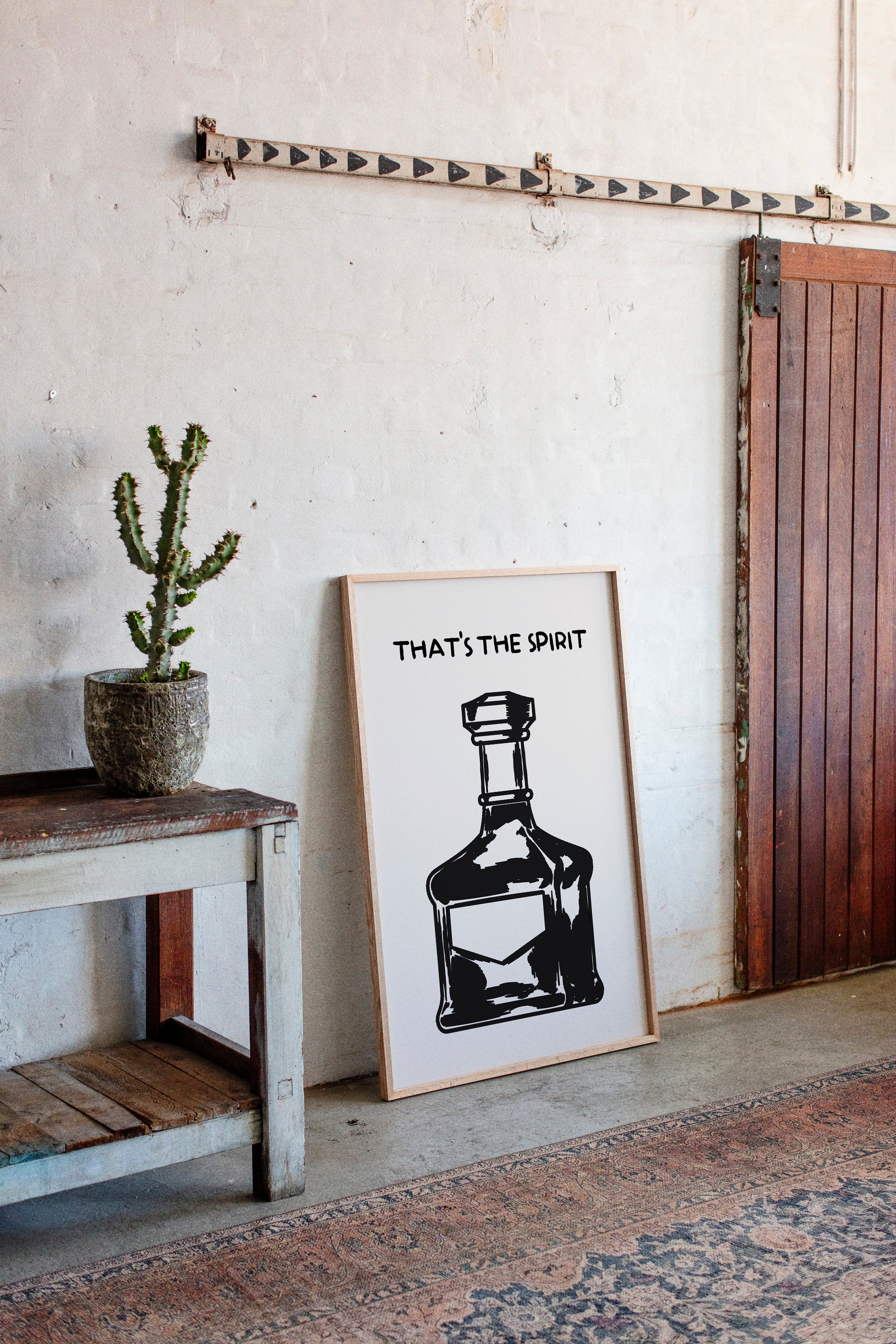 A bold silhouette stands against pristine white, capturing the essence of sophistication in stark black and white. This piece from our Contemporary collection merges minimalist design with playful typography for a modern statement. The iconic whiskey bottle shape speaks volumes through its simplicity, while clever text adds a dash of wit to its refined presence. The dramatic contrast and clean lines create a sophisticated focal point that commands attention without overwhelming the space. Perfect for adding character to a home bar, dining room, or modern kitchen where it brings both style and personality to the wall.