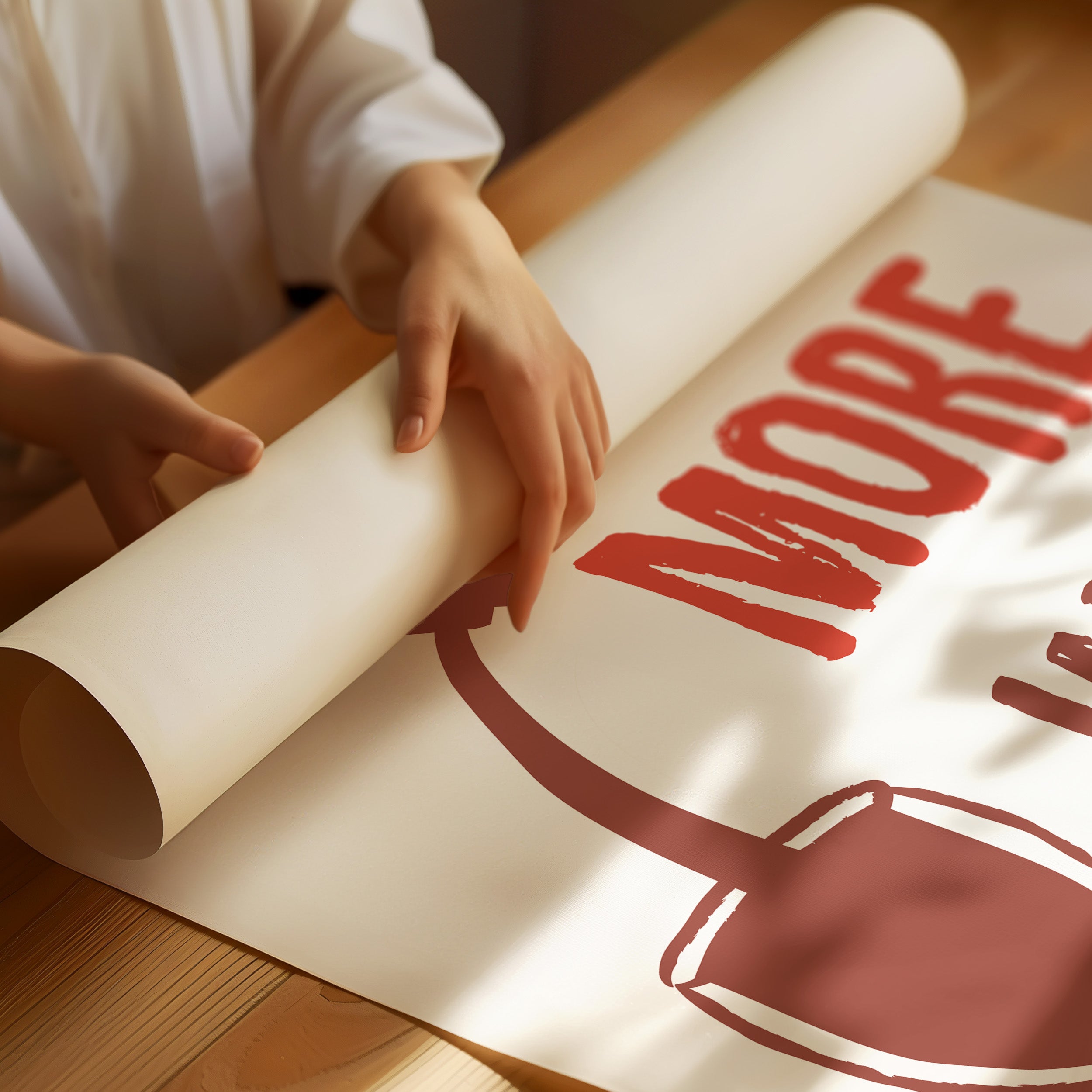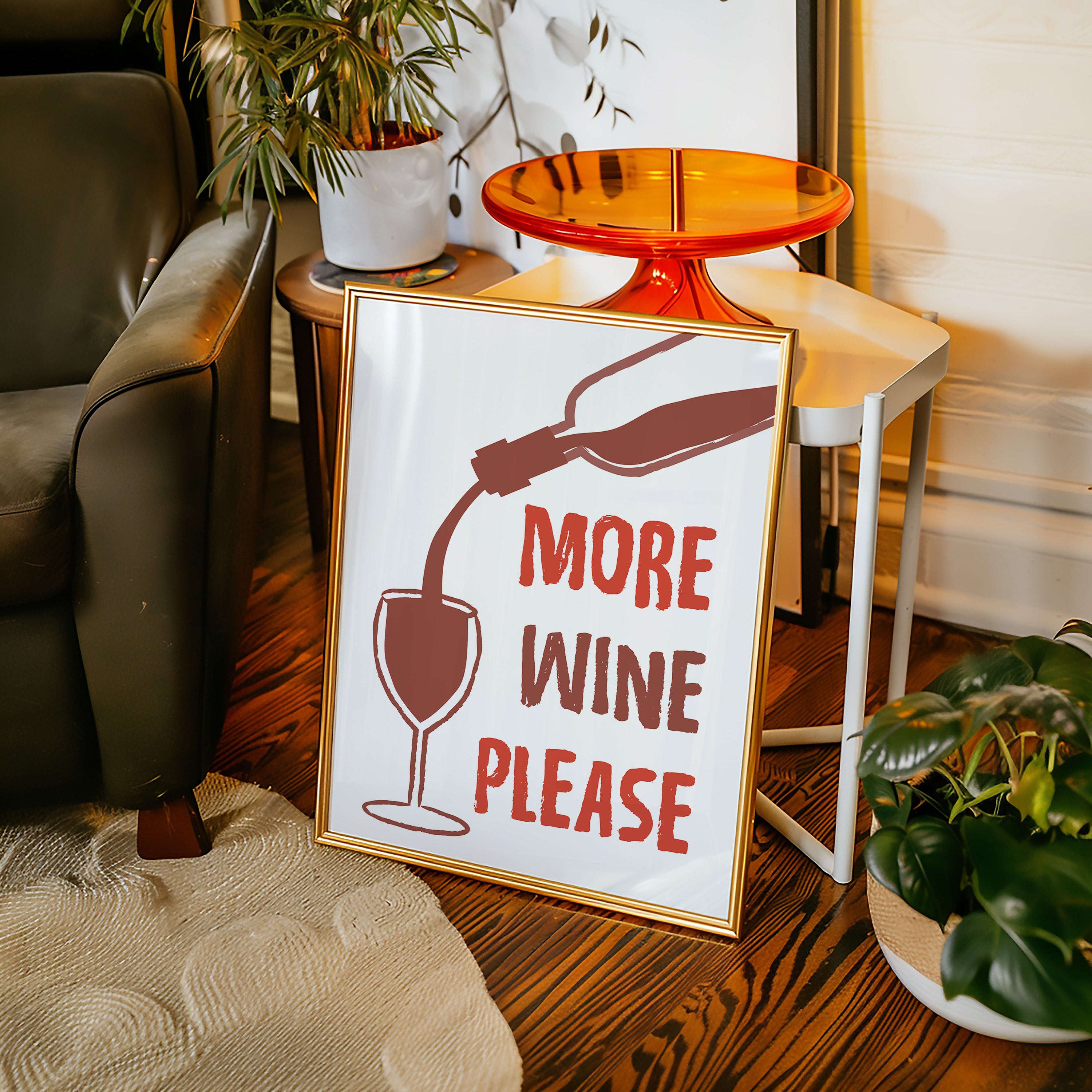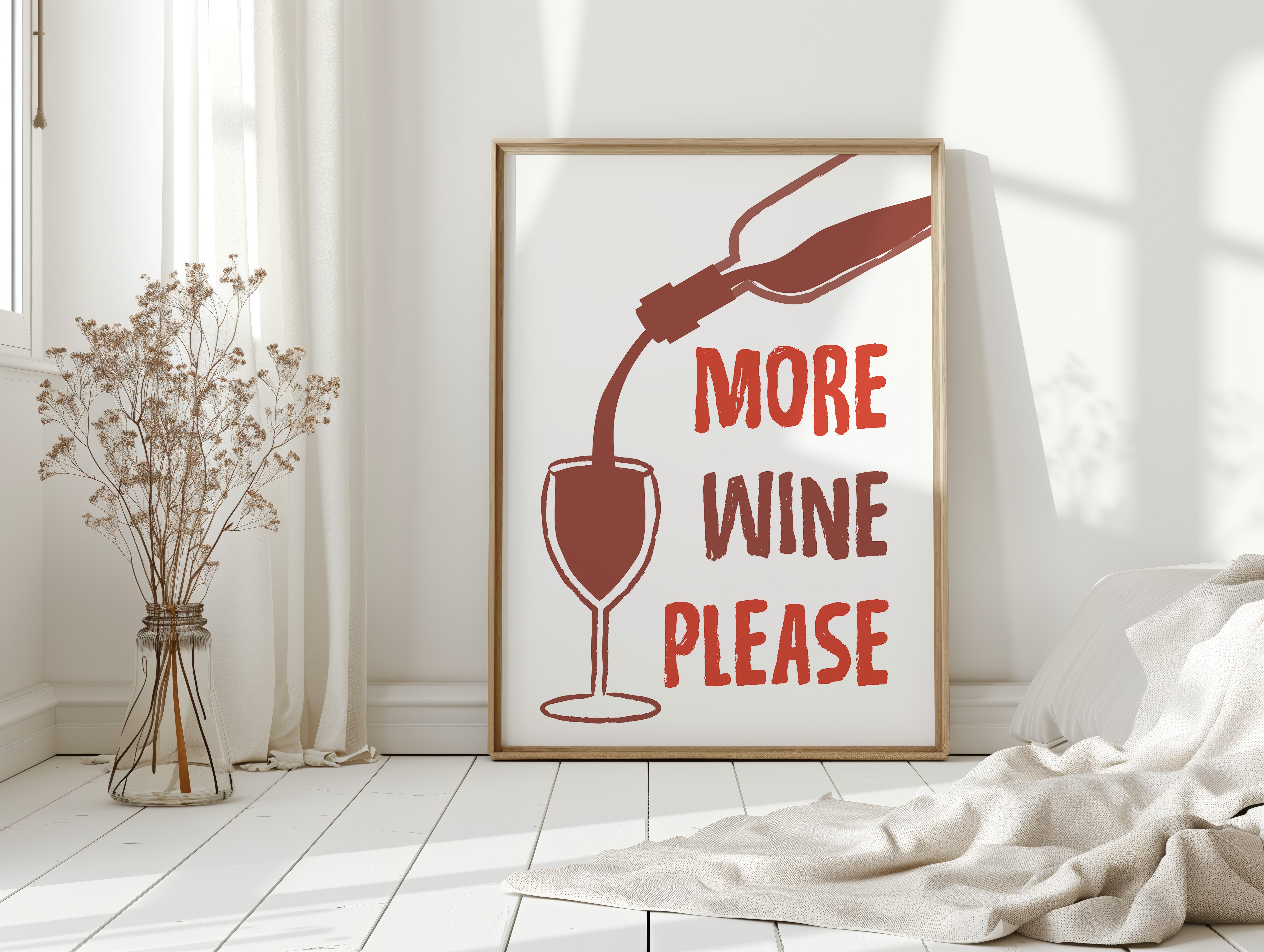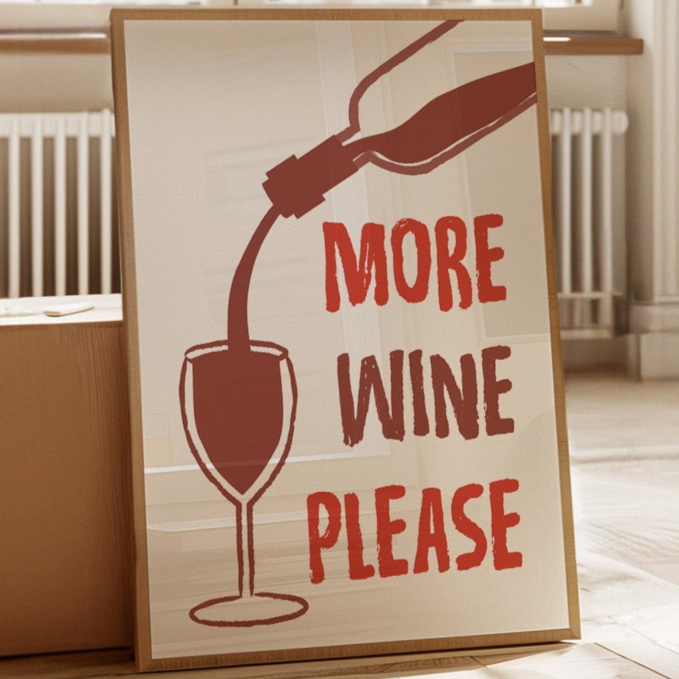A single wine glass stands ready, anticipating the gentle cascade of ruby liquid from above. This playful yet sophisticated piece from our Contemporary collection captures the joy of hospitality and life's simple pleasures. Bold terracotta tones dance against crisp white space, while hand-drawn lines create an inviting casual elegance that speaks to both wine enthusiasts and lovers of modern design. Perfect for dining rooms, kitchen nooks, or any space where friends gather to share stories and laughter. The minimalist composition invites both conversation and contemplation, adding a touch of warmth to your entertaining space.