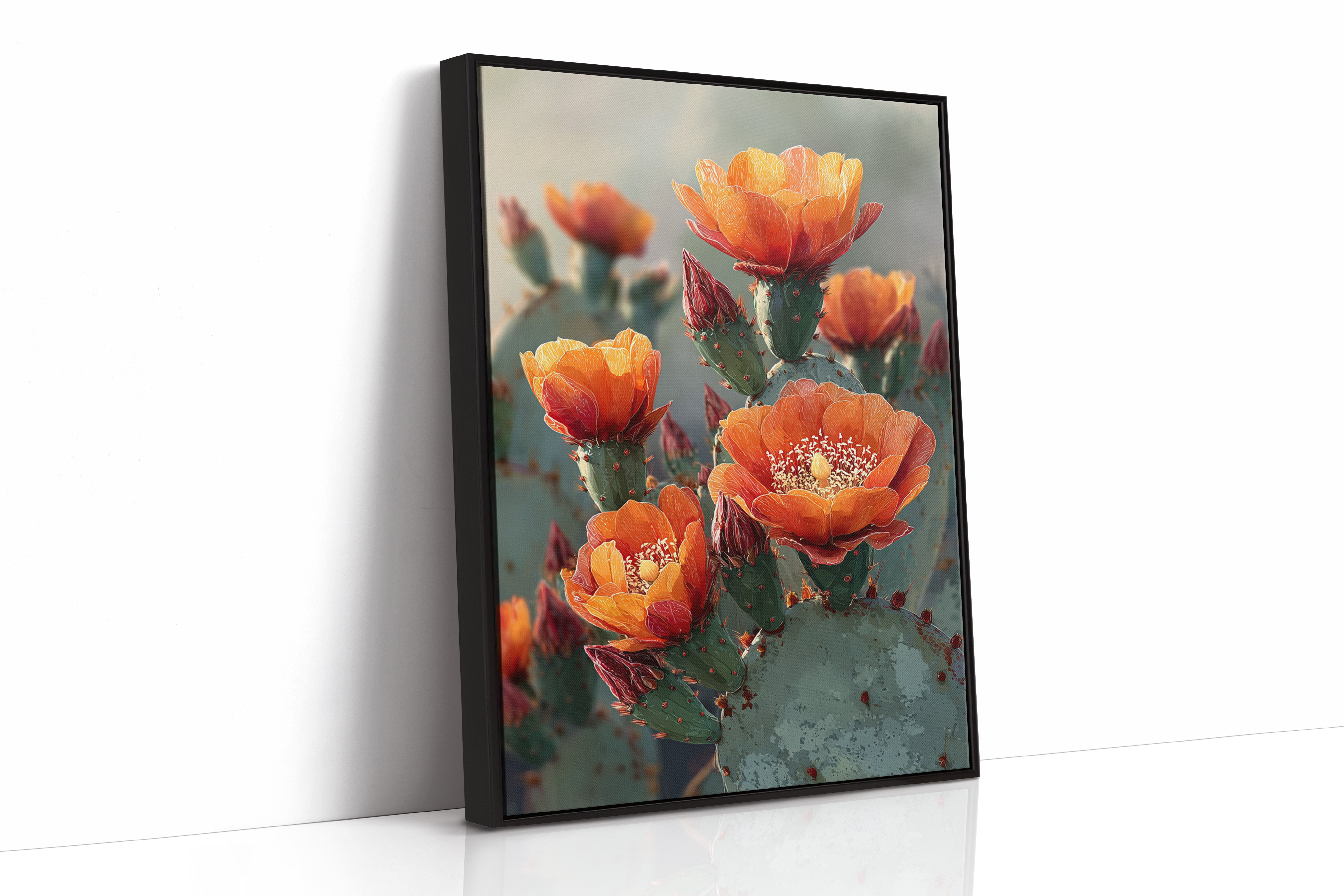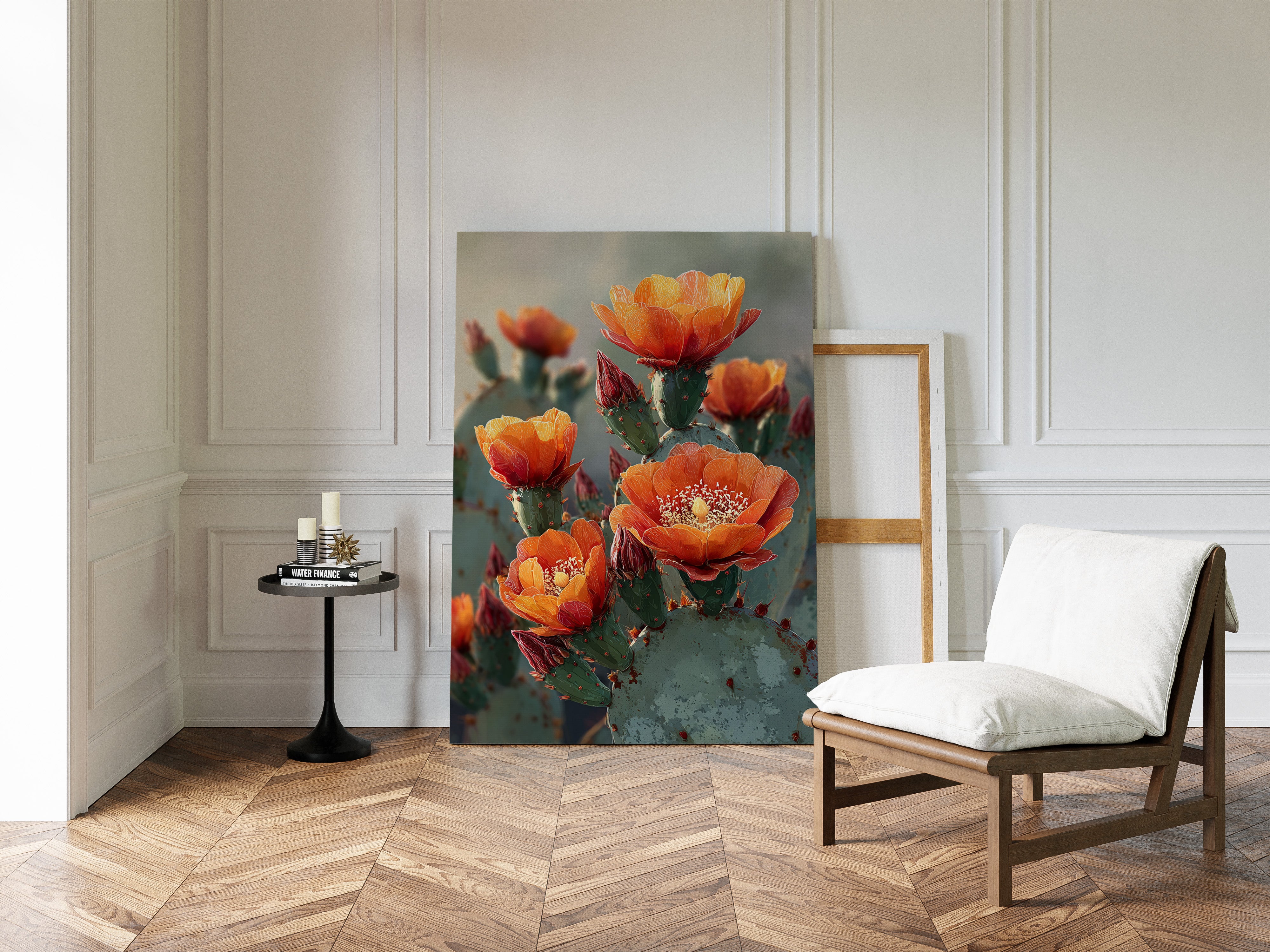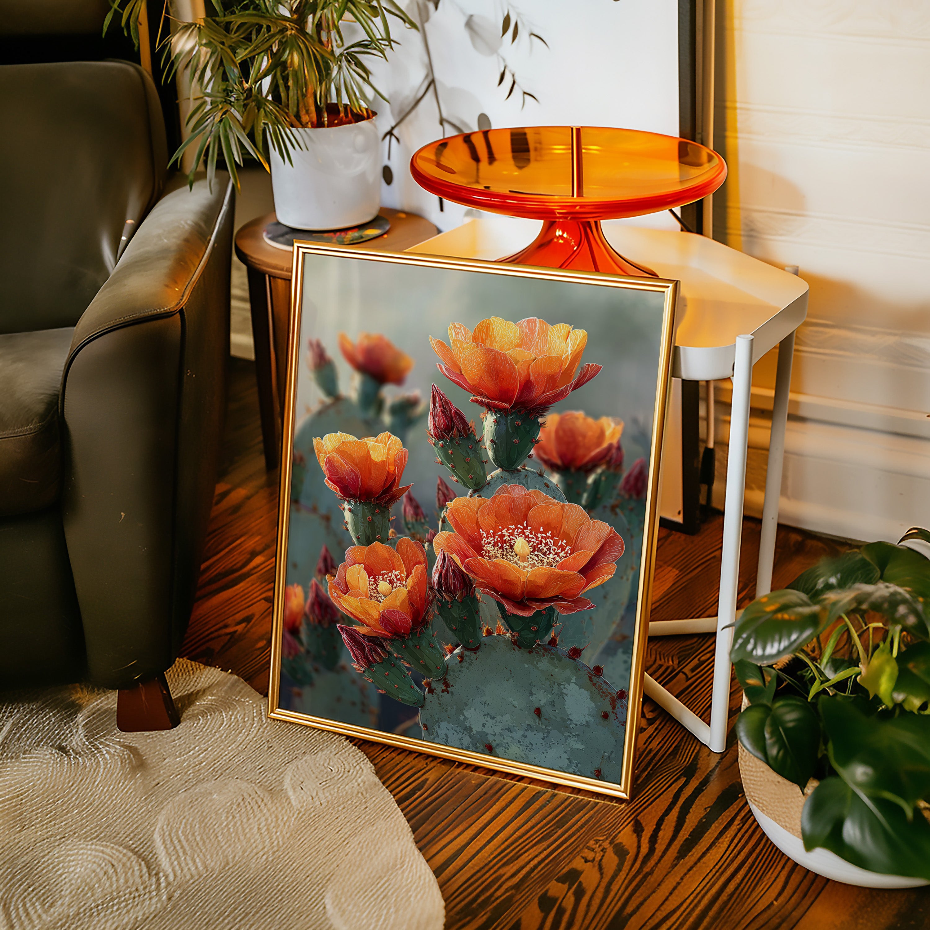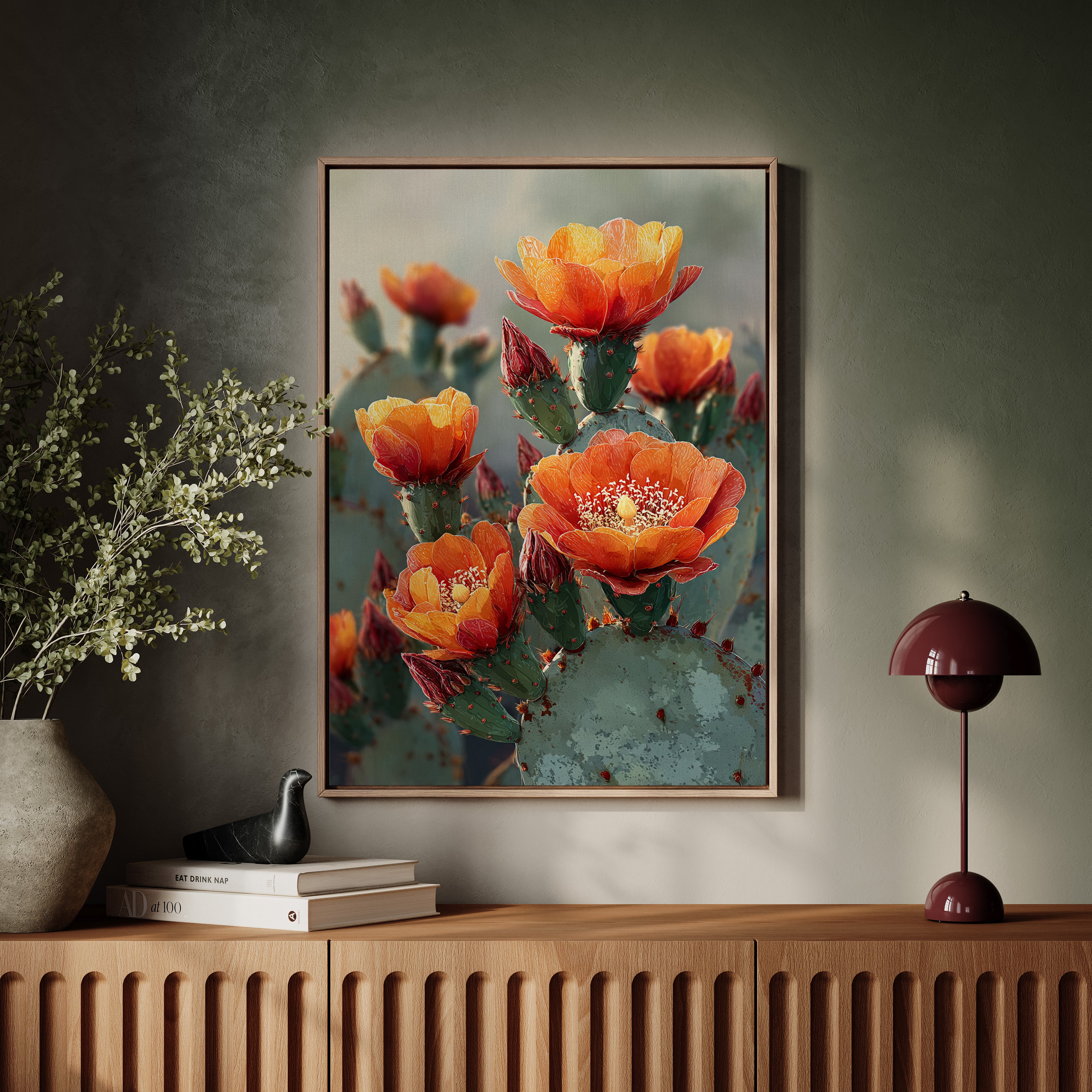 In the heart of the arid landscape, vibrant blossoms burst forth, igniting the stillness with their fiery hues. This piece embodies the artisanal spirit, celebrating nature's resilience and beauty. Each petal, intricately detailed, glimmers in shades of orange and red, inviting the viewer to marvel at the delicate balance of life in harsh environments. Picture this piece adorning a sunlit kitchen or a cozy reading nook, infusing warmth and vitality into the space.