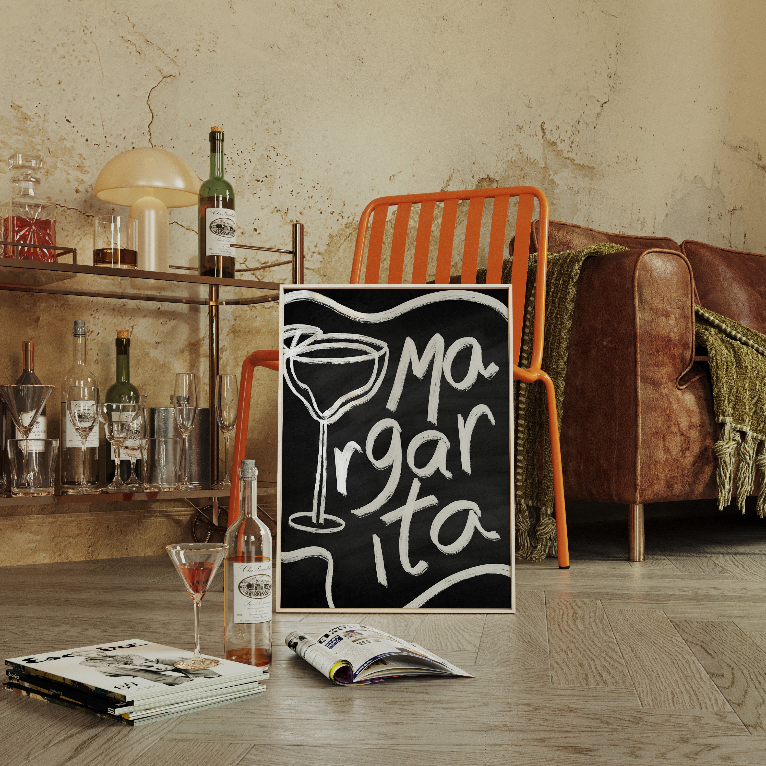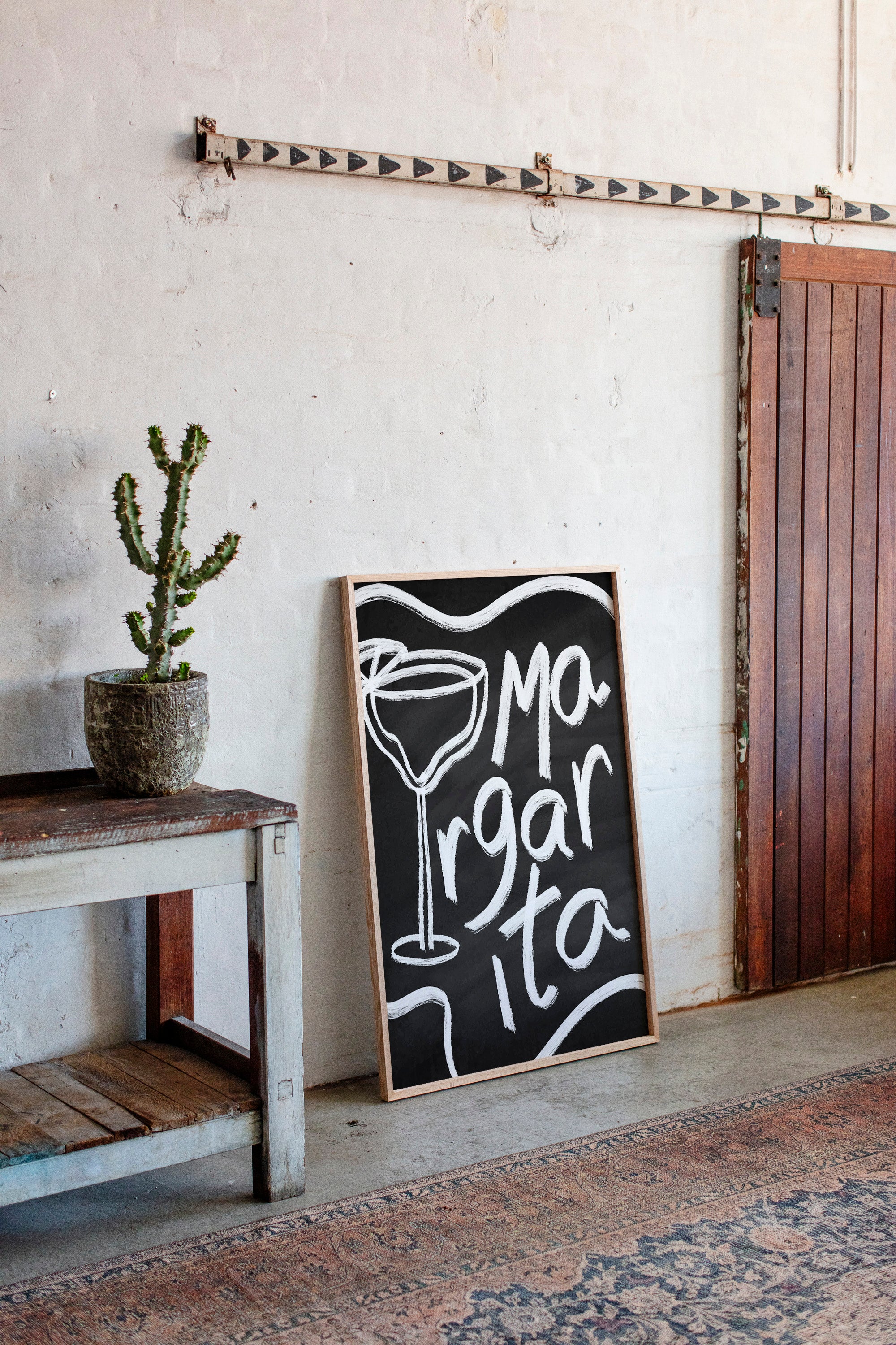 A minimalist scene unfolds where stark white meets weathered wood, anchored by a playful chalkboard message and a solitary desert companion. Part of our Contemporary collection, this piece captures the essence of modern Southwest style. The composition juxtaposes organic and geometric elements - a spiky cactus reaching skyward from its stone pot, while bold typography dances across a black canvas below. The industrial-meets-rustic setting creates a perfect backdrop for this story of contrast and connection. This piece brings character to modern dining spaces, home bars, or kitchen galleries where its casual sophistication can spark conversation. The raw concrete walls and vintage wooden details remind us that the best stories often unfold in unexpected places.