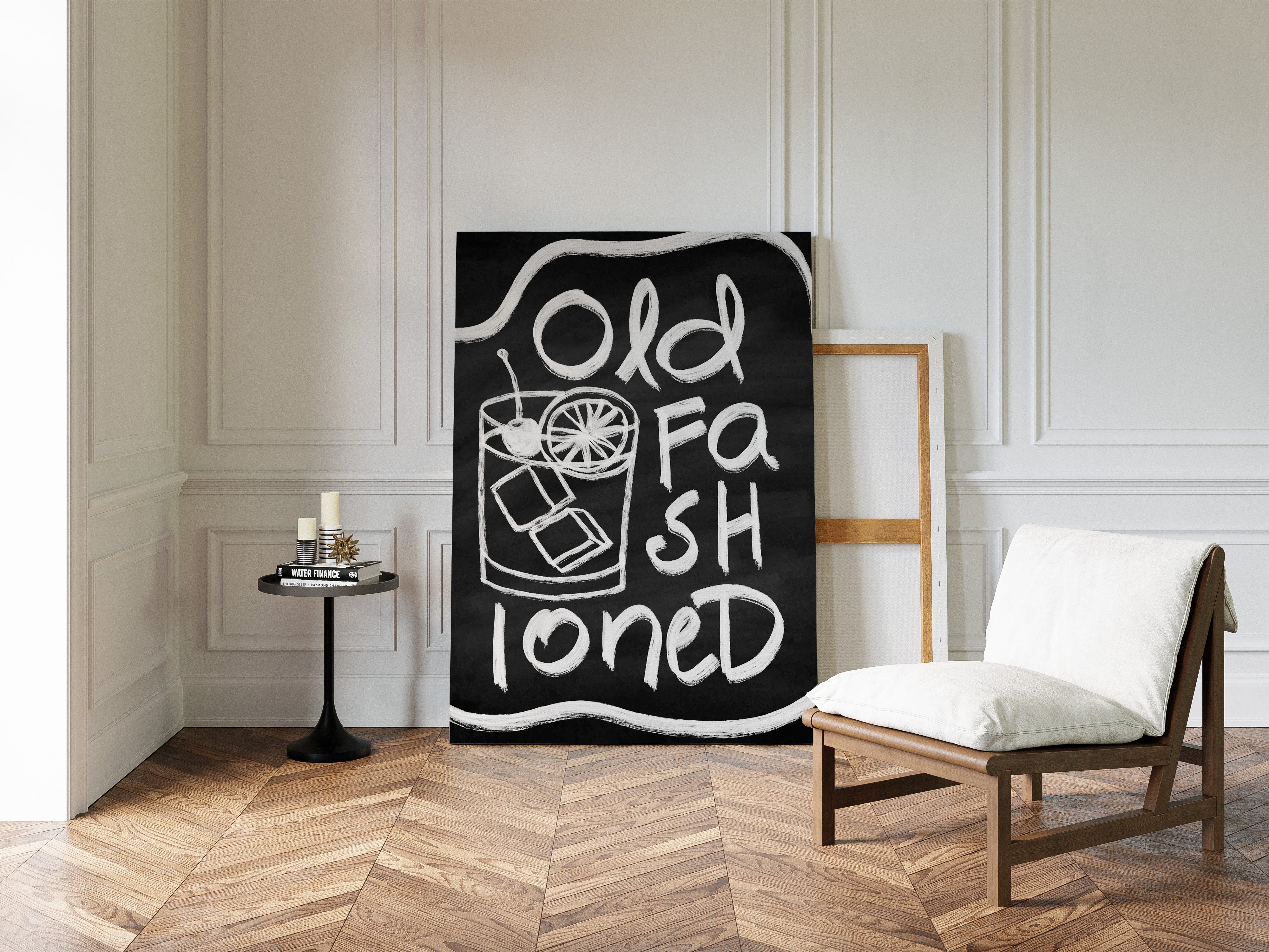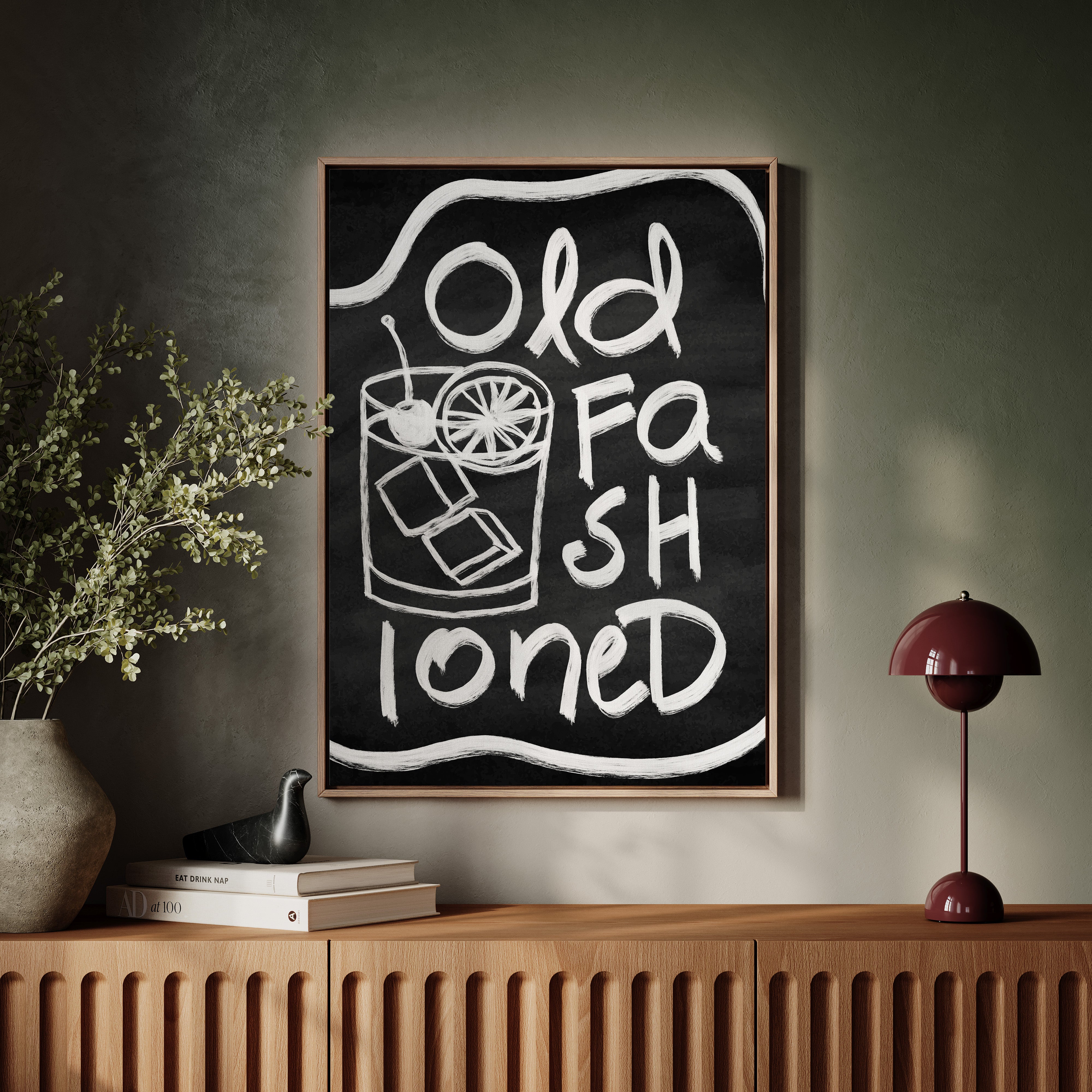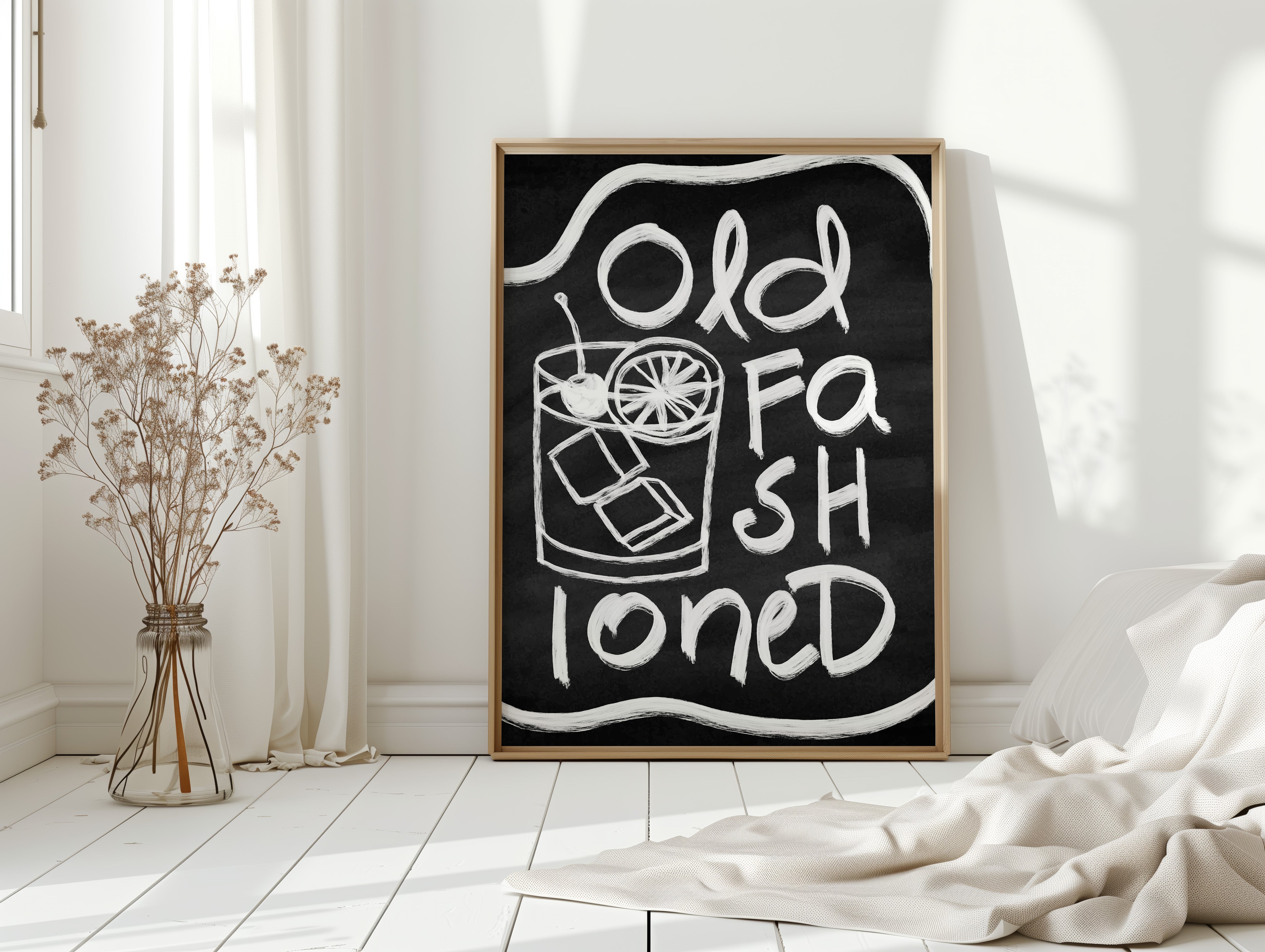 A rustic corner where time slows down, marked by the bold strokes of hand-drawn letters against deep black chalk. Part of our Contemporary collection, this piece captures the laid-back spirit of modern desert living. The composition creates a perfect balance between industrial and organic elements - from the geometric arrow rail above to the spiky cactus companion standing guard. The weathered wooden bench and textured concrete wall add layers of authentic charm that ground the playful typography. This striking piece makes a statement in modern kitchens, coffee bars, or any space seeking that perfect blend of vintage industrial and desert modern aesthetics. The monochromatic palette ensures it remains both bold and versatile.