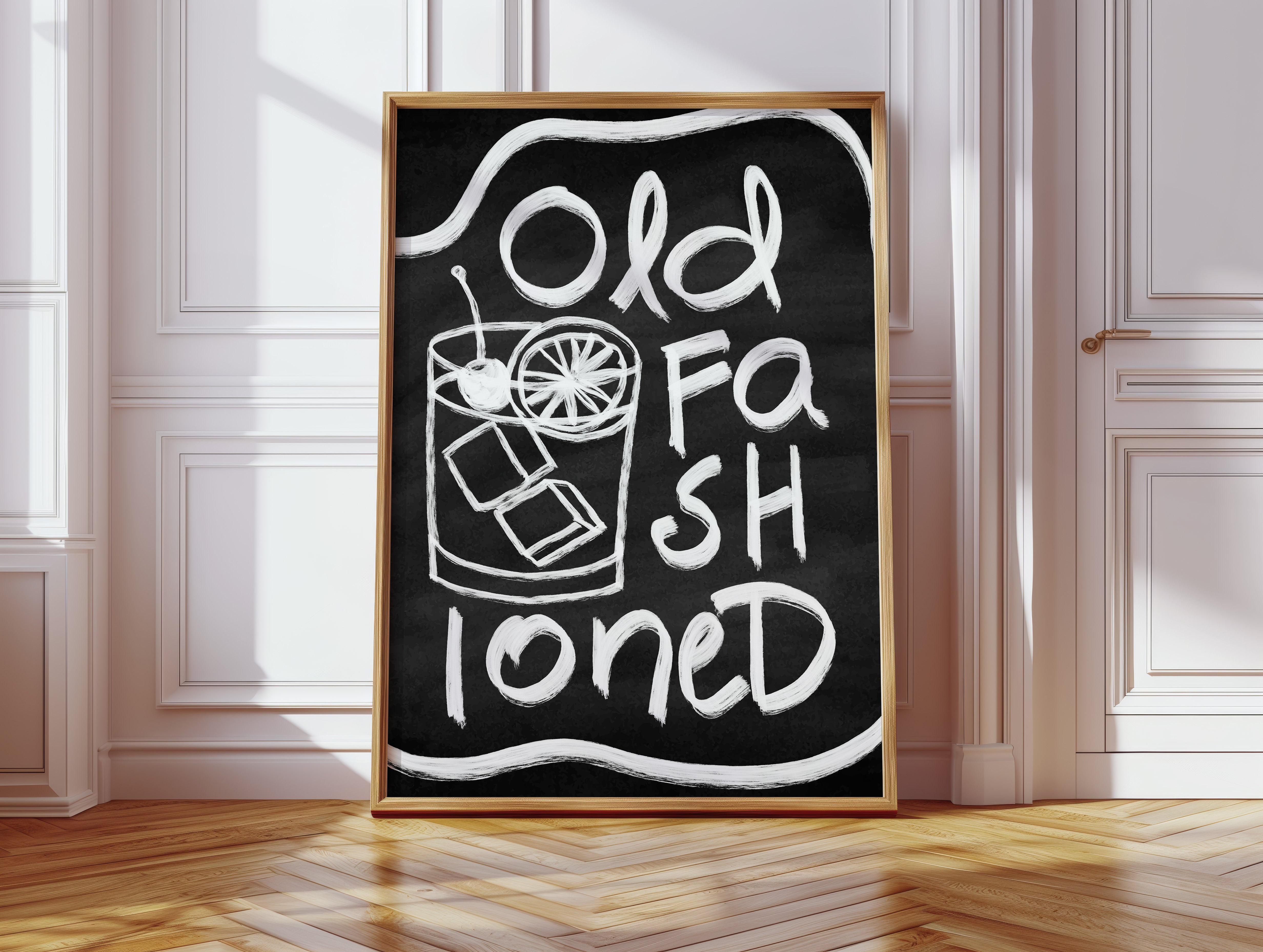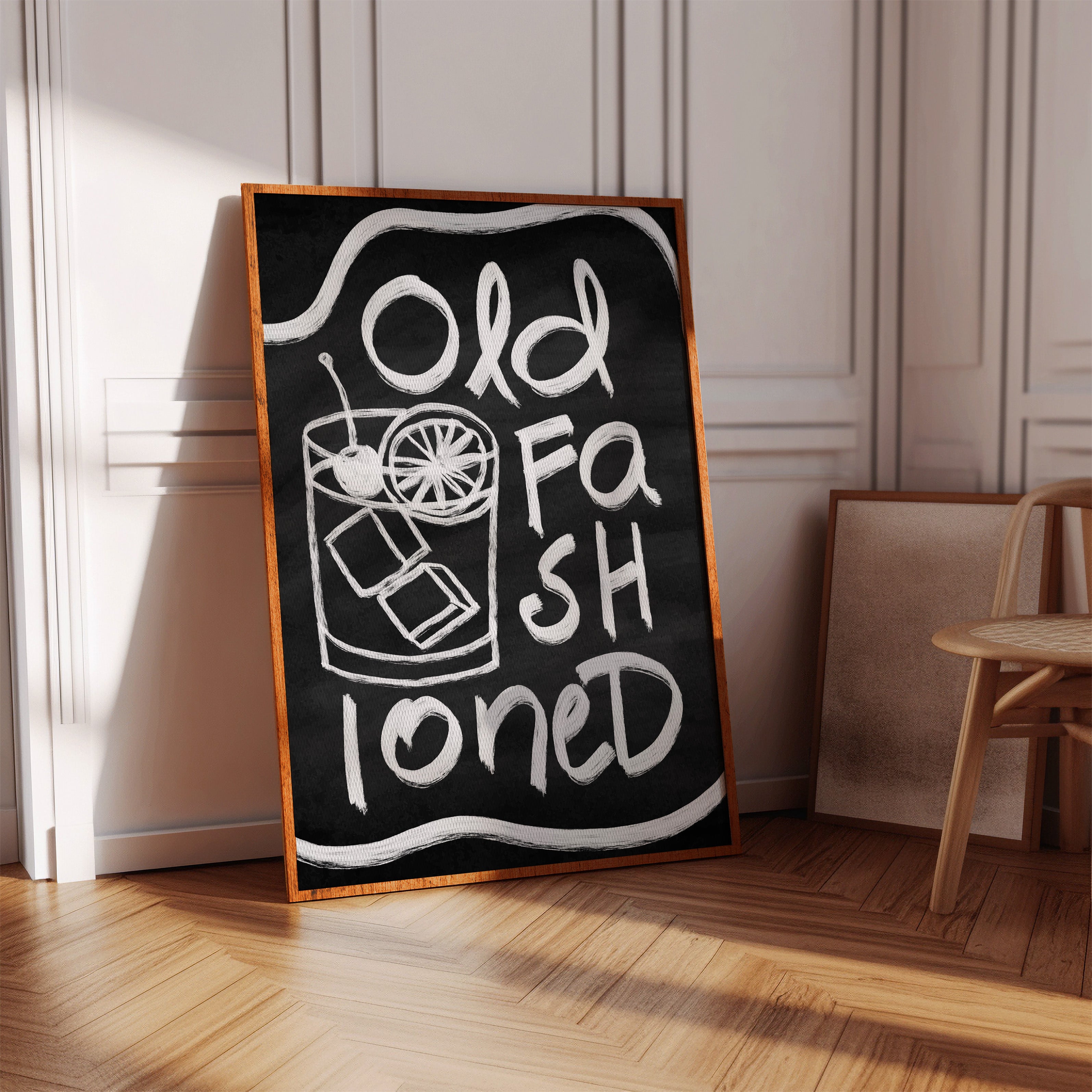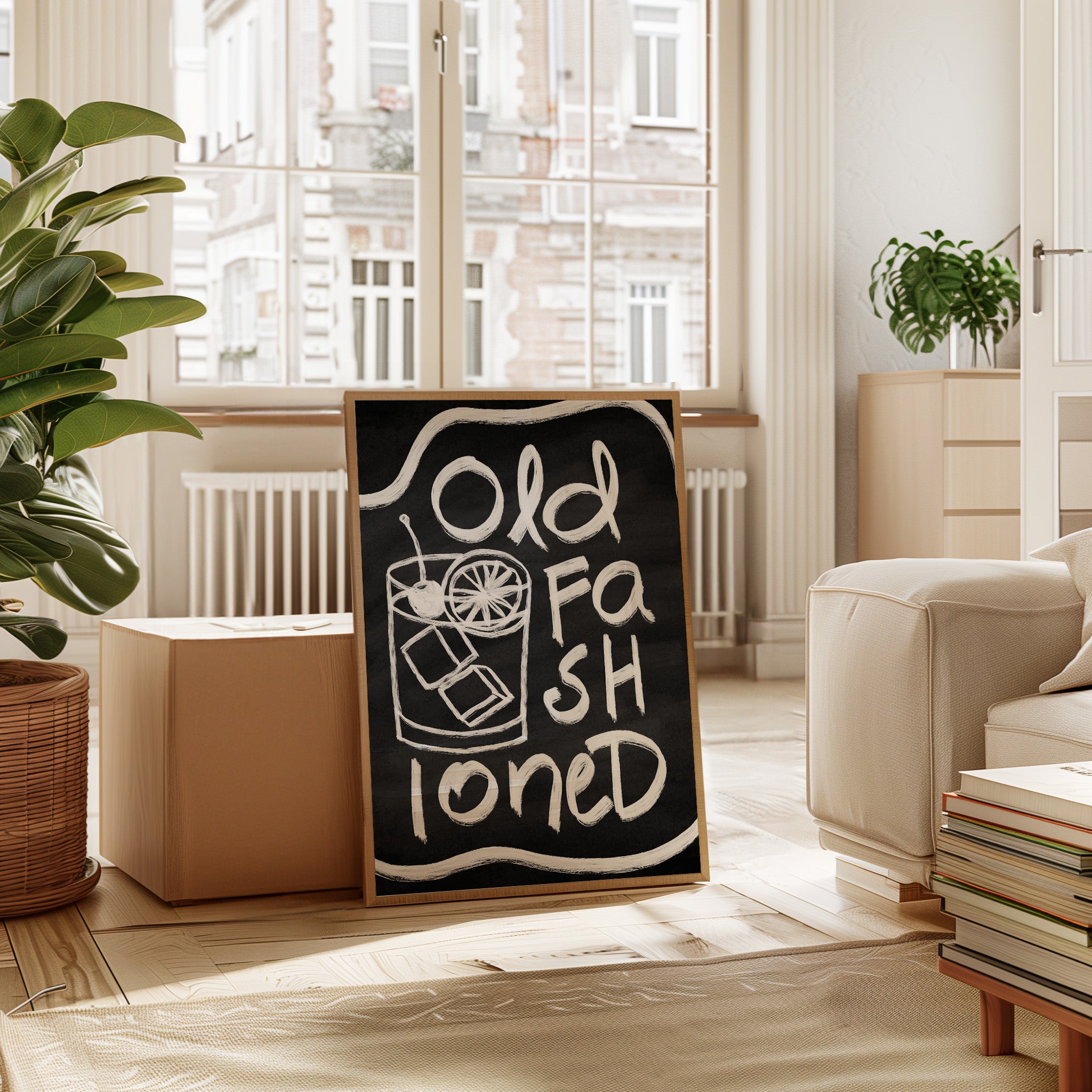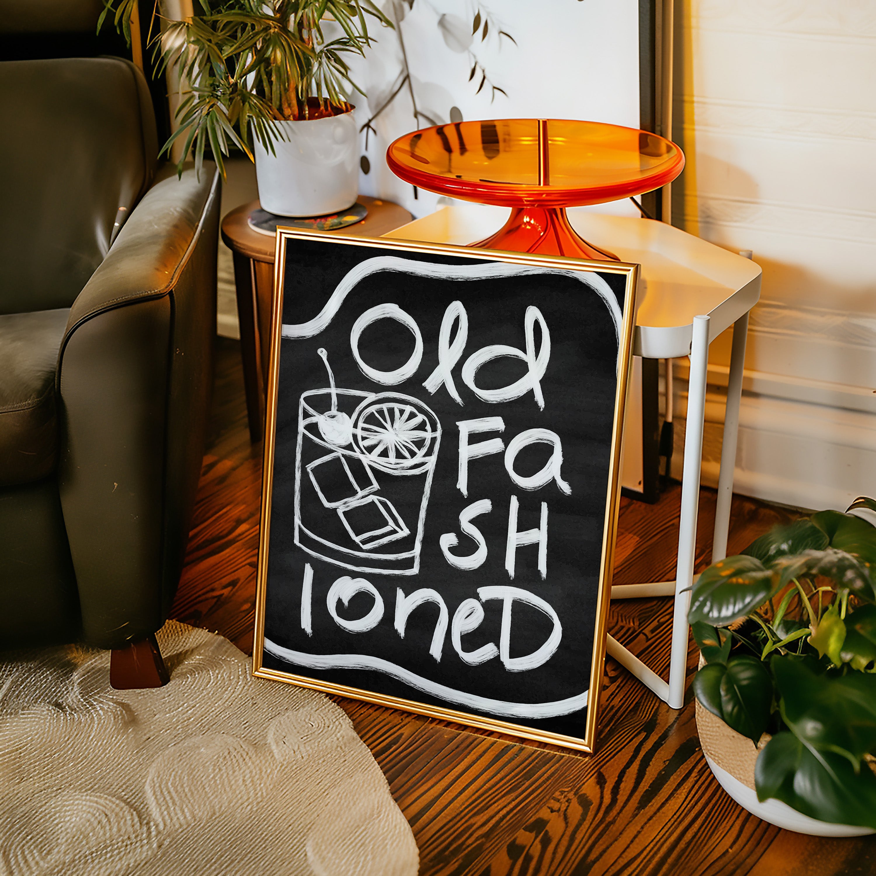 A rustic corner where time slows down, marked by the bold strokes of hand-drawn letters against deep black chalk. Part of our Contemporary collection, this piece captures the laid-back spirit of modern desert living. The composition creates a perfect balance between industrial and organic elements - from the geometric arrow rail above to the spiky cactus companion standing guard. The weathered wooden bench and textured concrete wall add layers of authentic charm that ground the playful typography. This striking piece makes a statement in modern kitchens, coffee bars, or any space seeking that perfect blend of vintage industrial and desert modern aesthetics. The monochromatic palette ensures it remains both bold and versatile.