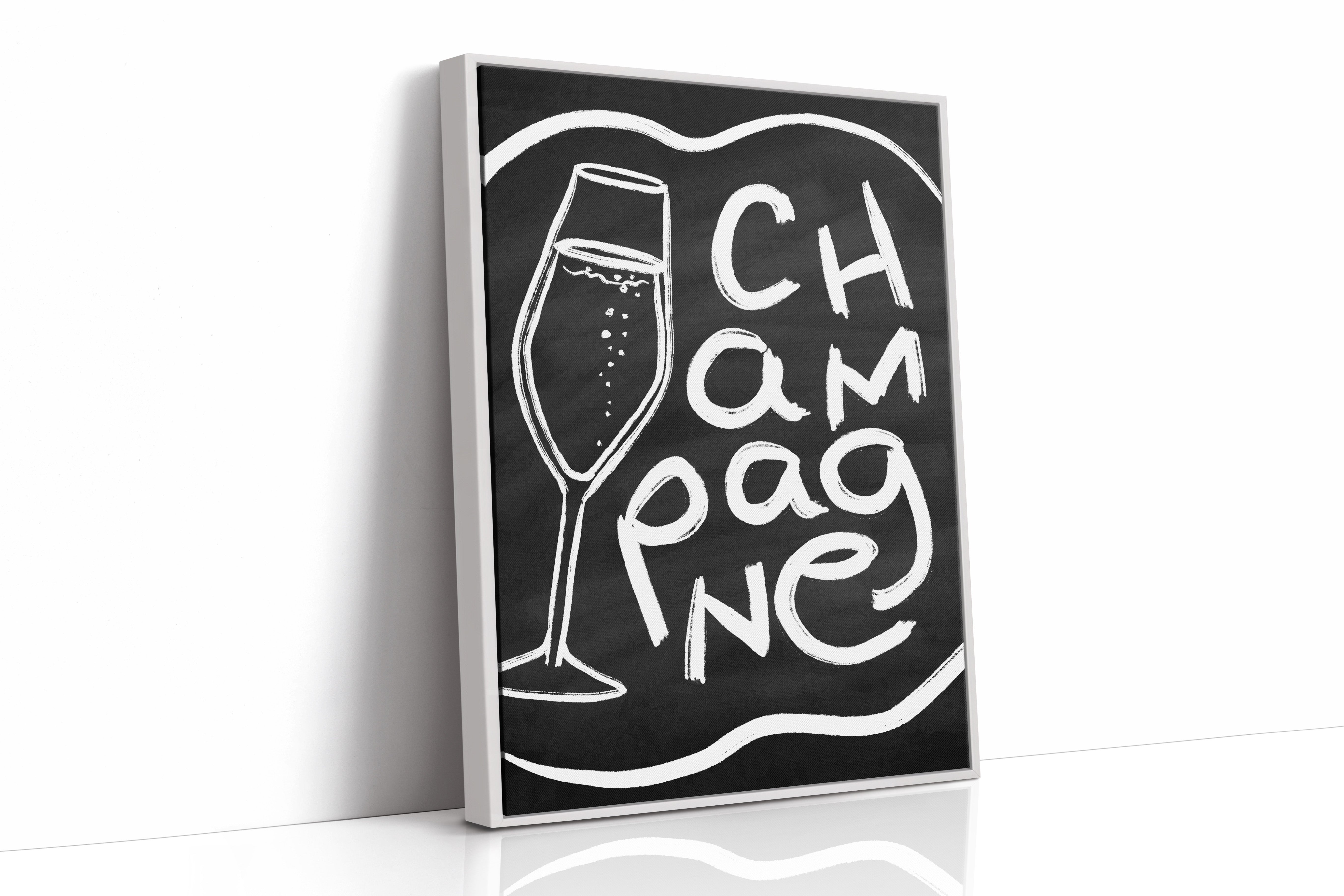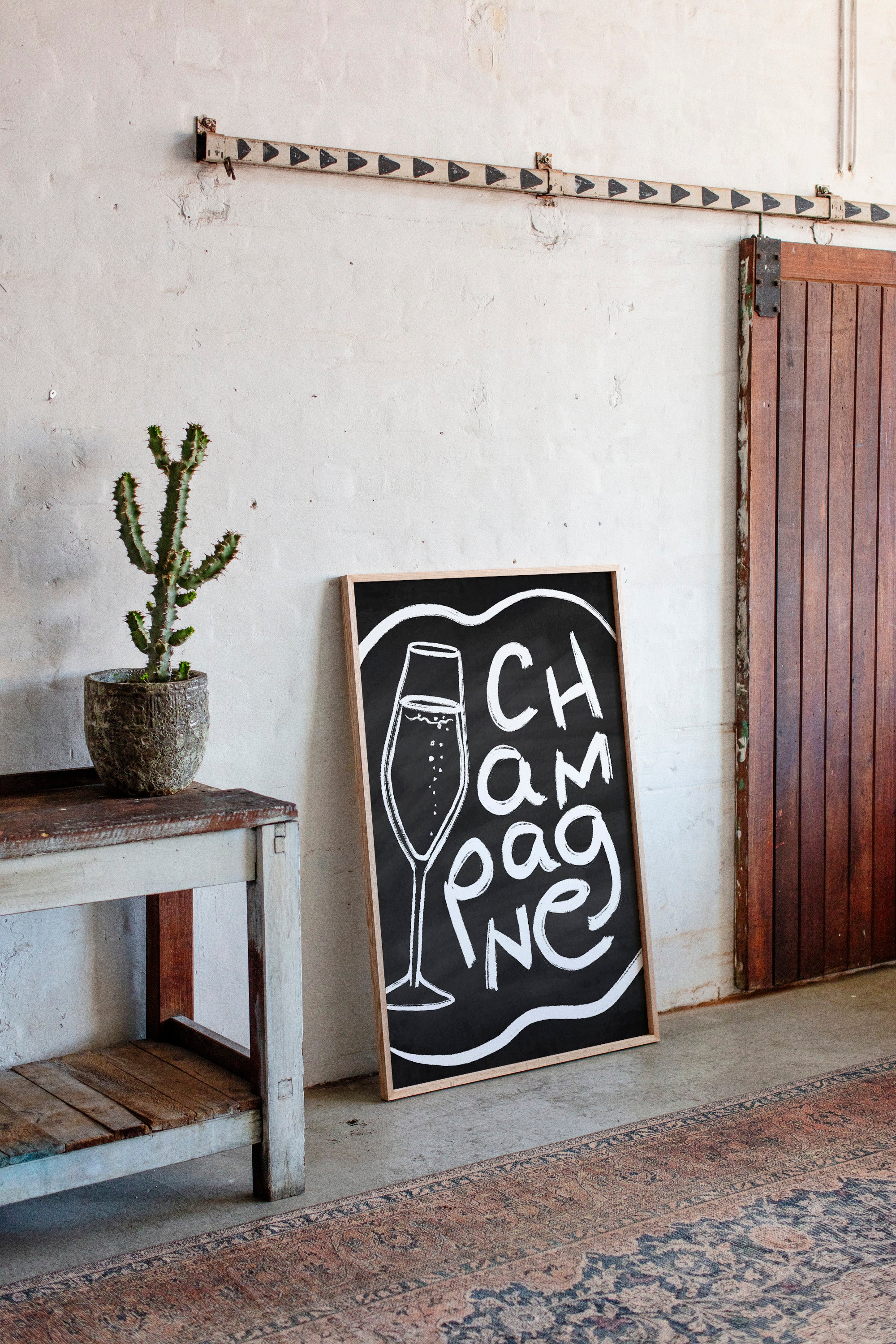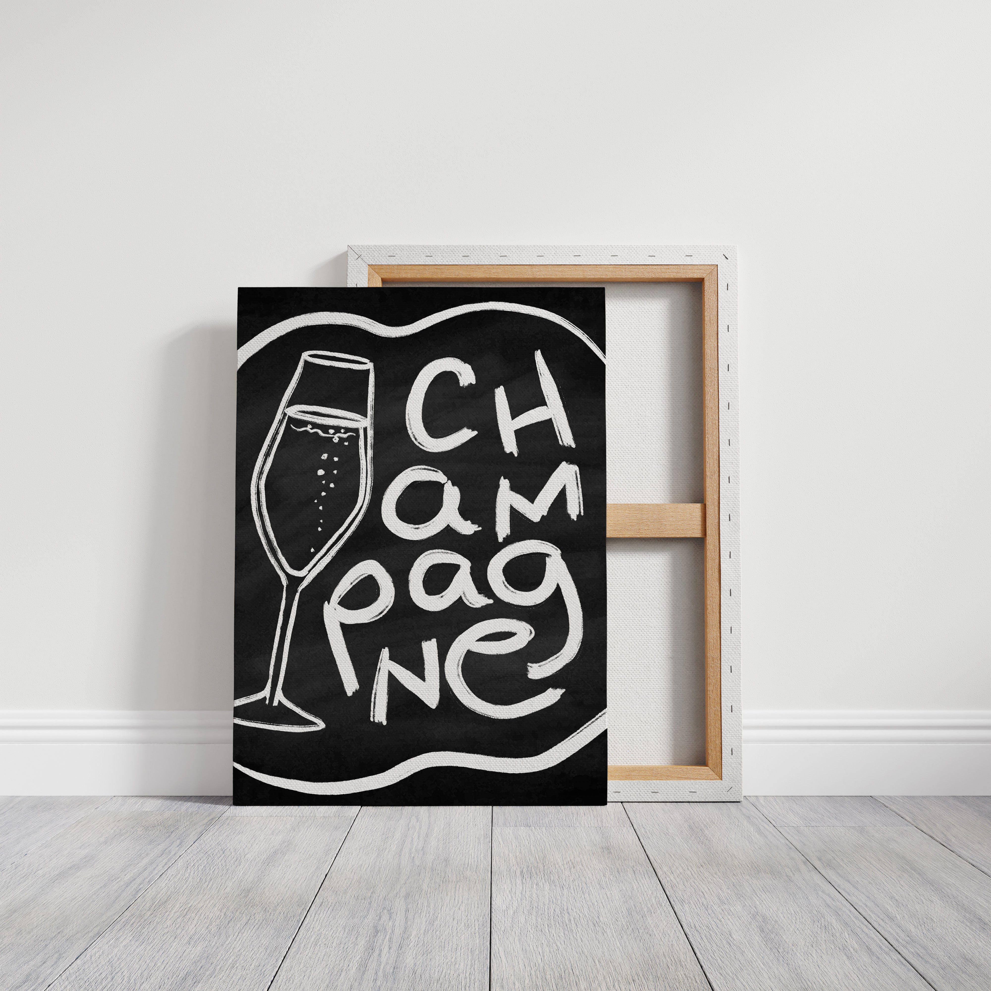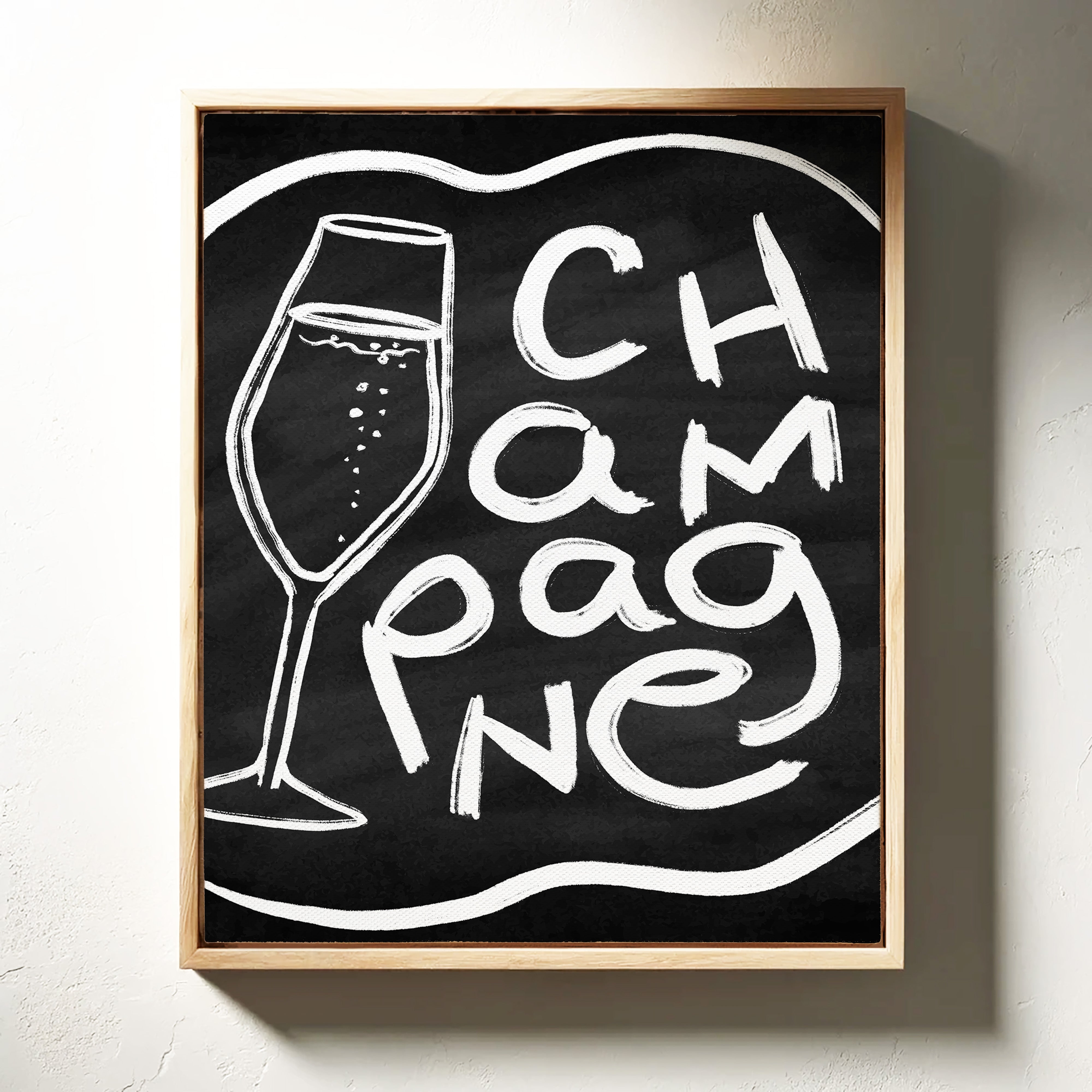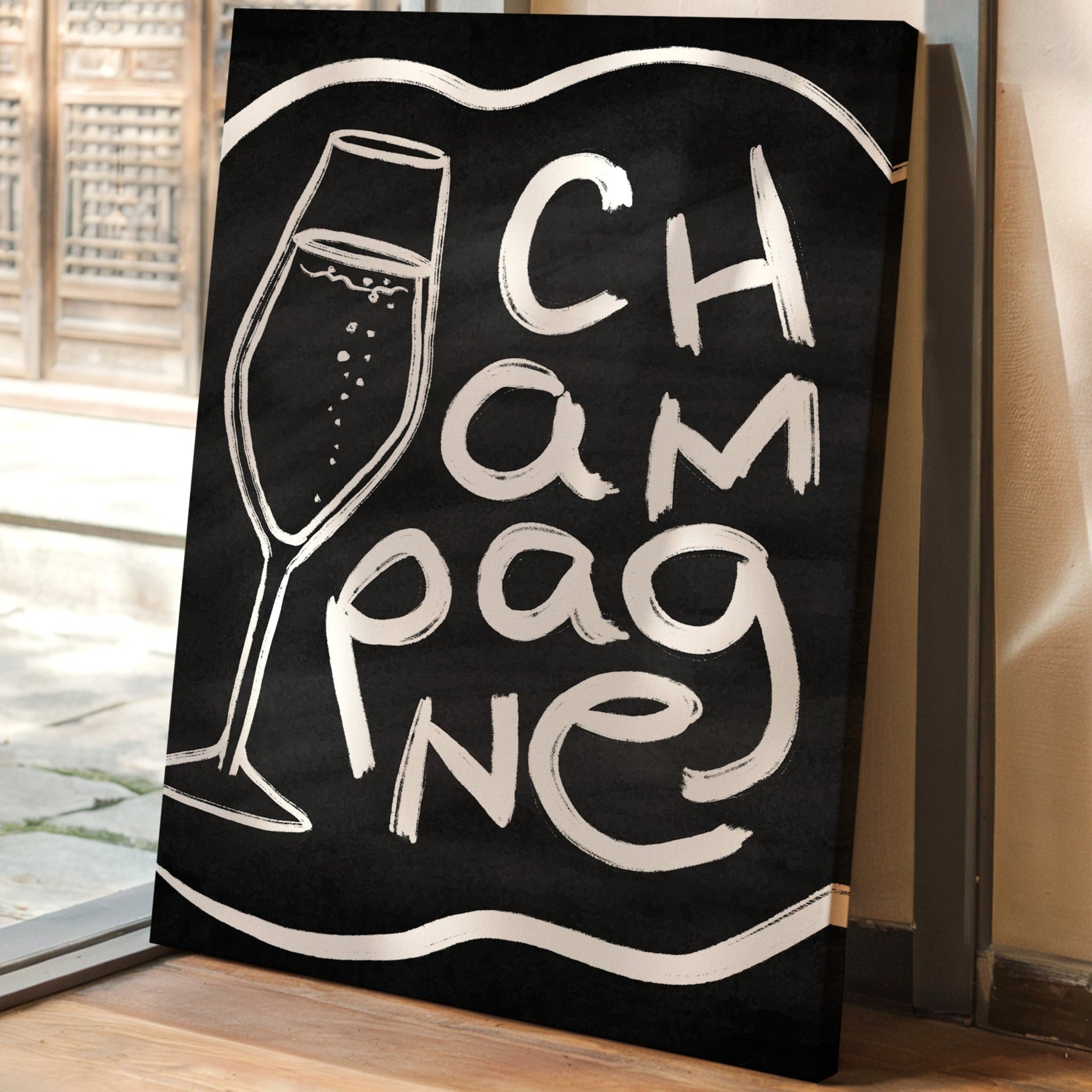 Delicate bubbles rise against stark black and white, capturing the casual elegance of a spontaneous celebration. This contemporary chalkboard-style piece brings modern sophistication to beverage-themed art. Bold strokes and playful lettering dance across the canvas, creating a statement that's both refined and approachable. The minimalist design speaks to life's perfect moments - when friends gather, glasses clink, and memories are made. Perfect for adding personality to a dining room, home bar, or kitchen space, this piece invites both conversation and contemplation. The interplay of light and shadow adds depth to its timeless appeal.