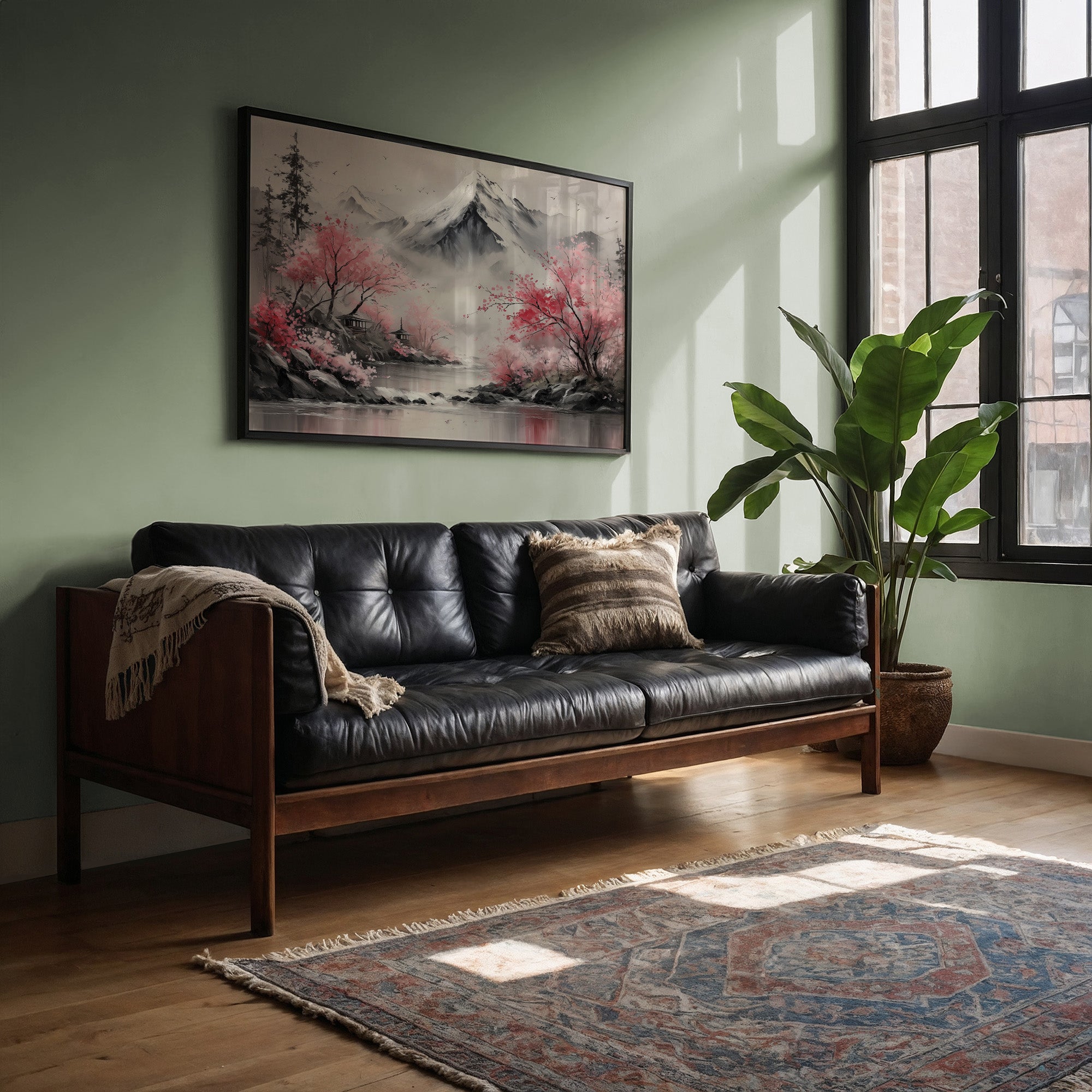 Your artwork should take up 60-75% of wall space above furniture. For standard sofas, choose 24"x36" or larger. When in doubt, go slightly bigger.