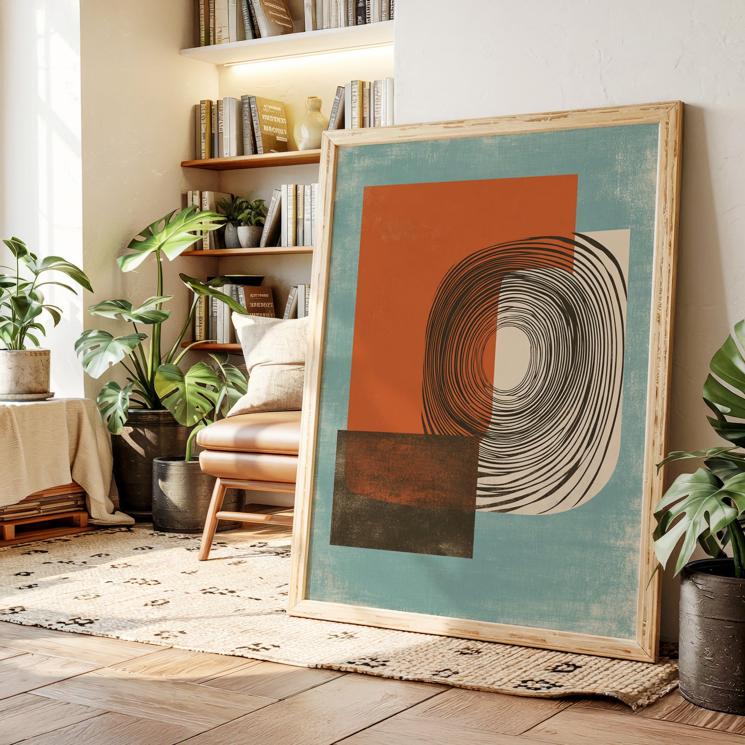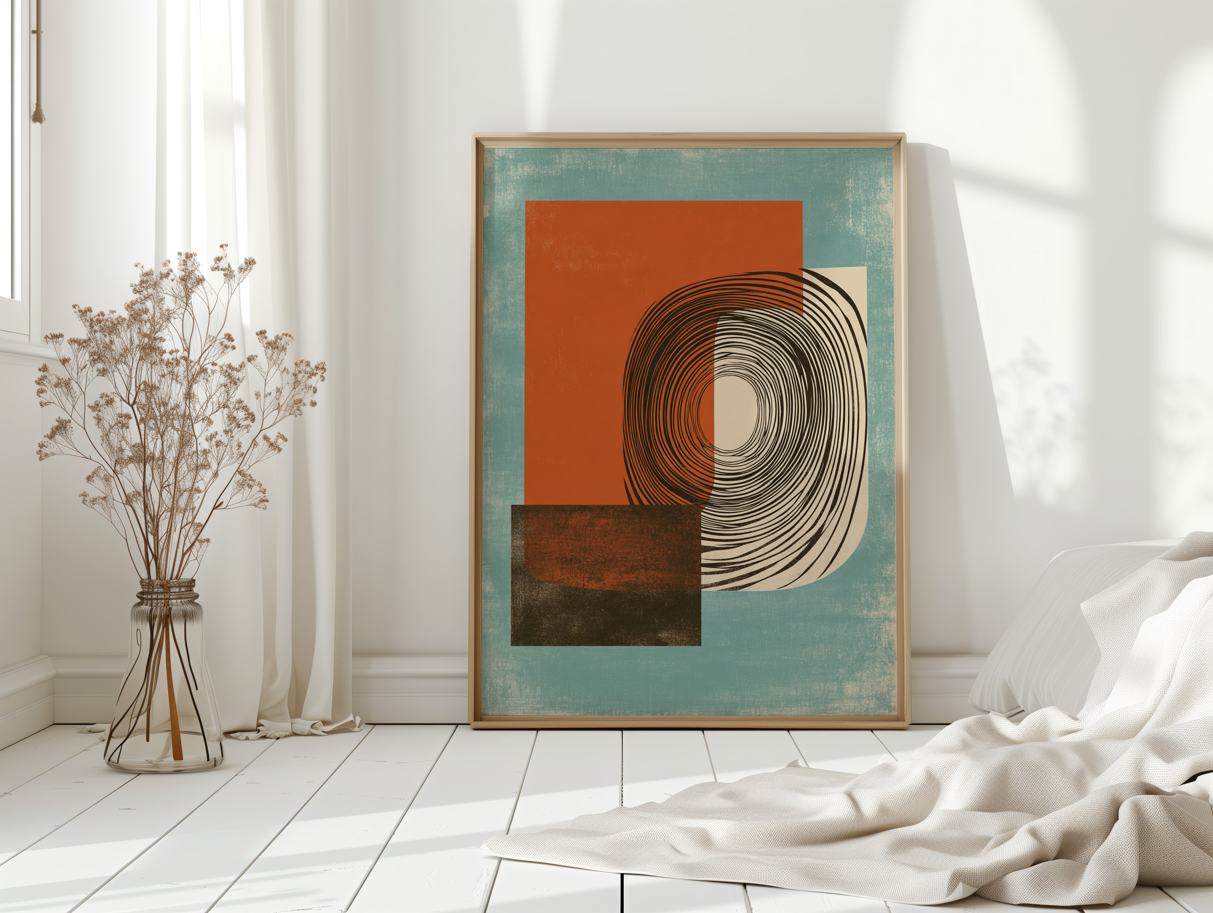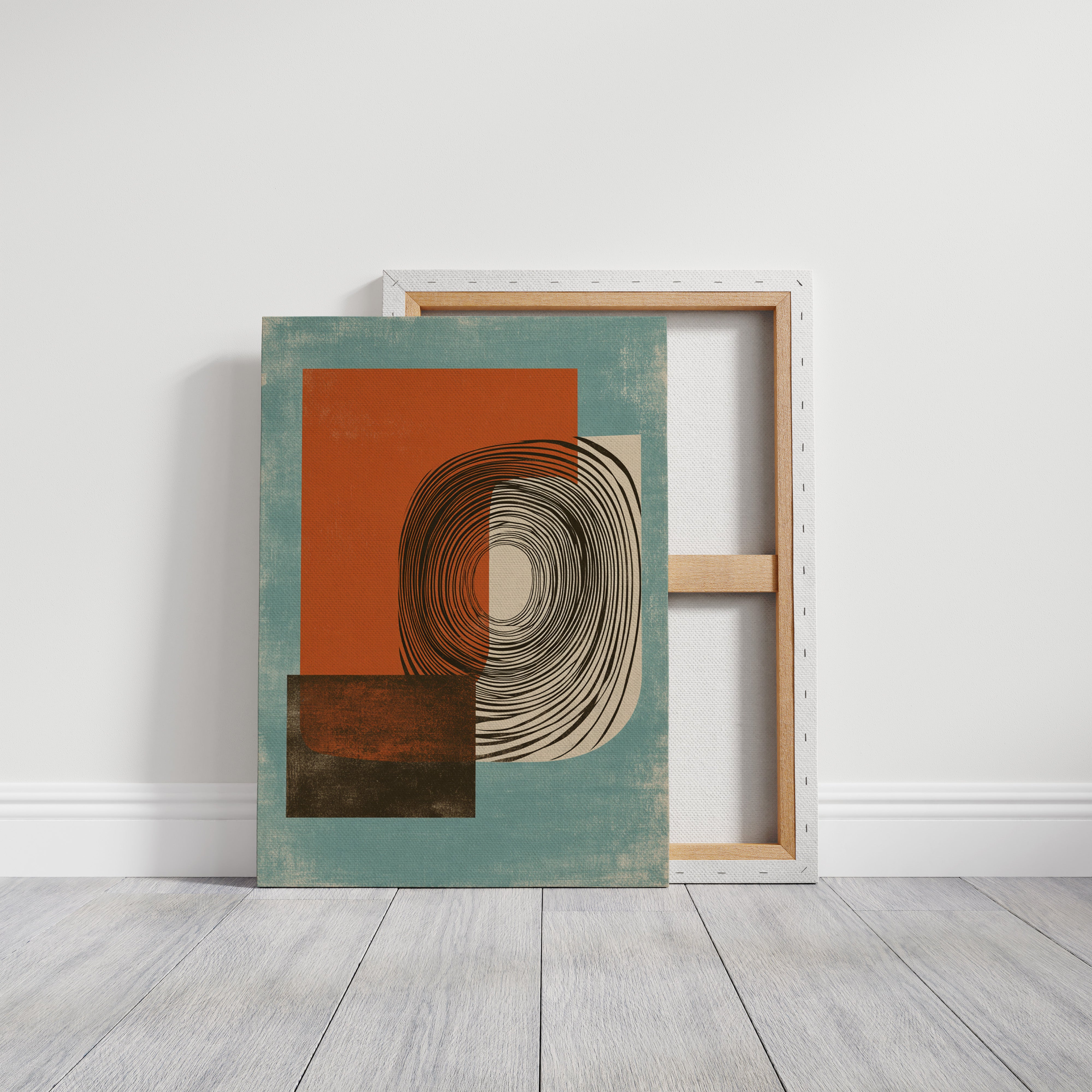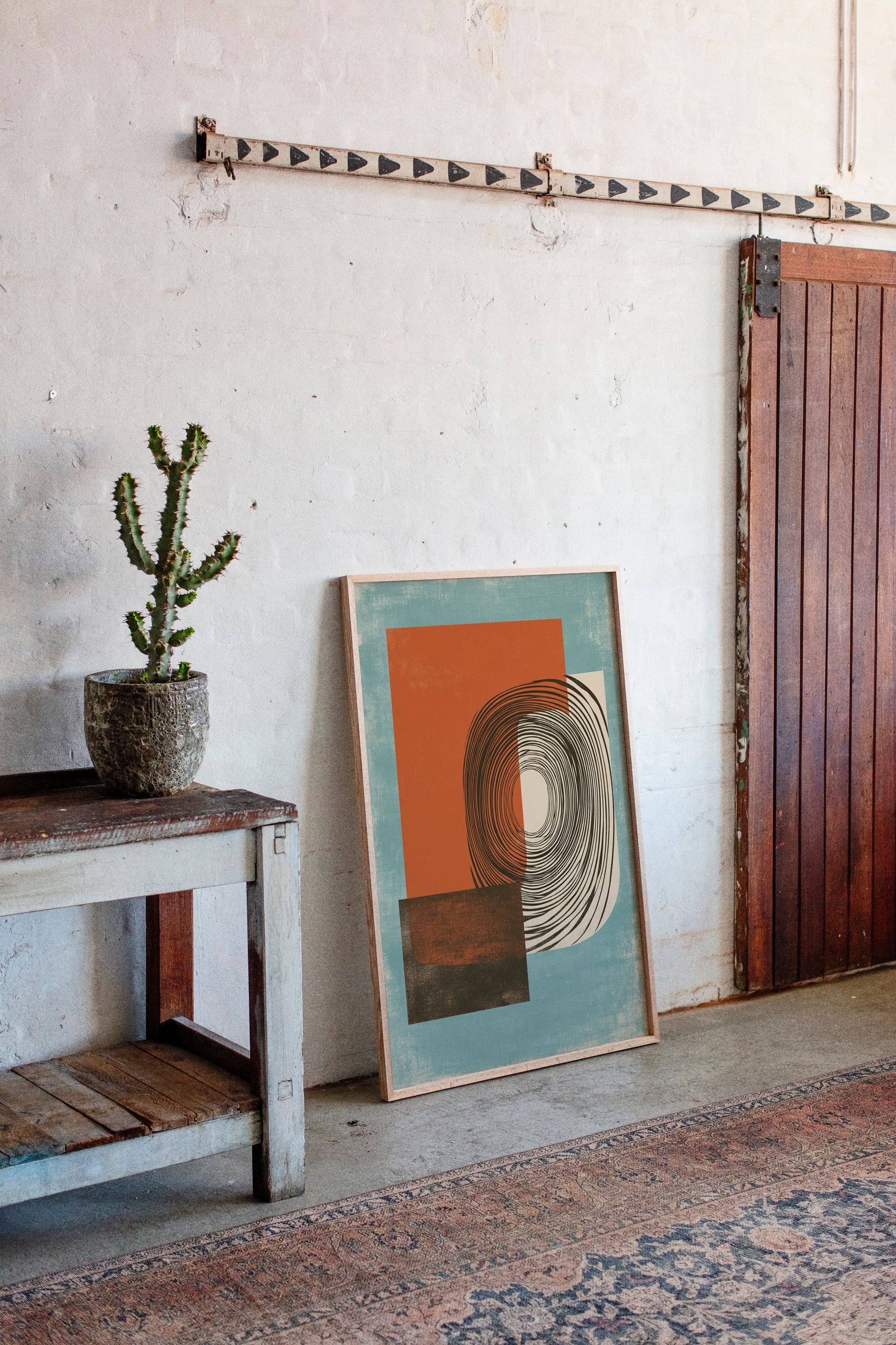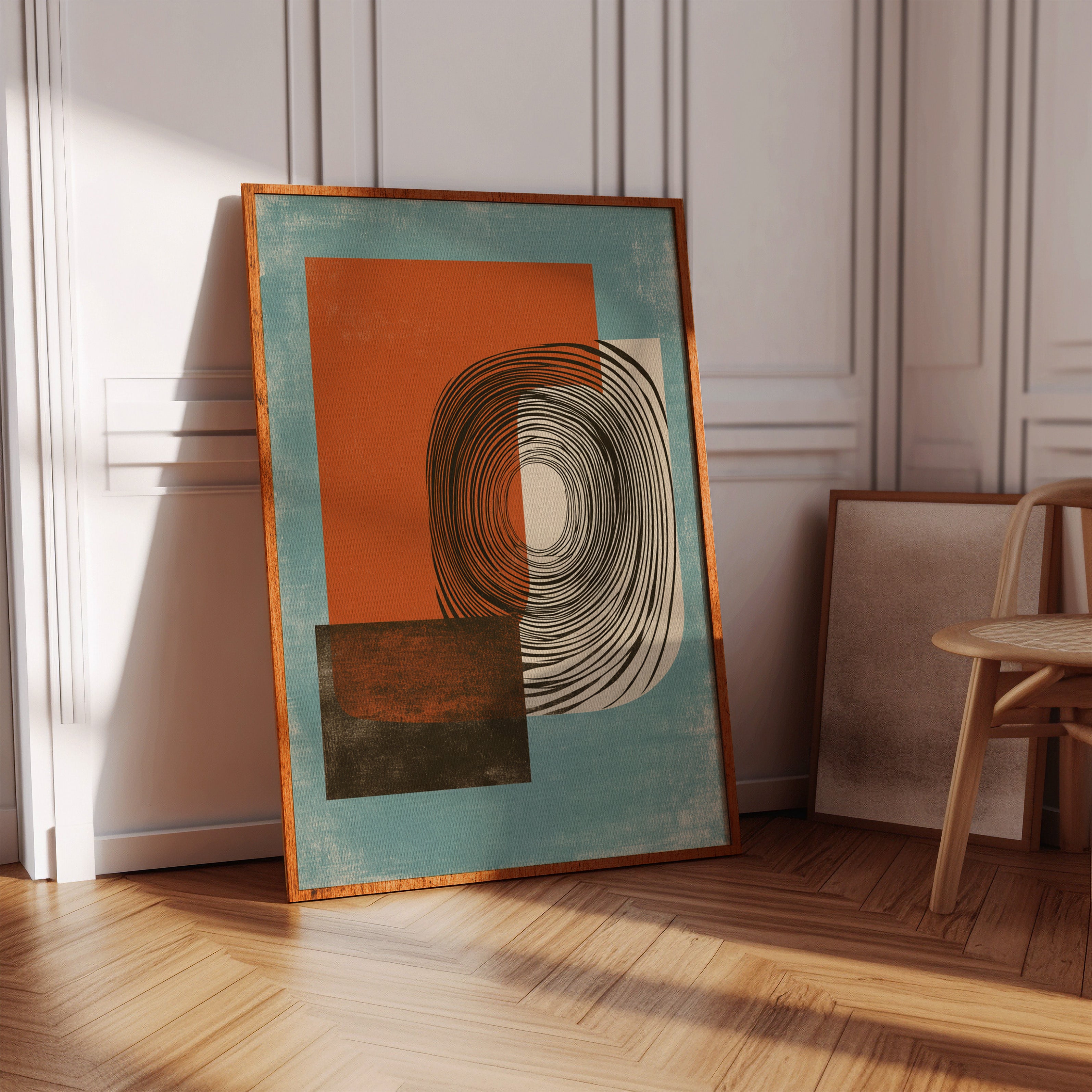 In a dance of organic forms, colors merge and play, inviting the viewer into a world of tactile sensation and layered depth. This piece embodies the artisanal spirit, where each line and hue tells a story of craftsmanship and connection. Rich terracotta swirls embrace a creamy orbit, balanced by the grounding presence of deep brown and the cool touch of turquoise, evoking a sense of harmony and nature's embrace. Ideal for a creative workspace or a cozy reading nook, this piece inspires reflection and conversation.