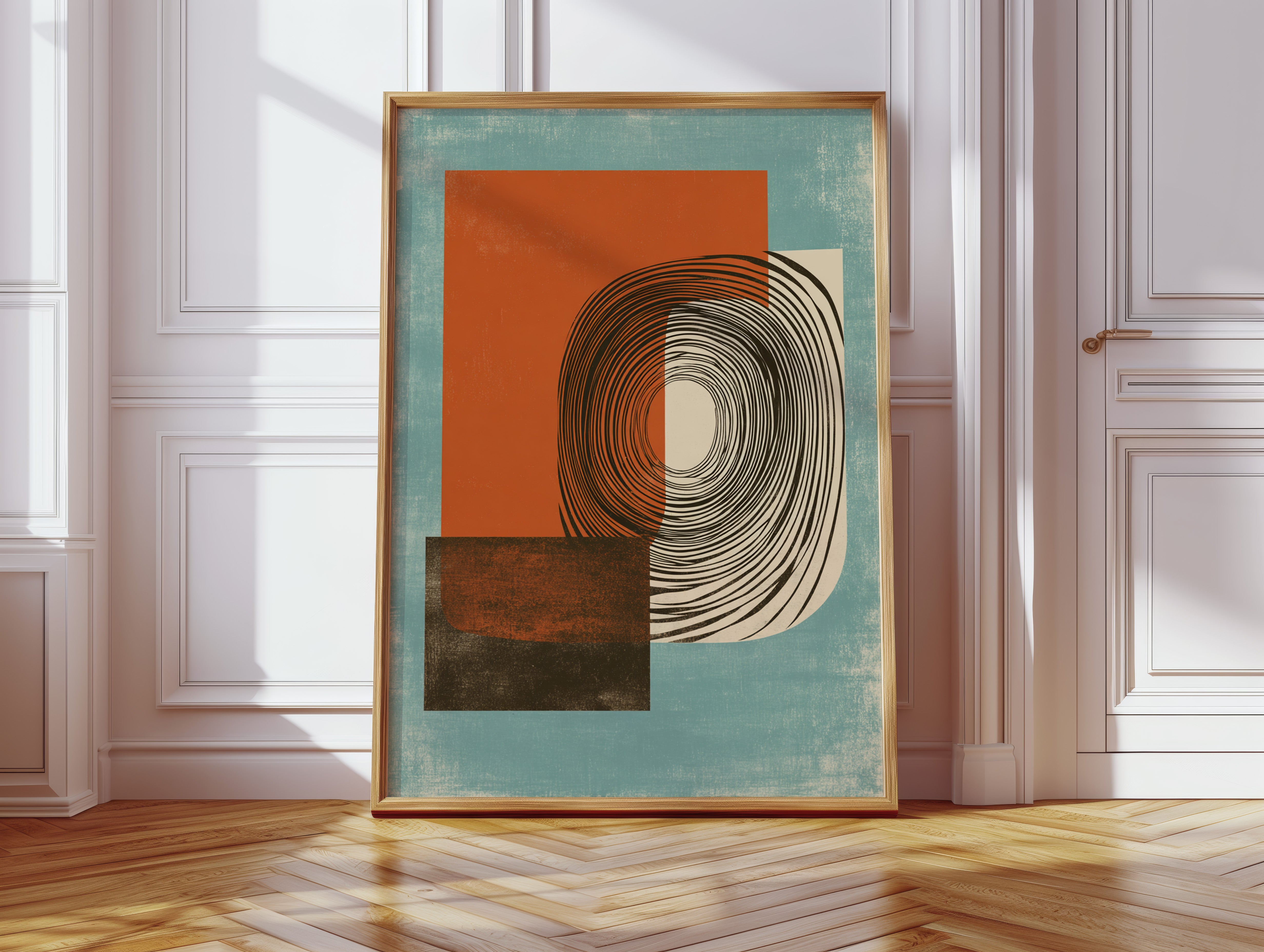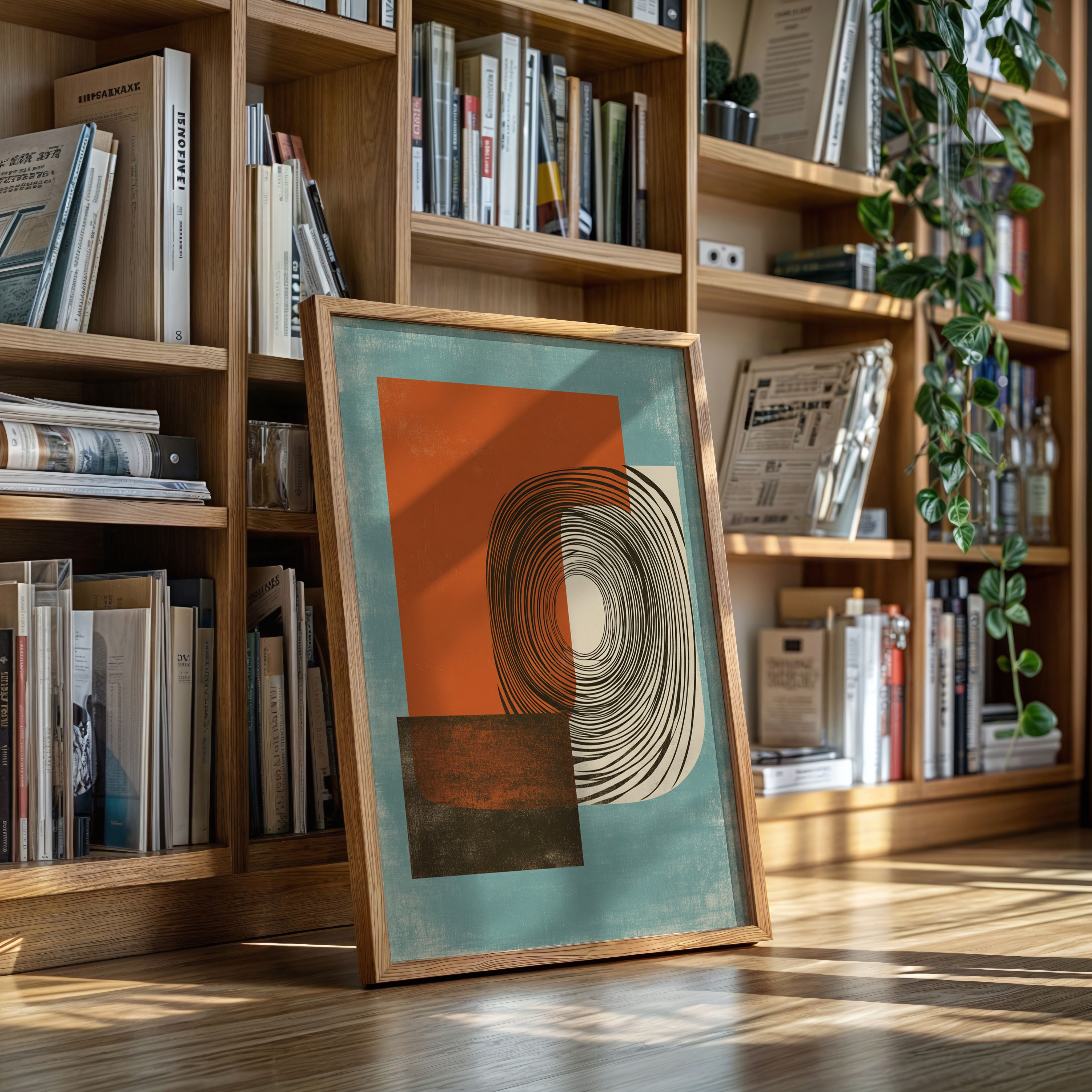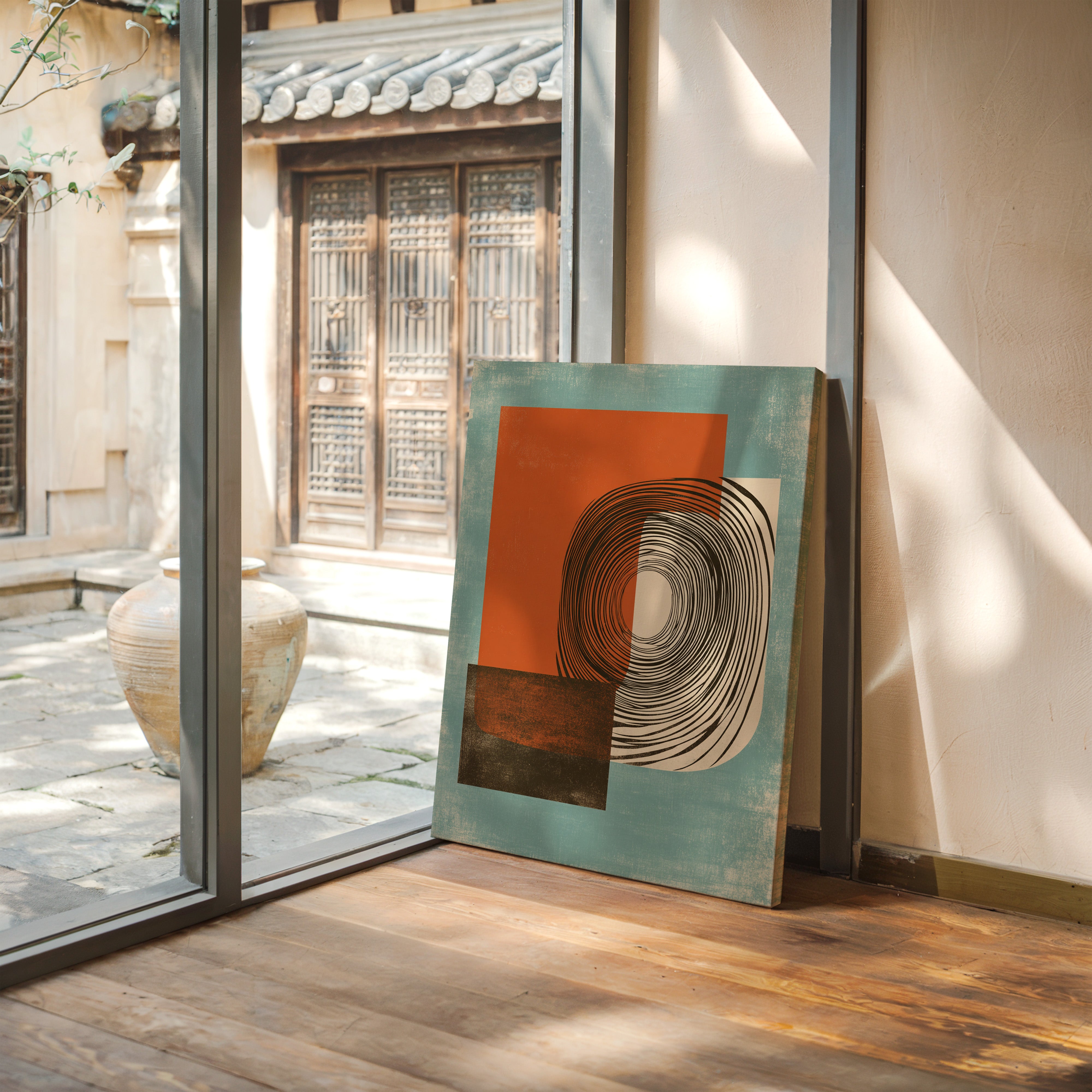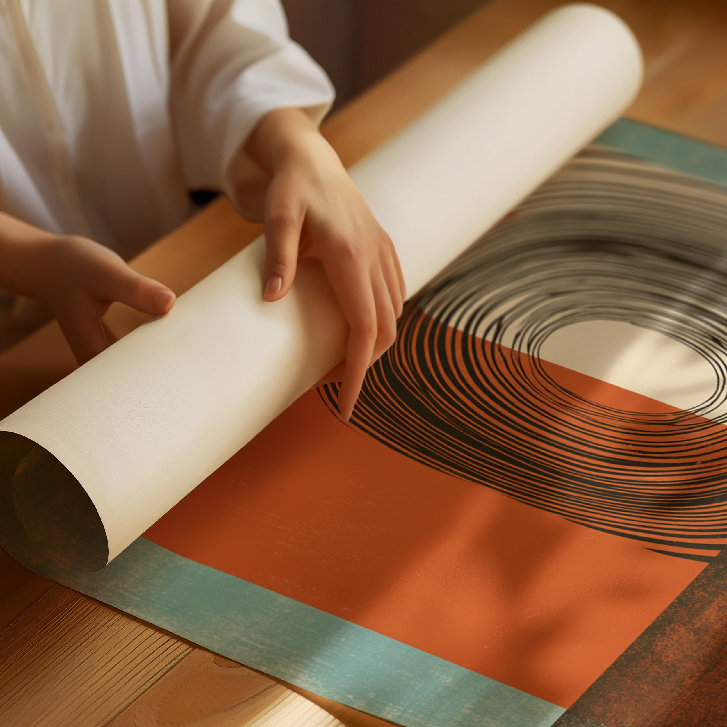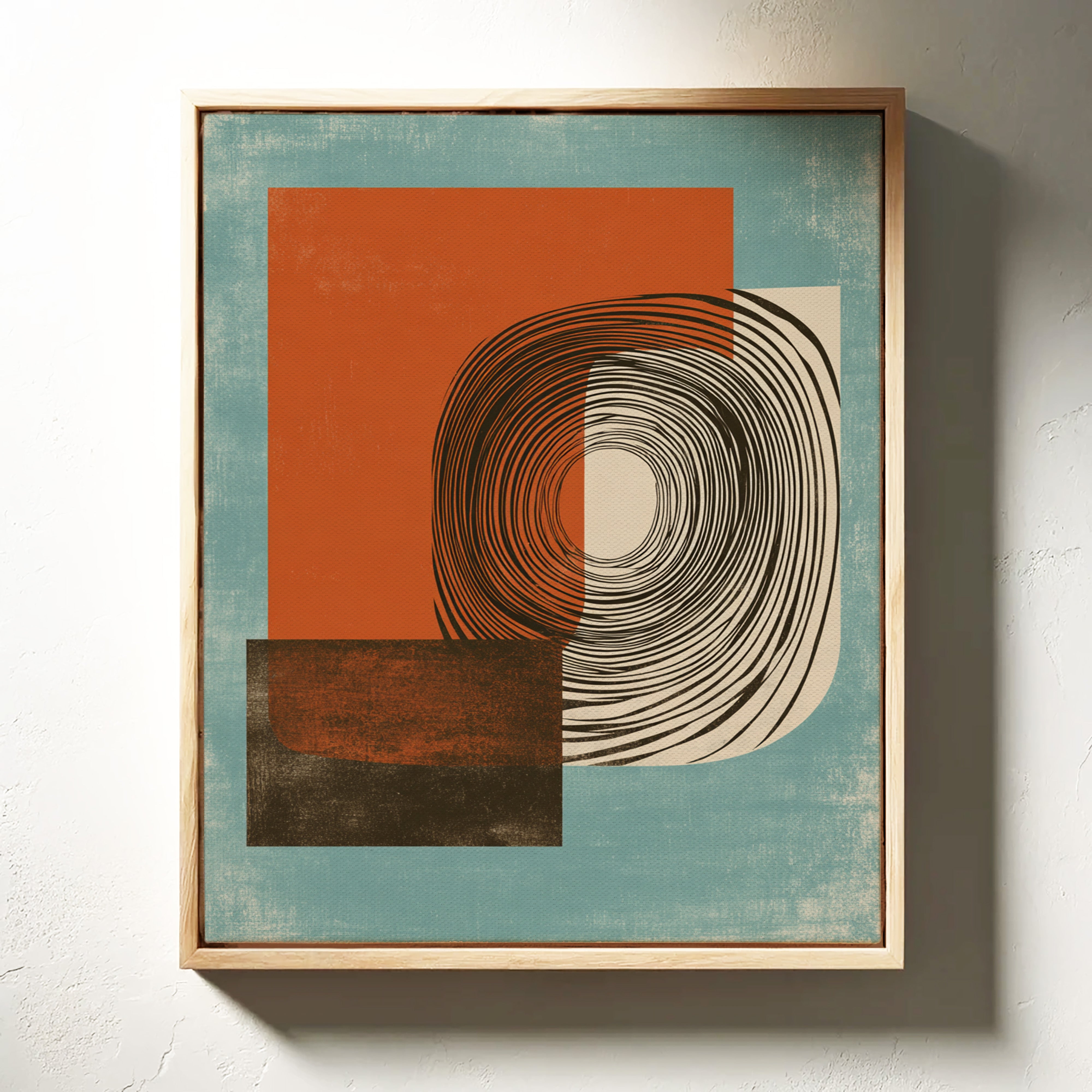 In a dance of organic forms, colors merge and play, inviting the viewer into a world of tactile sensation and layered depth. This piece embodies the artisanal spirit, where each line and hue tells a story of craftsmanship and connection. Rich terracotta swirls embrace a creamy orbit, balanced by the grounding presence of deep brown and the cool touch of turquoise, evoking a sense of harmony and nature's embrace. Ideal for a creative workspace or a cozy reading nook, this piece inspires reflection and conversation.